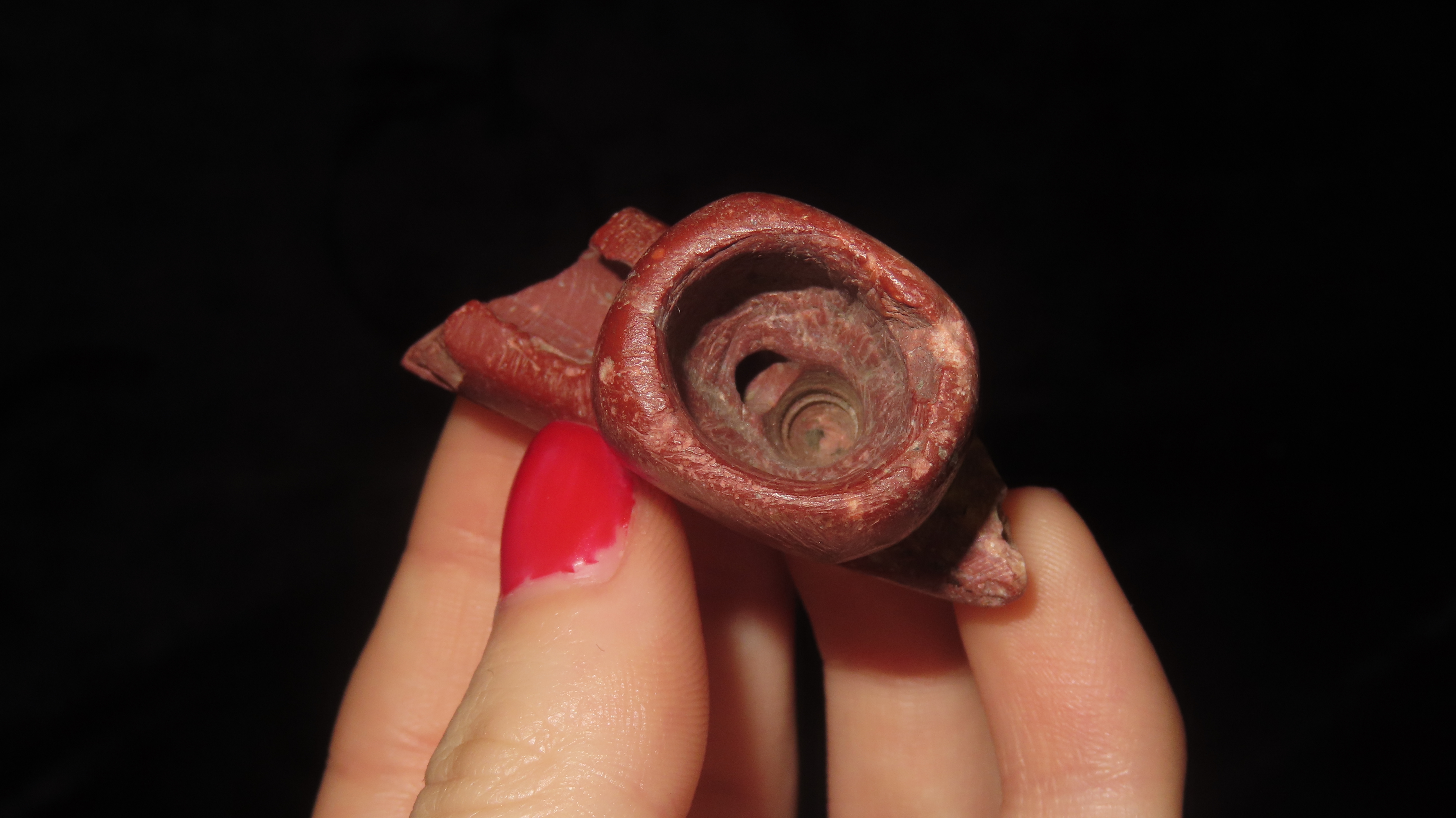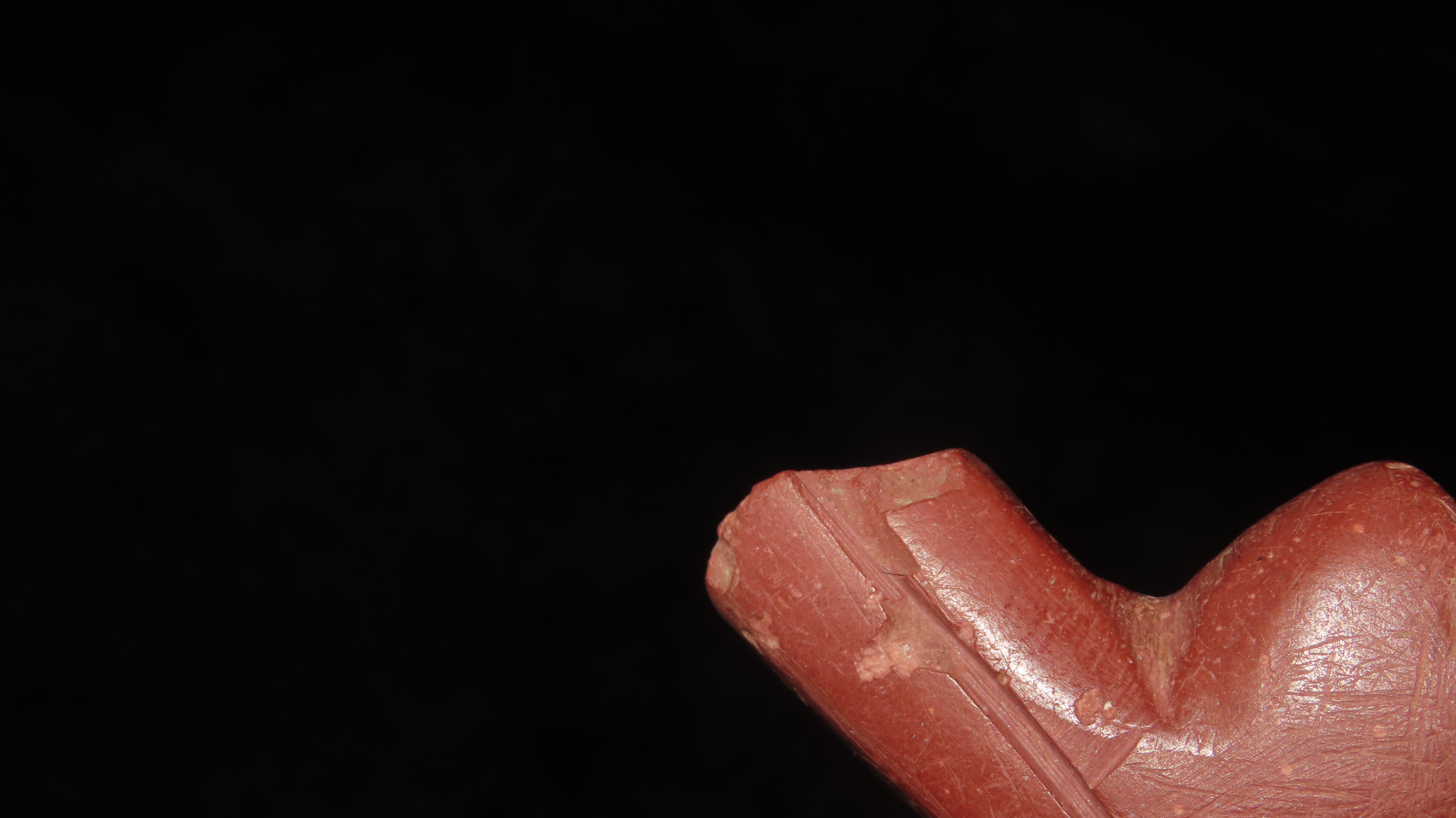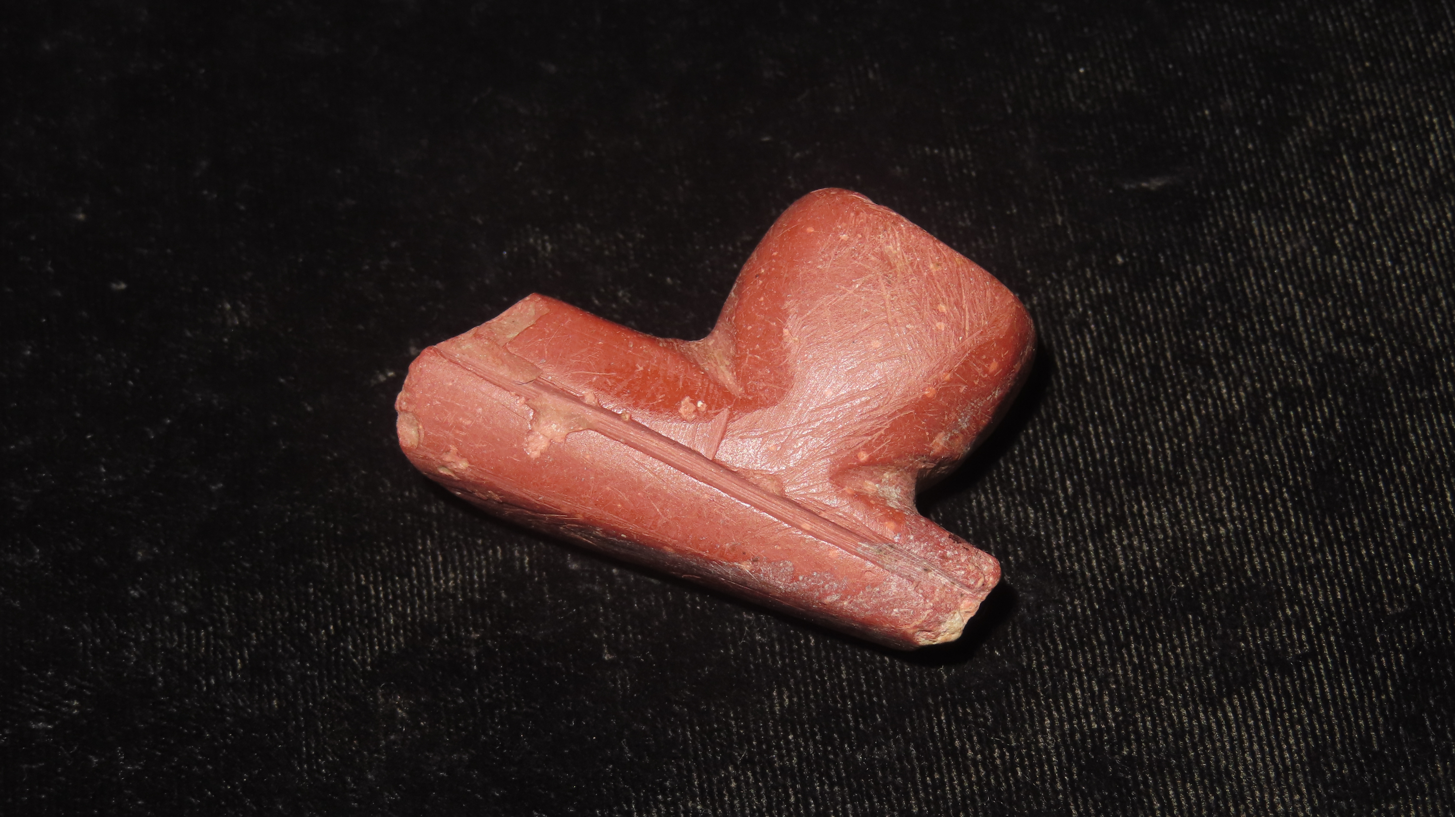 1 7/8” Catlinite Historic Pipe, Canoe Type, Fluted Both Sides