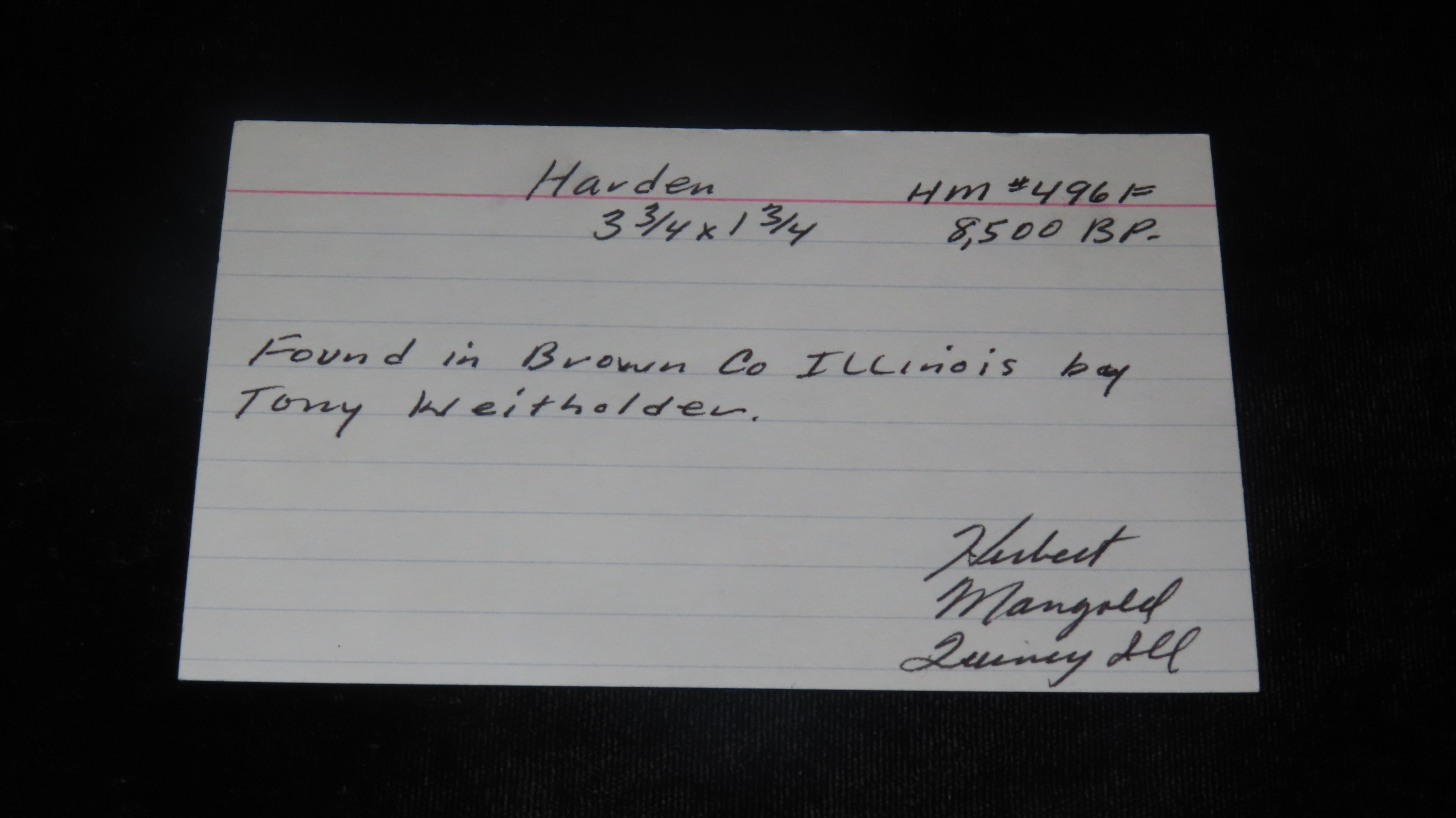 3 3/4″ x 1 3/4″ Hardin, Found in Brown Co. Illinois by Tony Weitholder, Ex. Herb Mangold Collection