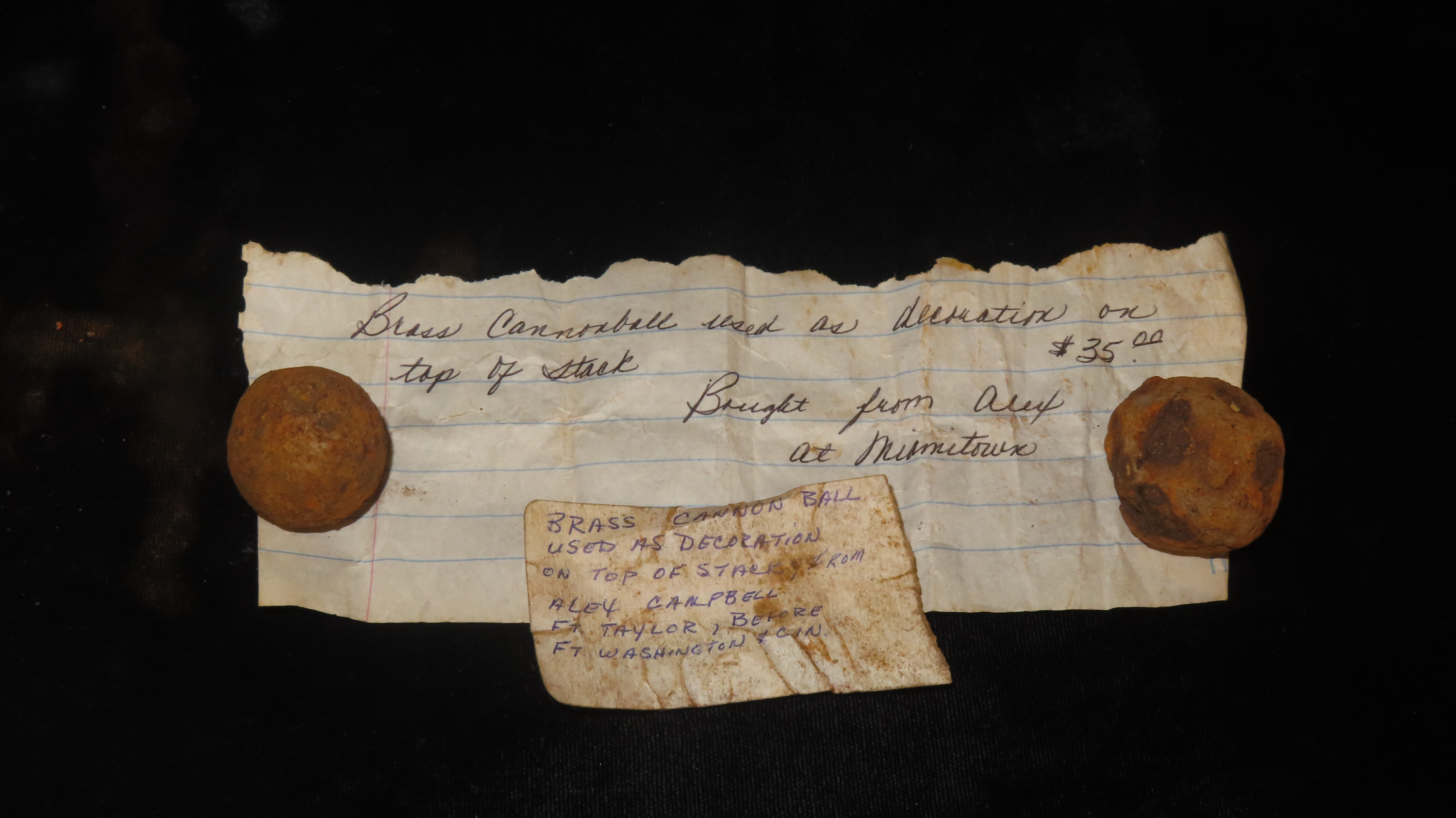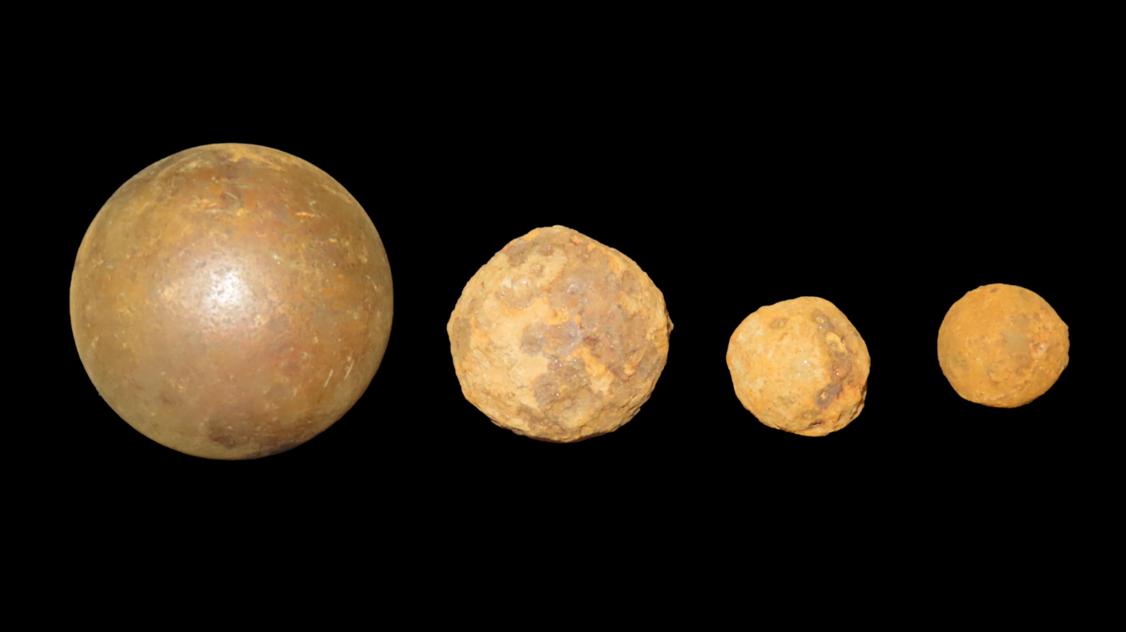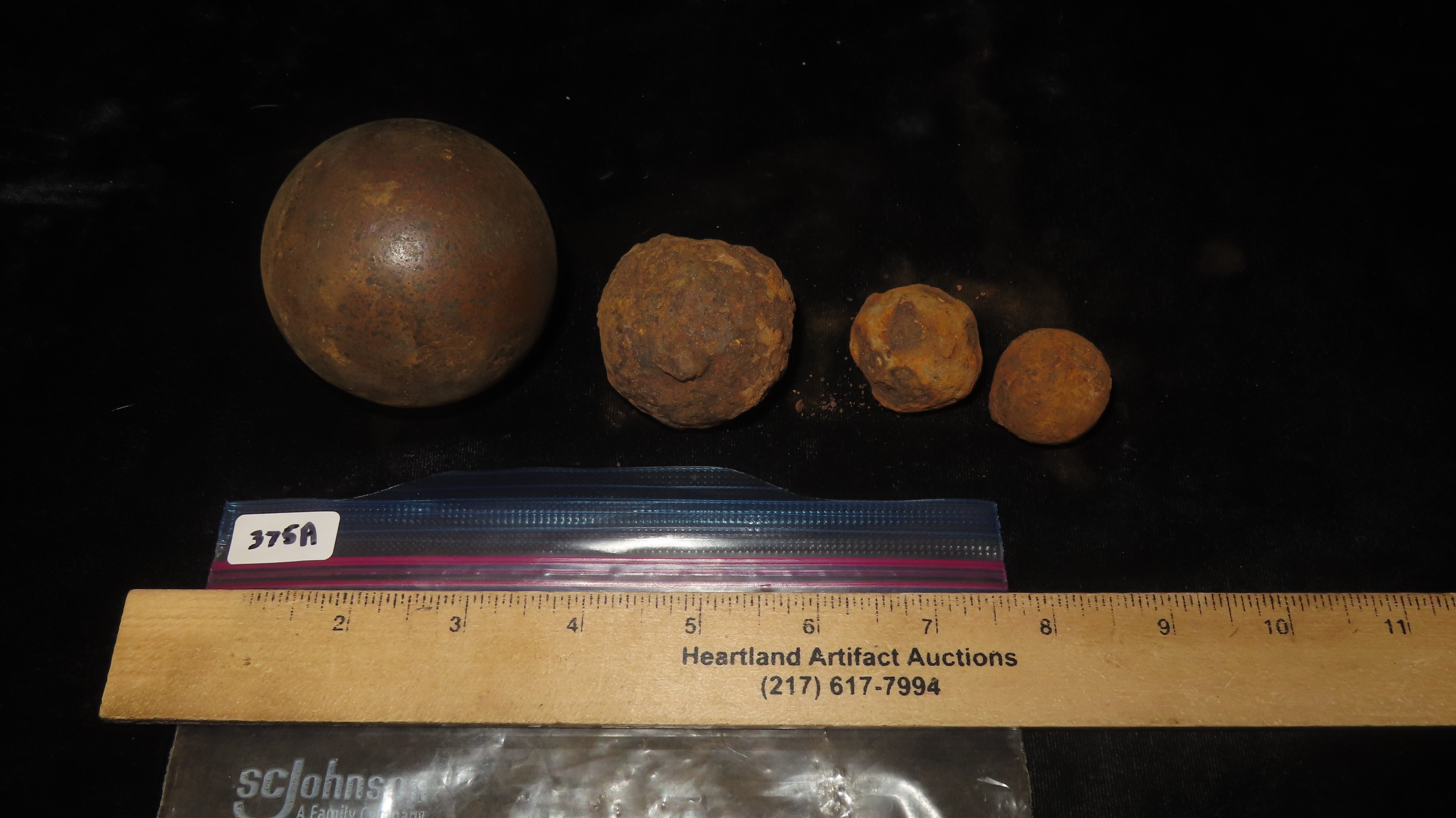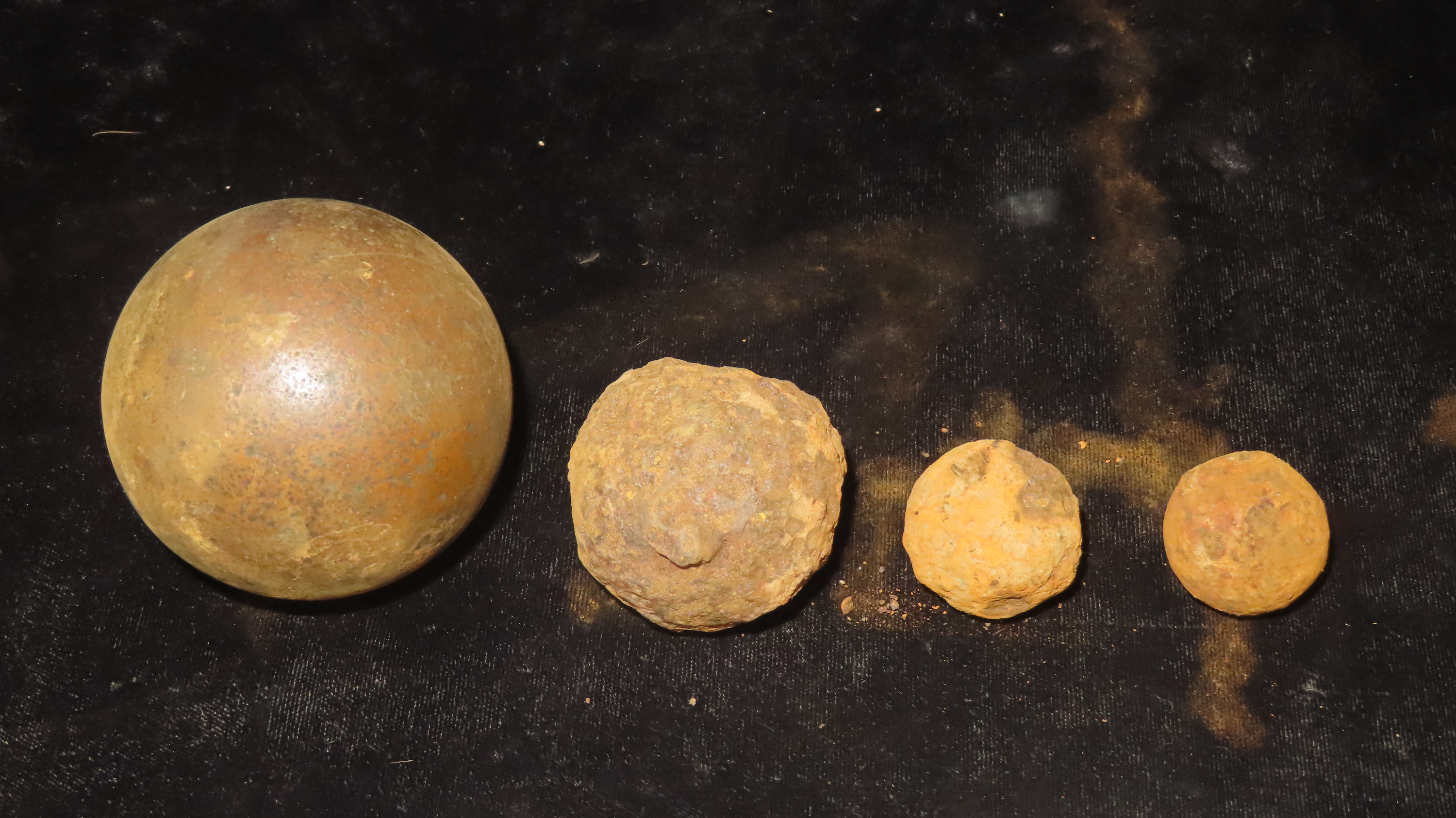 2 1/2” Brass Cannon Ball with 3 Grape Shot Iron Cannon Balls
