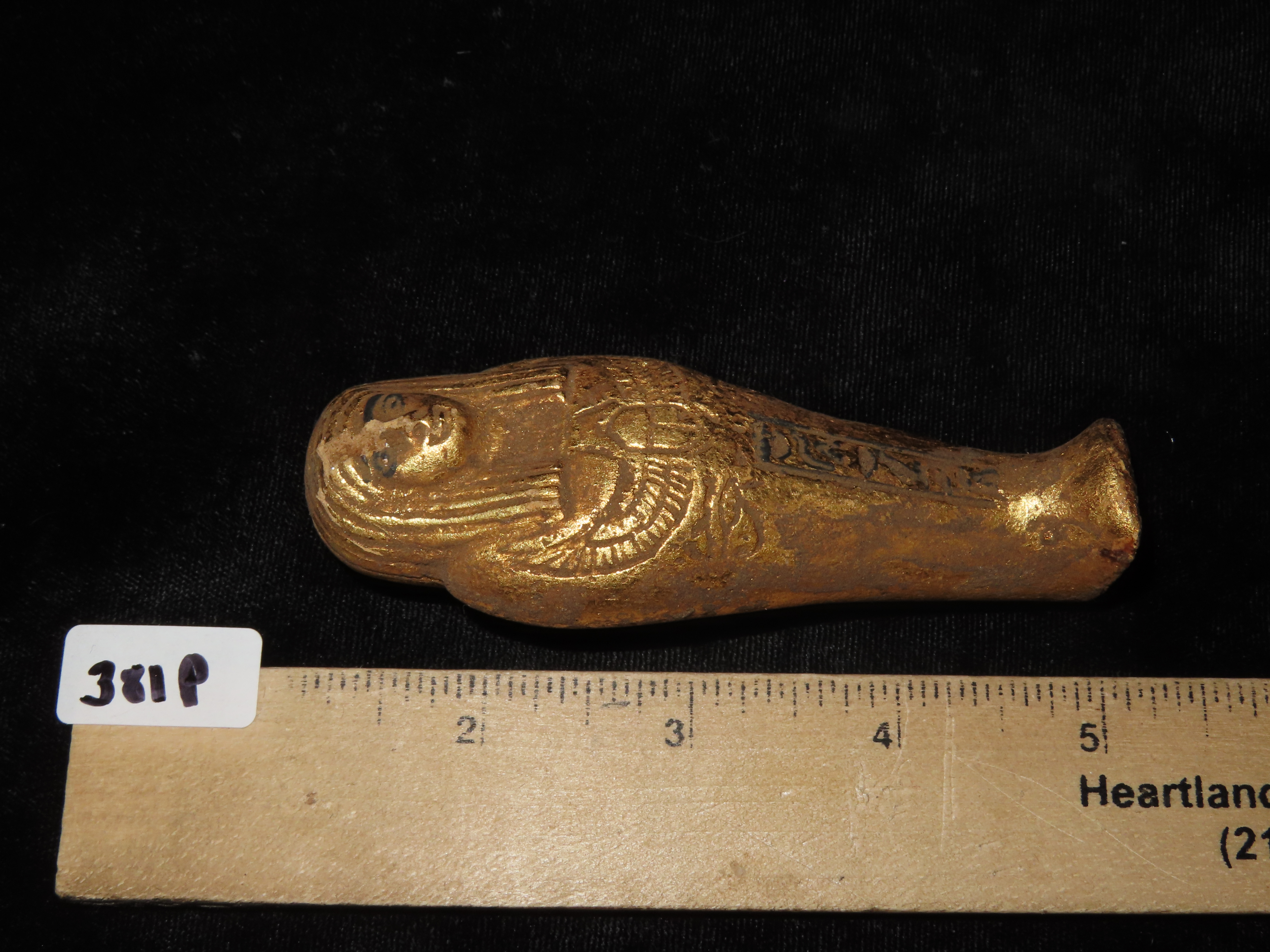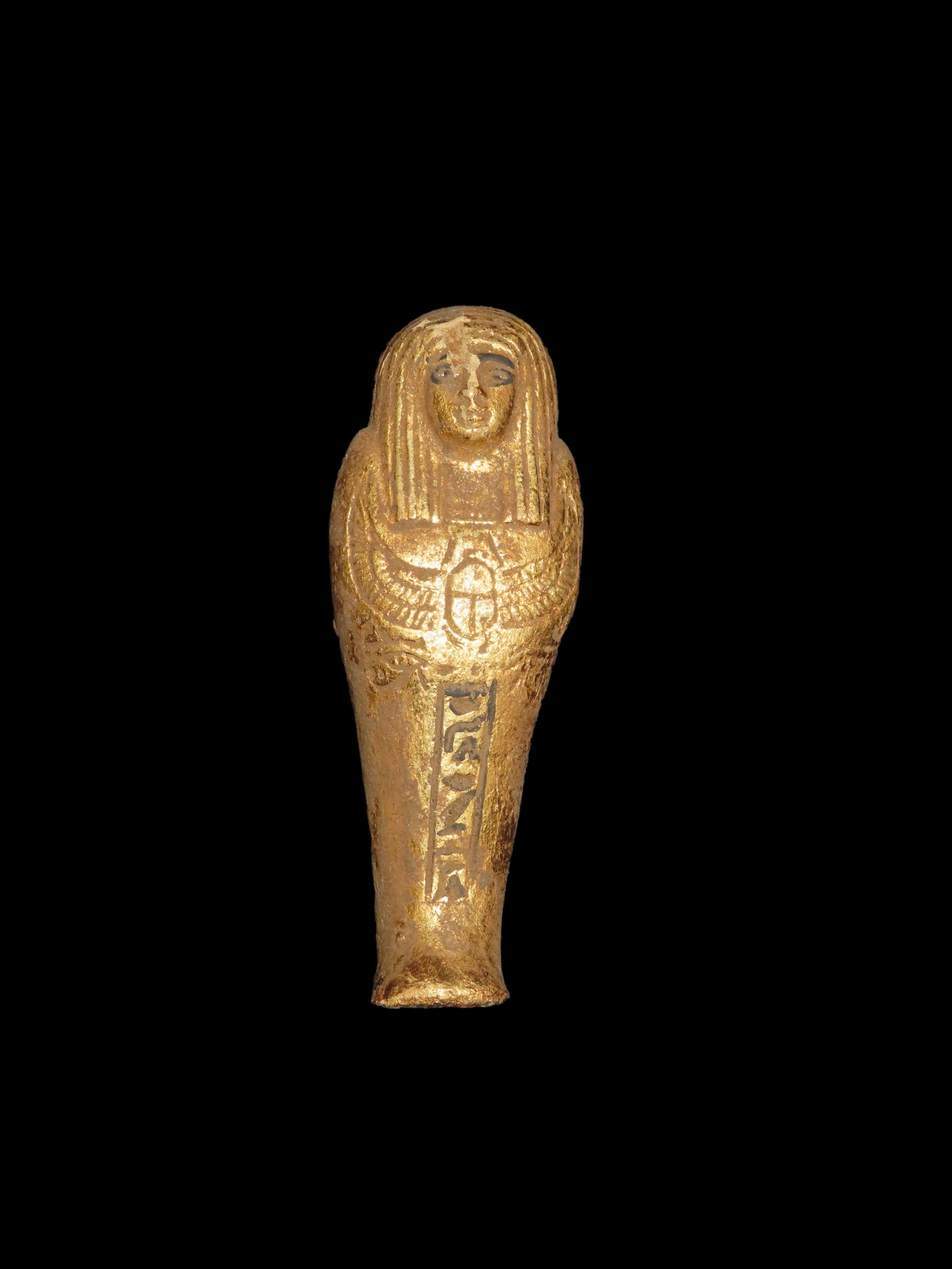 3 7/8″ Egyptian Antique Ushabti, Gold Colored, New Kingdom