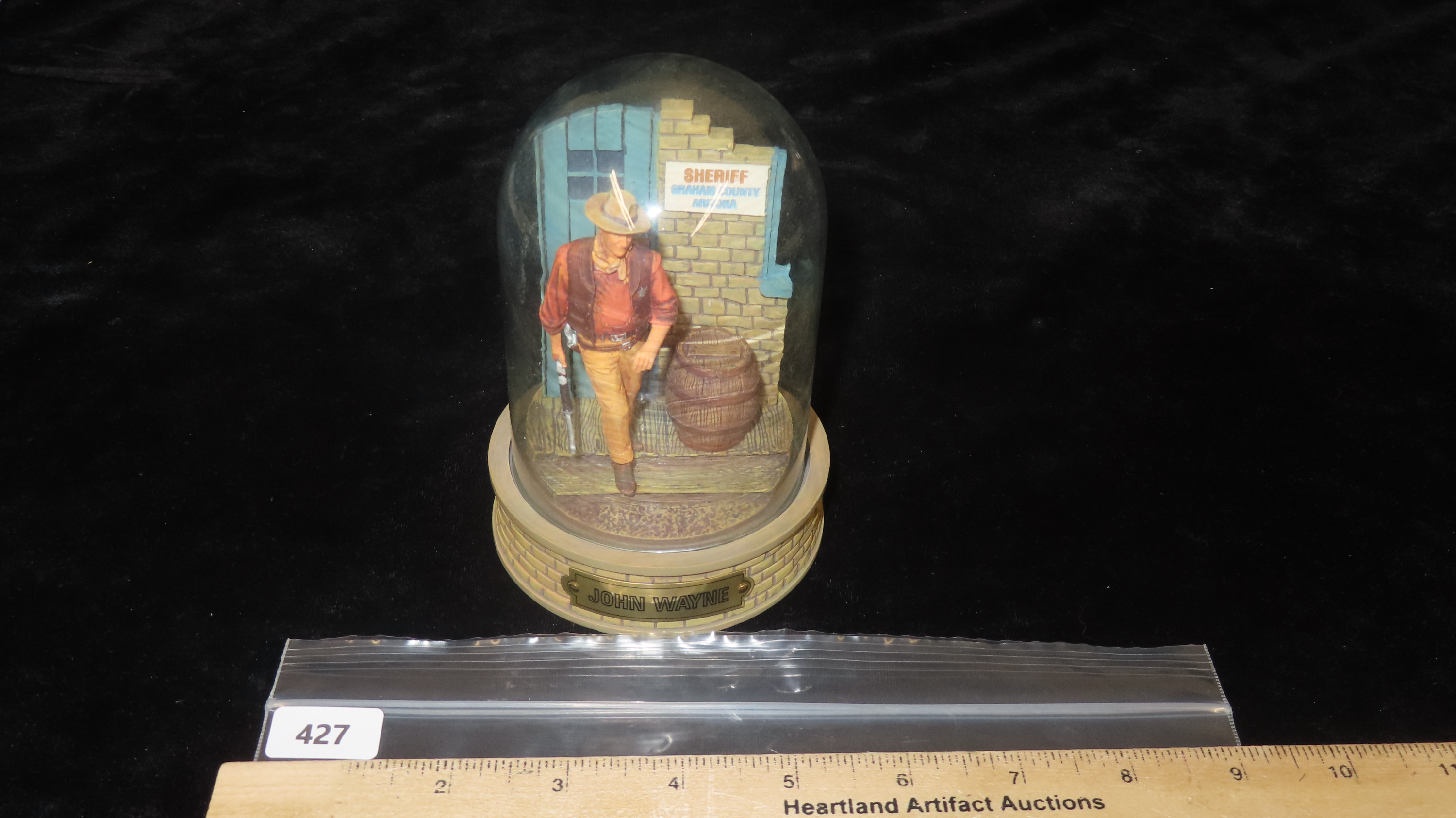 5 1/4″ Tall John Wayne Hand-painted Scultpure with Glass Dome, Limited Edition, Sculpt No. WWV3363