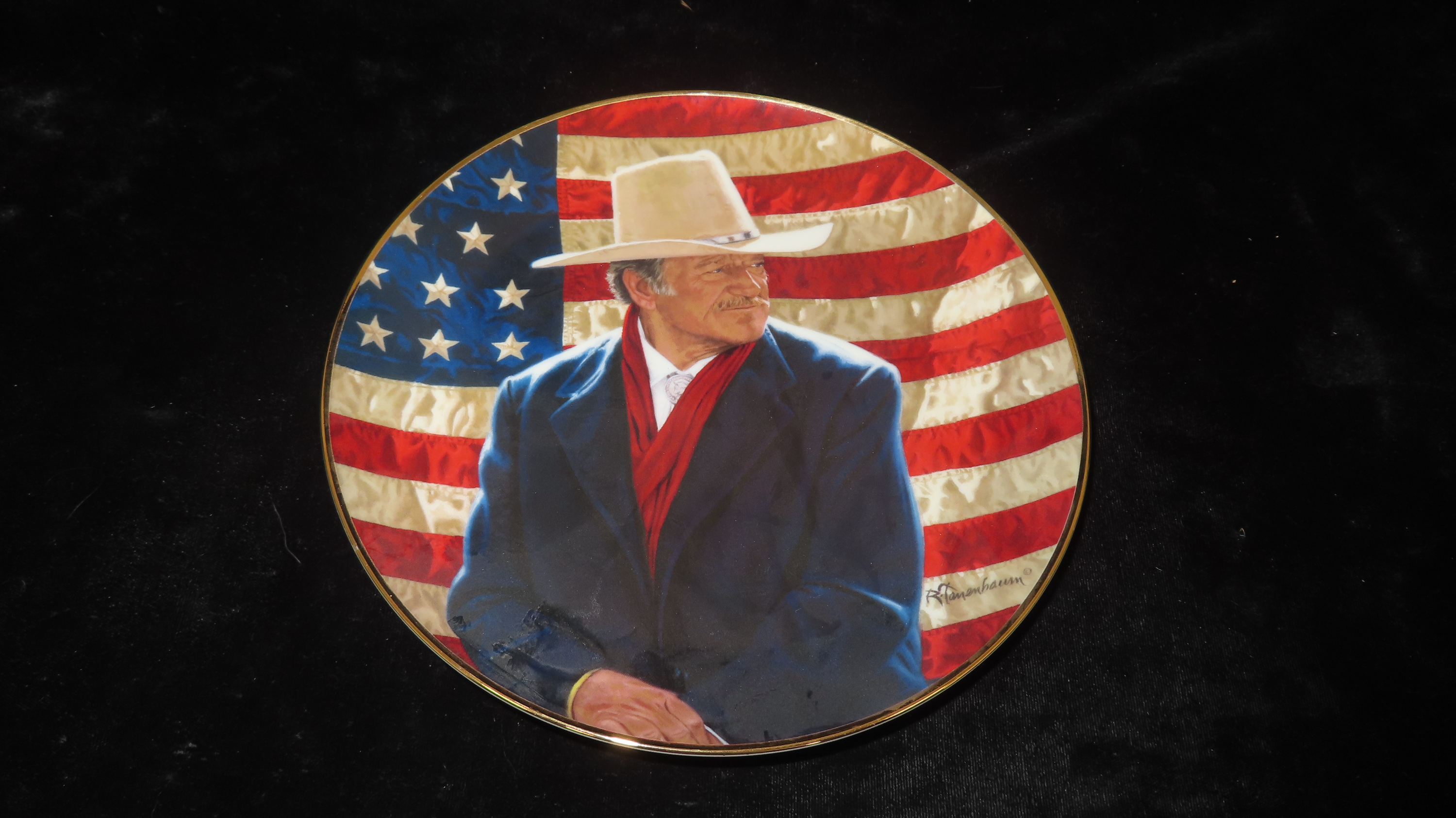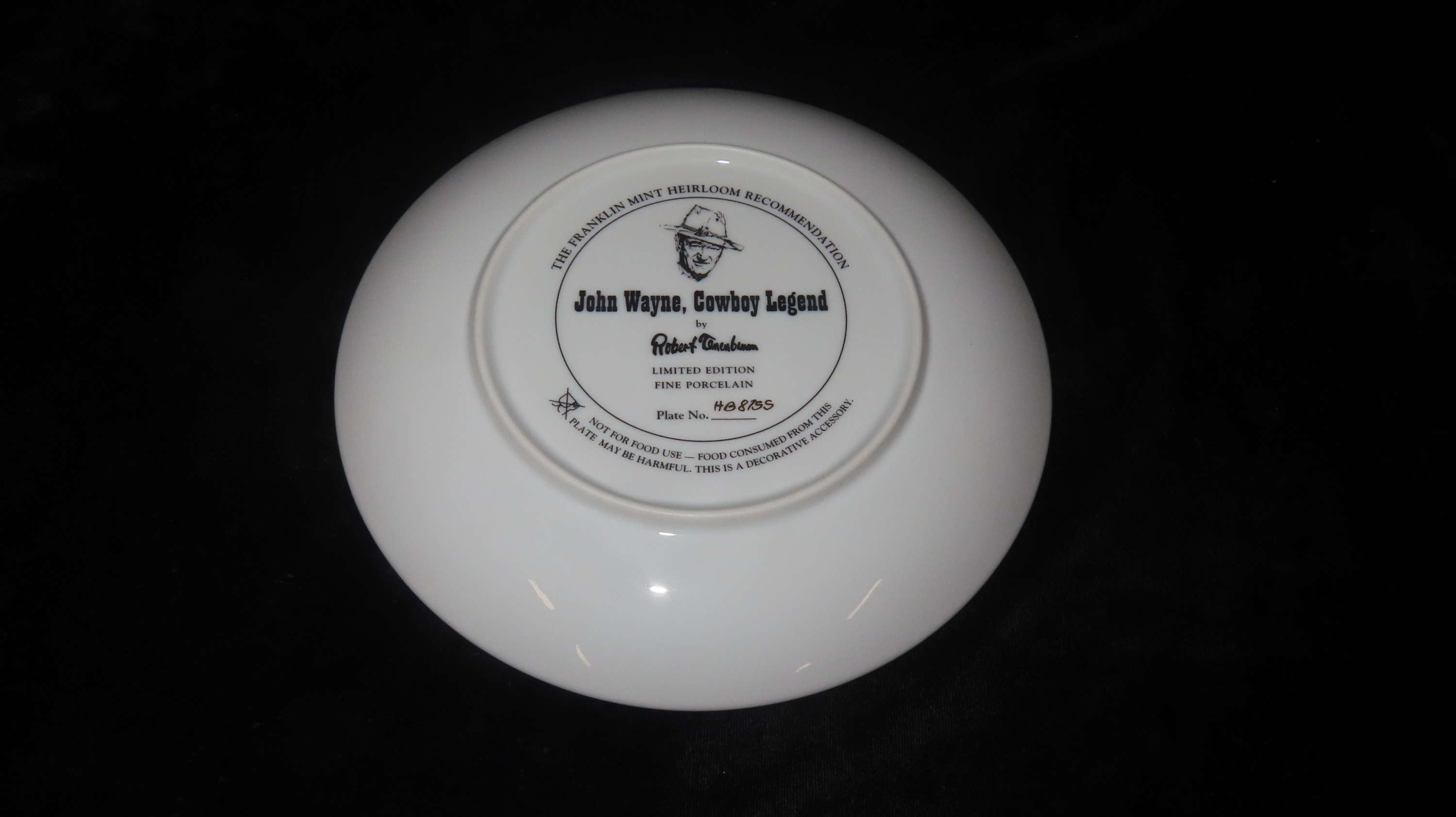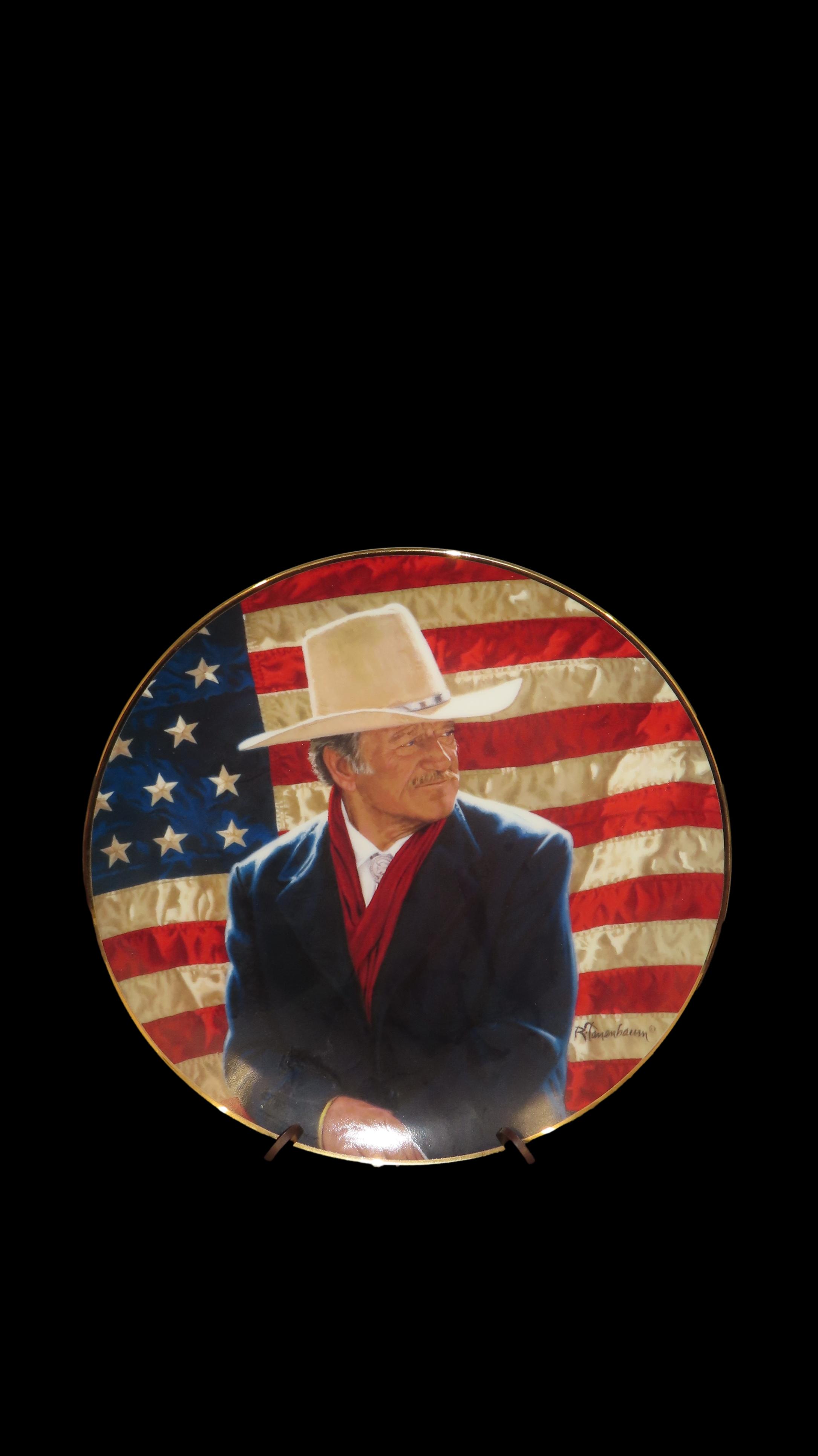 8 1/4″ John Wayne Heirloom Collector Plate by Robert Tanenbaum, Cowboy Legend, The Franklin Mint COA, Crafted of fine porcelain and bordered in 24 karat gold