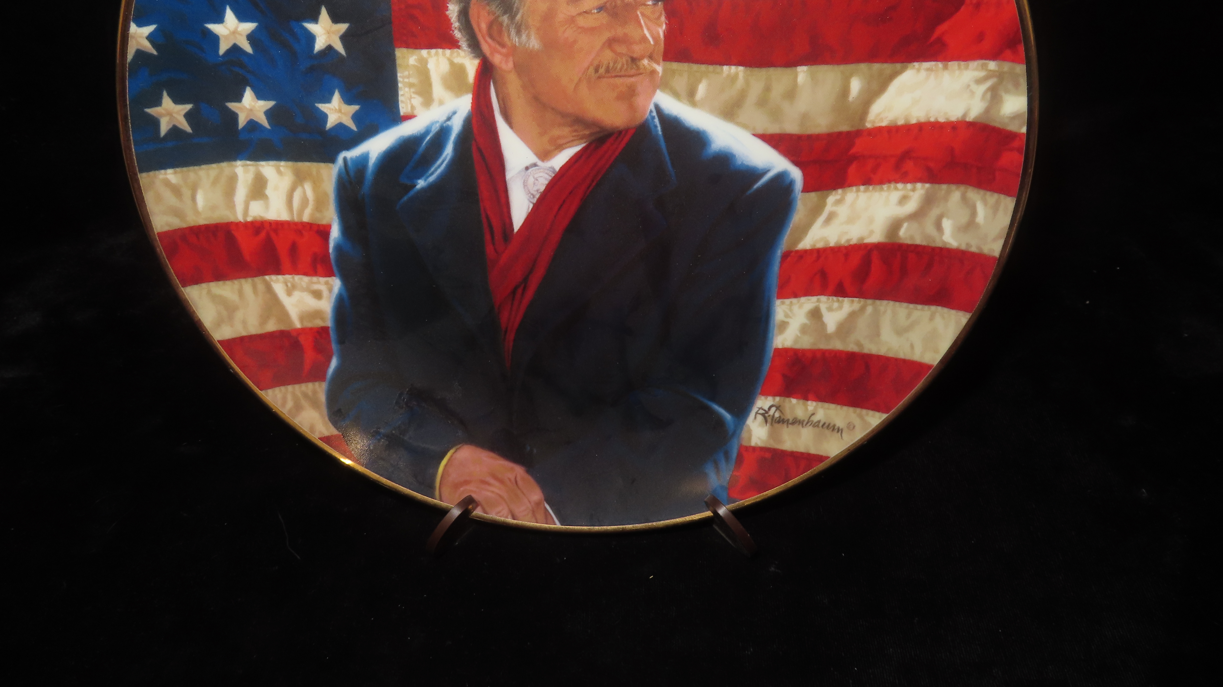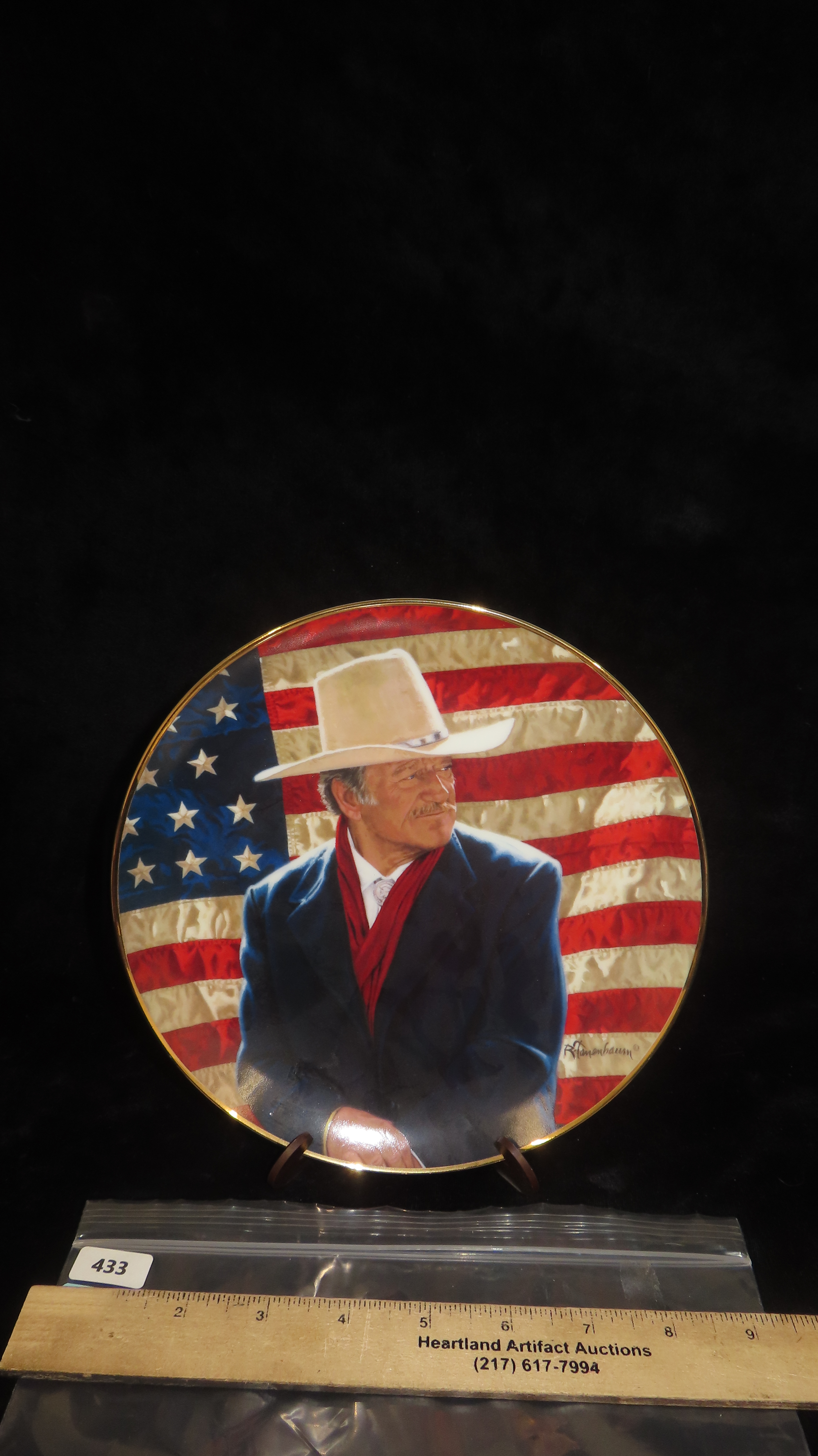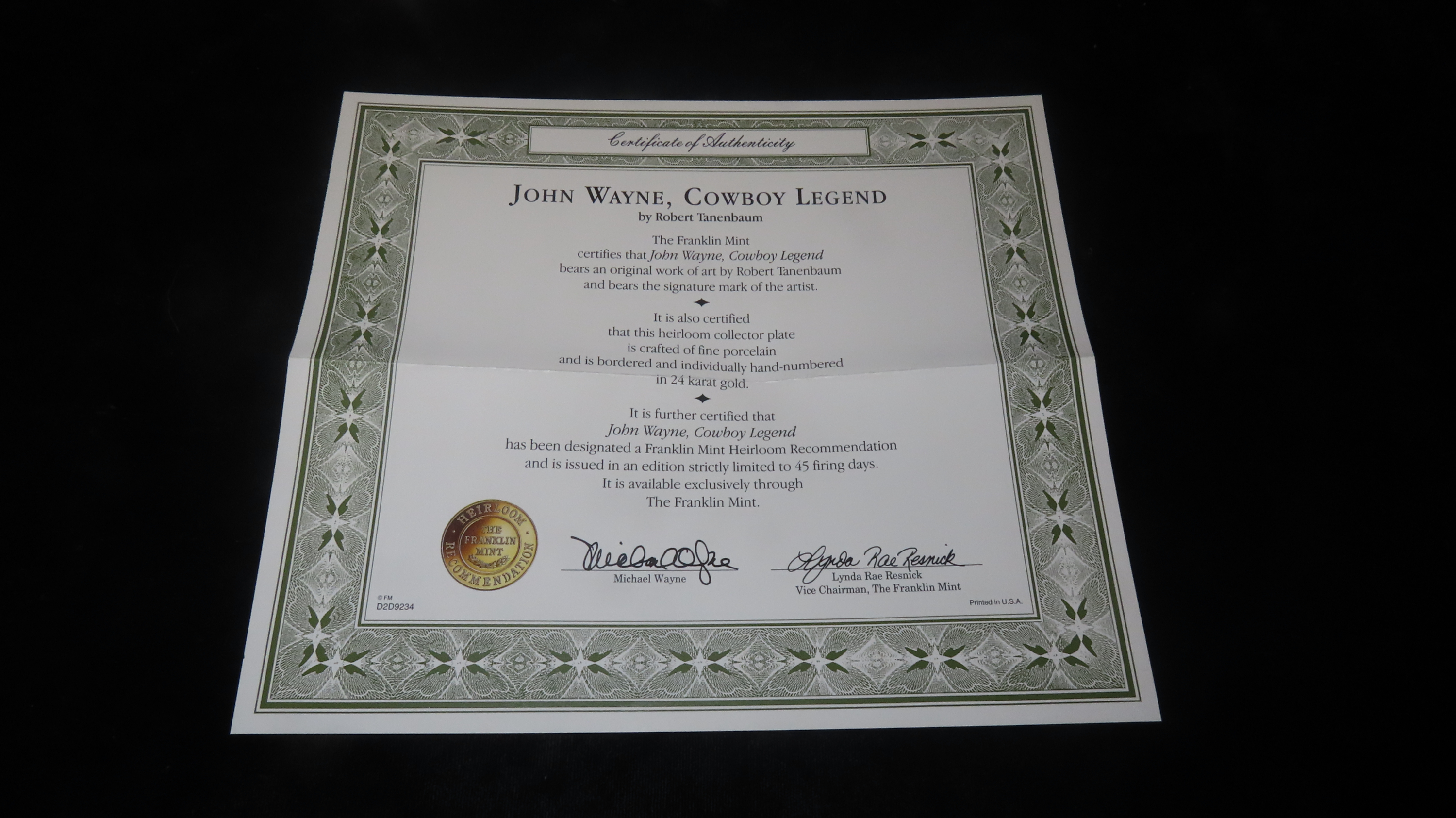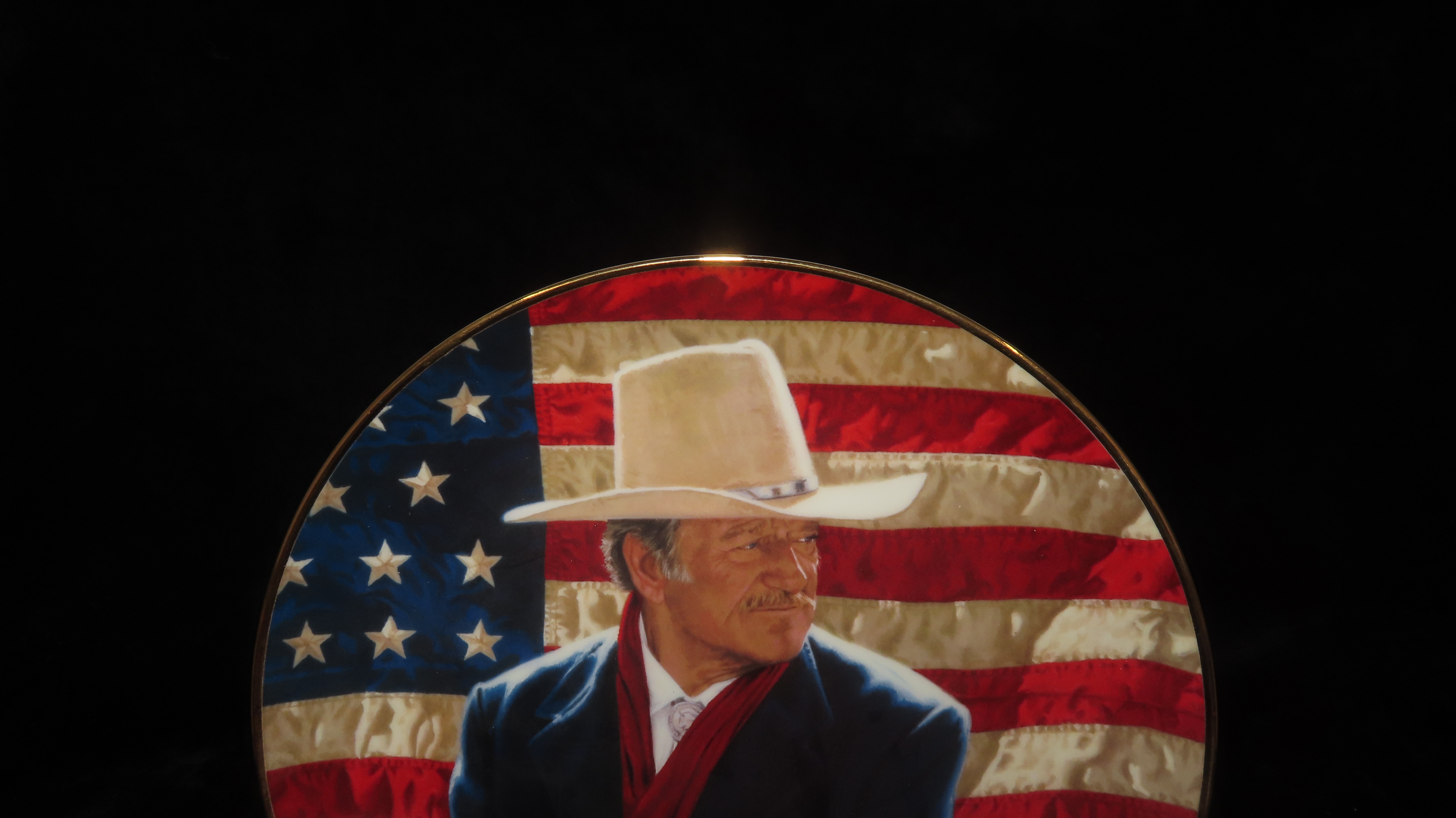 8 1/4″ John Wayne Heirloom Collector Plate by Robert Tanenbaum, Cowboy Legend, The Franklin Mint COA, Crafted of fine porcelain and bordered in 24 karat gold