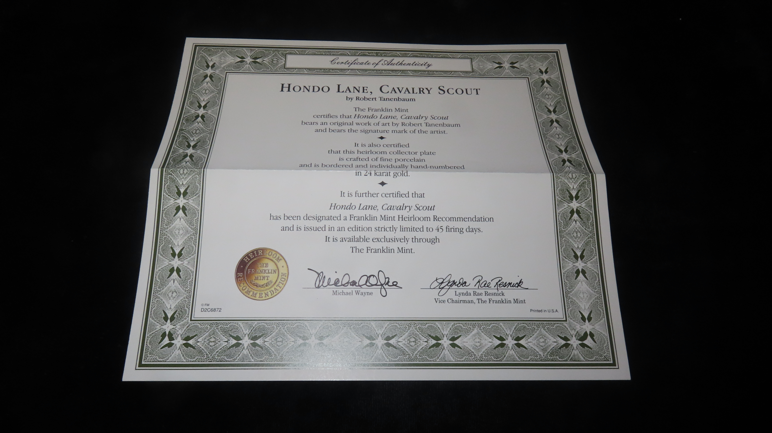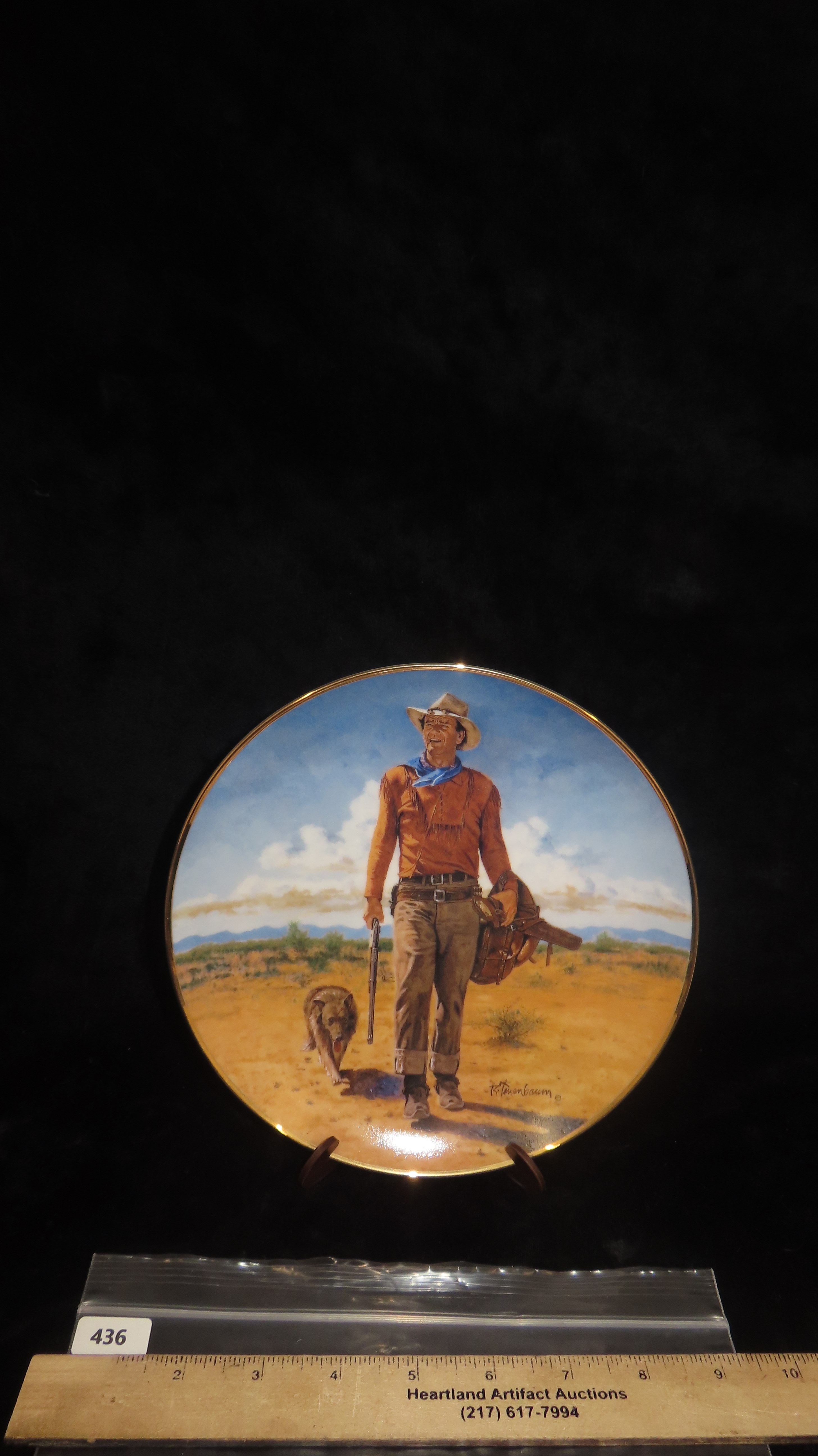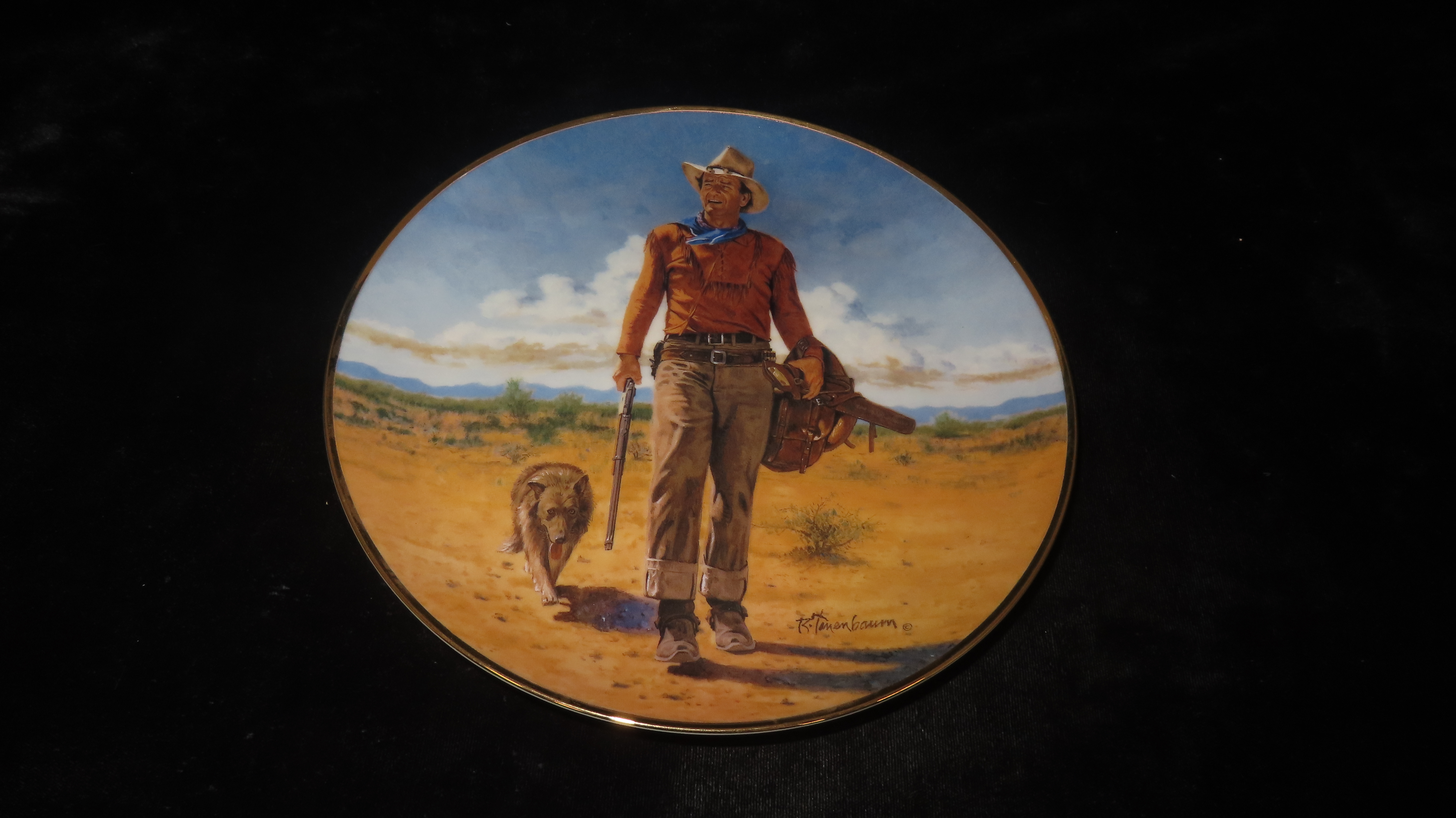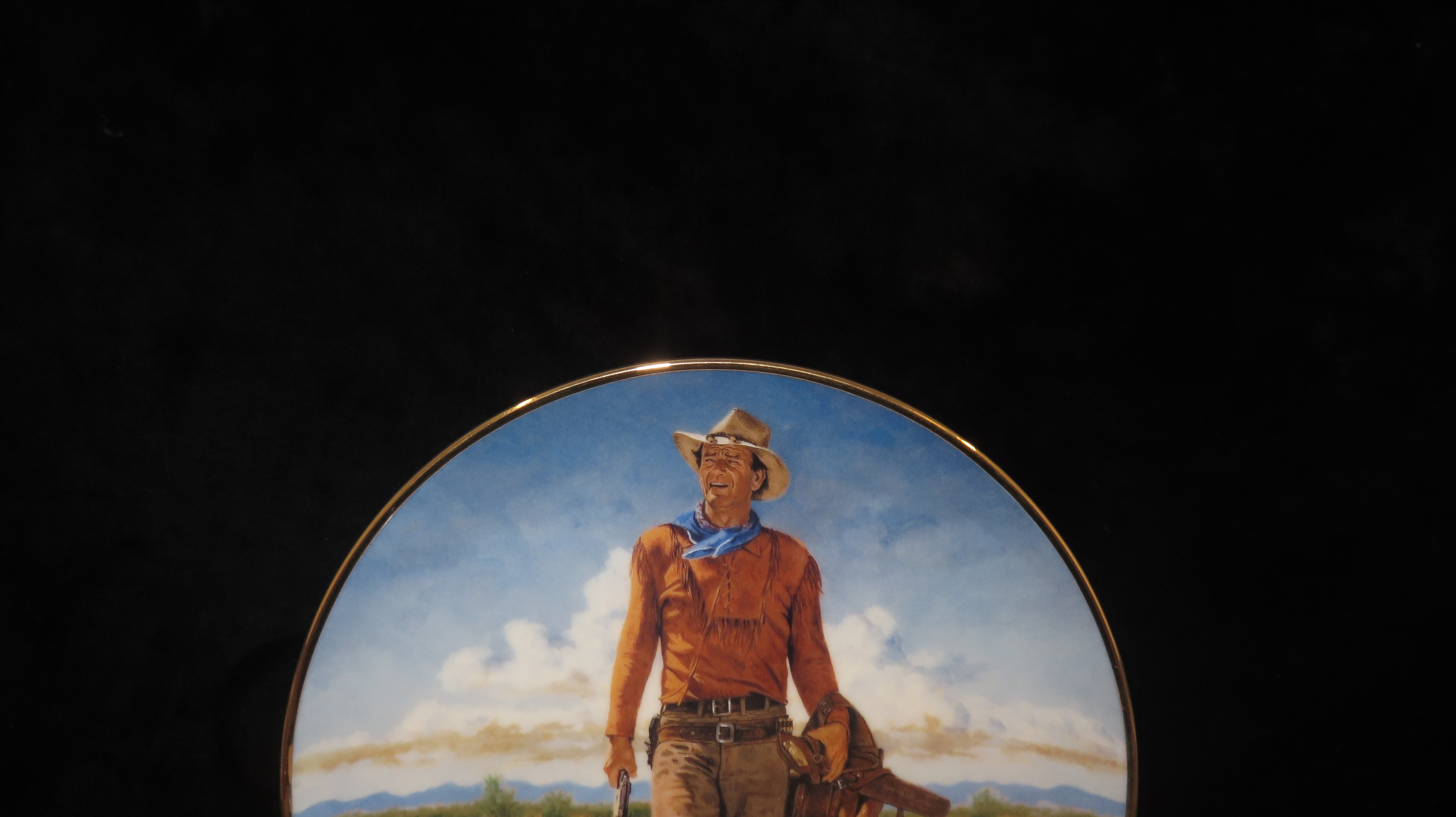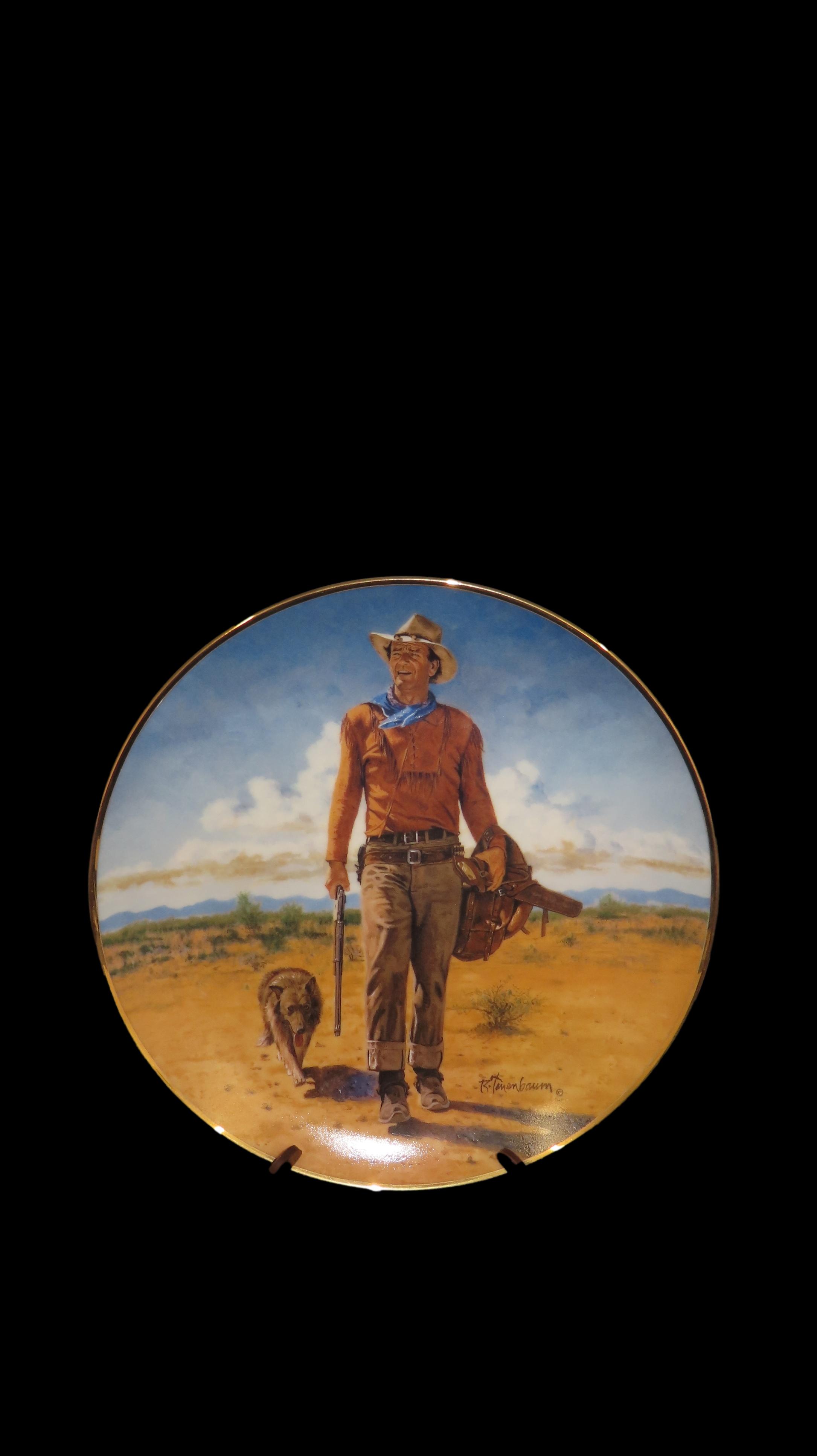 8 1/4″ John Wayne Heirloom Collector Plate by Robert Tanenbaum, Hondo Lane, Cavalry Scout, The Franklin Mint COA, Crafted of fine porcelain and bordered in 24 karat gold