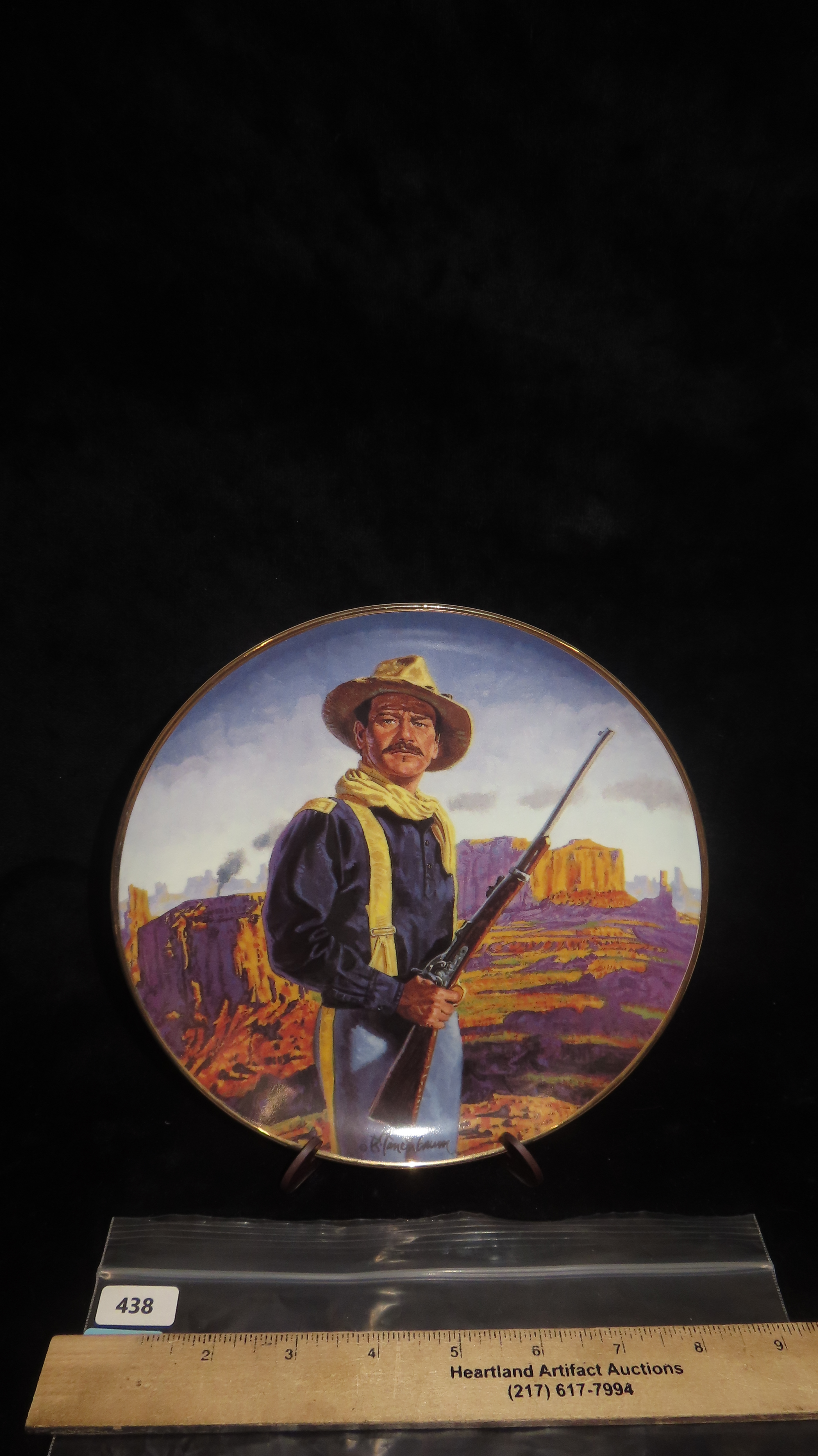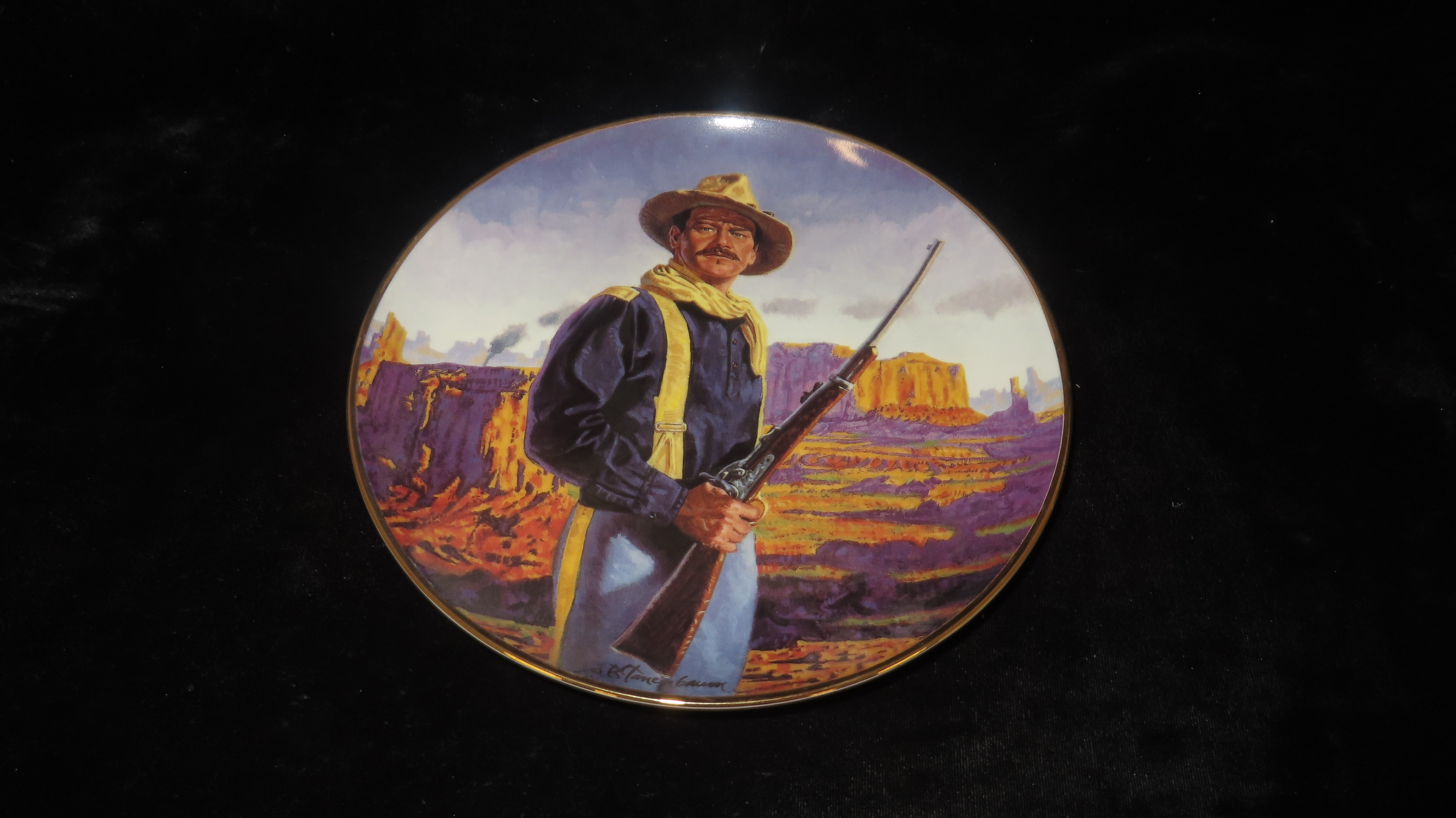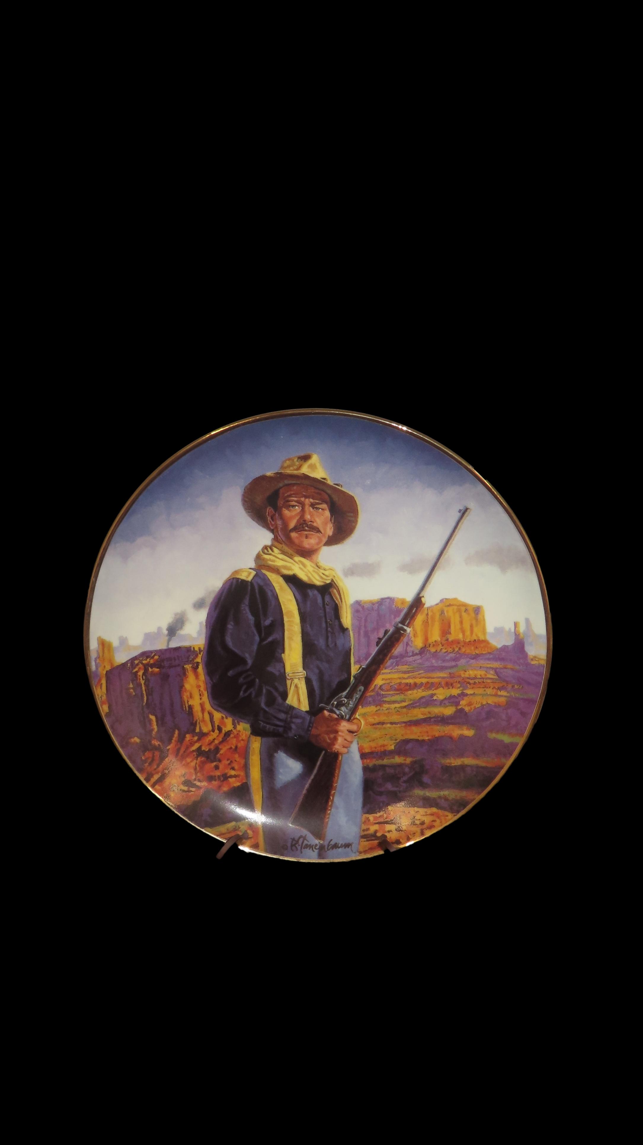 8 1/4″ John Wayne Heirloom Collector Plate by Robert Tanenbaum, Hero of the West, The Franklin Mint COA, Crafted of fine porcelain and bordered in 24 karat gold