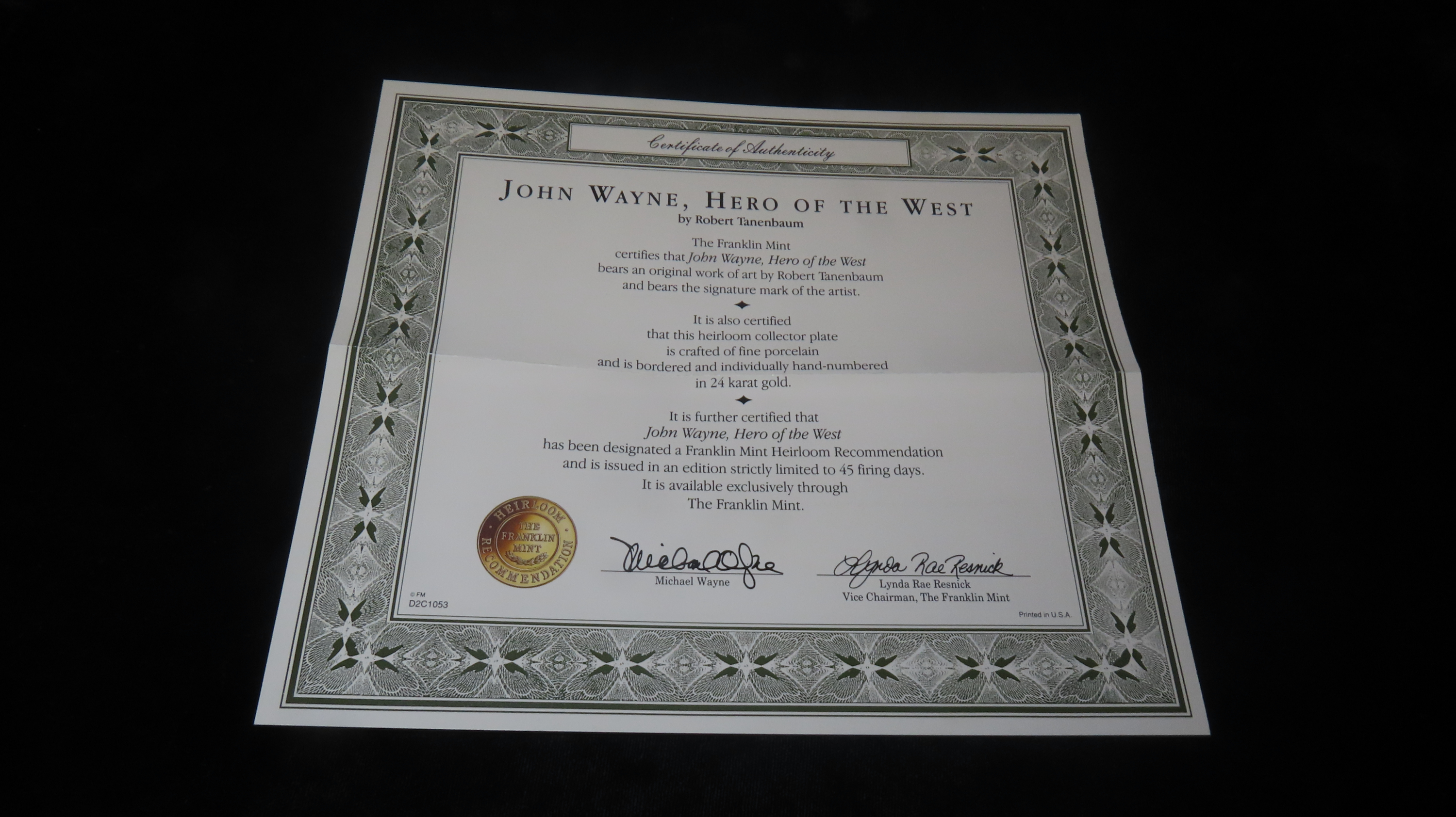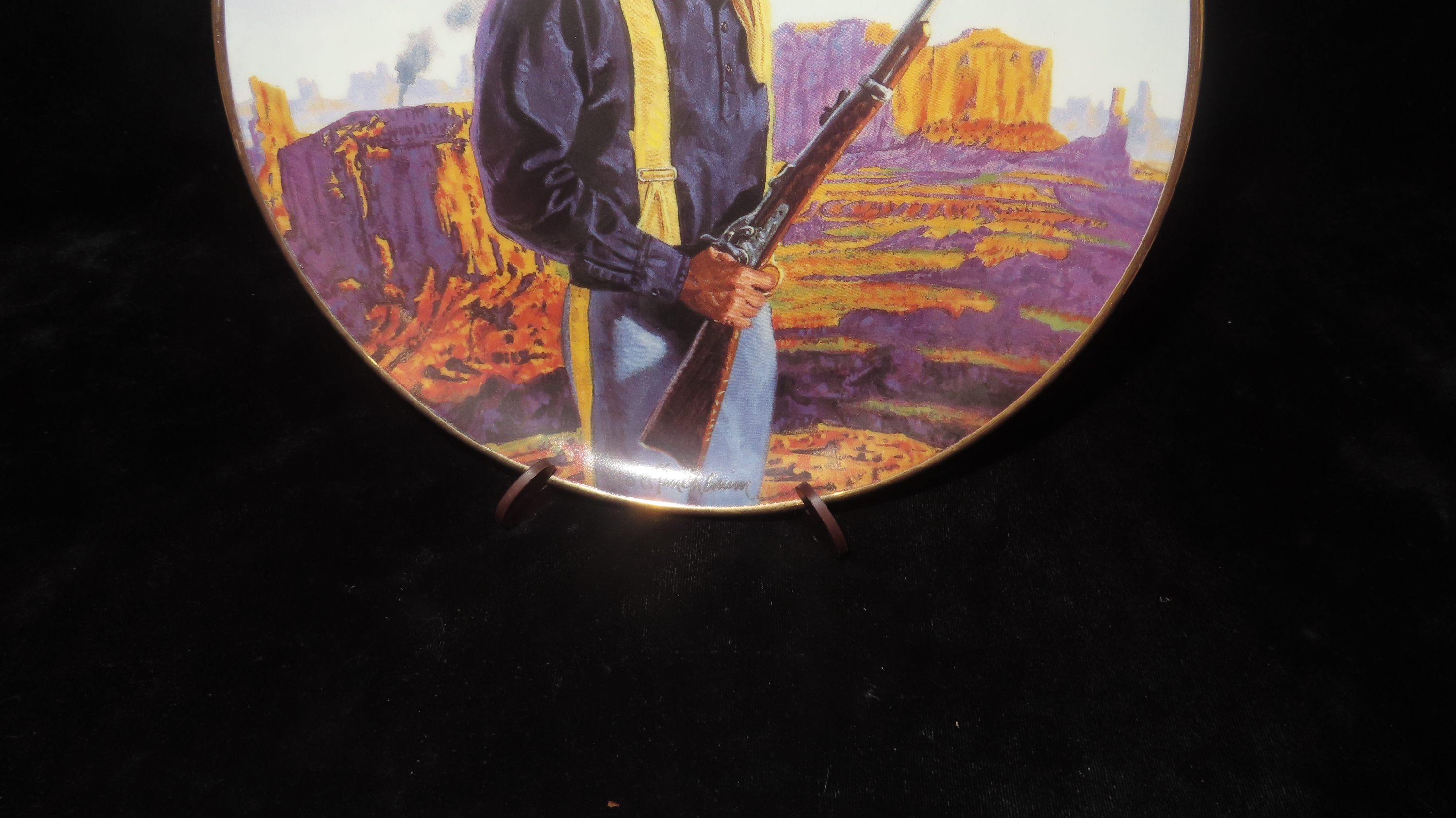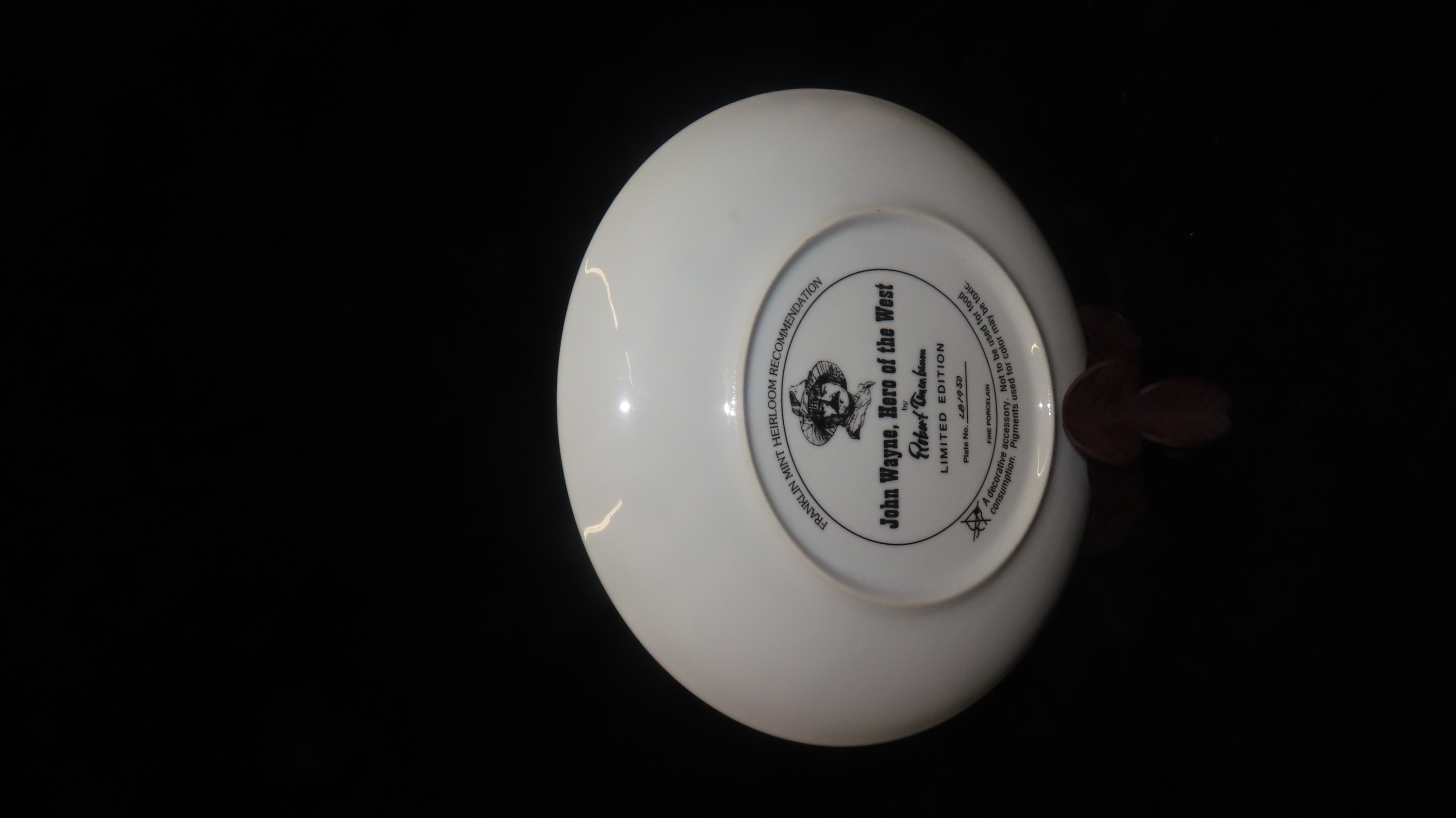 8 1/4″ John Wayne Heirloom Collector Plate by Robert Tanenbaum, Hero of the West, The Franklin Mint COA, Crafted of fine porcelain and bordered in 24 karat gold