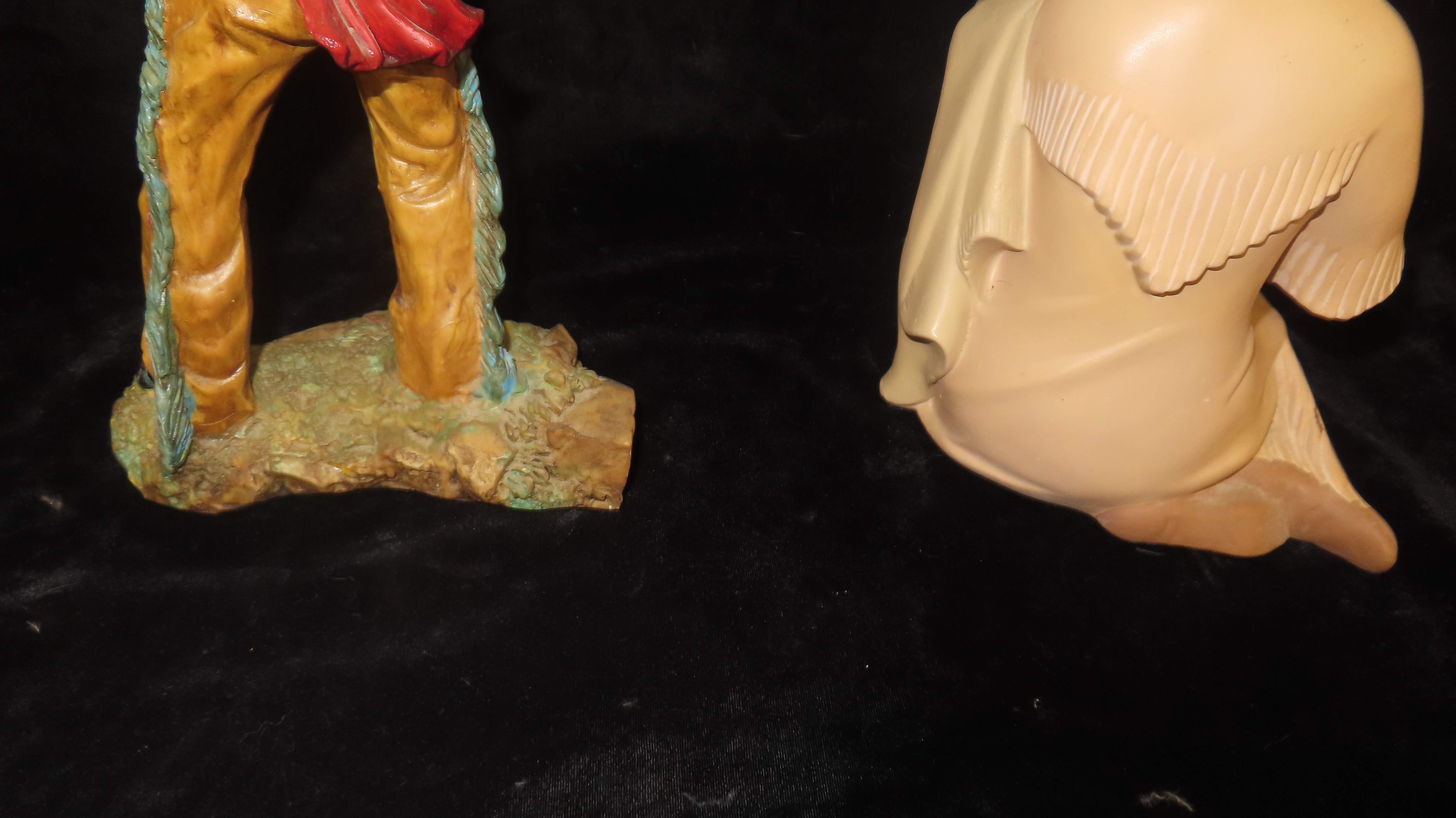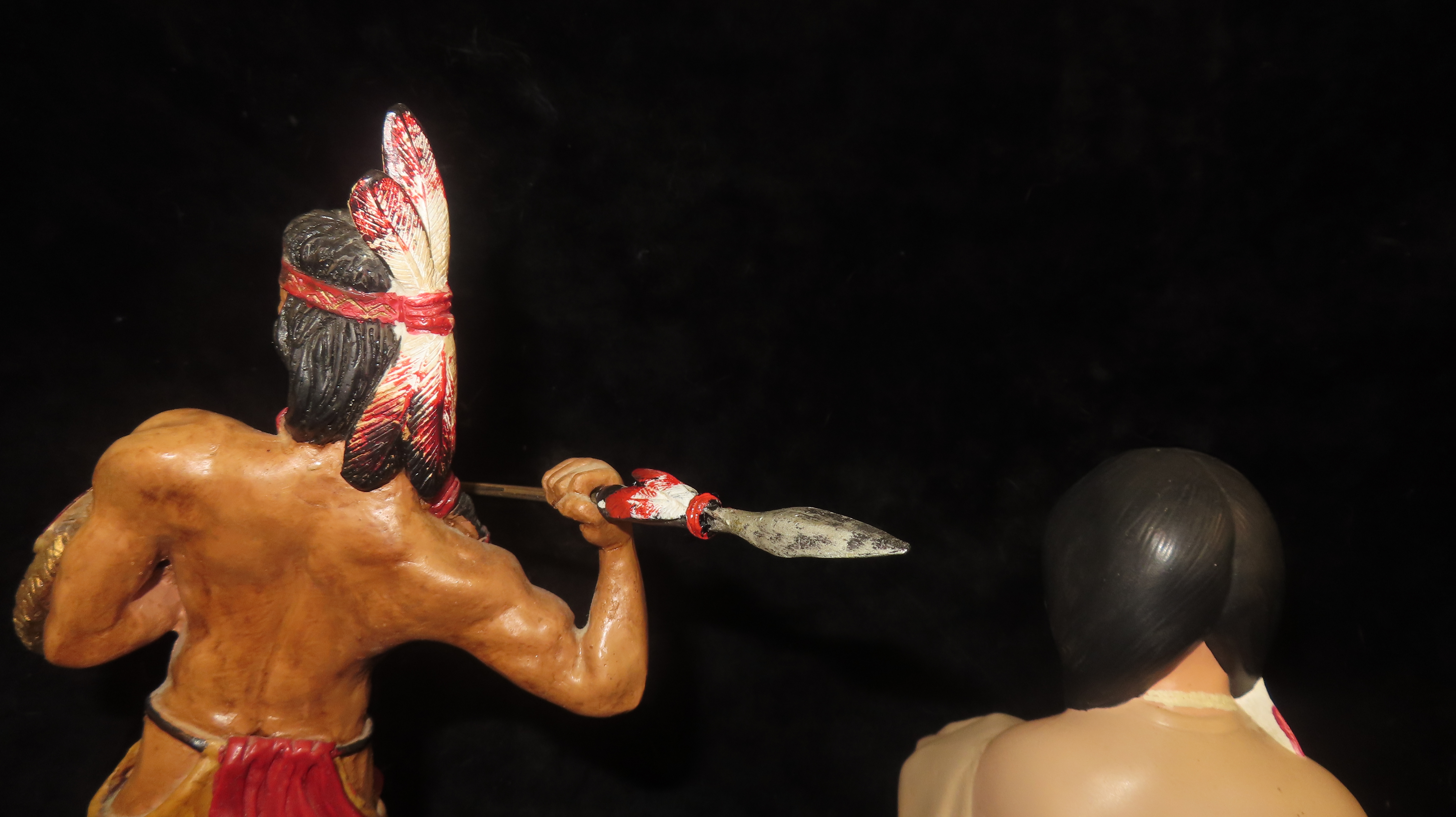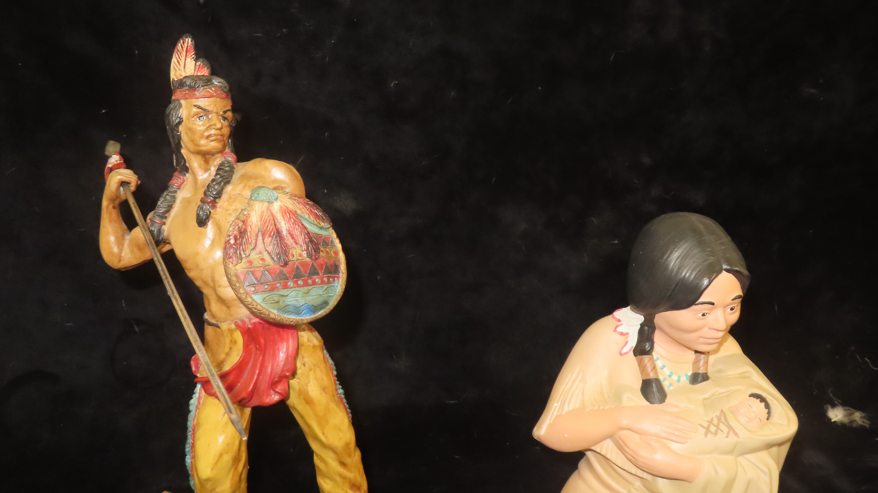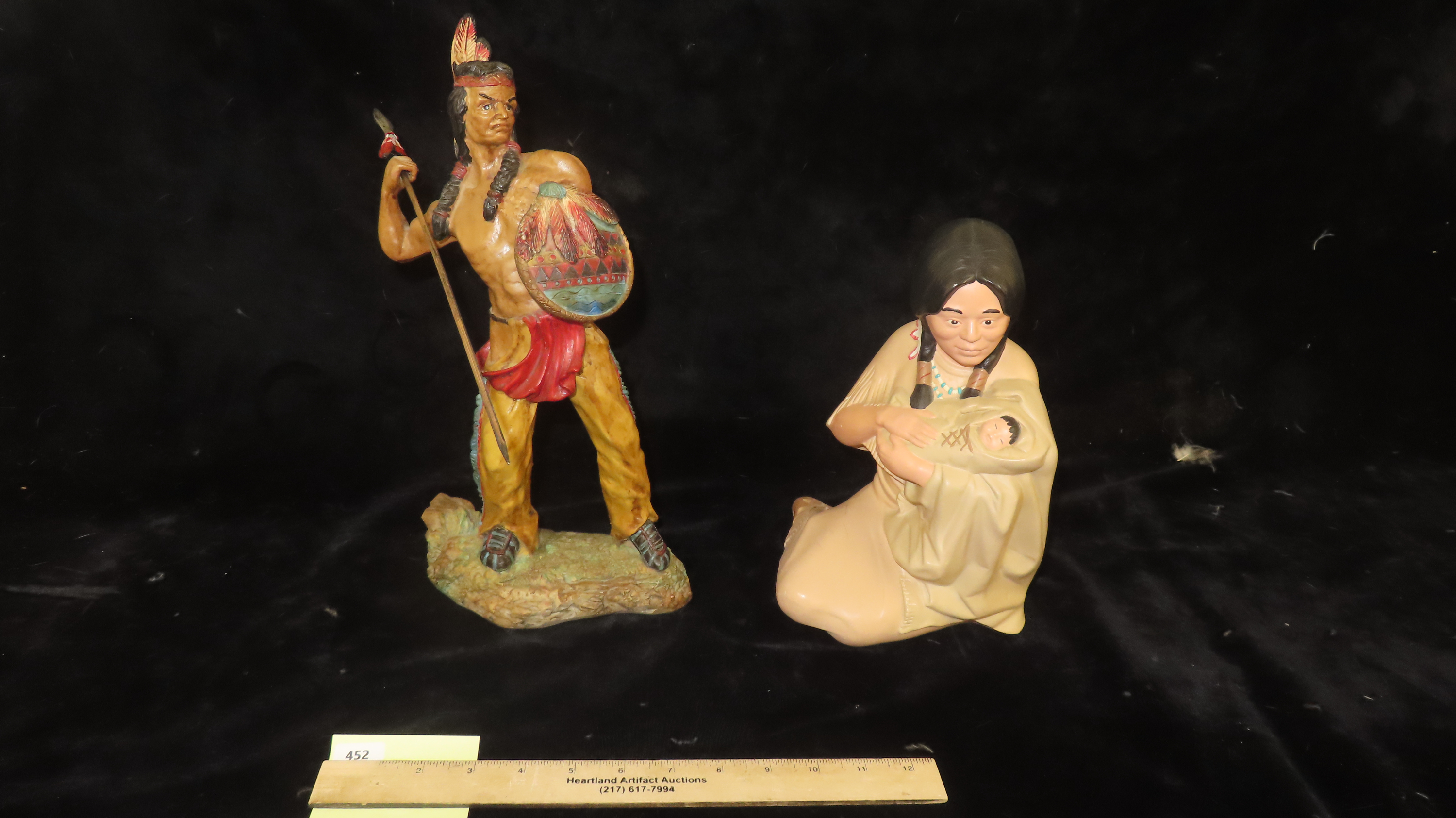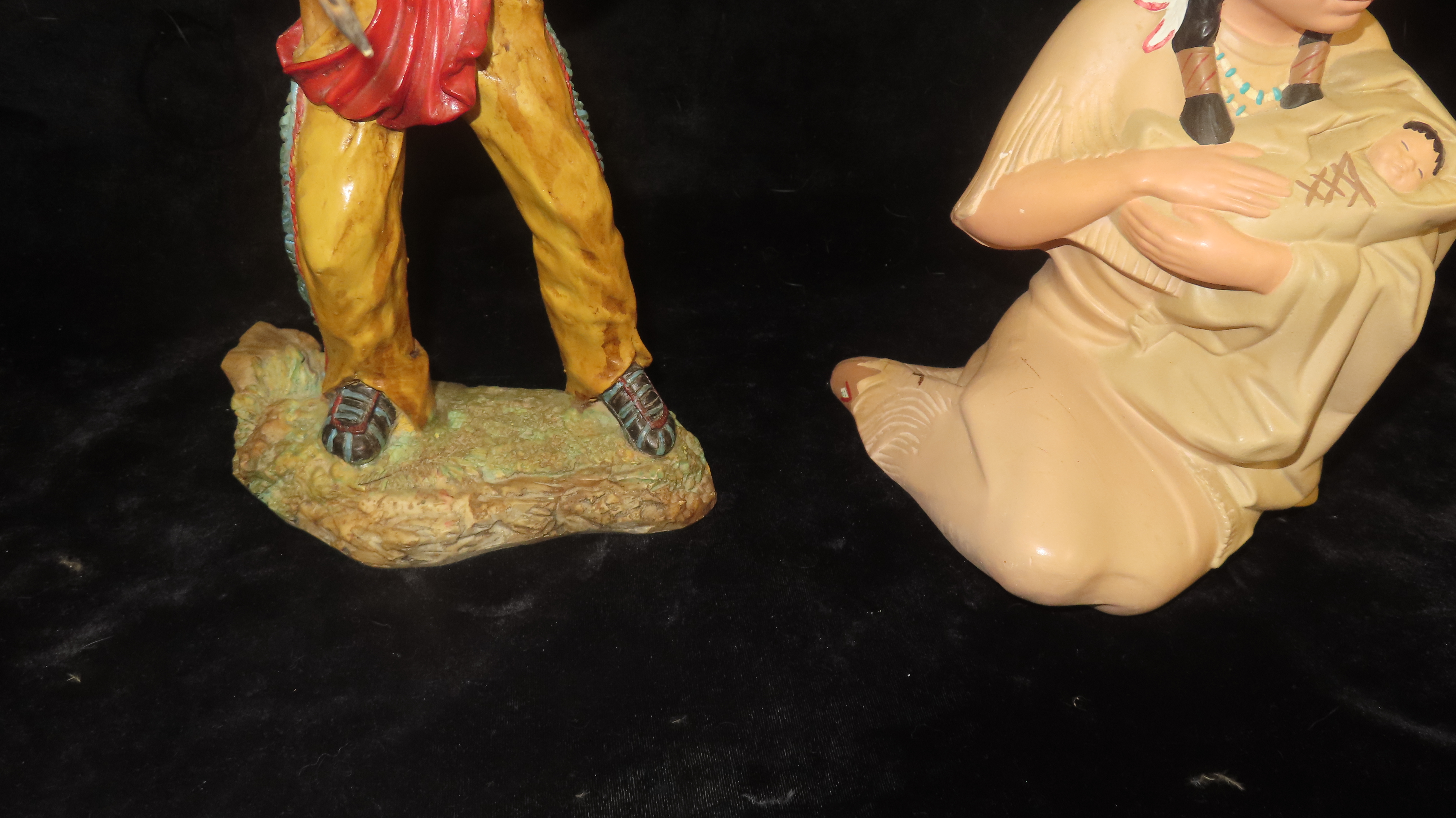 Lot of 2 Native American Display Figuines, Tip of Spear broken and reglued