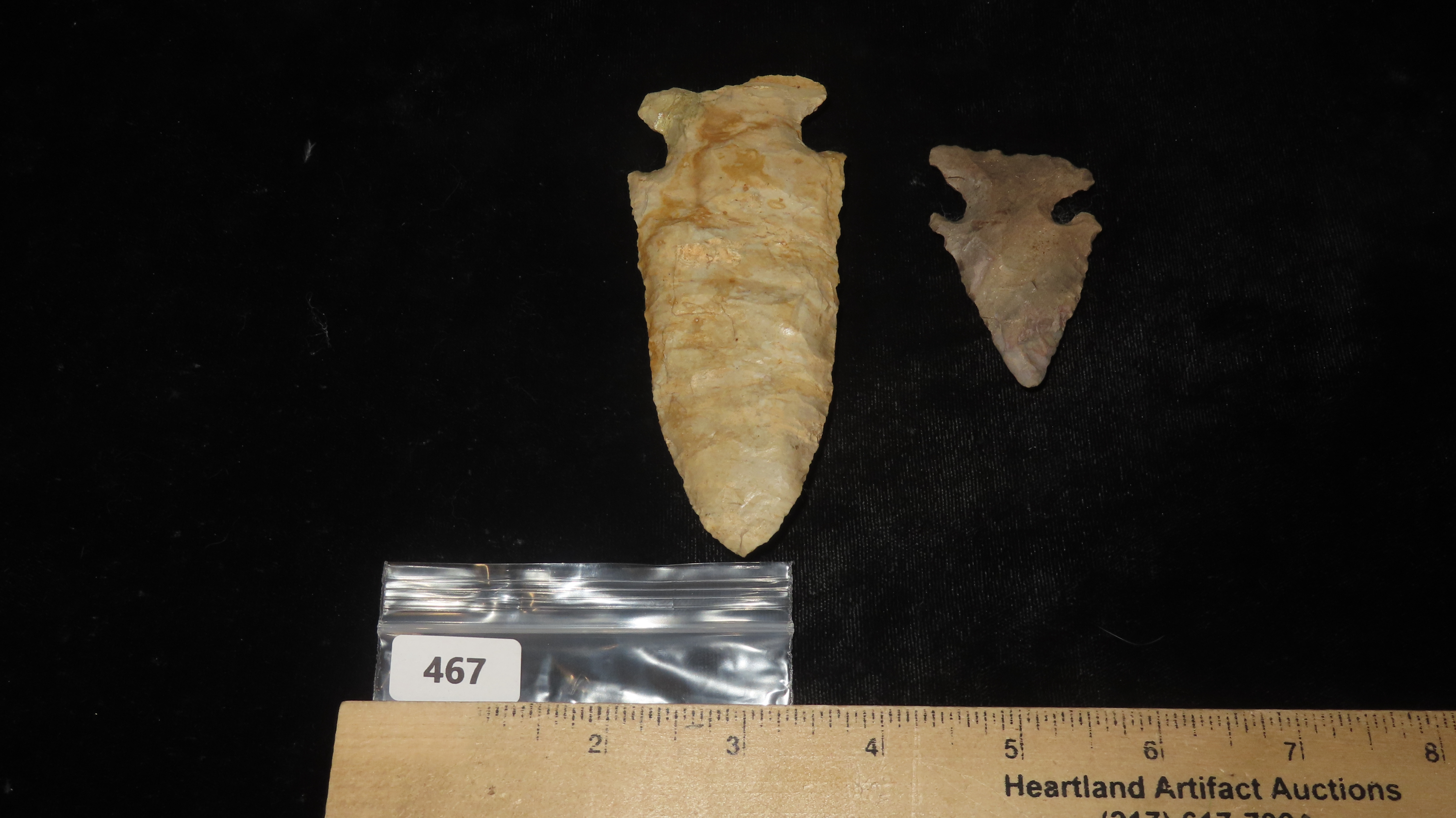 Lot of 2 Arrowheads, Largest 4 1/2″, Archaic points and both have RESTORATION