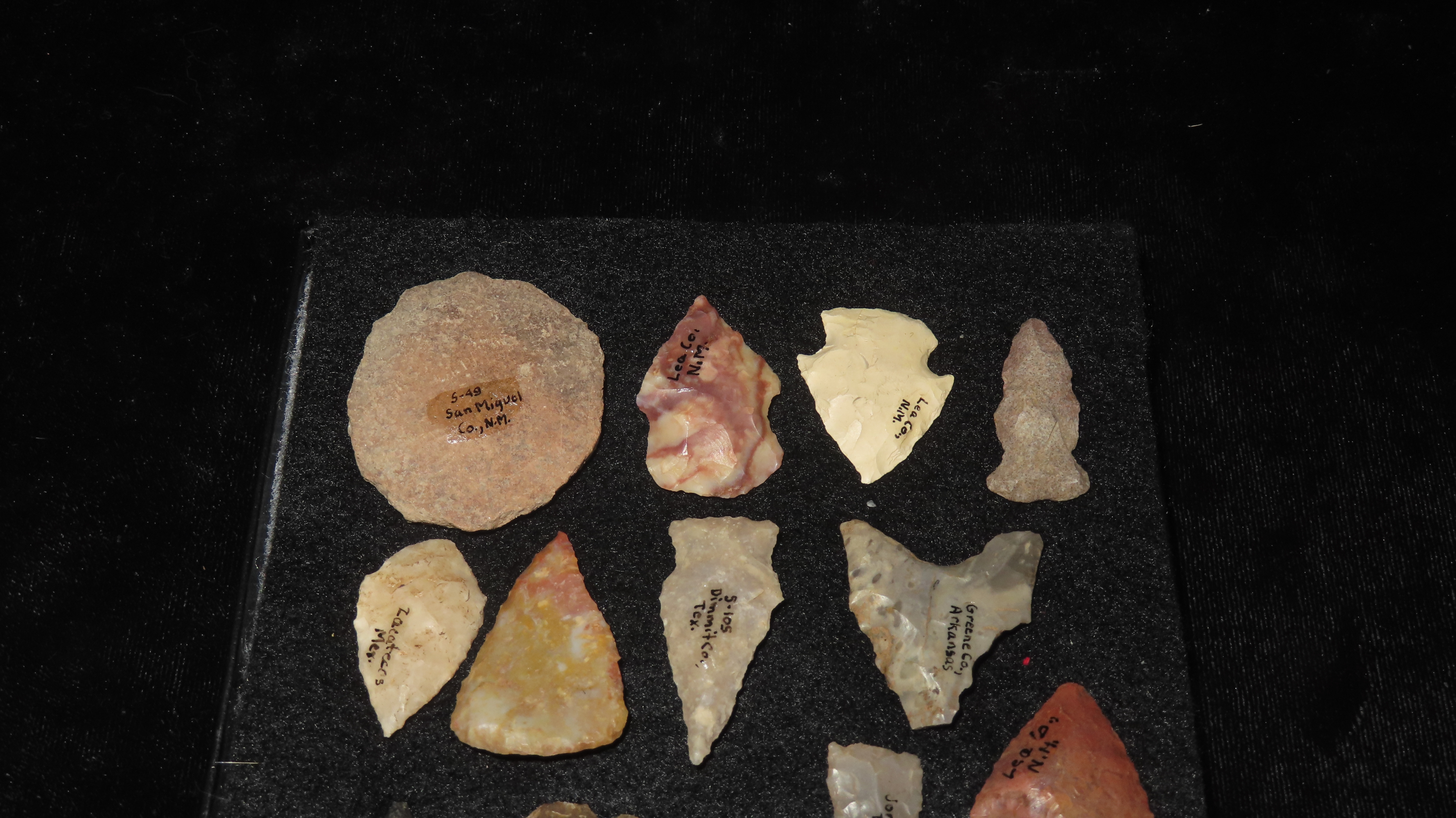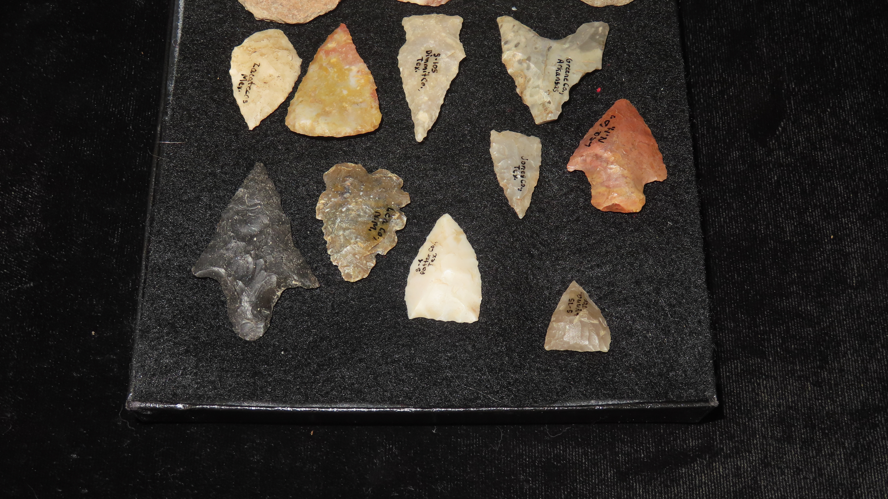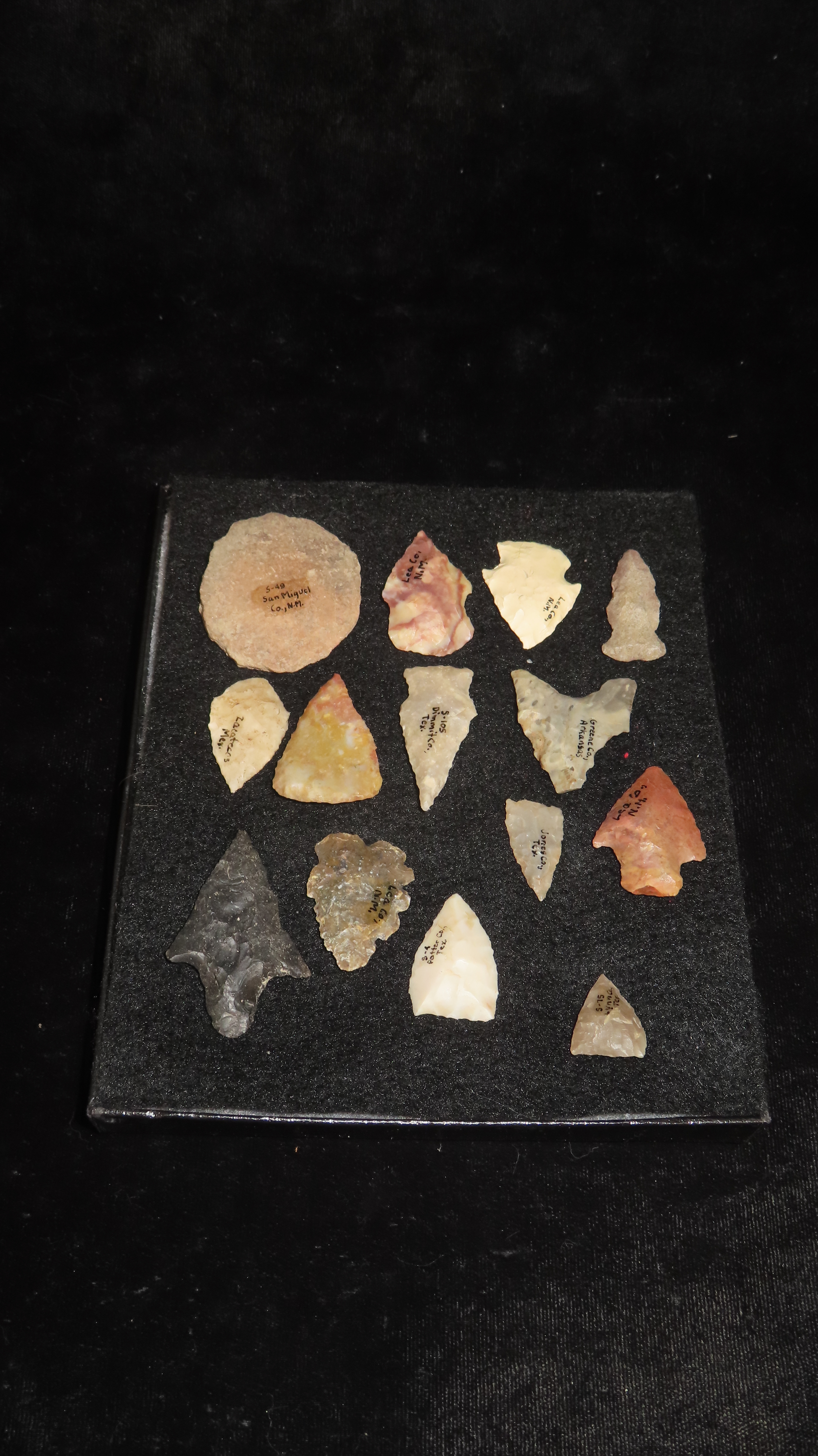 6″ x 5″ Rikers Case Containing Various Archaic Woodland Arrowheads, Found in Butler Co. Ohio, Ex Rocky Moore Collection