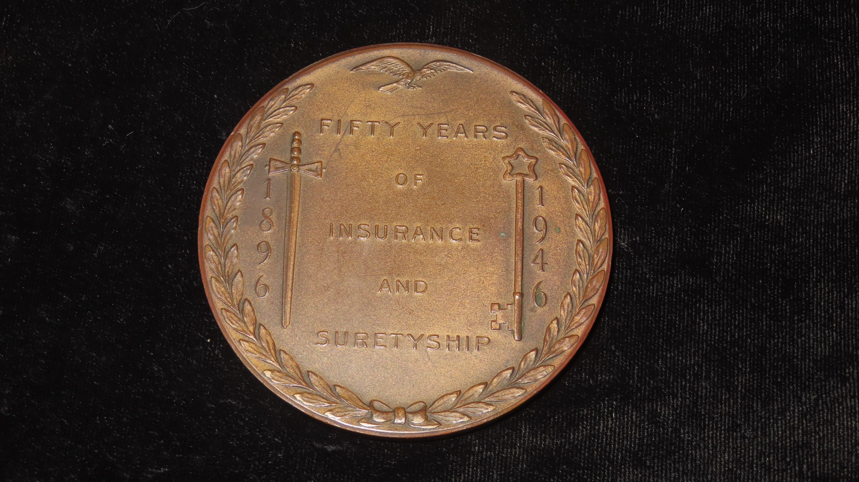 3″ Table Metal, U.S.F. & G. Baltimore, MD, United States Fidelity and Guarantee Company, 50 Years of Insurance Suretyship