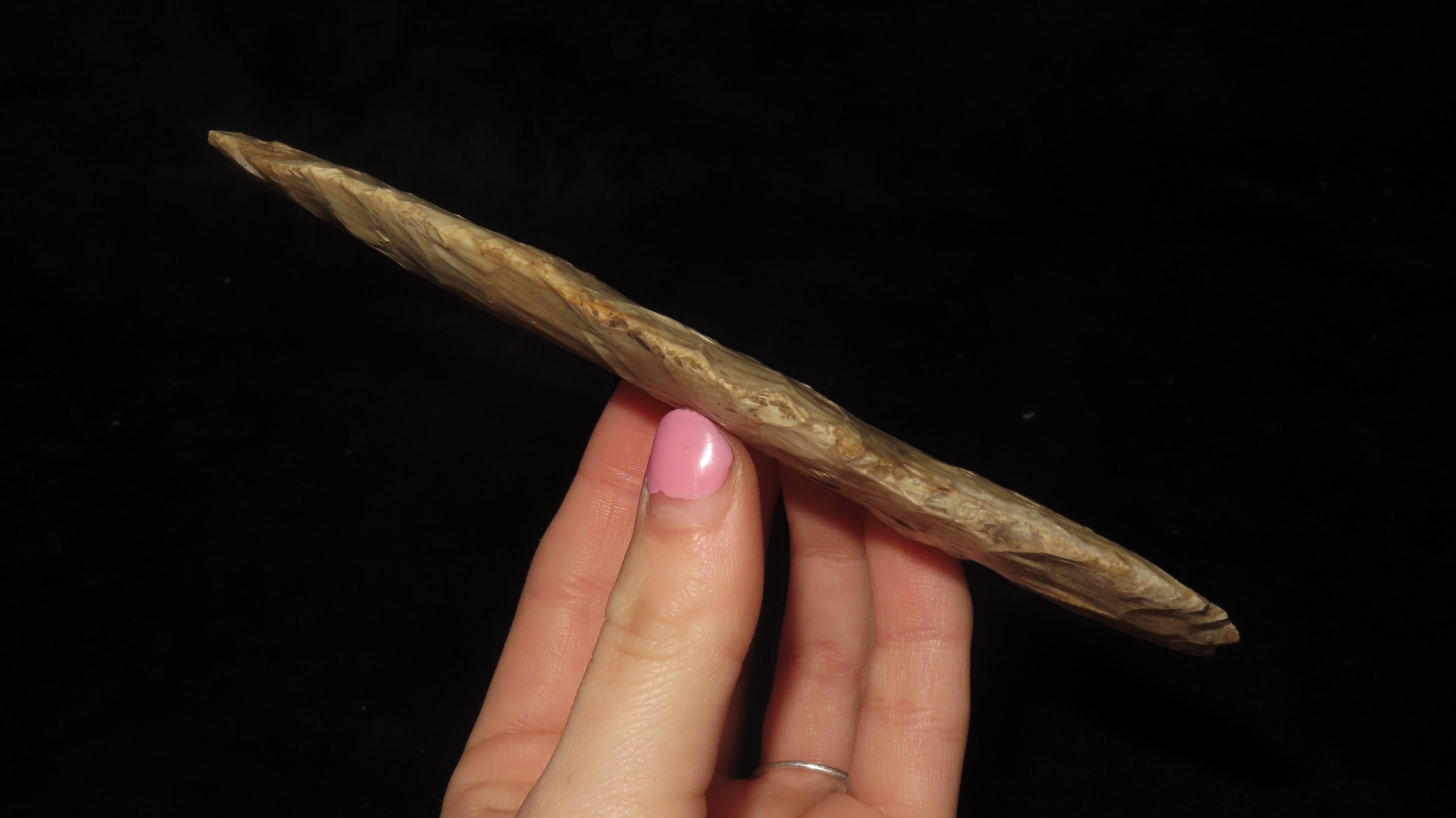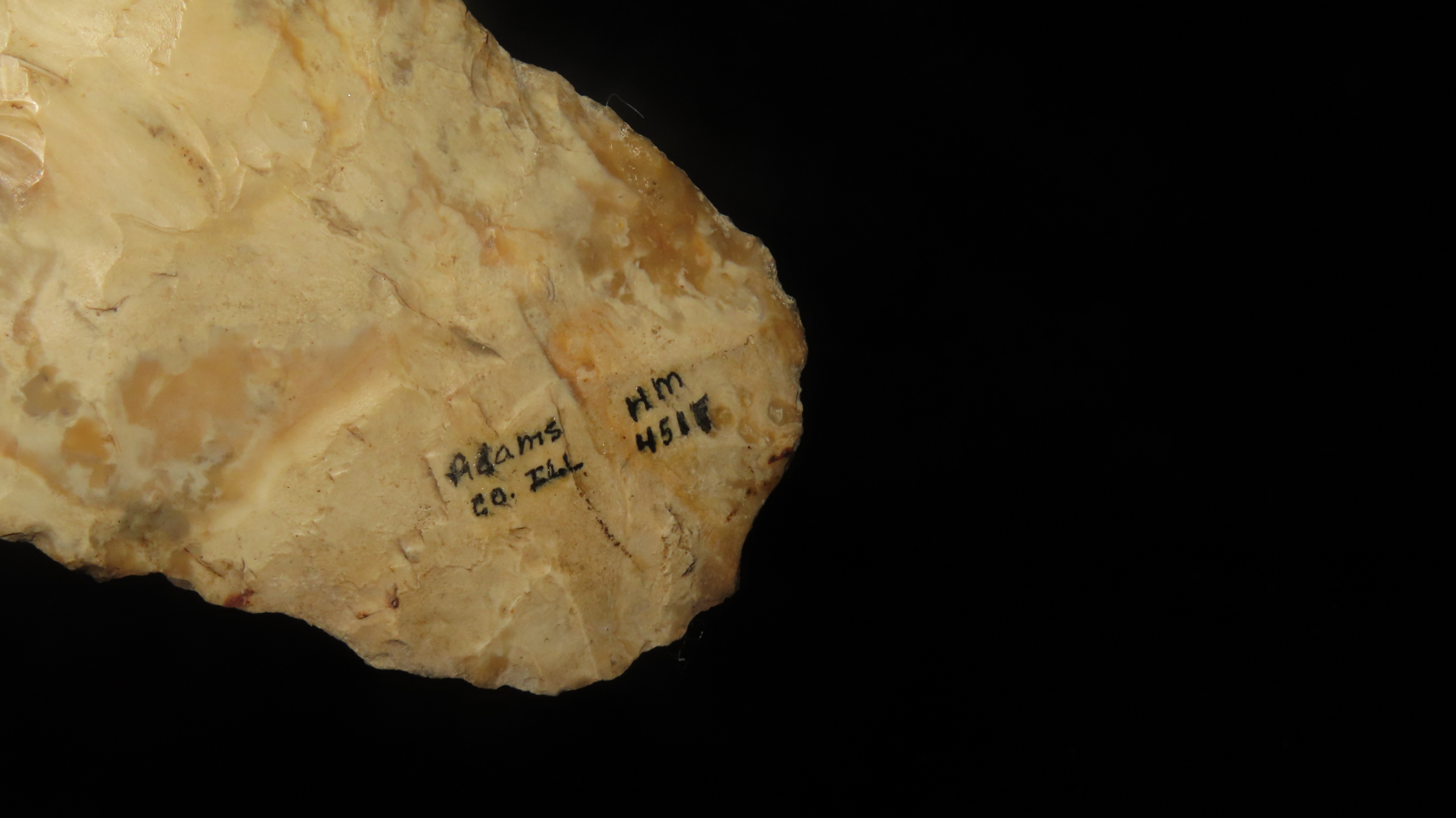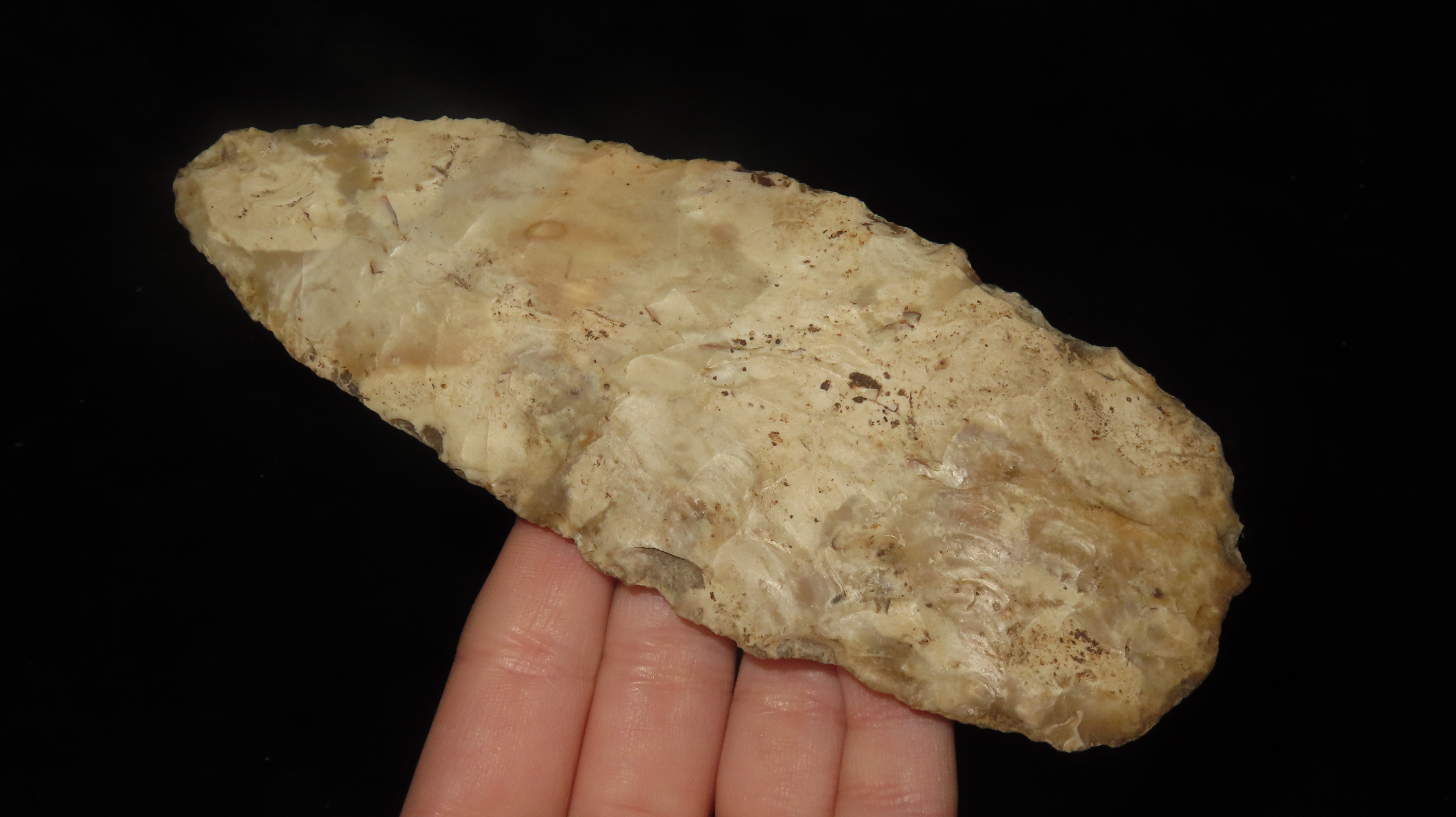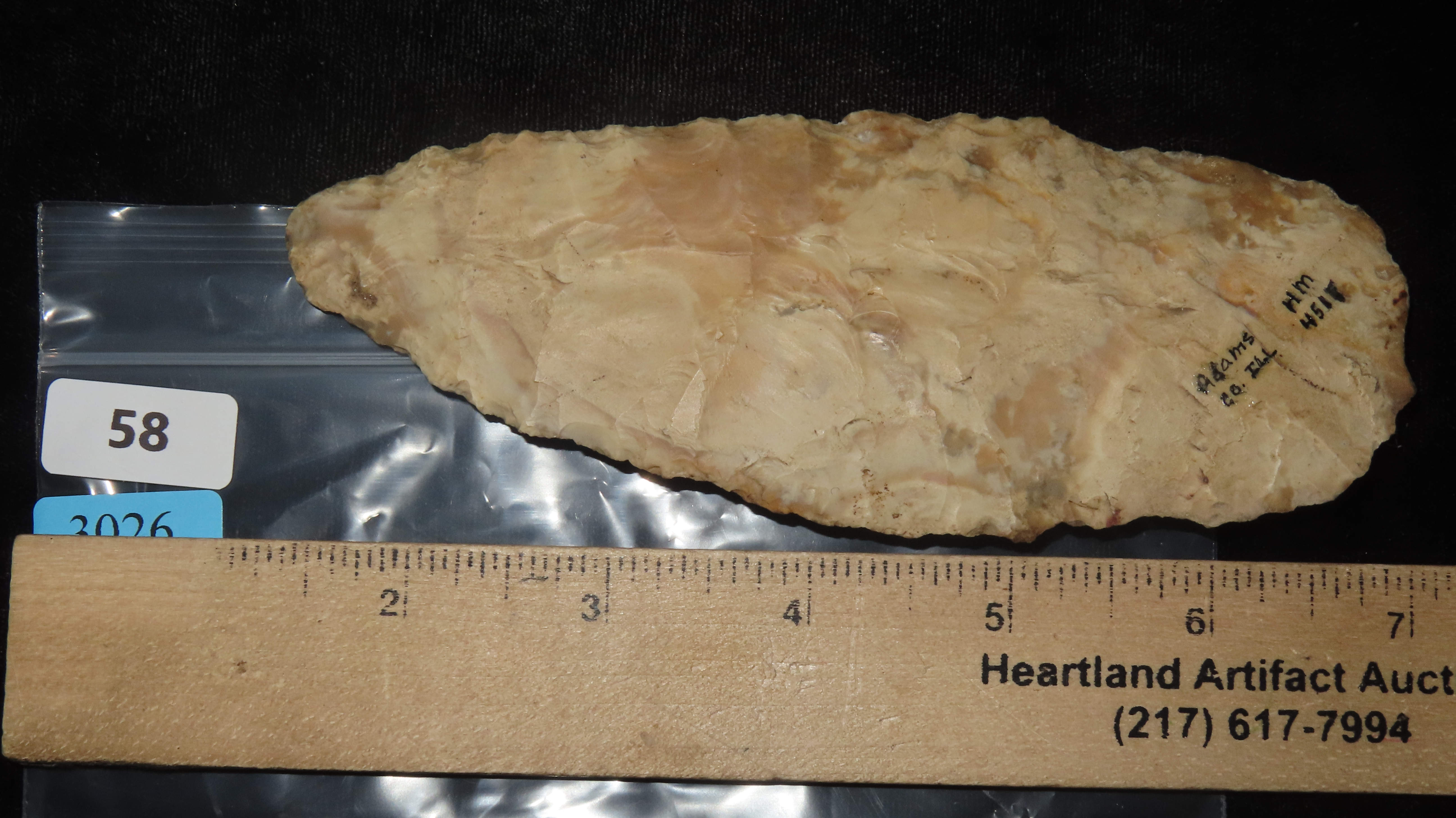 5 5/8″ x 2 1/4″ Knife Blade, Early to Middle Archaic, Found in Adams Co. Illinois by Art Lepper on his farm south of Quincy, Illinois, Right above Mill Creek. Bought from his wife in 1989. Ex. Herb Mangold Collection