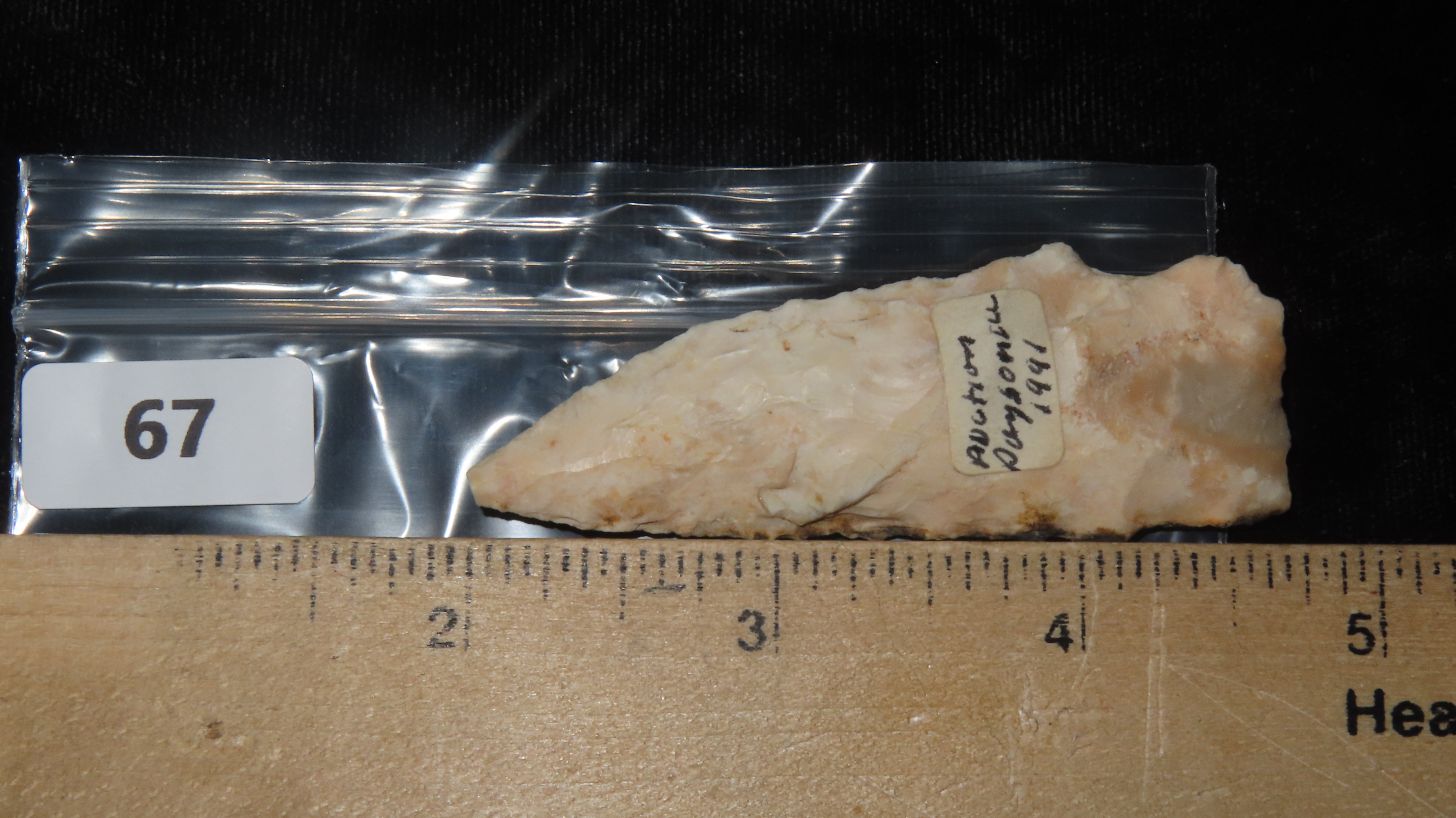 2 3/4″ Archaic Square Stemmed Point, Found in Payson, IL 1991, Ex. Herb Mangold Collection