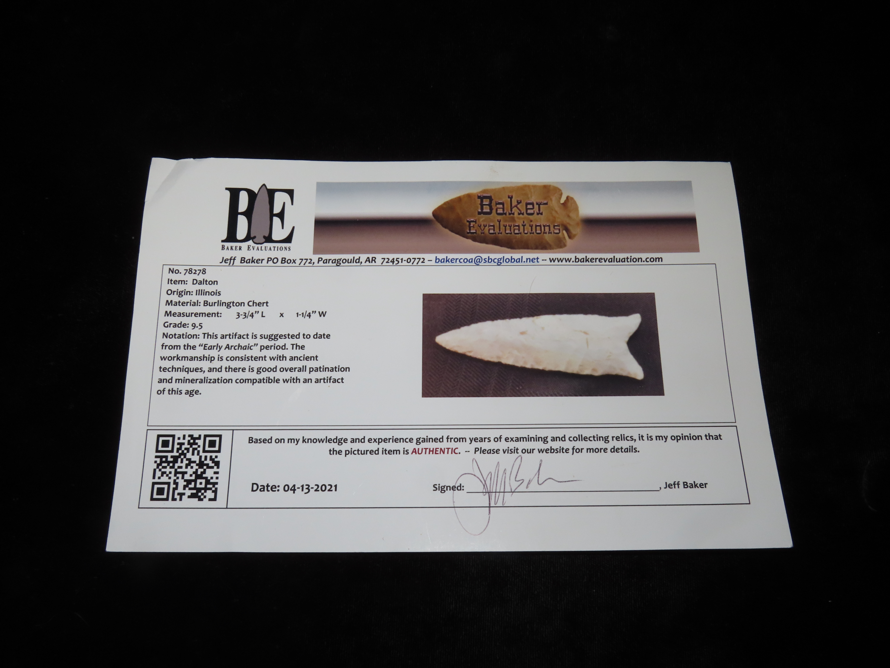 3 3/4″ Dalton, Jeff Baker COA, Illinois