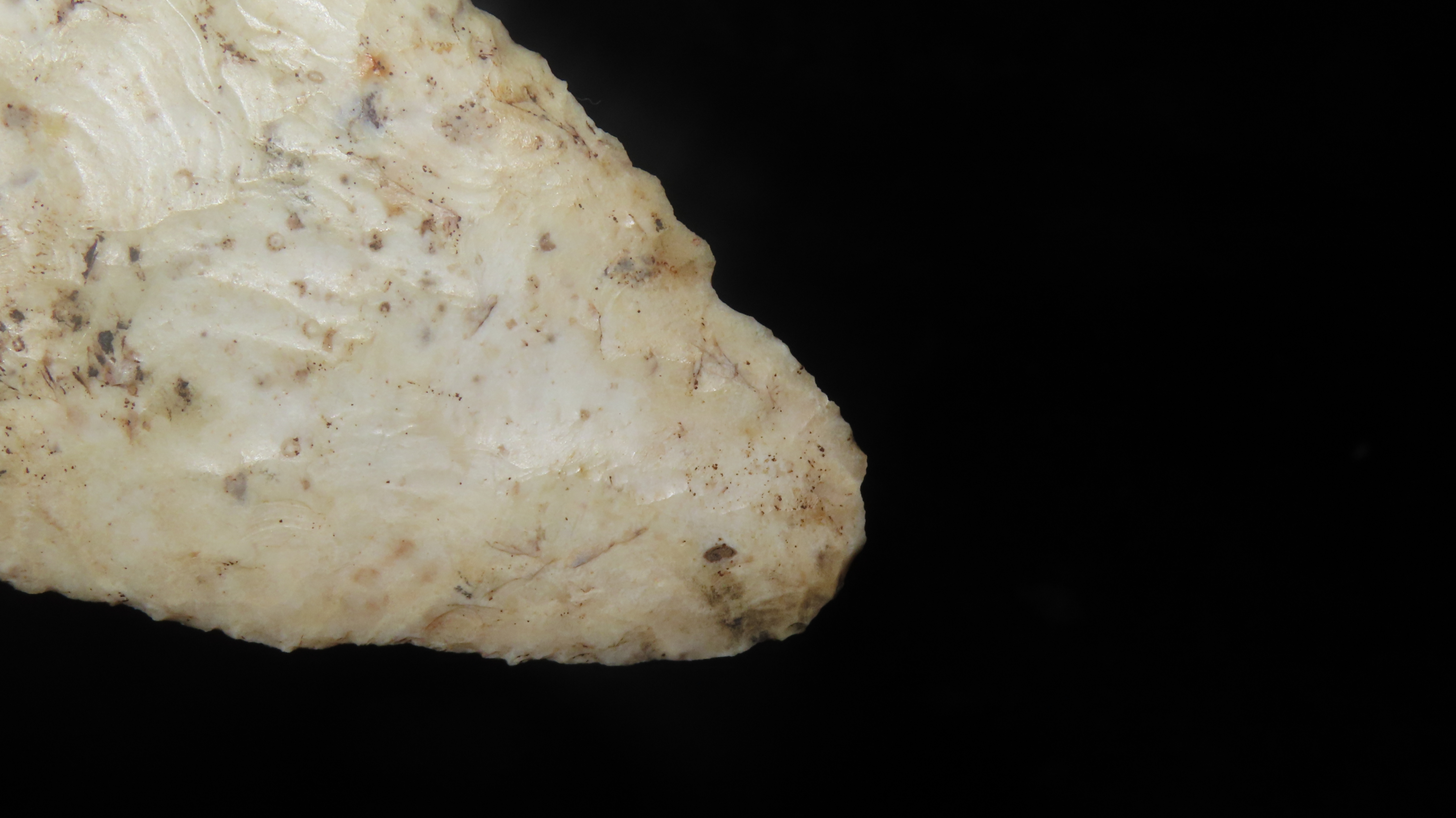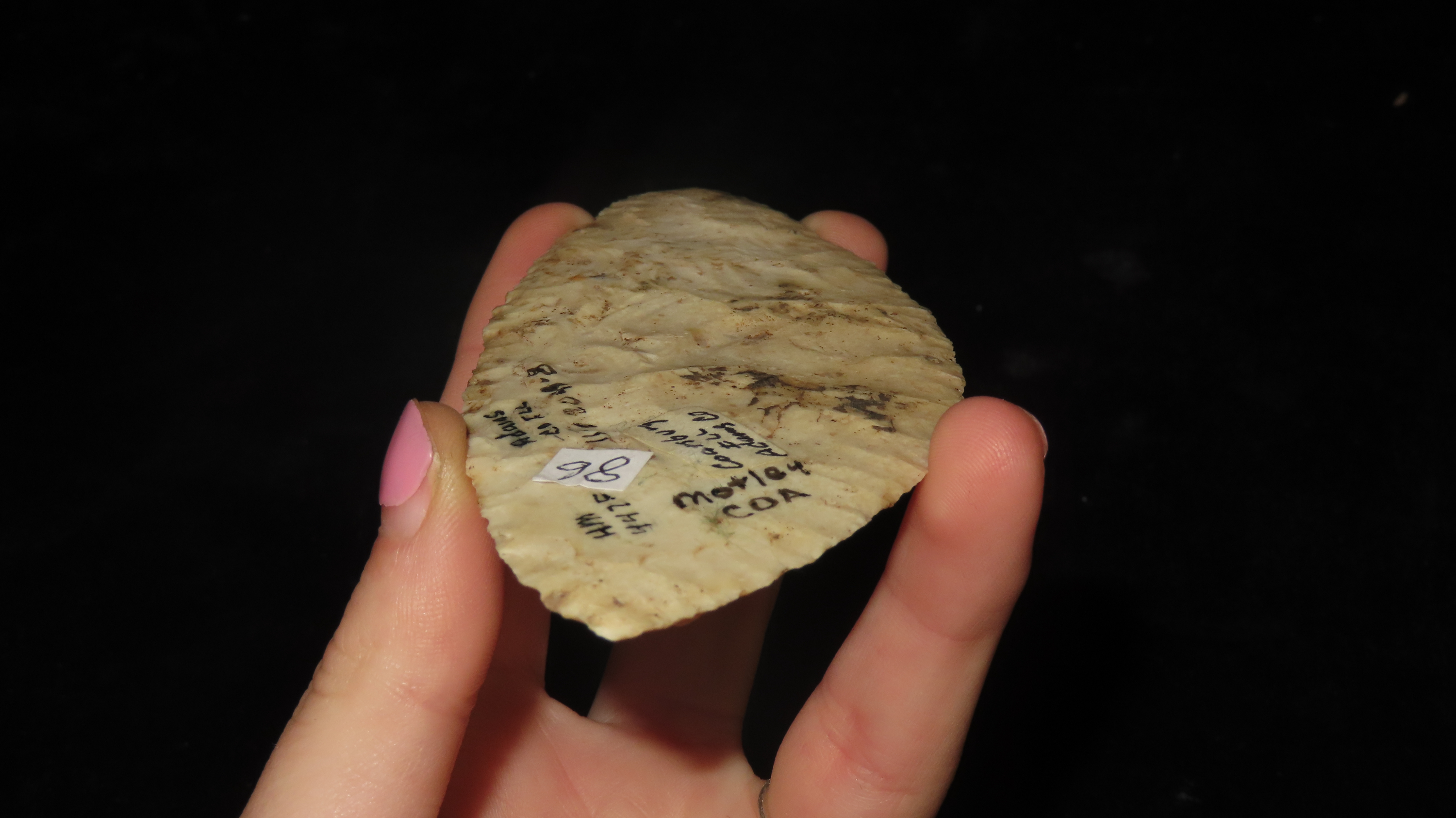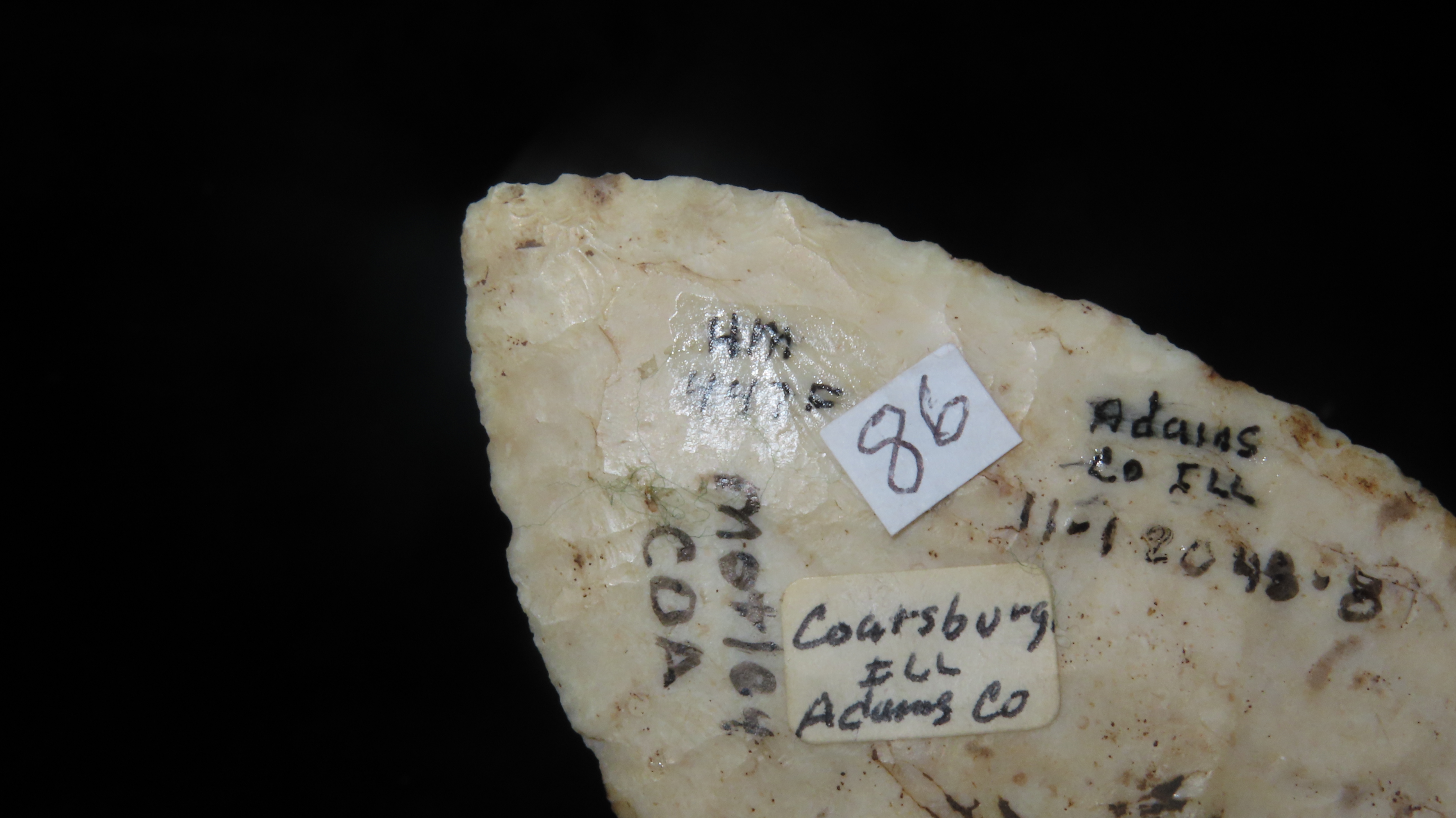 5″ x 2″ Ovoid Knife, Motley COA, Found in Adams Co. Illinois, Made of Burlington Chert. Ex. Herb Mangold Collection