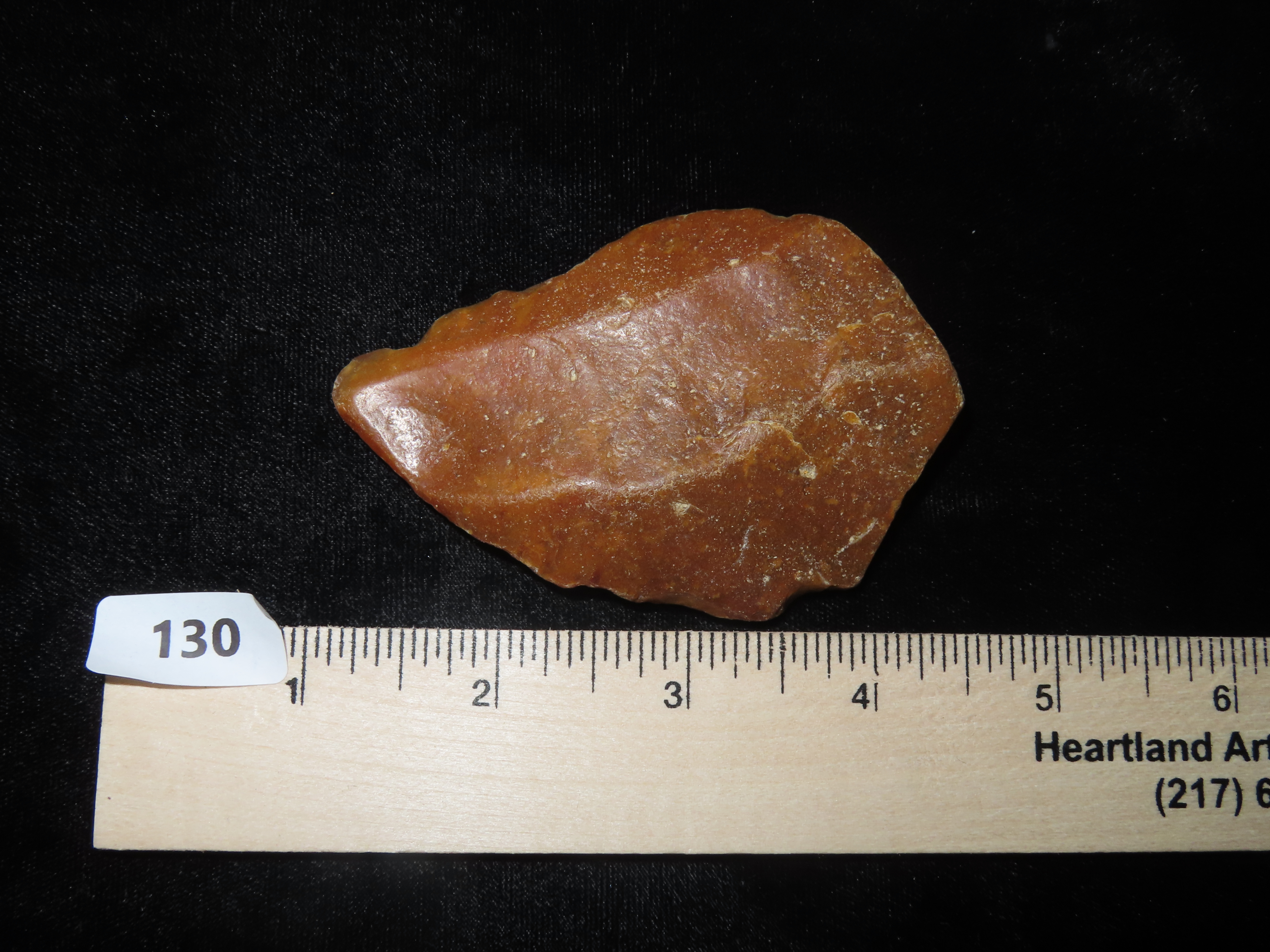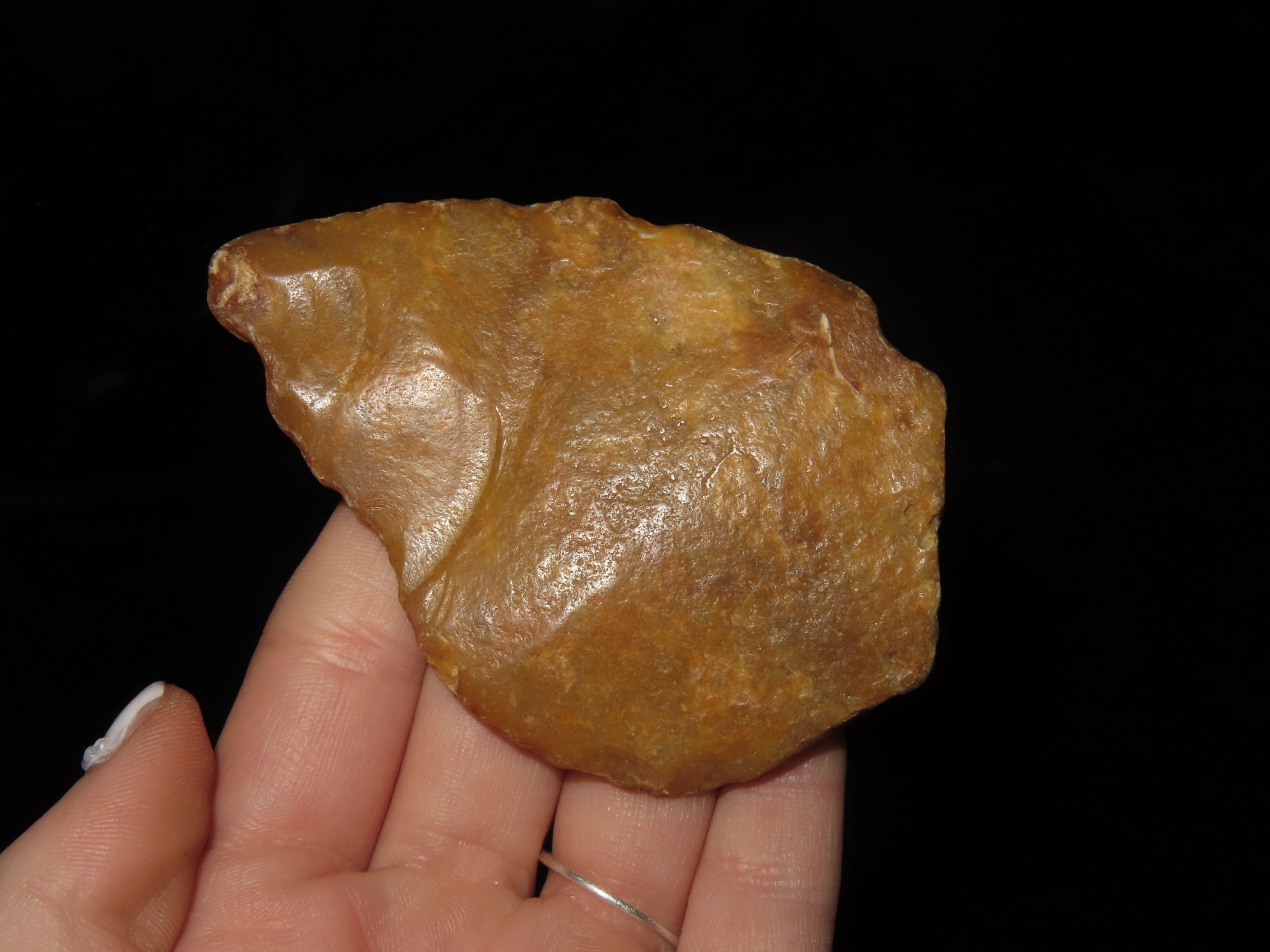 3 3/8″ x 2 1/4″ Levallois Flake Trigonal Hand Axe Paleolithic Preform. Found at Seward’s Boston R Pit in 1910 at Swanscombe, Kent by Reginald Smith and HEnry Dewey of the British Museum