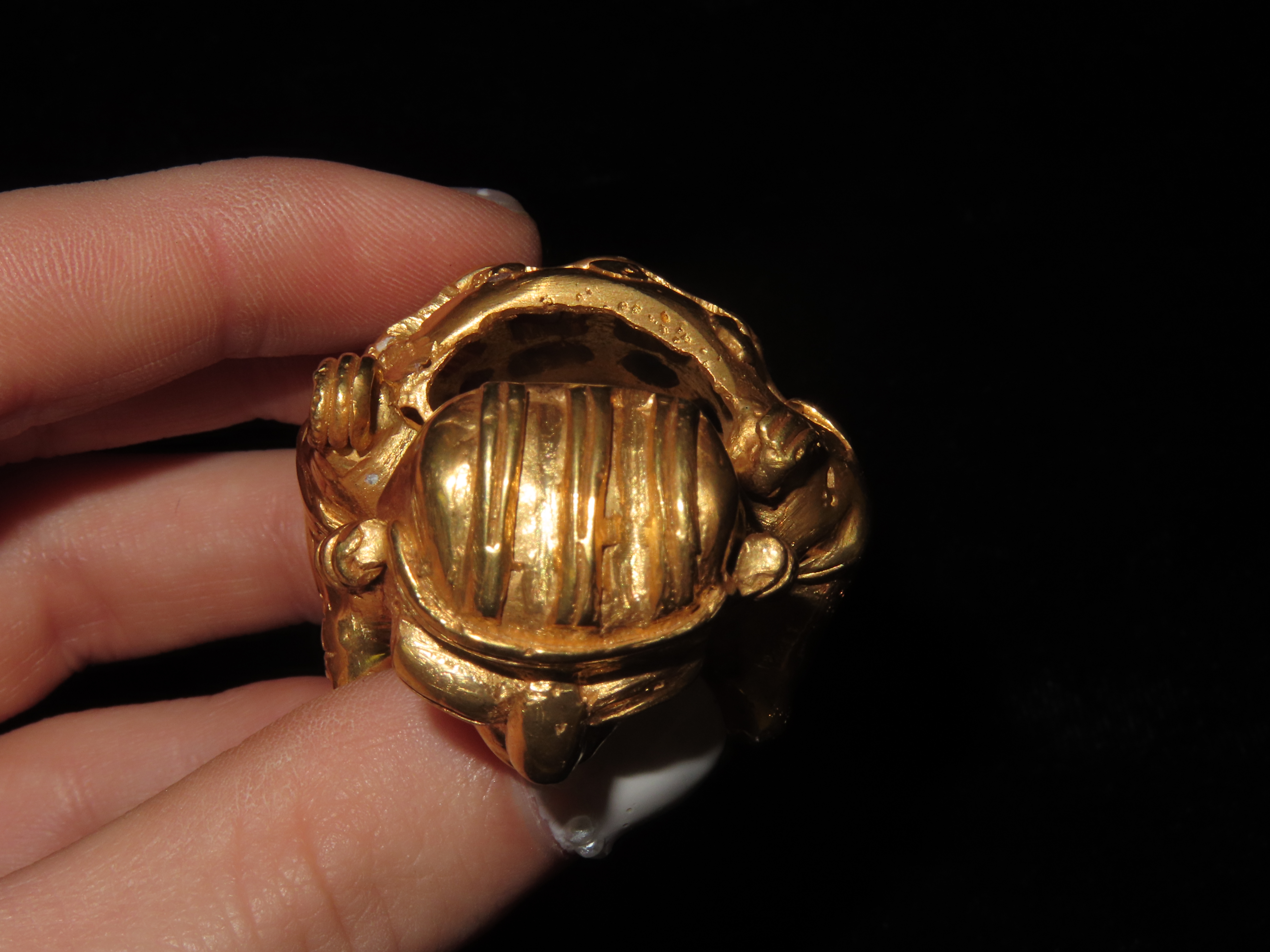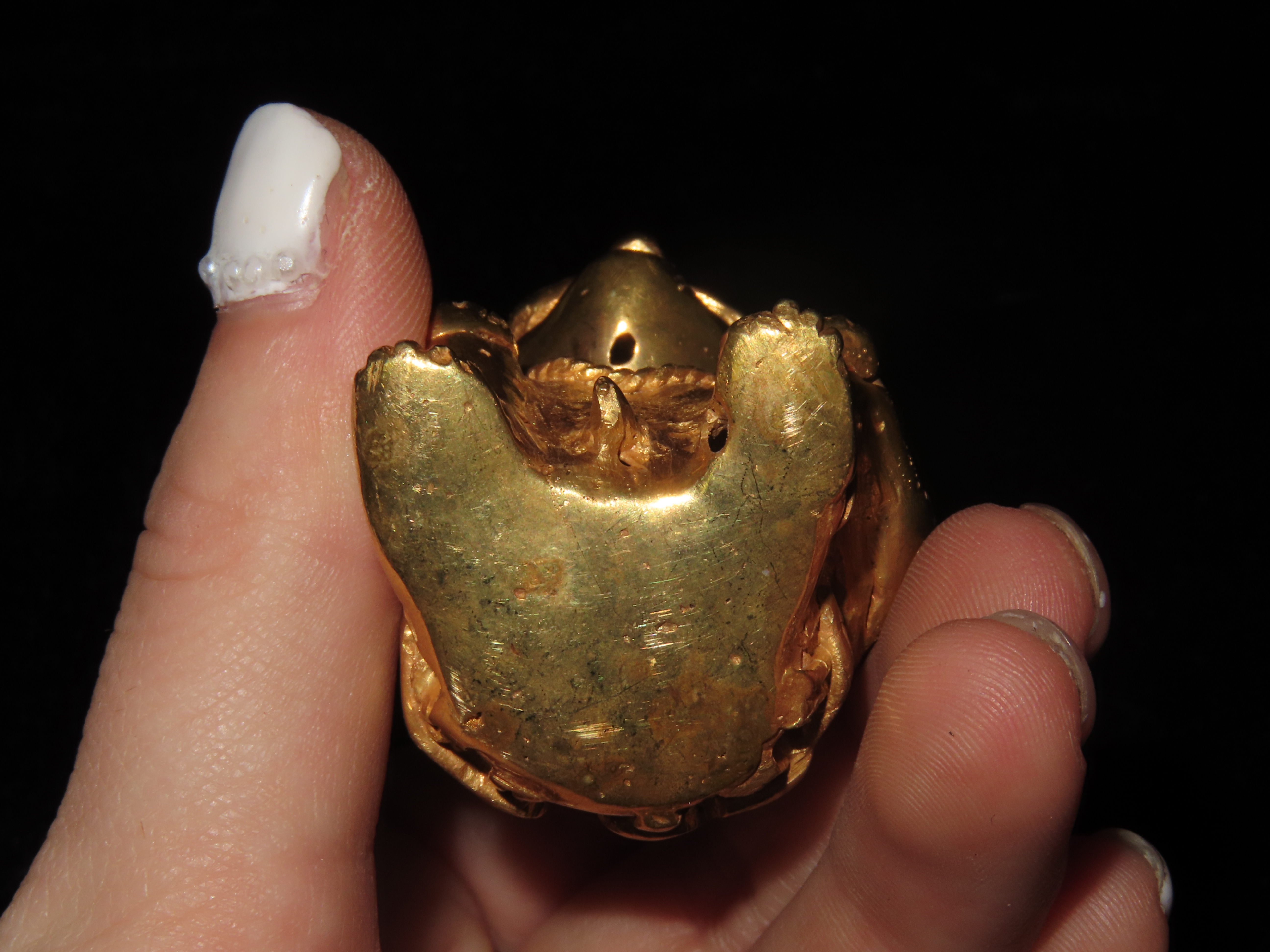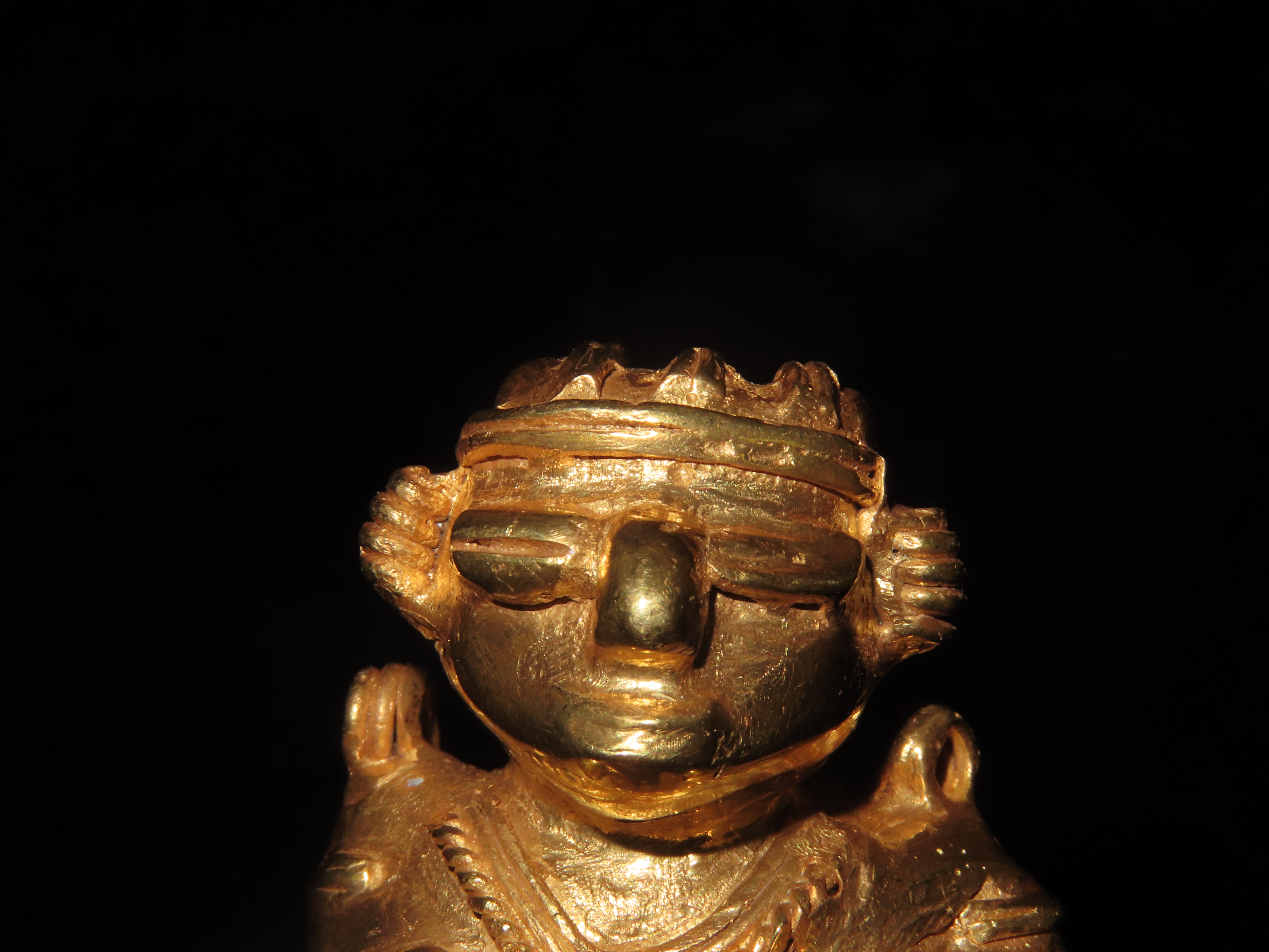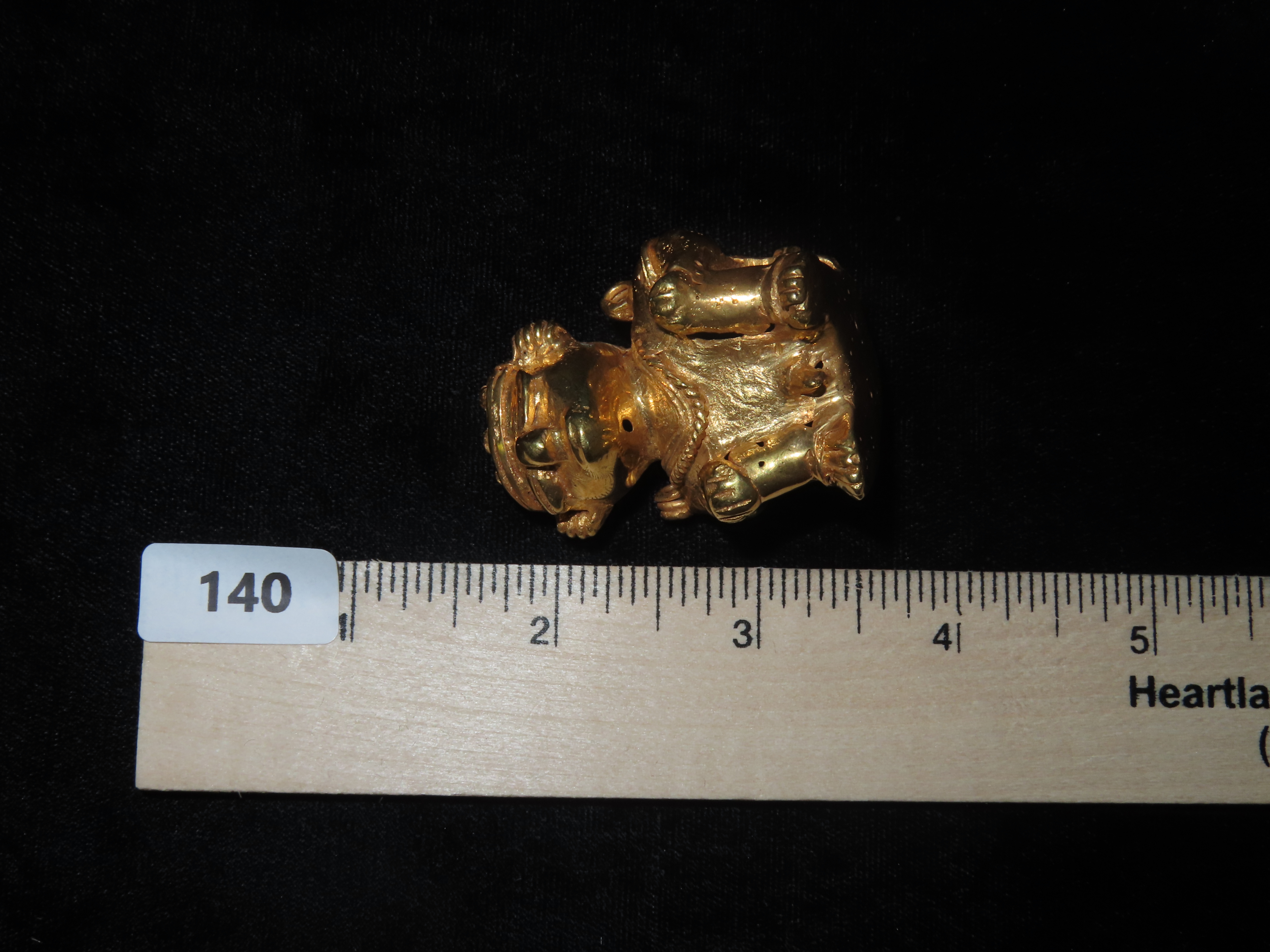 1 7/8″ Pre Columbian Tairona Tumbaga, Gold Copper Alloy, Human Carrying Basket Pendant