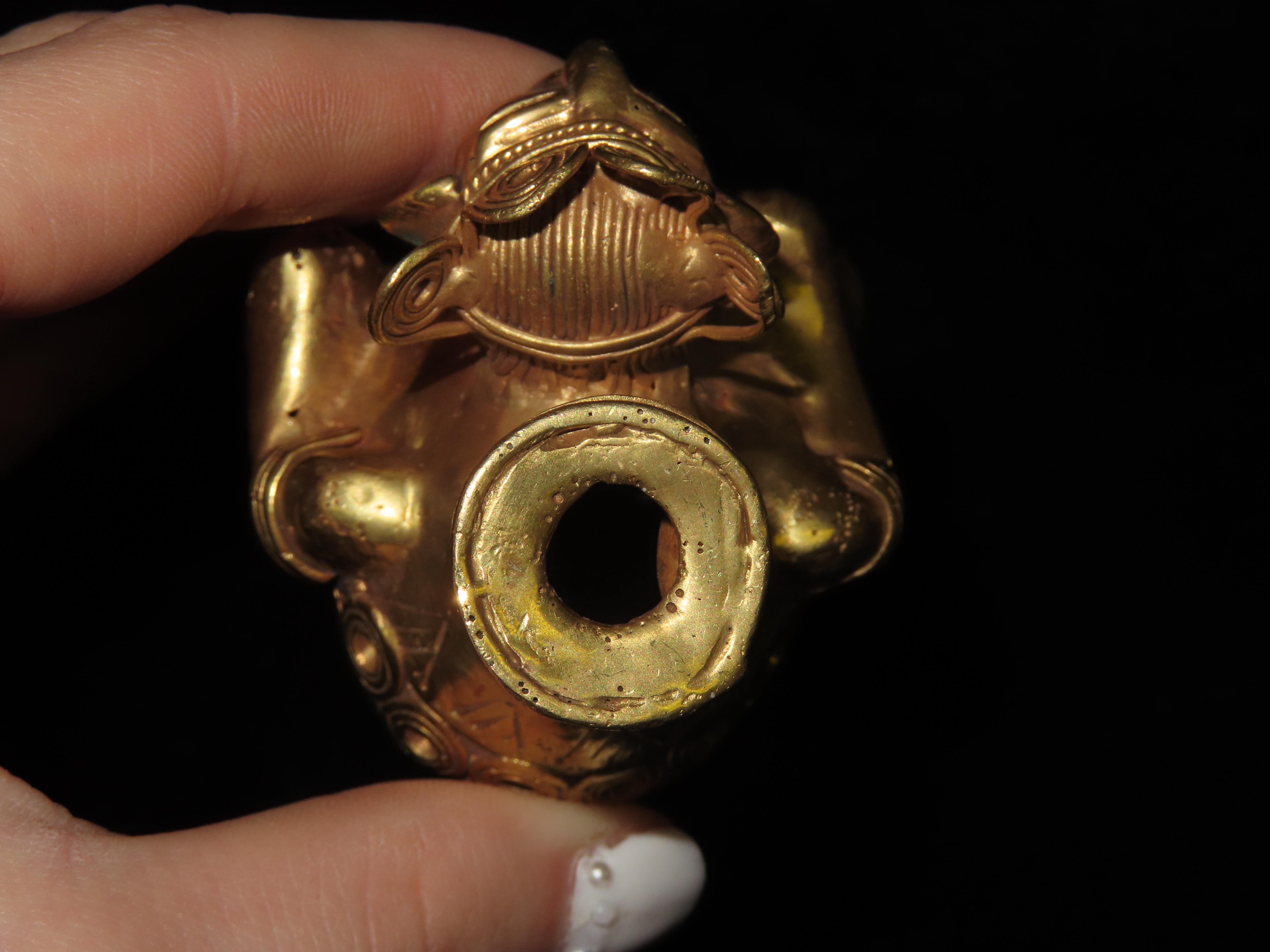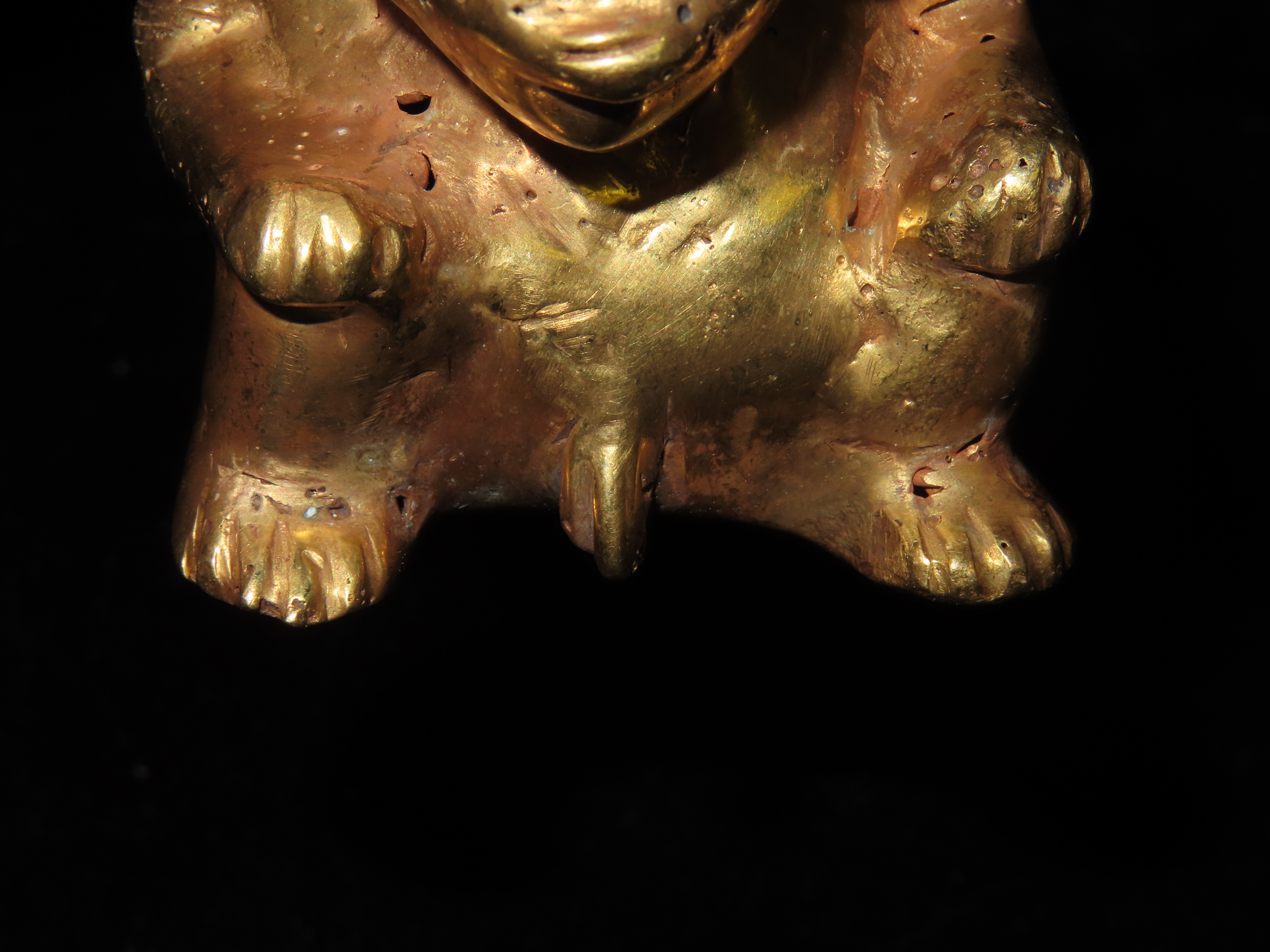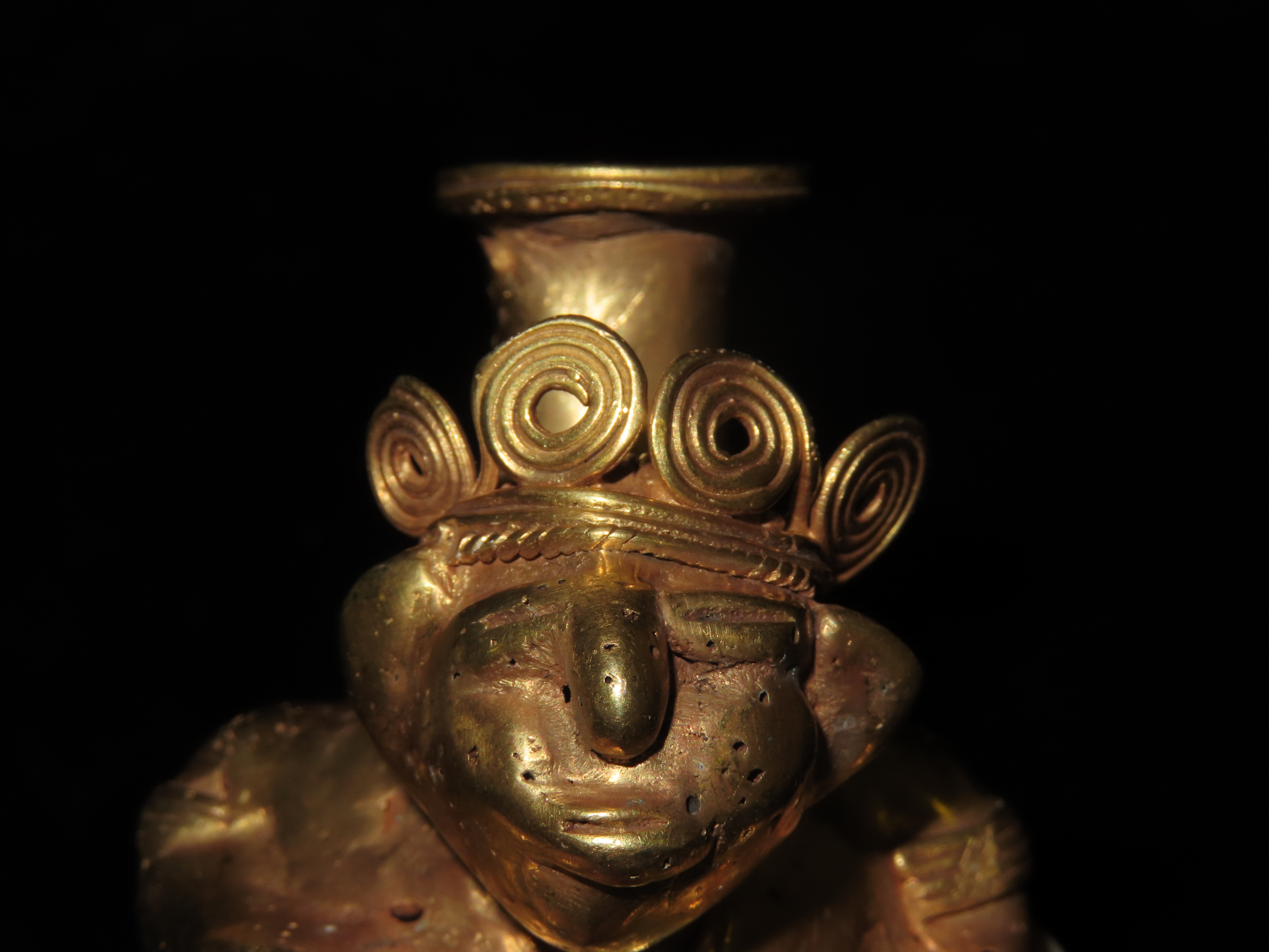 1 3/4″ x 2 1/2″ Warrior Vial Effigy, Tumbaga a Gold and Copper Mixture, South America. Motley / Leithoff COA