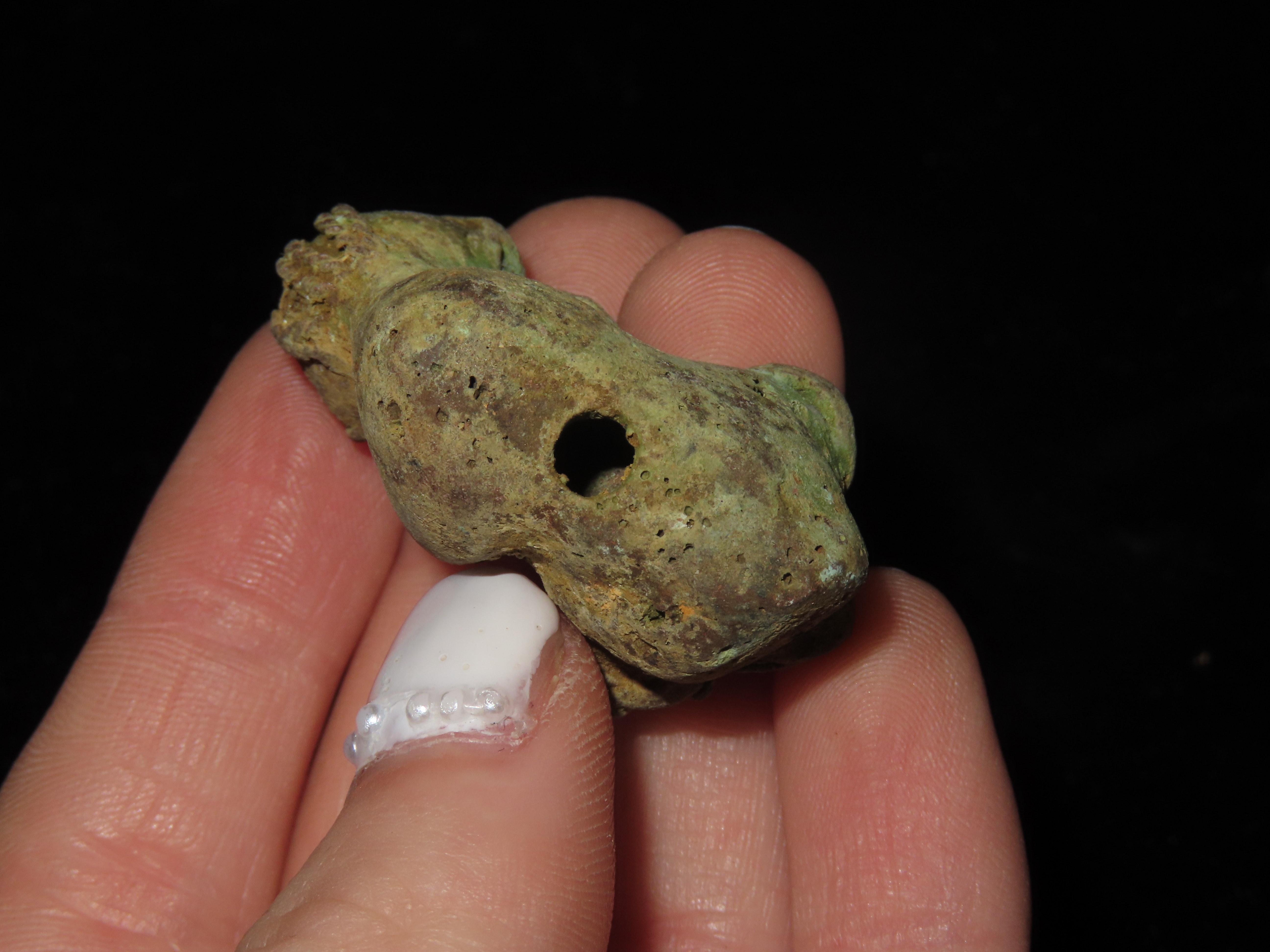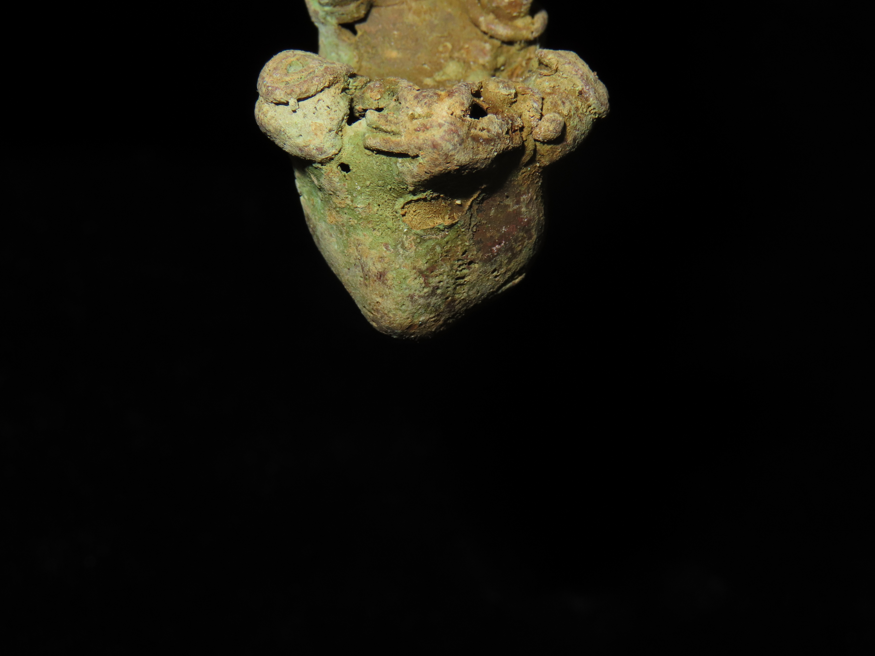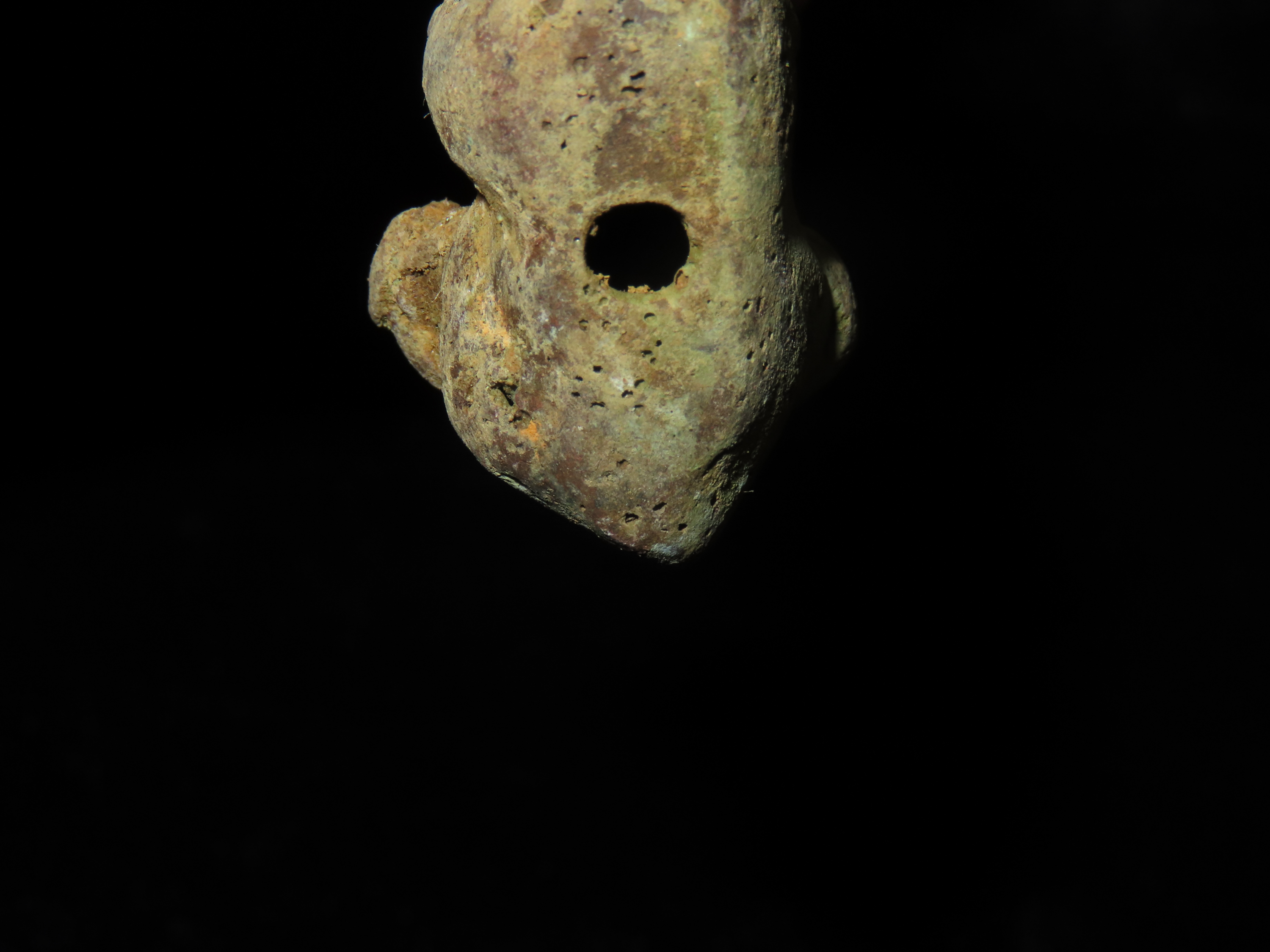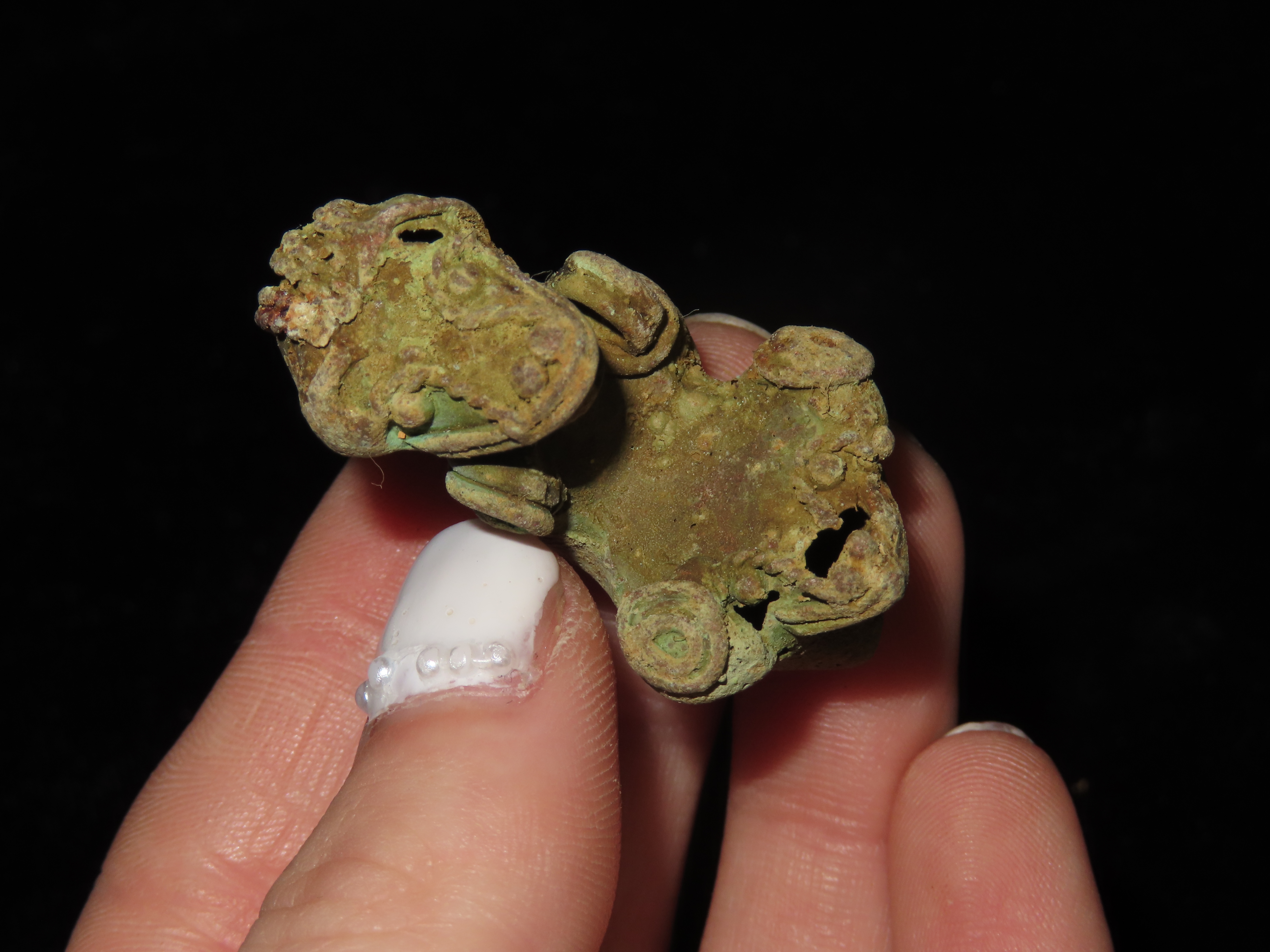7/8″ x 1 11/16″ Pre-Columbian Zoomorphic Effigy Pendant, Copper, Central America. Motley / Leithoff COA