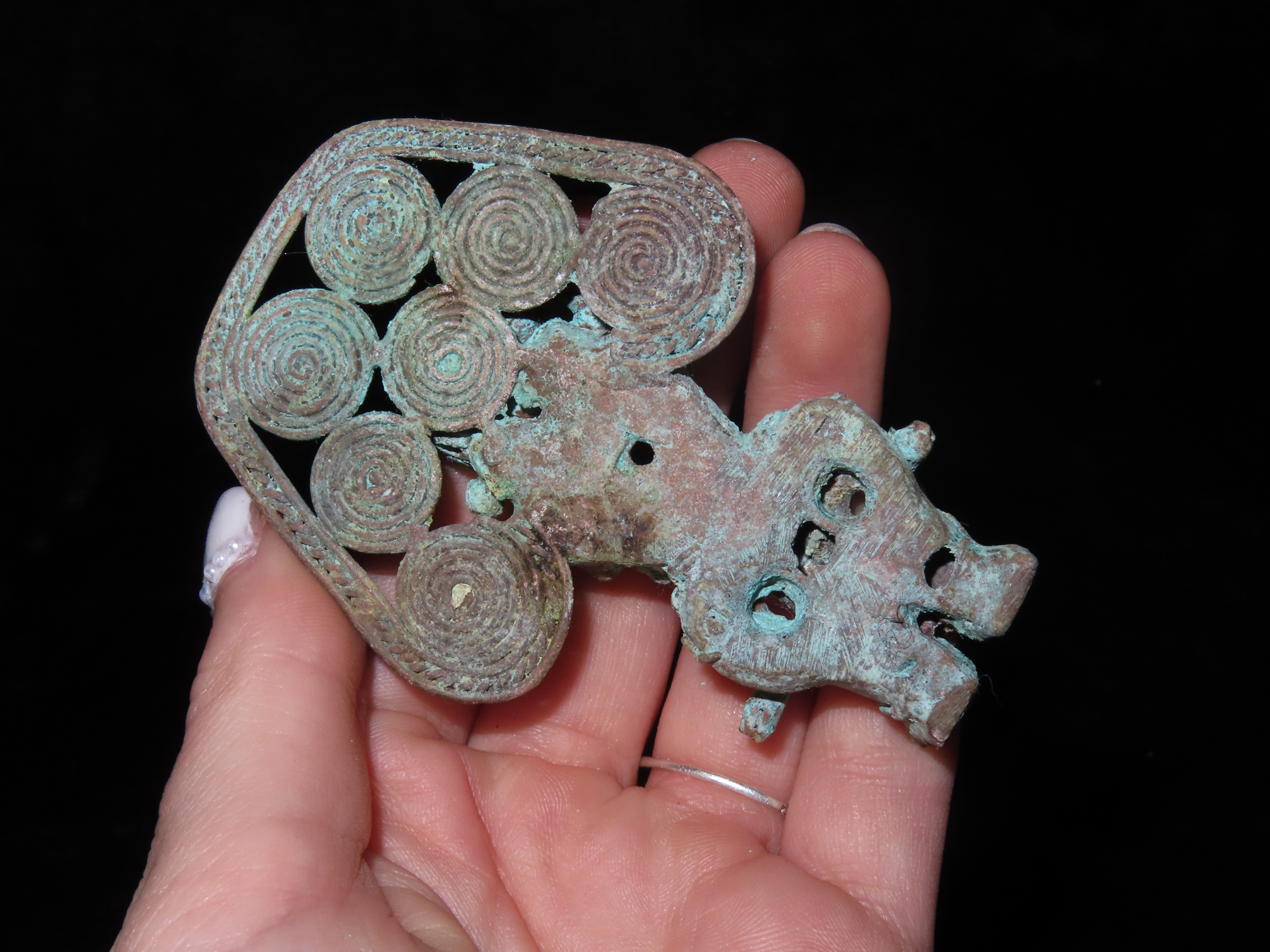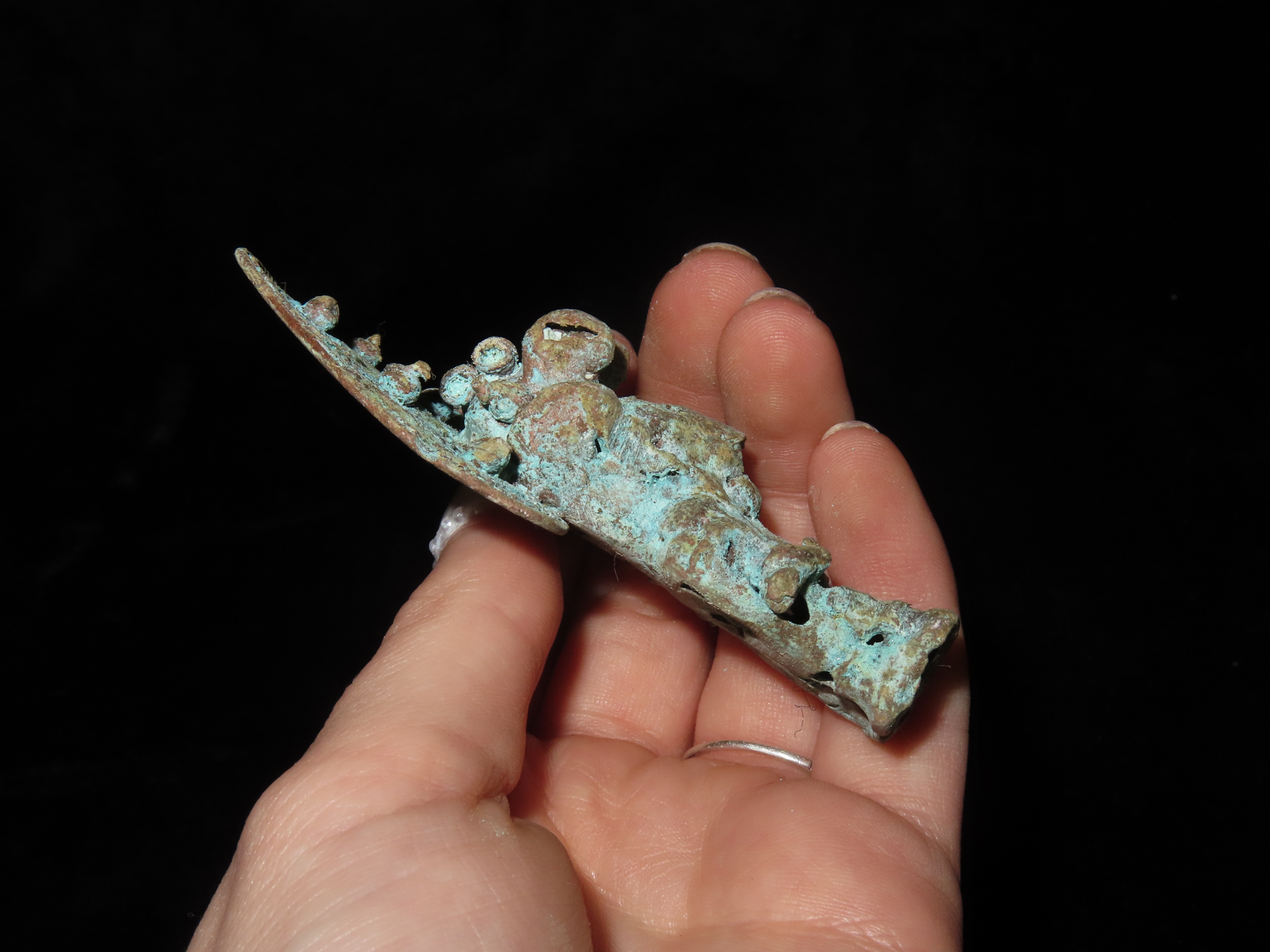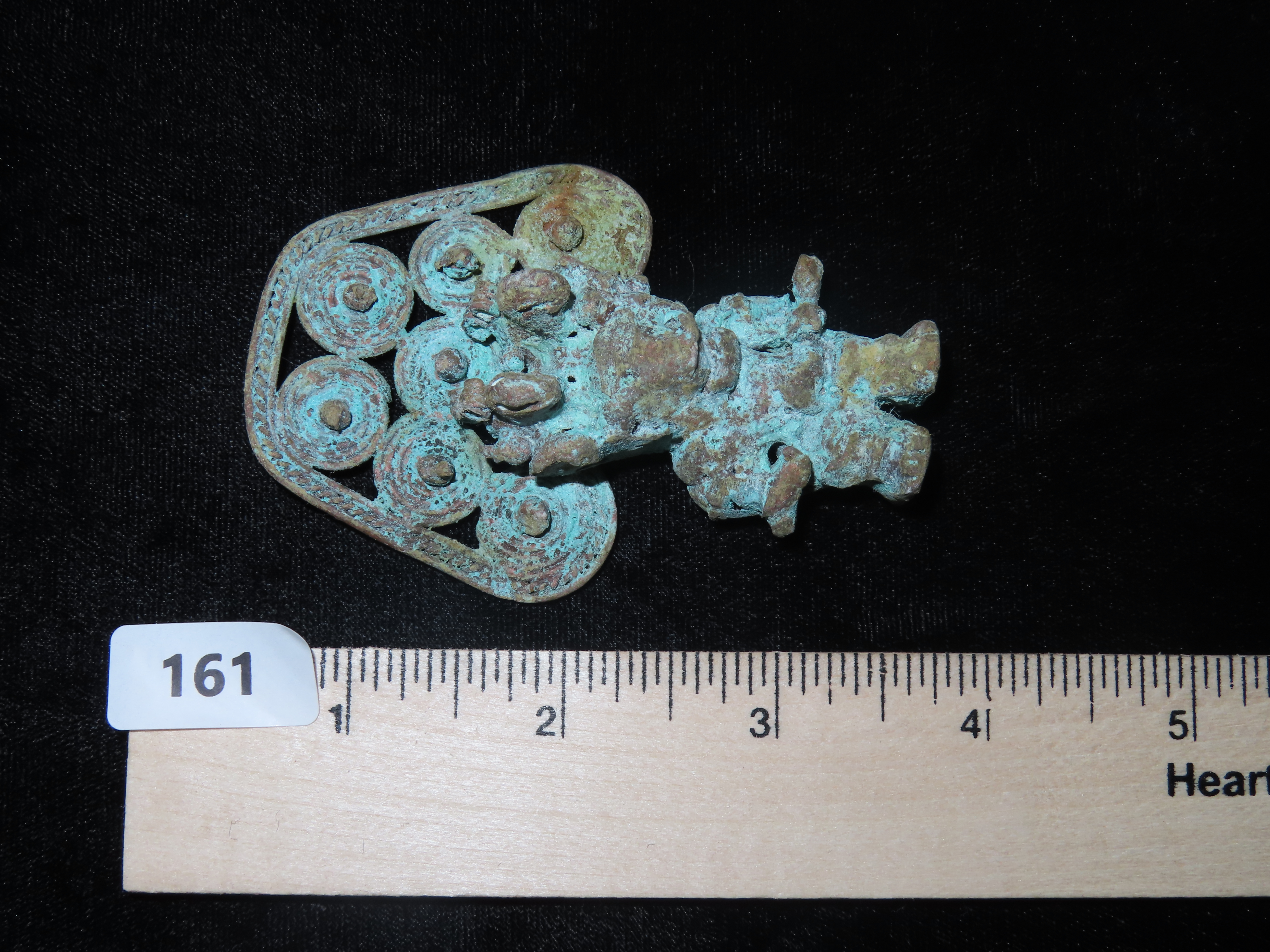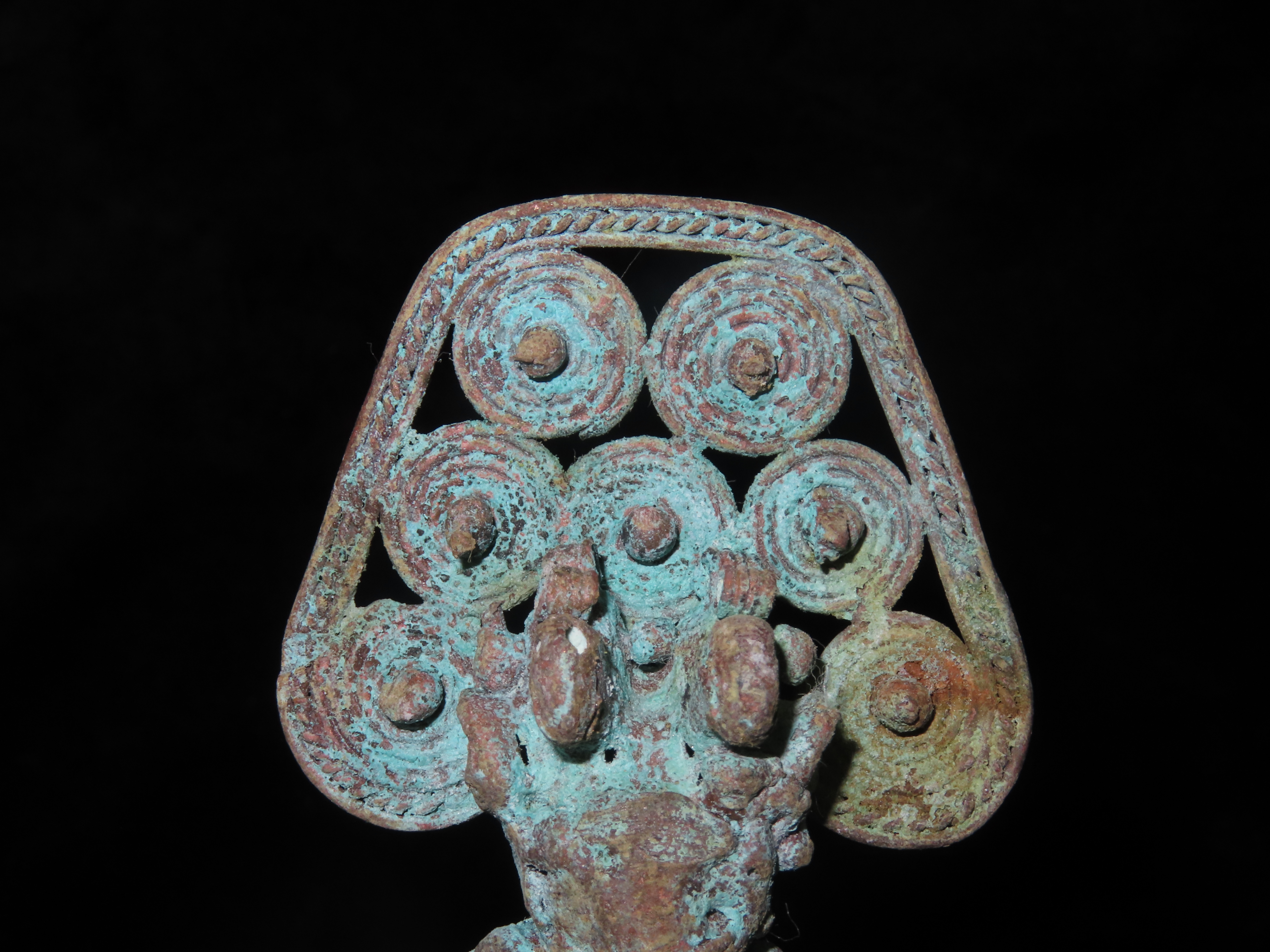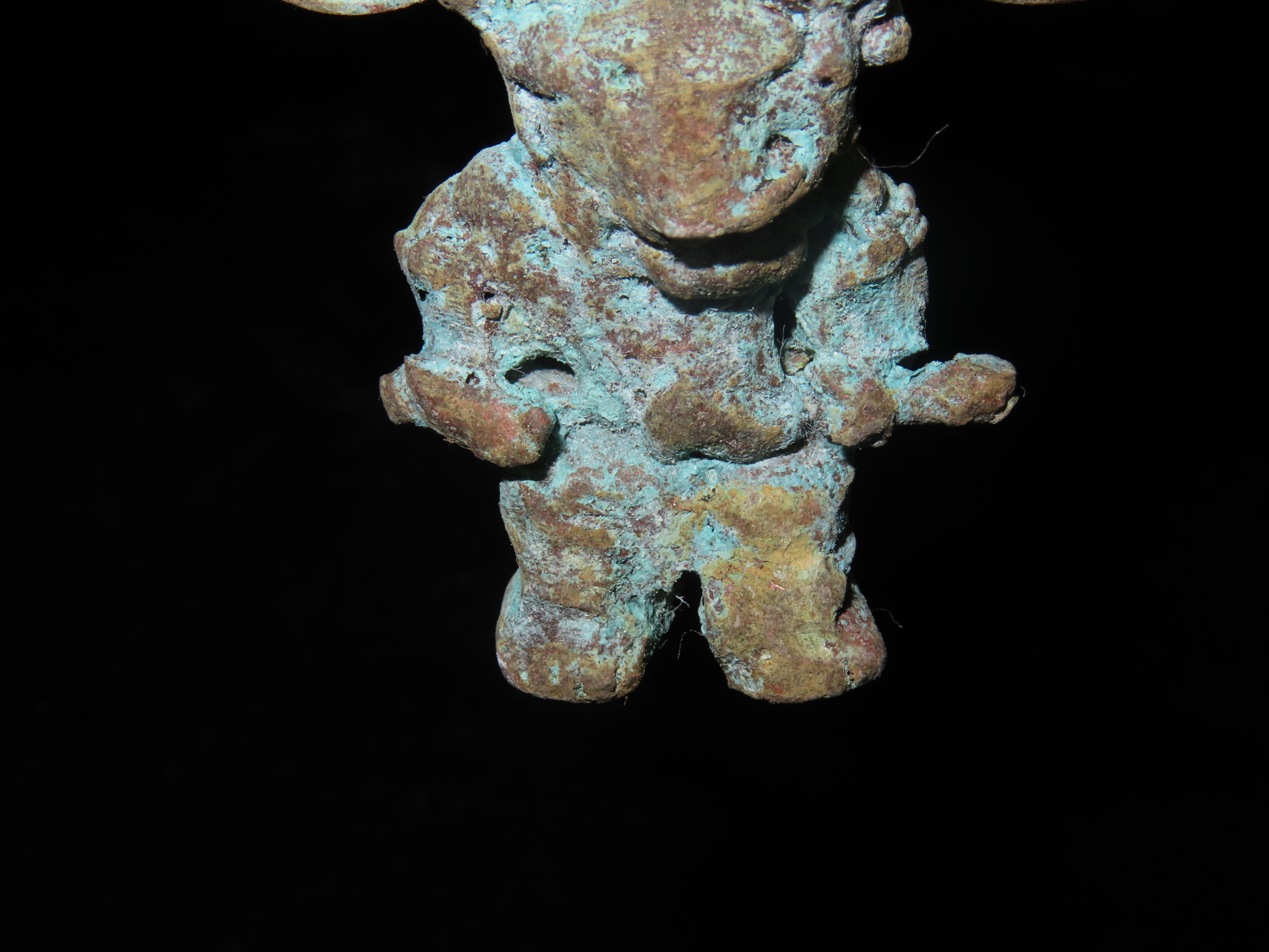 3 1/4″ x 2 1/8″ Pre-Columbian Chavin Copper Warrior Effigy. Copper. Peru.