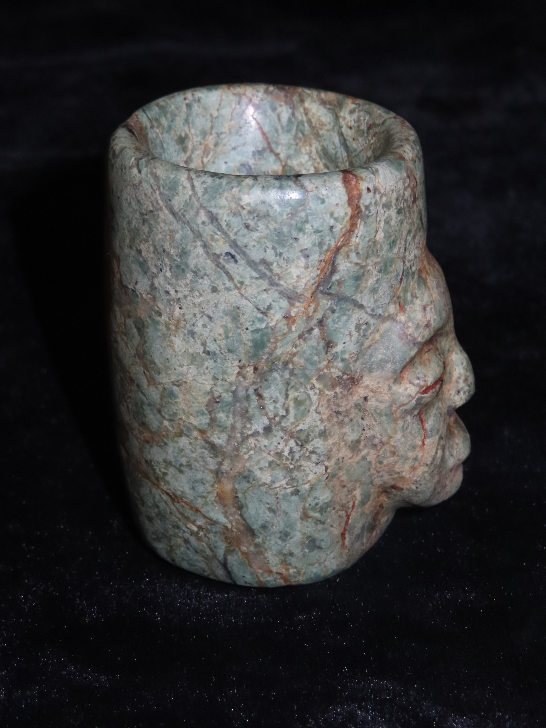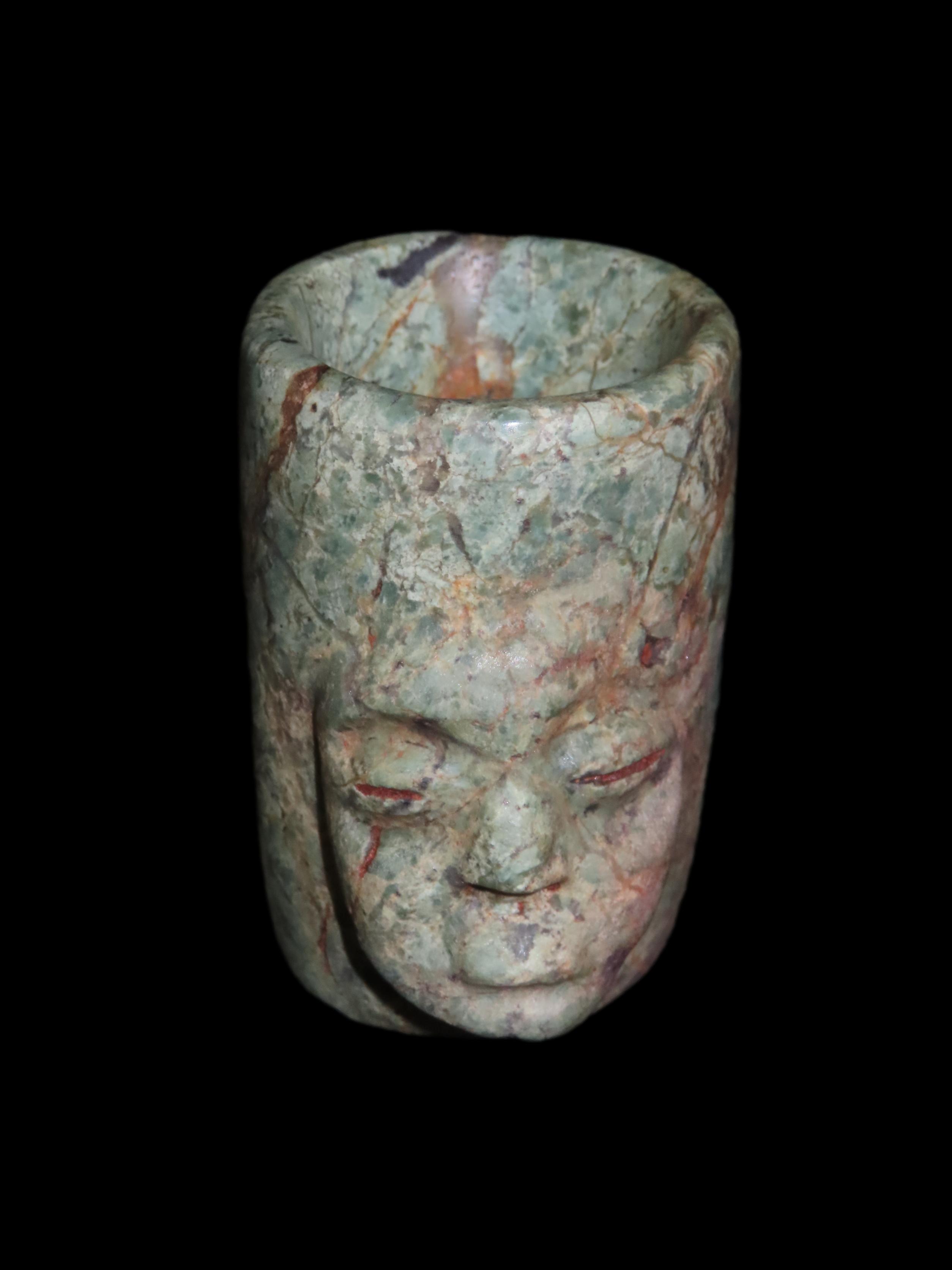2 5/8″ Pre-Columbin Jade Effigy Bowl/Cup Offering Vessel. Columbia, South America.