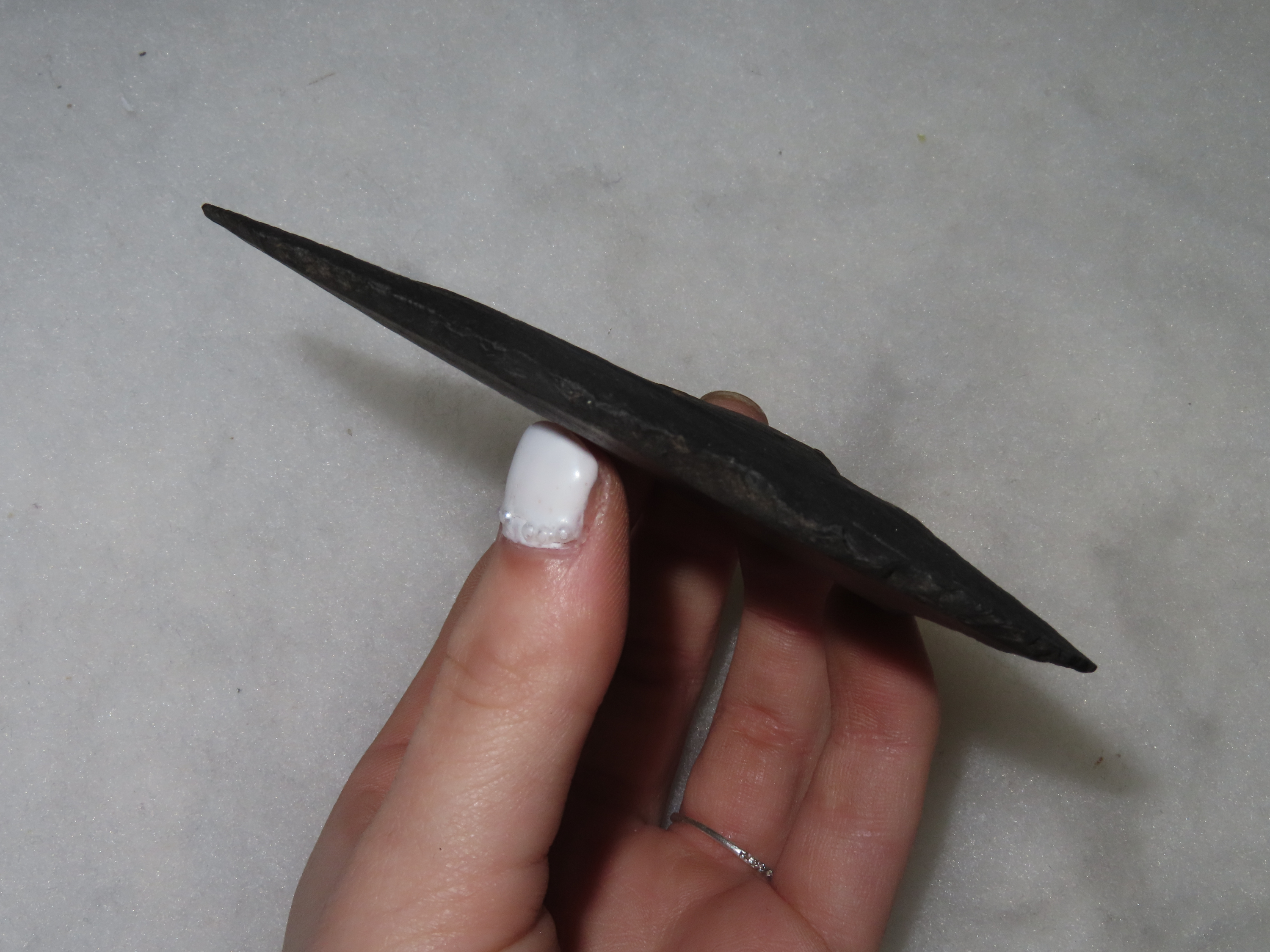 4 1/8″ Flint Ulu Knife. Alaska Eskimo. St. Lawrence Island, Alaska. Ex Litherland Collection.