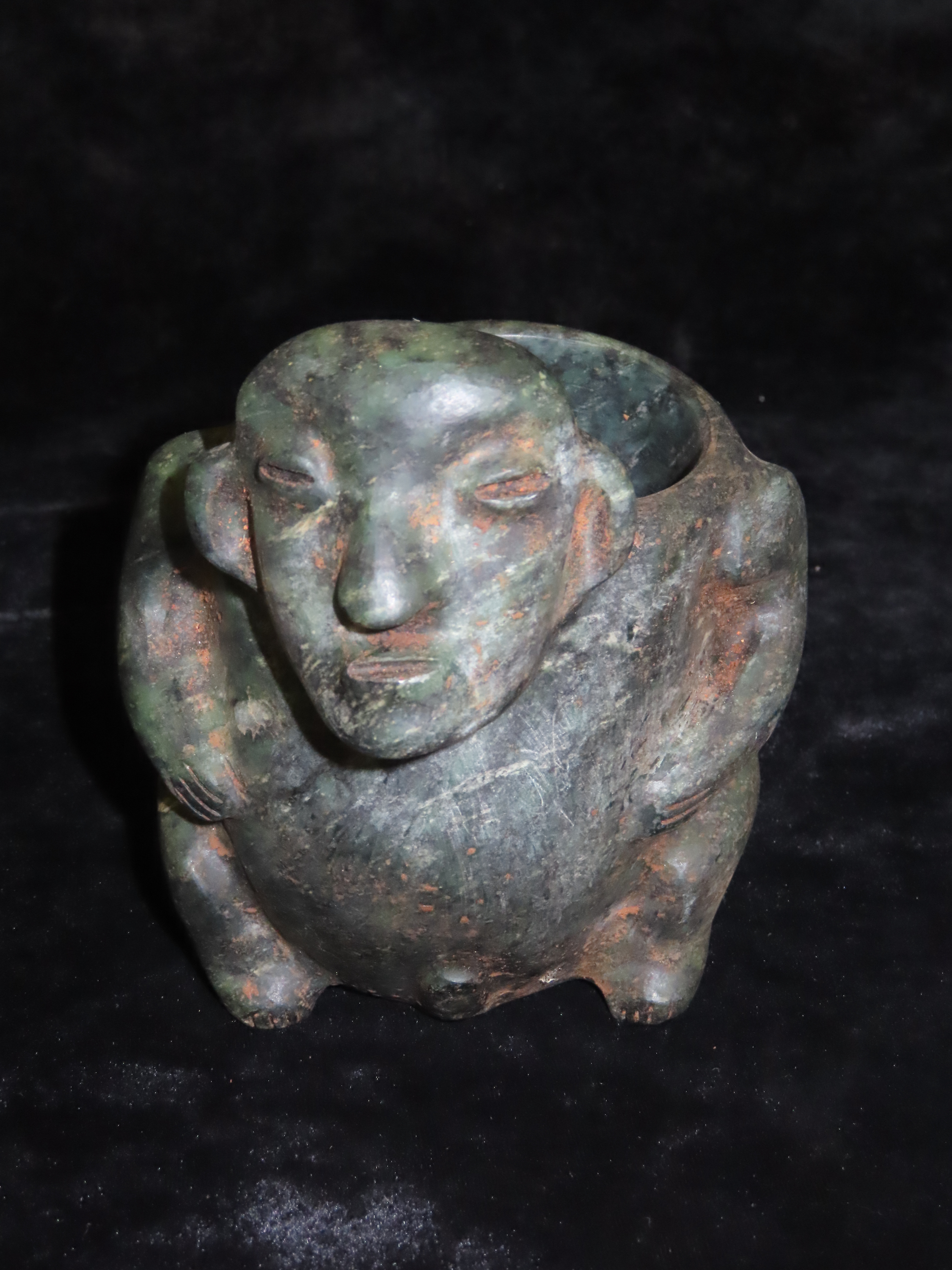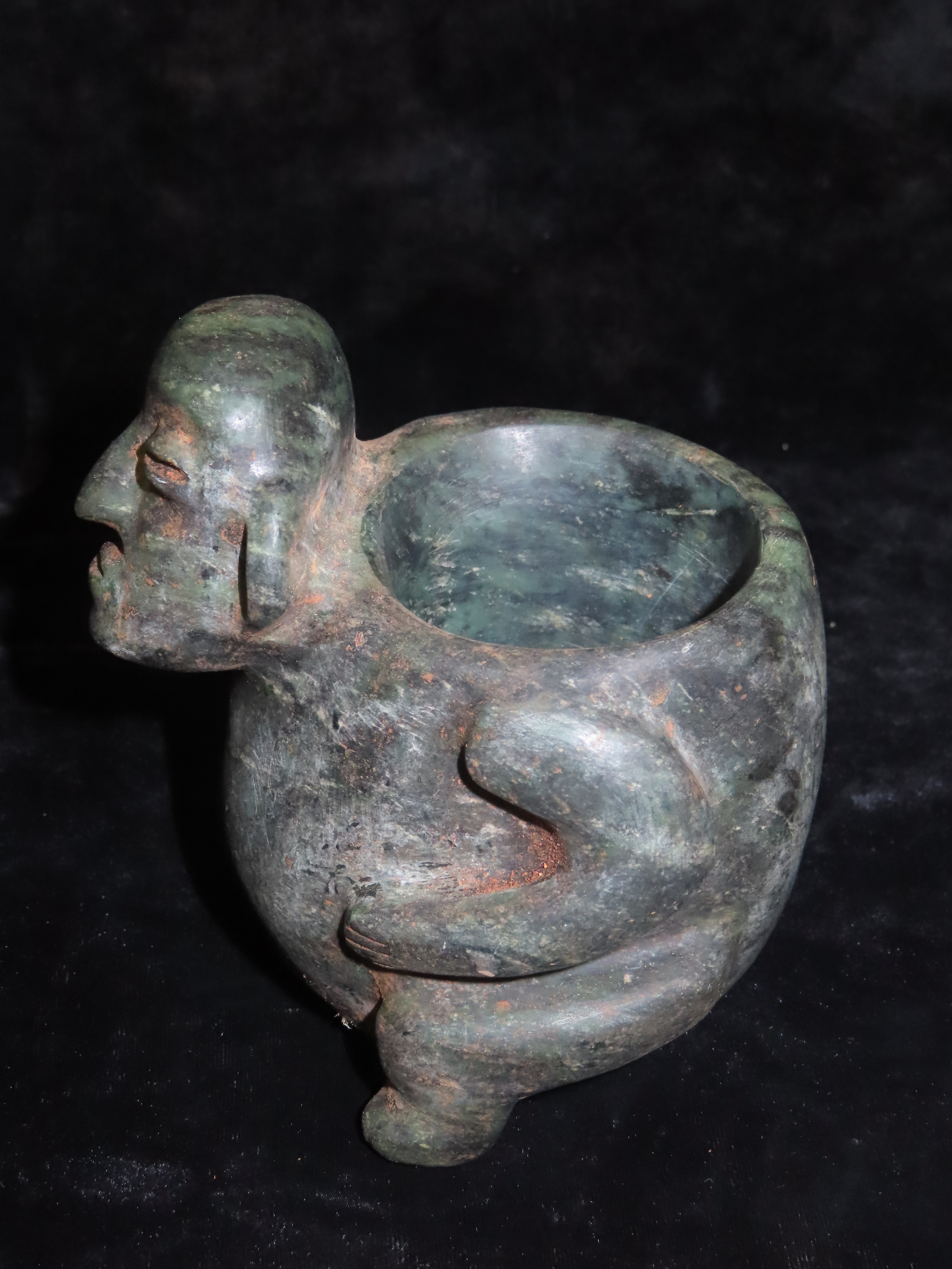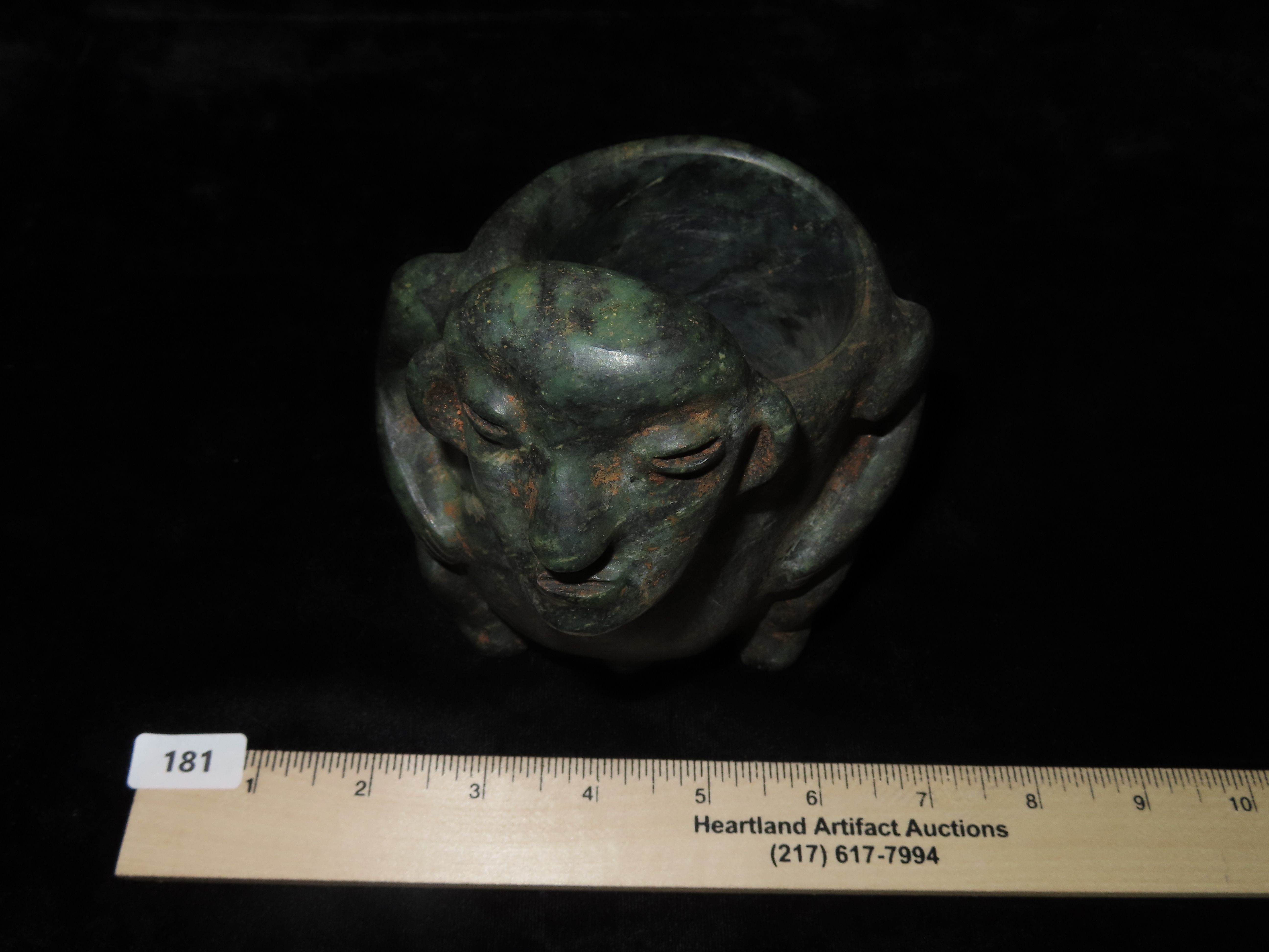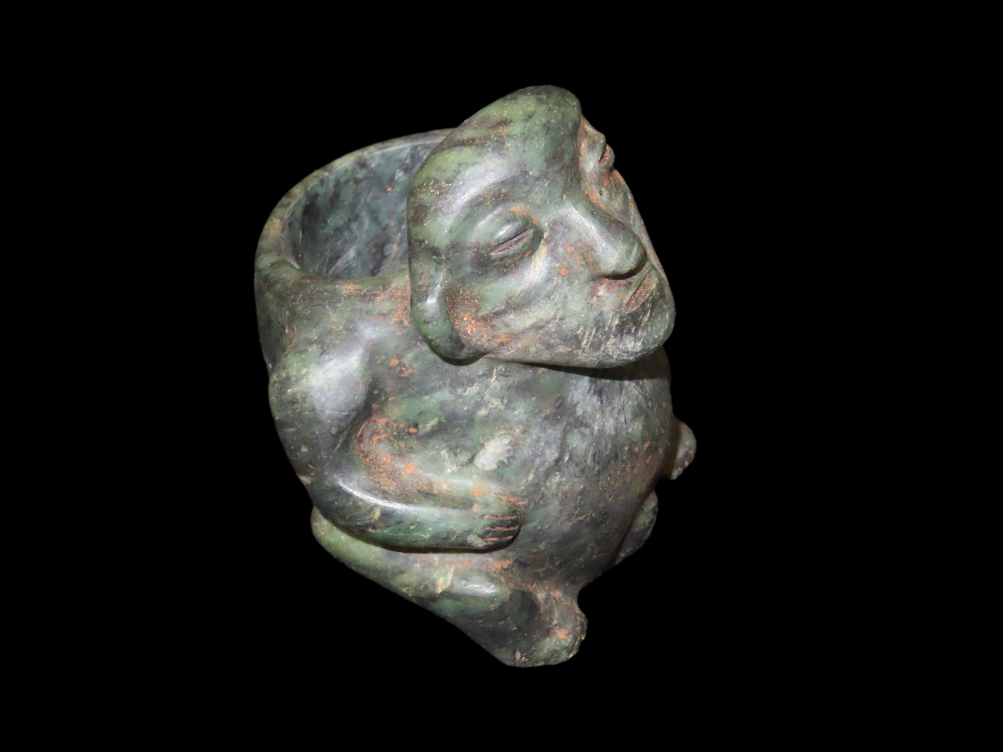 4 9/16″ x 5 3/8″ Pre-Columbian Human Bowl. Jade. Mesoamerica. Motley / Leithoff COA.