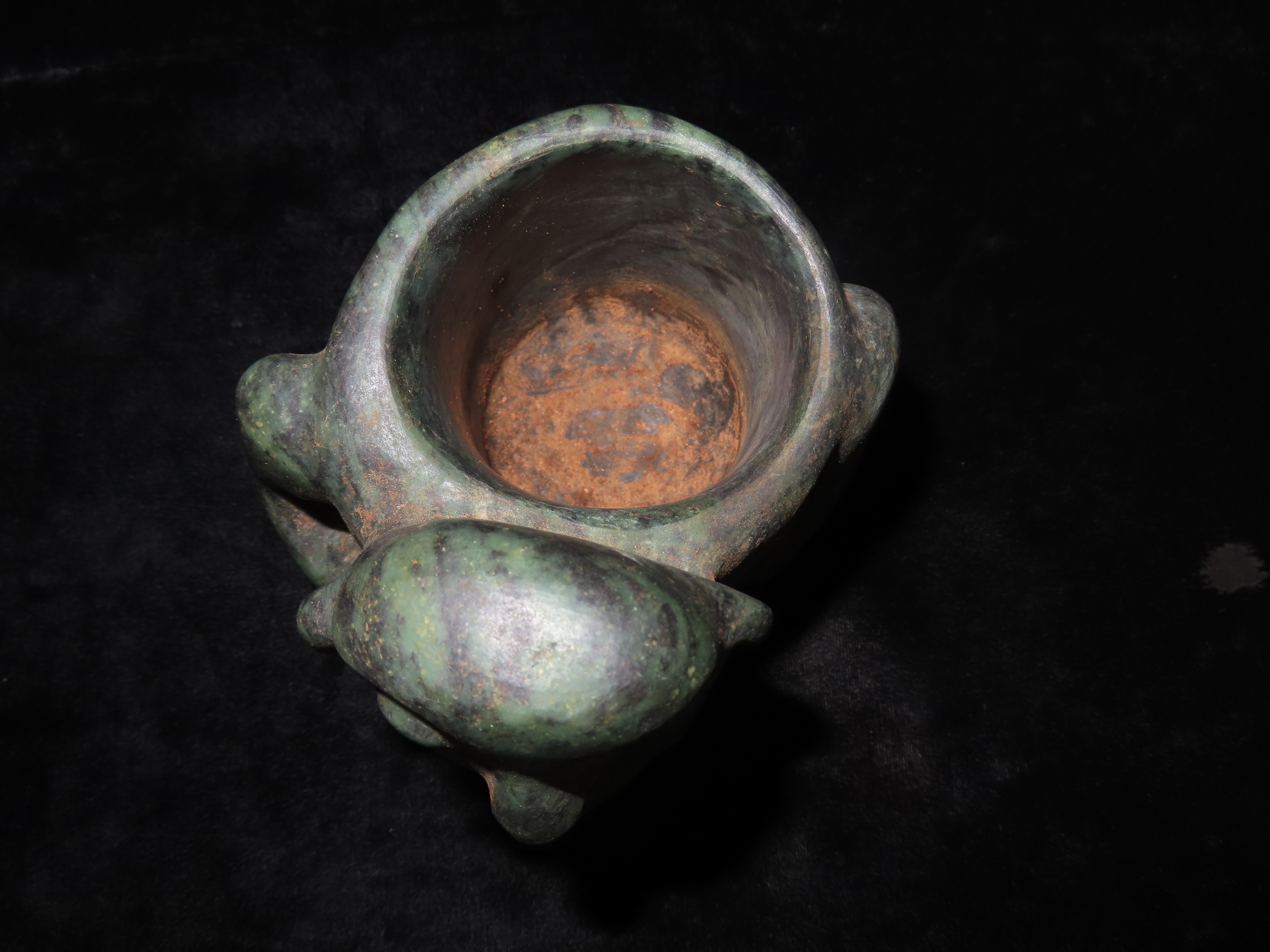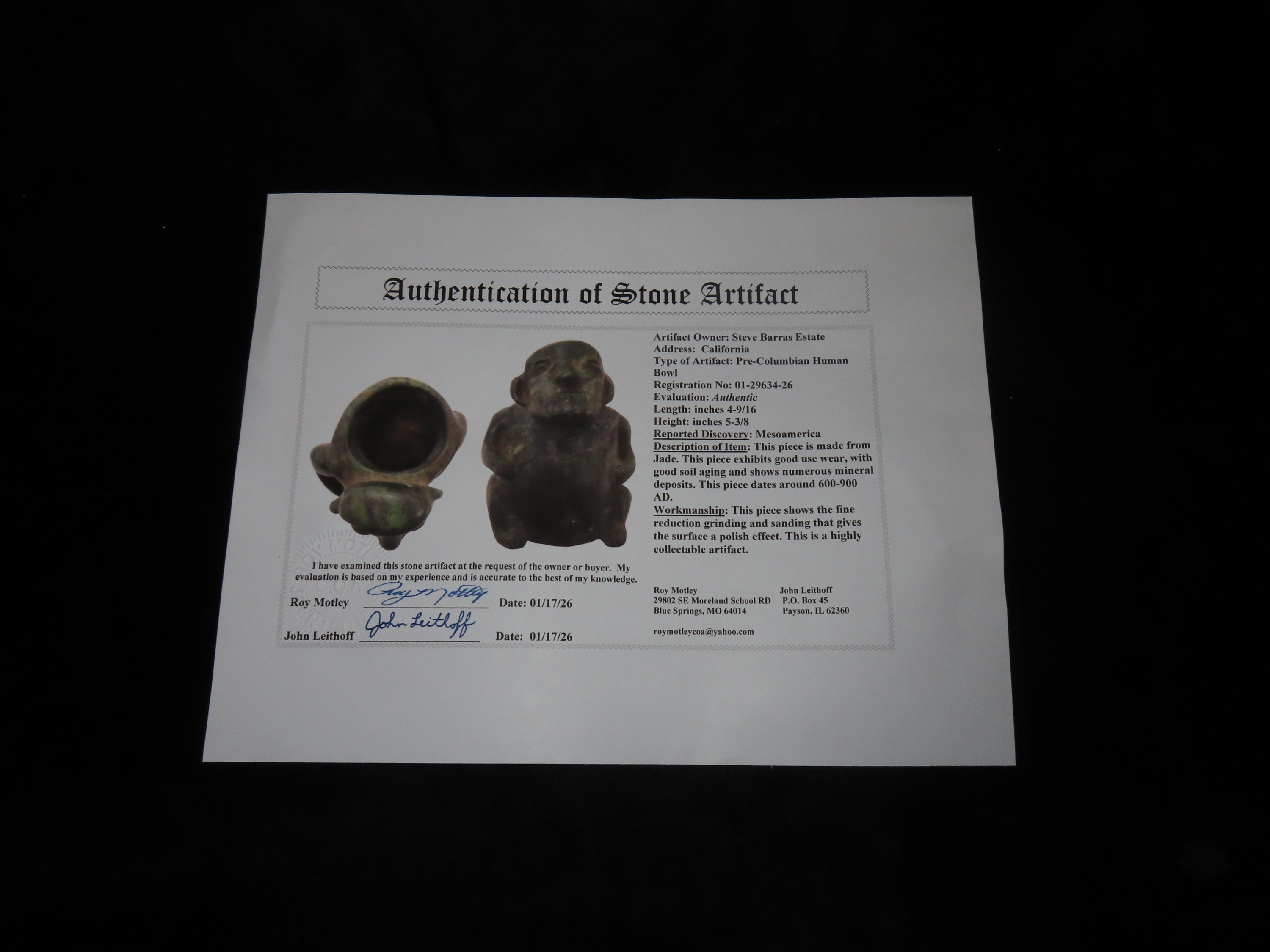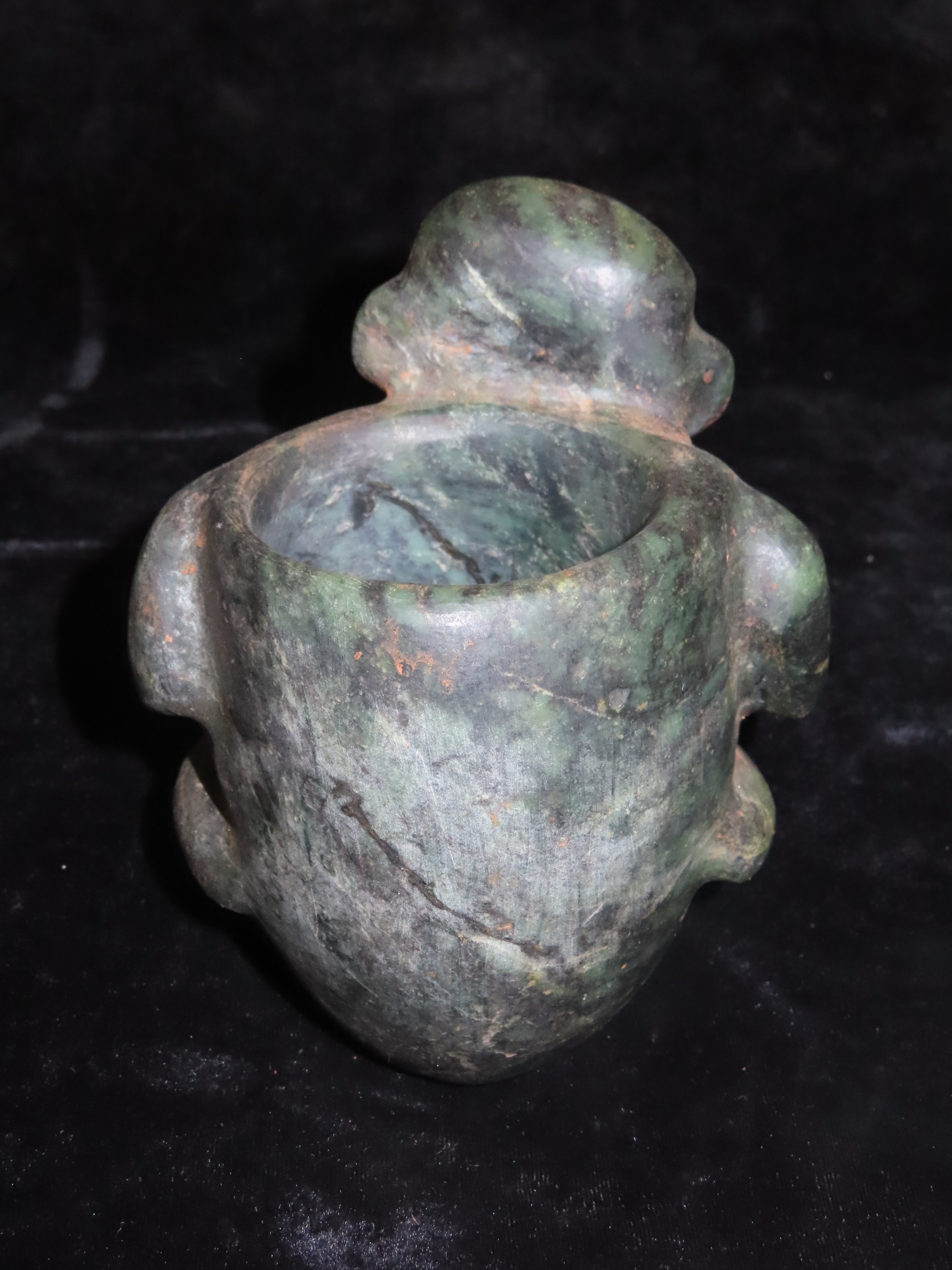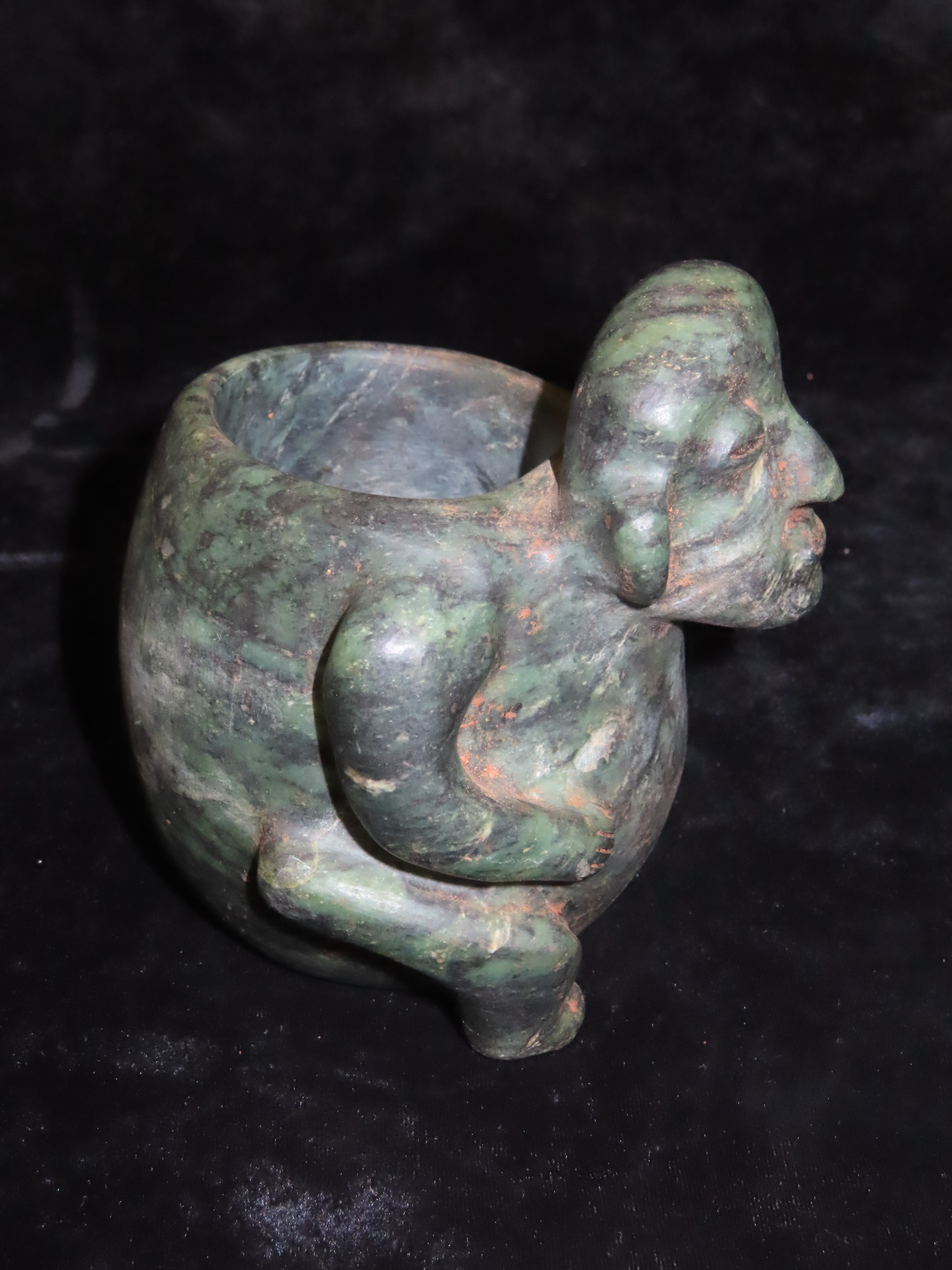 4 9/16″ x 5 3/8″ Pre-Columbian Human Bowl. Jade. Mesoamerica. Motley / Leithoff COA.