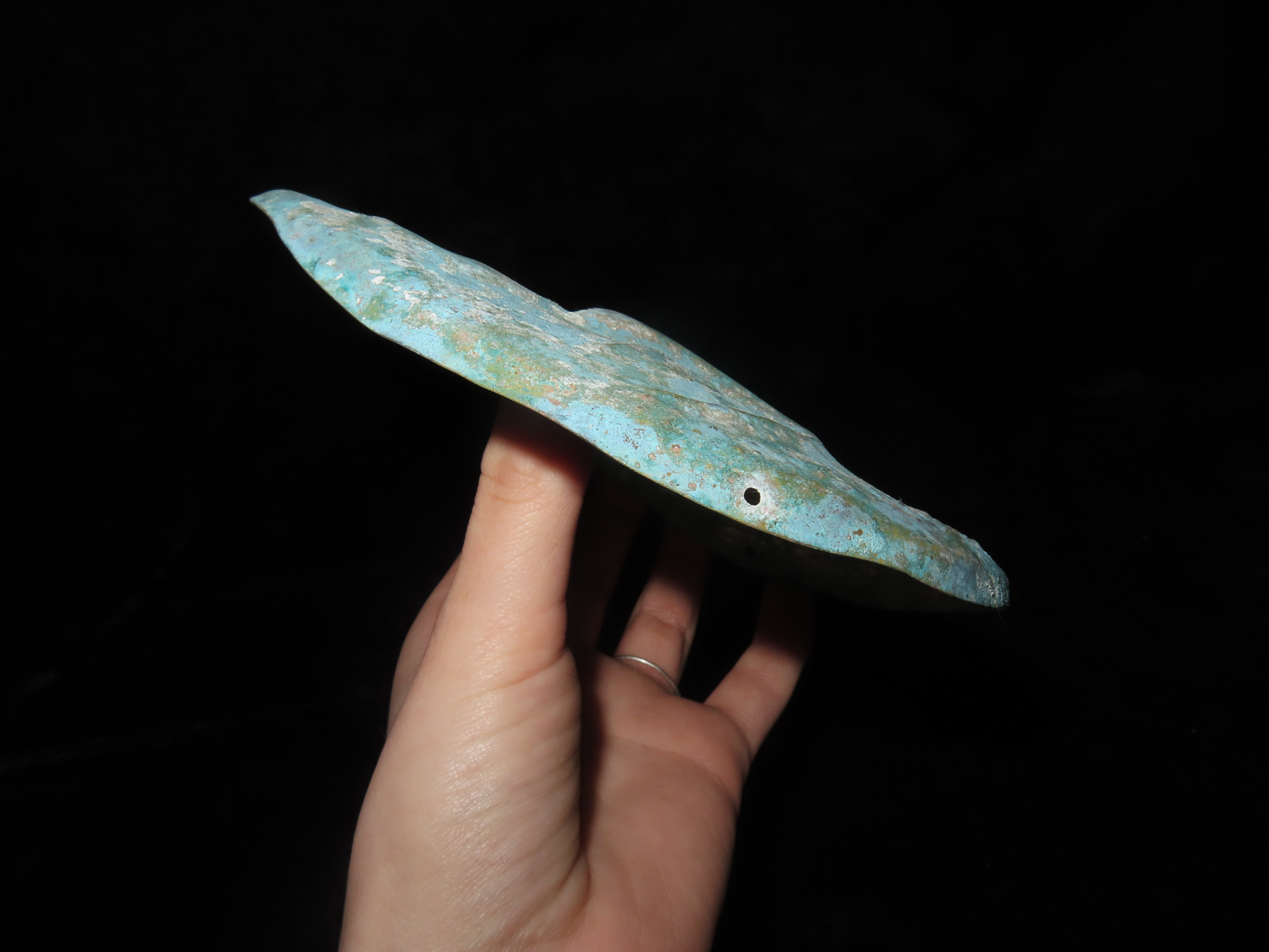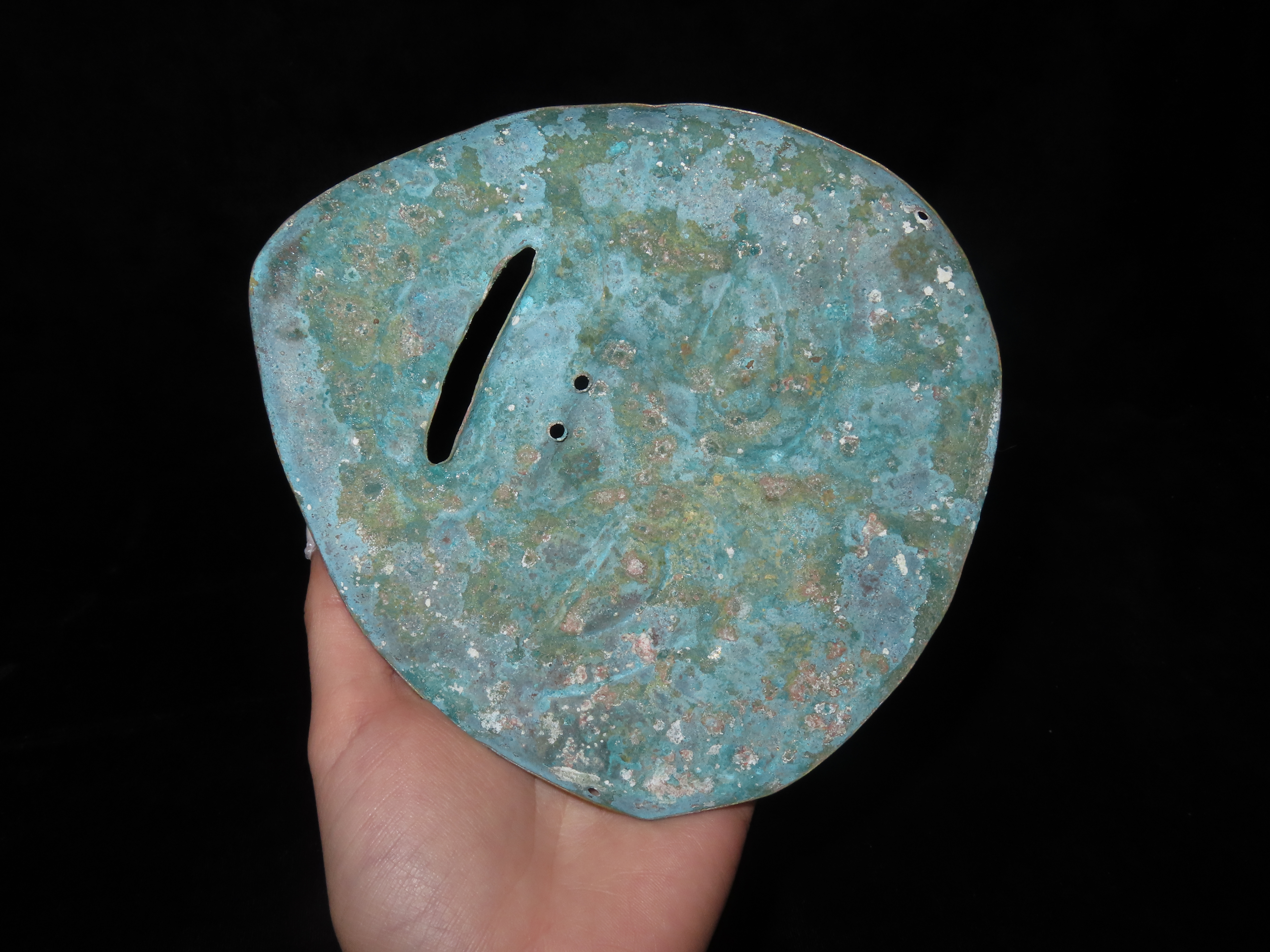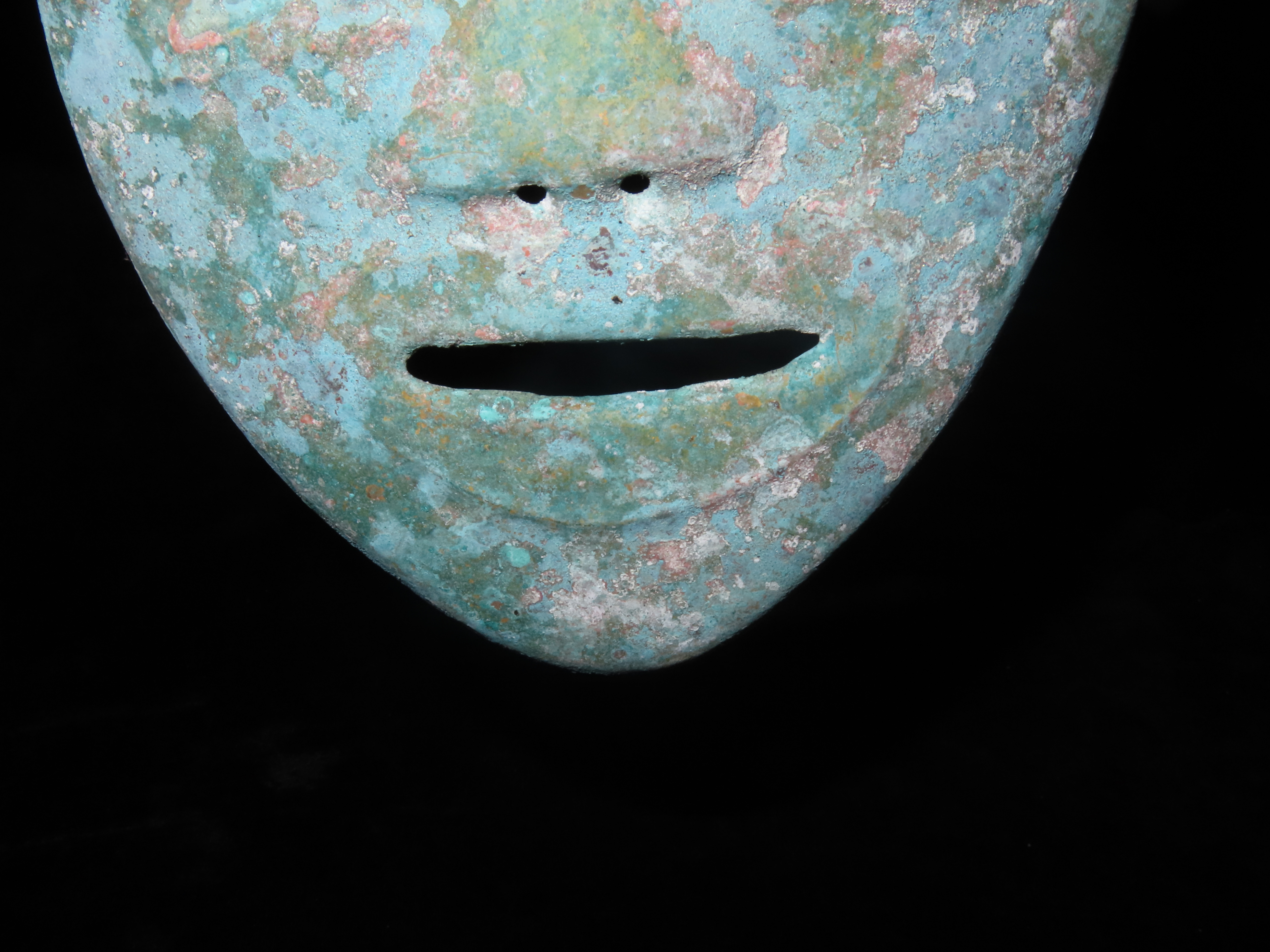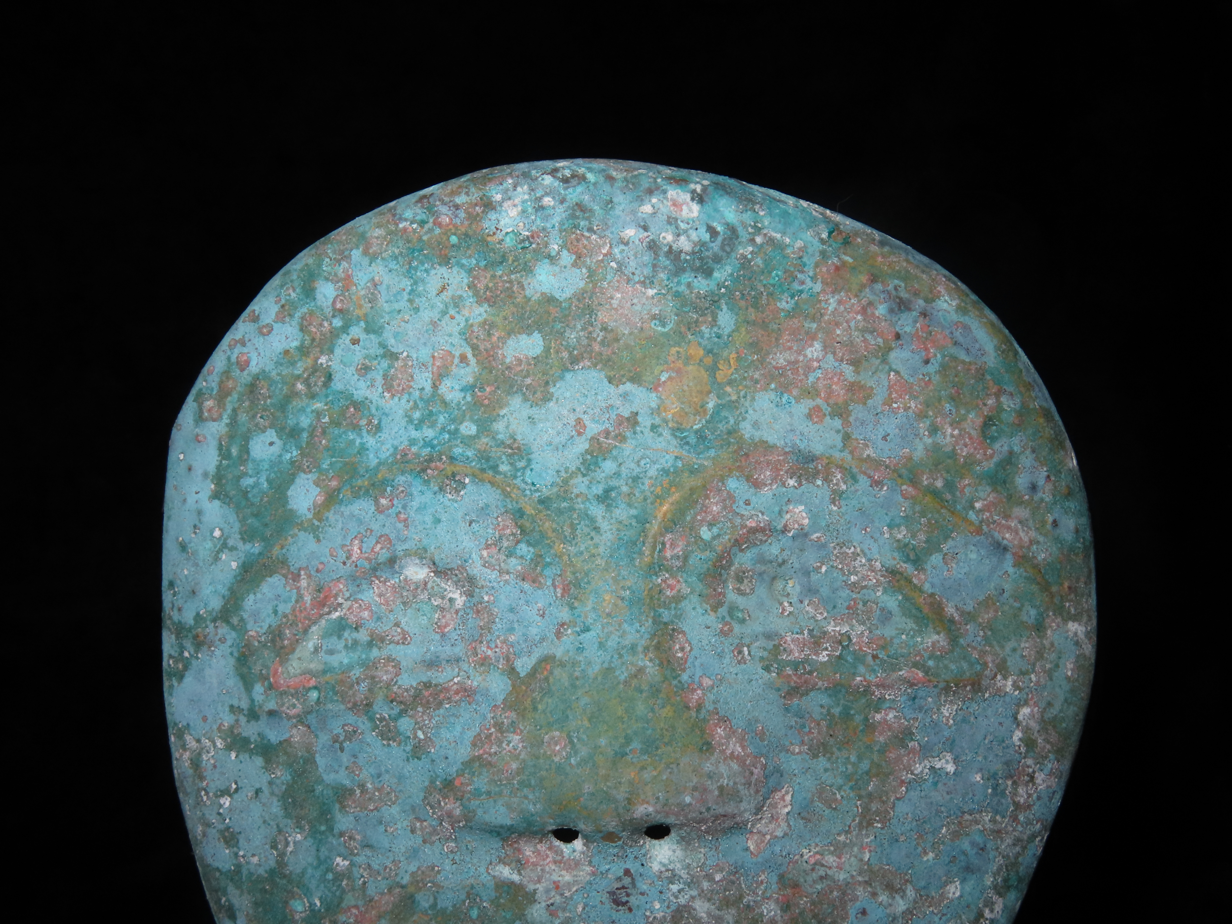 5 5/16″ x 6 1/4″ Face Mask. Copper. Peru. Motley / Leithoff COA.
