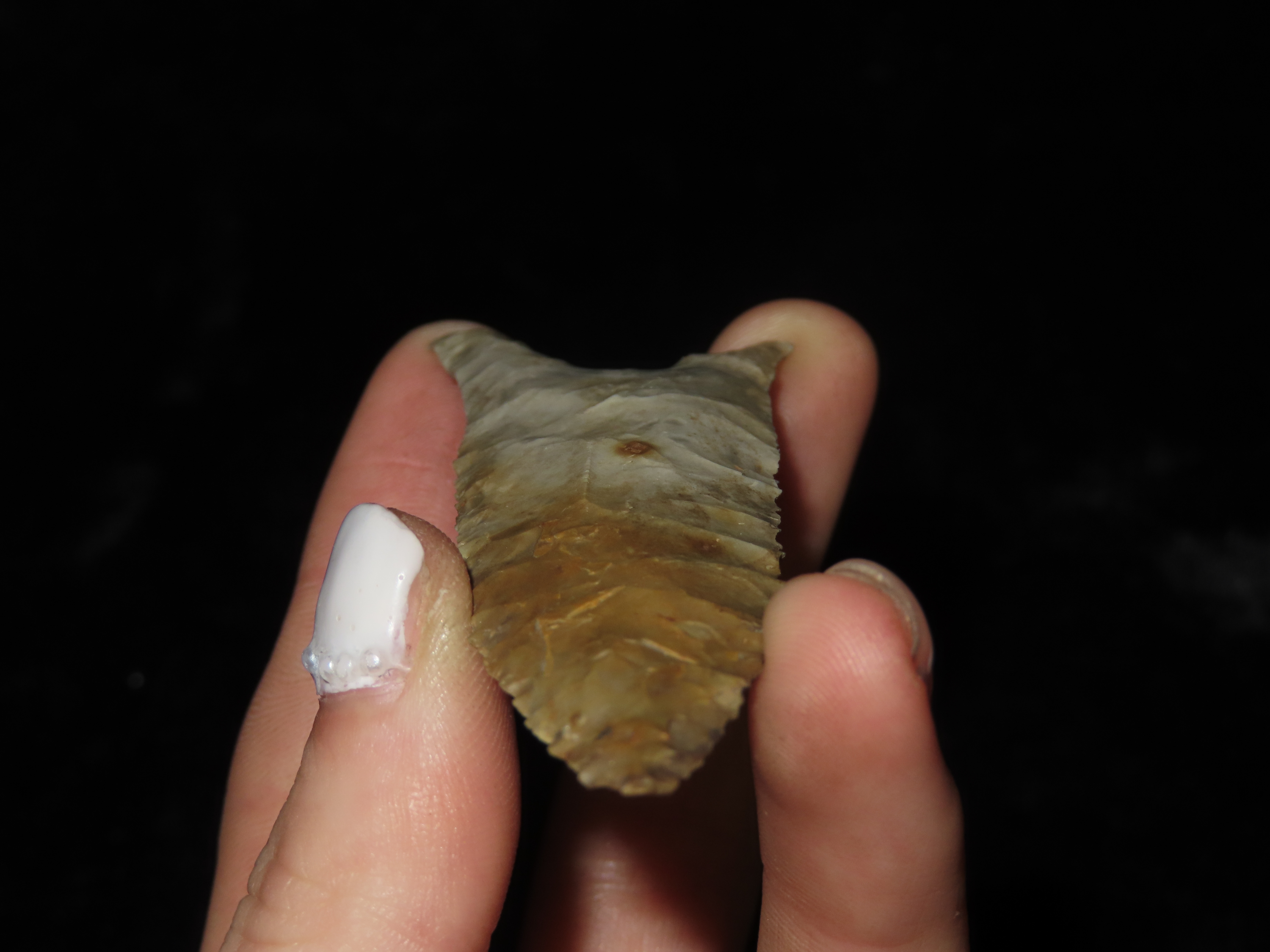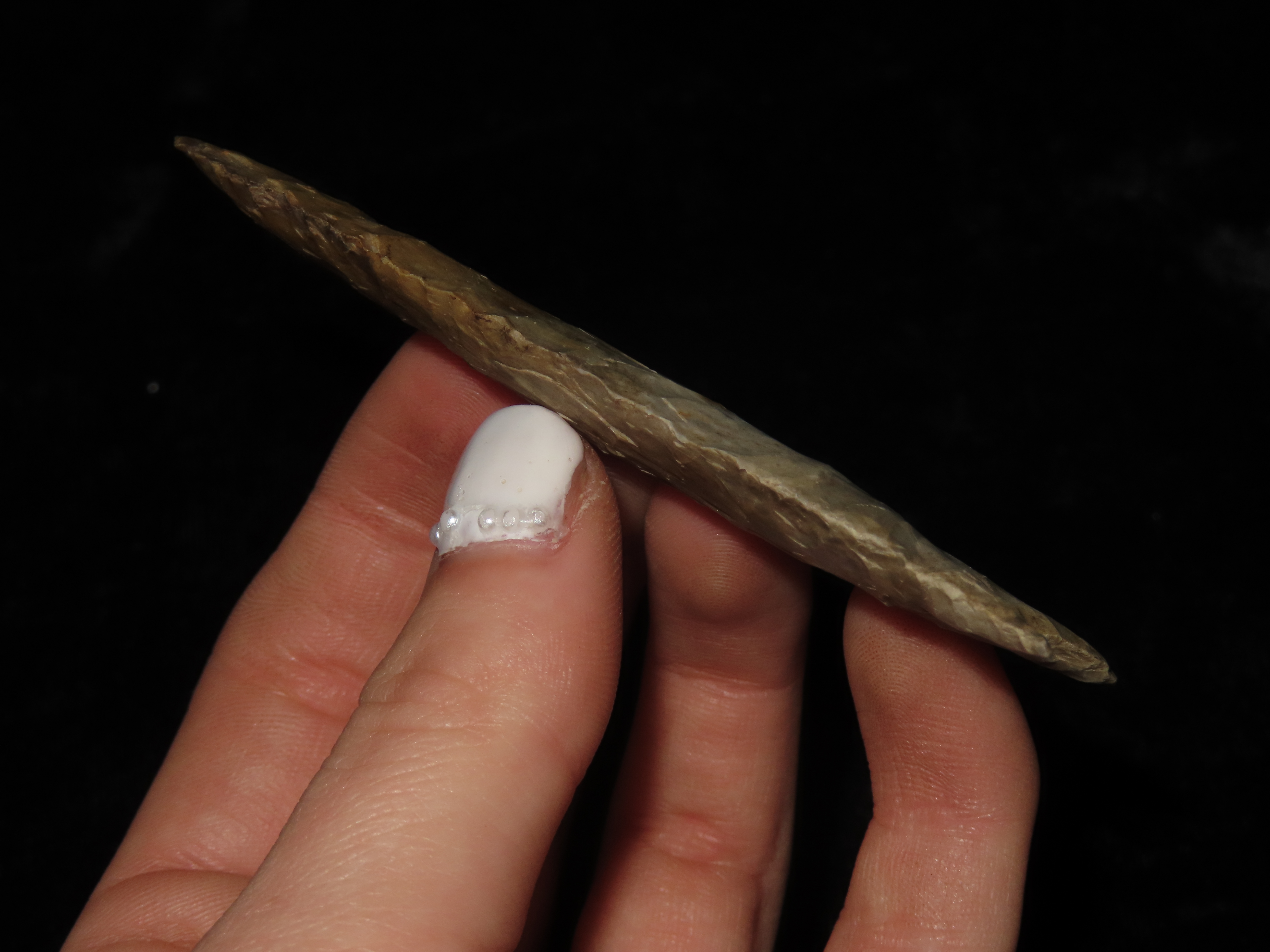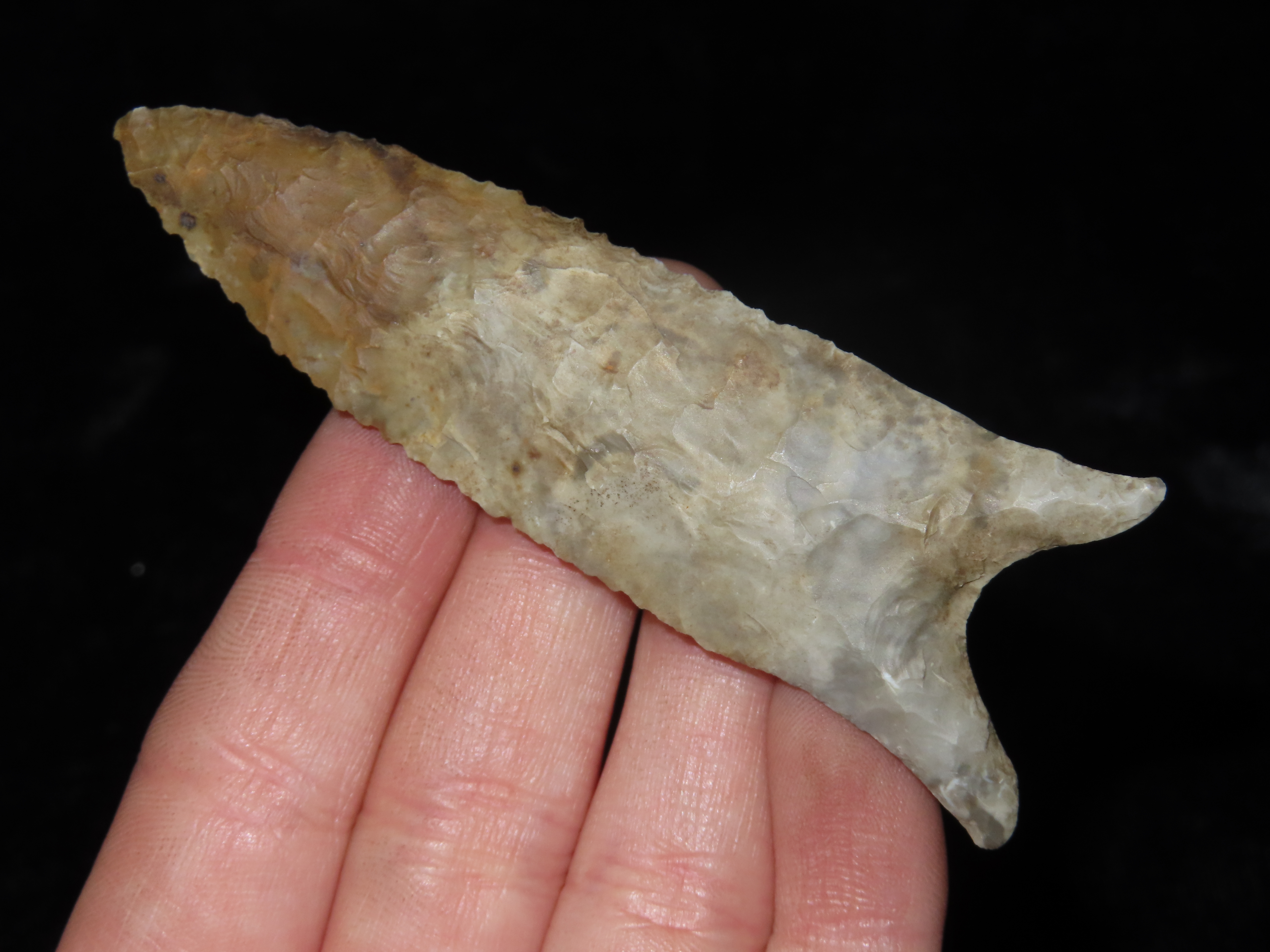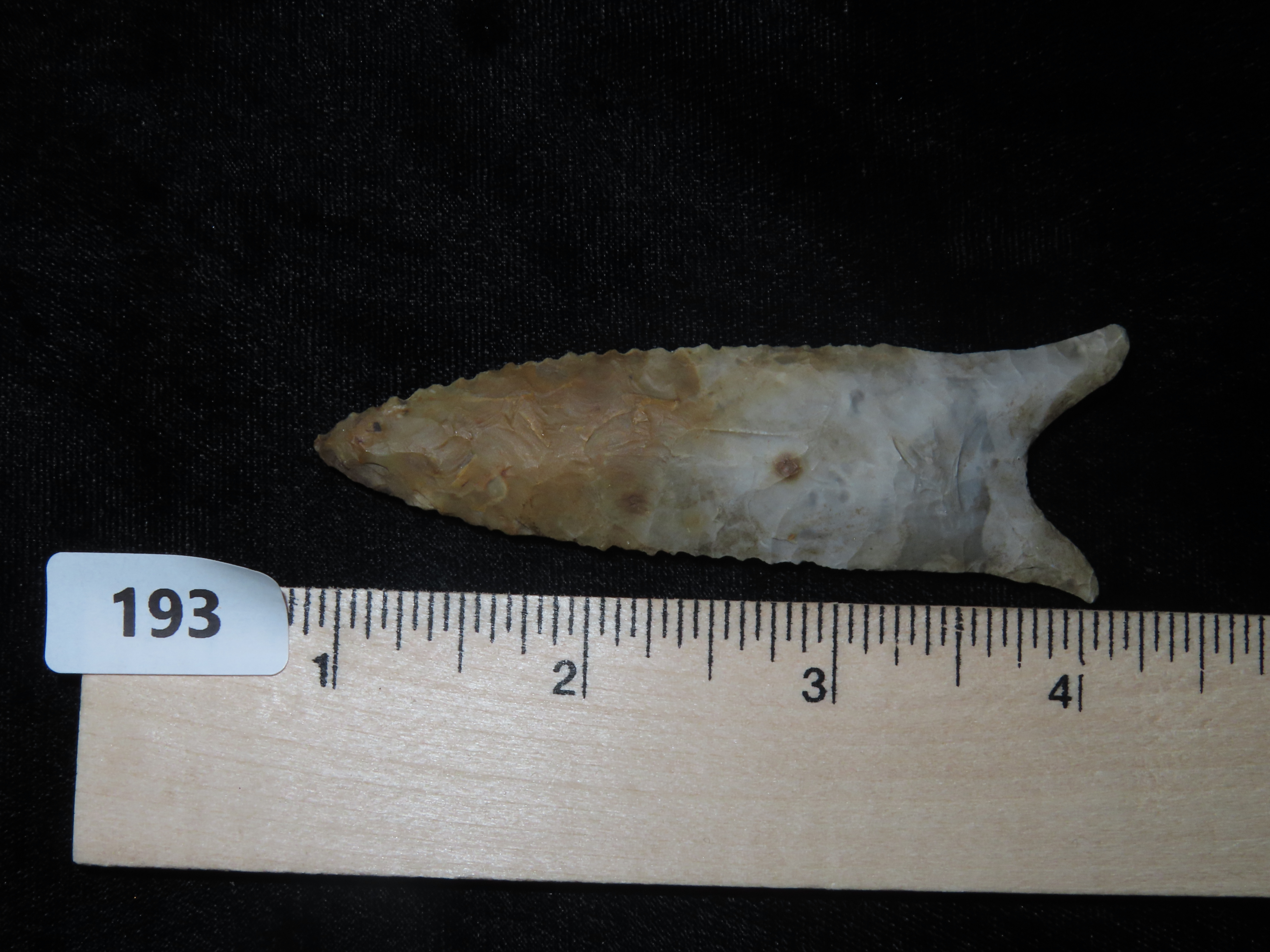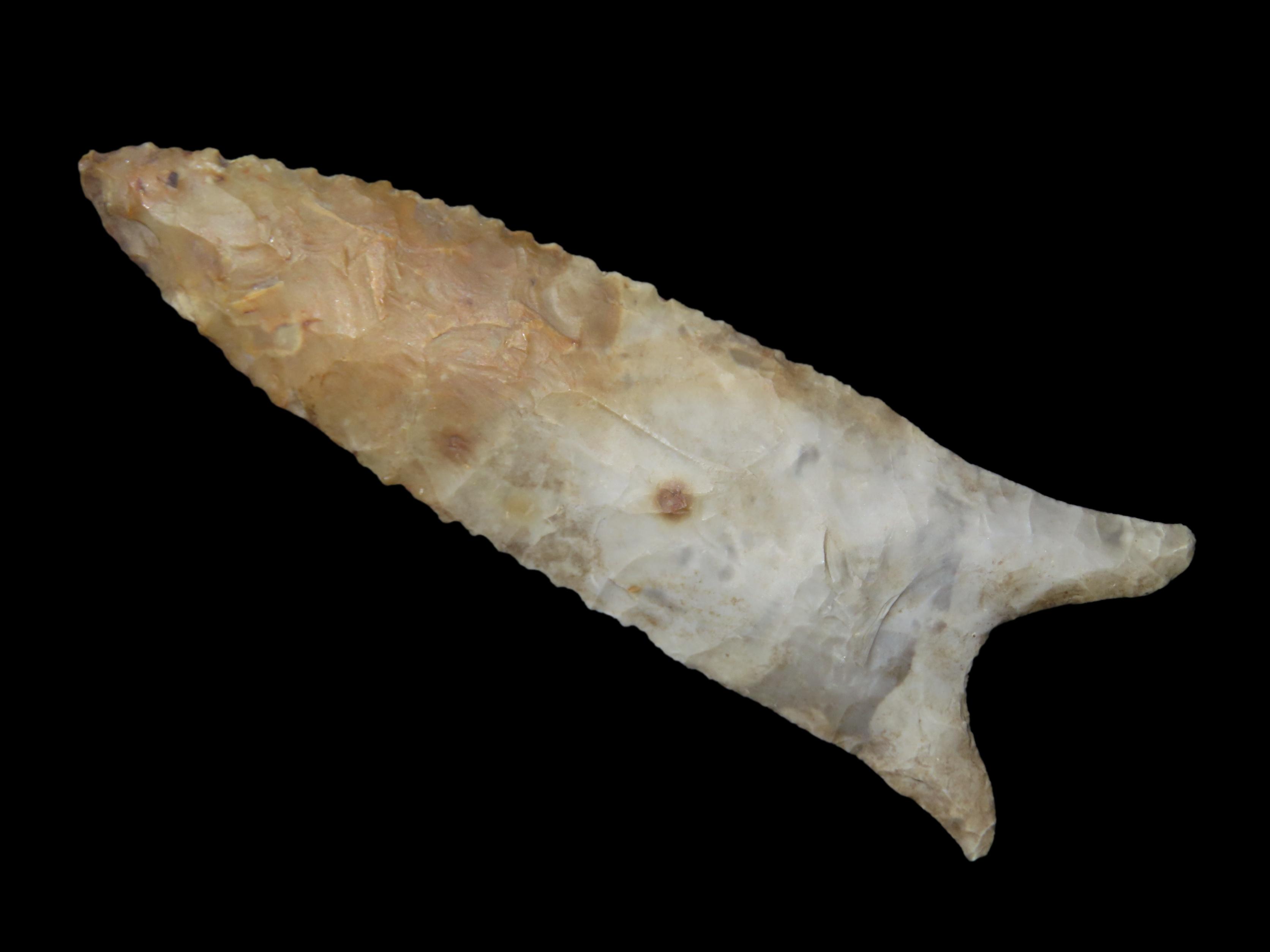 3 5/16″ x 1 1/8″ Dalton. Colorful Chert. Mason County, Illinois.