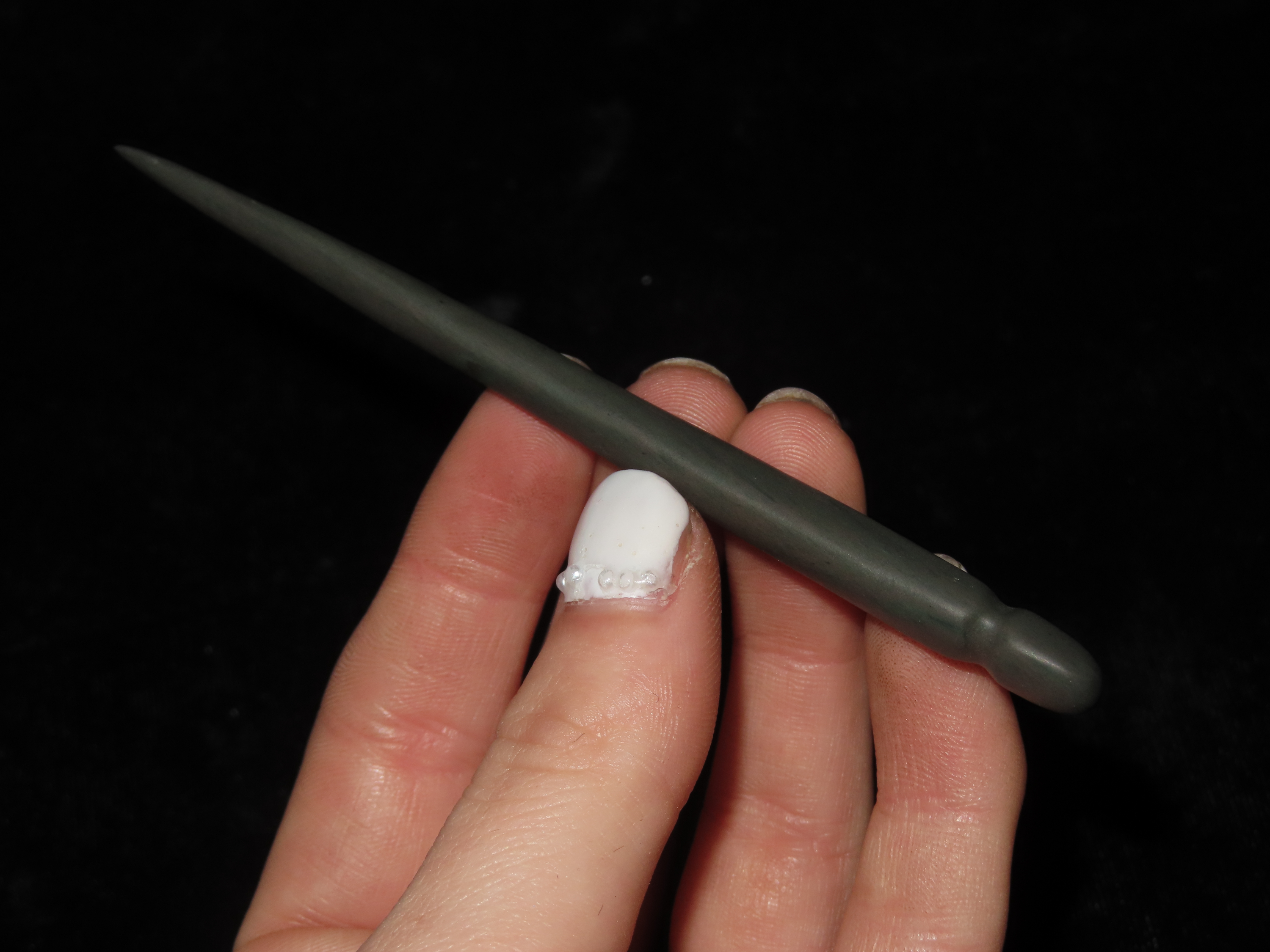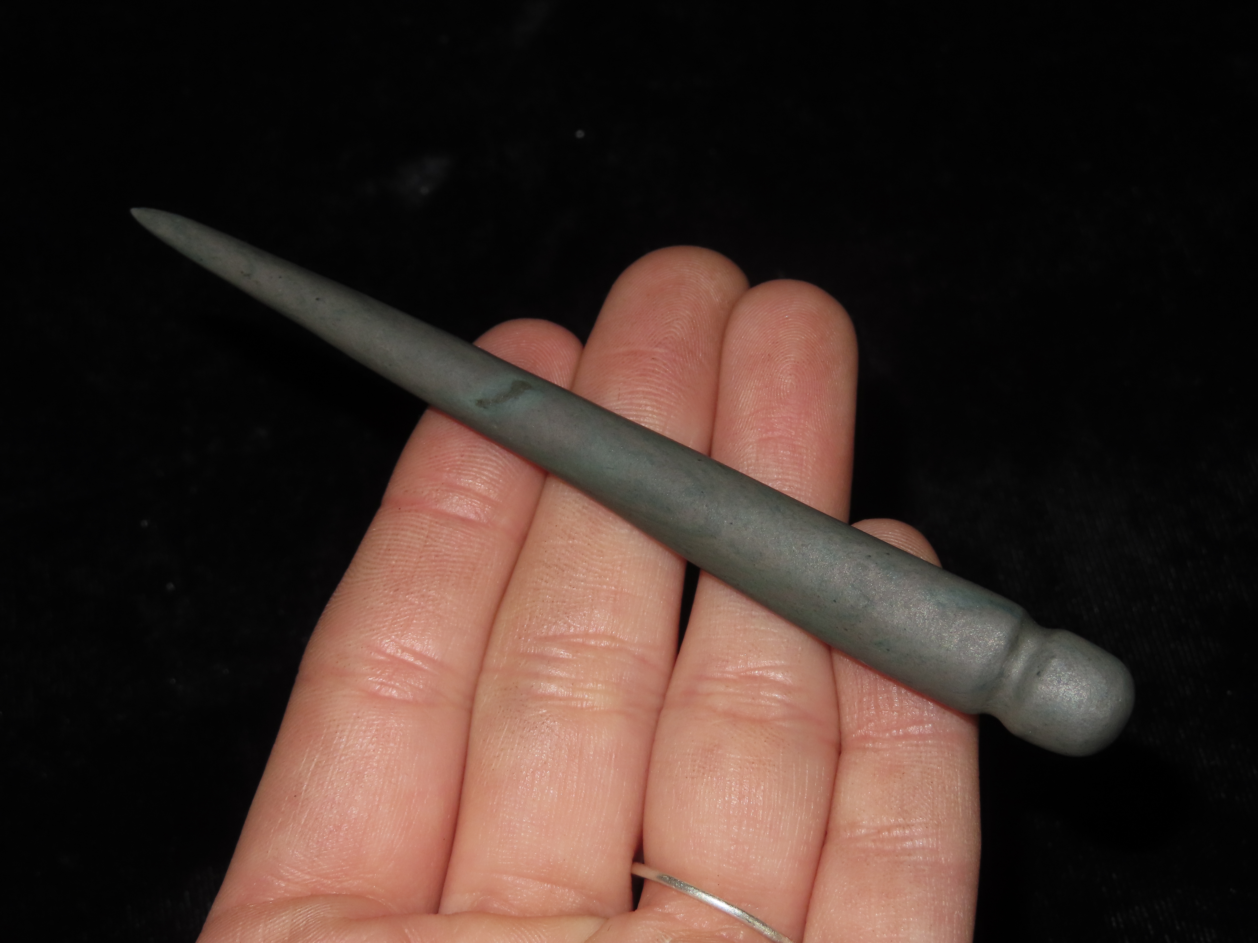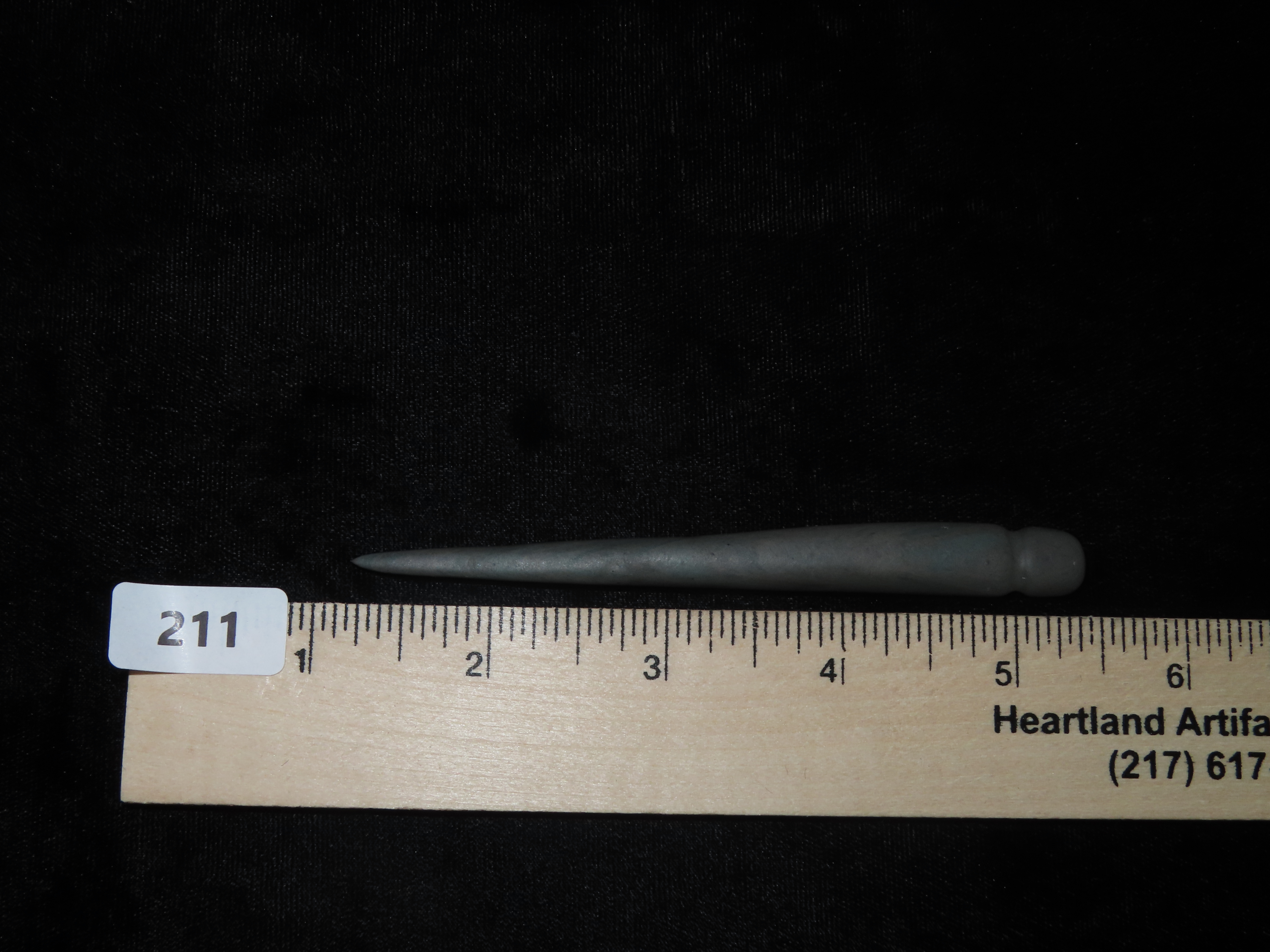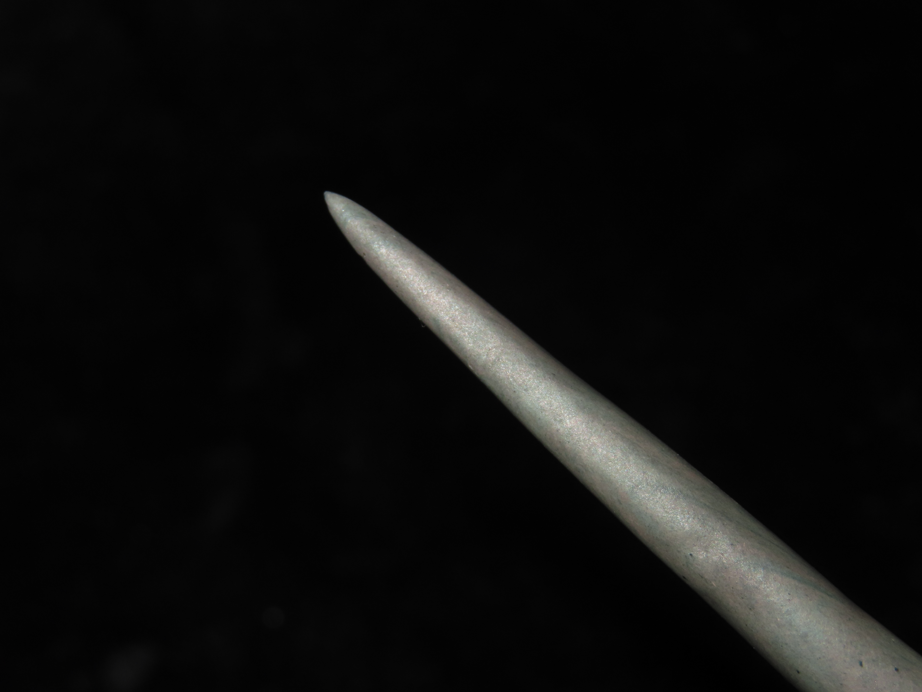 4 1/4″ Slate Needle. Alaska Eskimo. St. Lawrence Island, Alaska. Ex Litherland Collection.