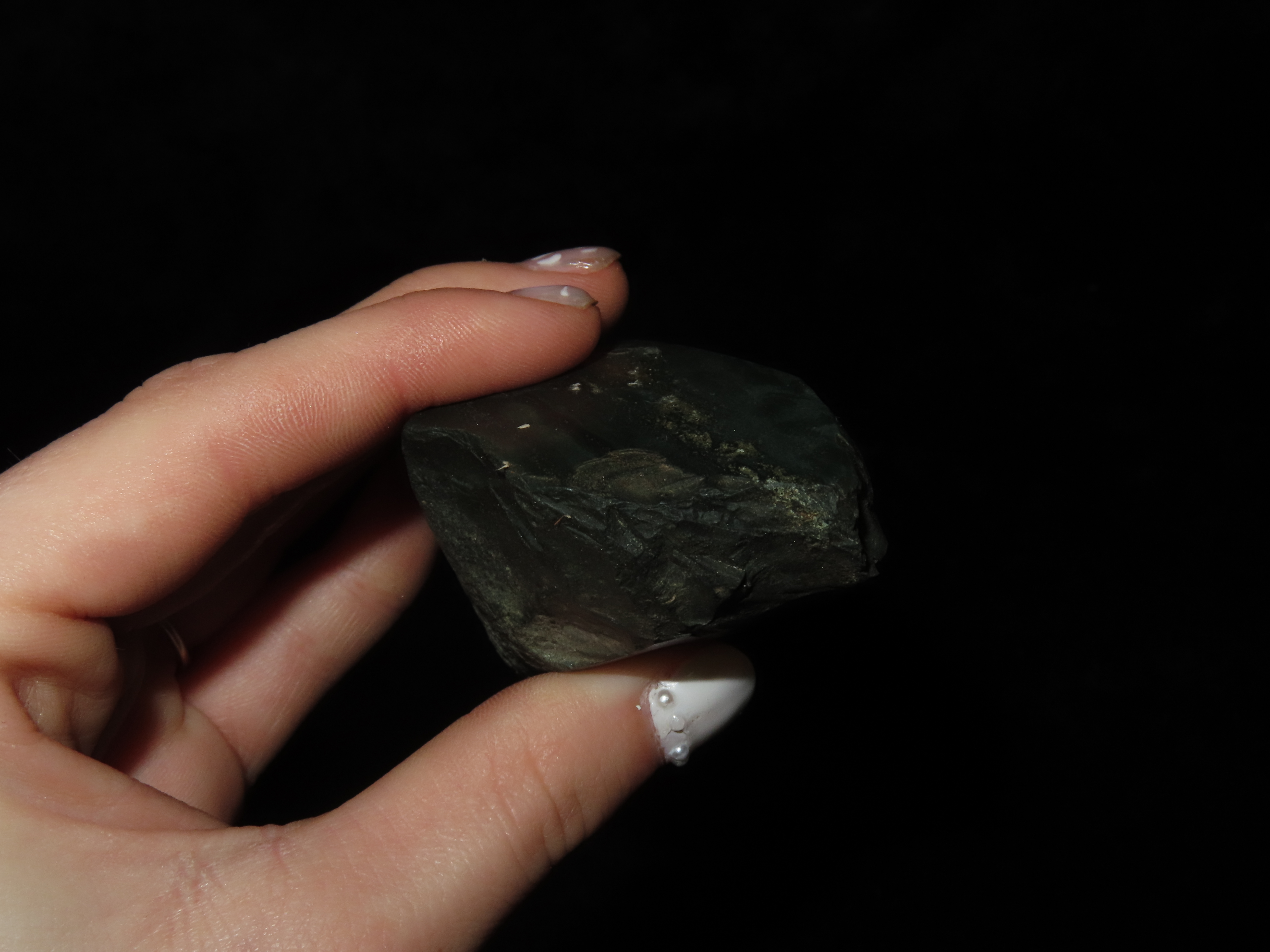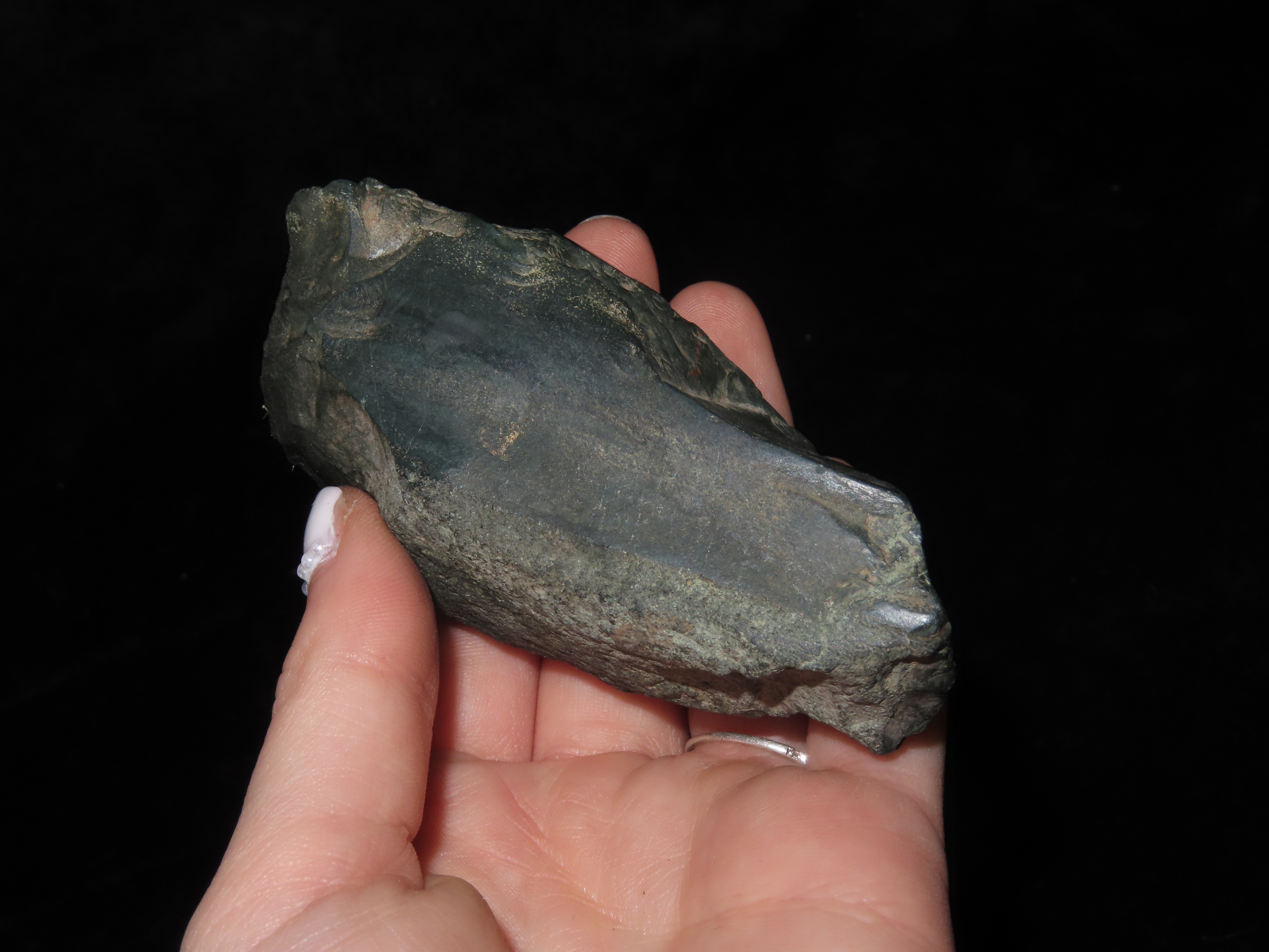 3 3/4″ Nephrite Jade Celt. St. Lawrence Island, Alaska. Ex Litherland Collection.