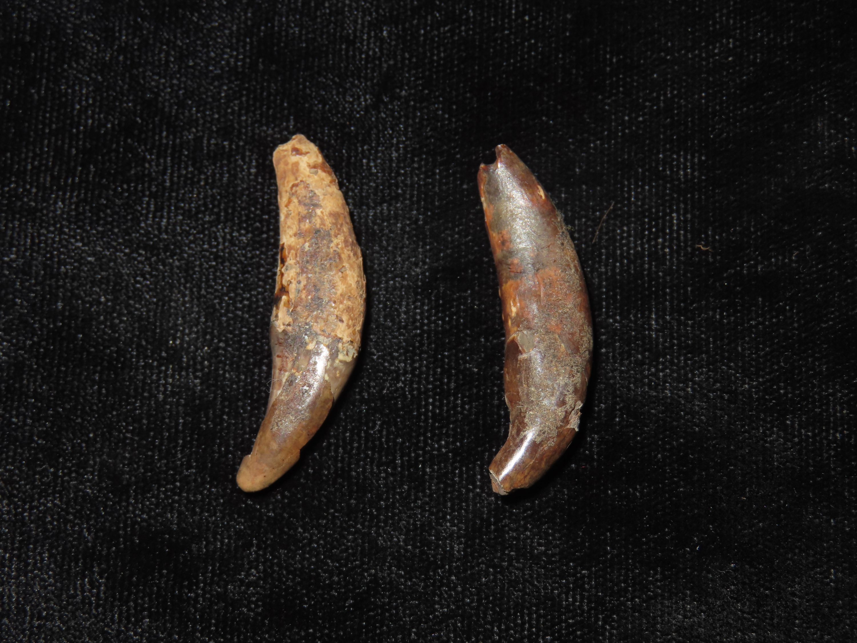 1 3/8″ long each. Pair of Canine Teeth. Eskimo/Inuit. St. Lawrence Island, Alaska. Ex Litherland Collection.