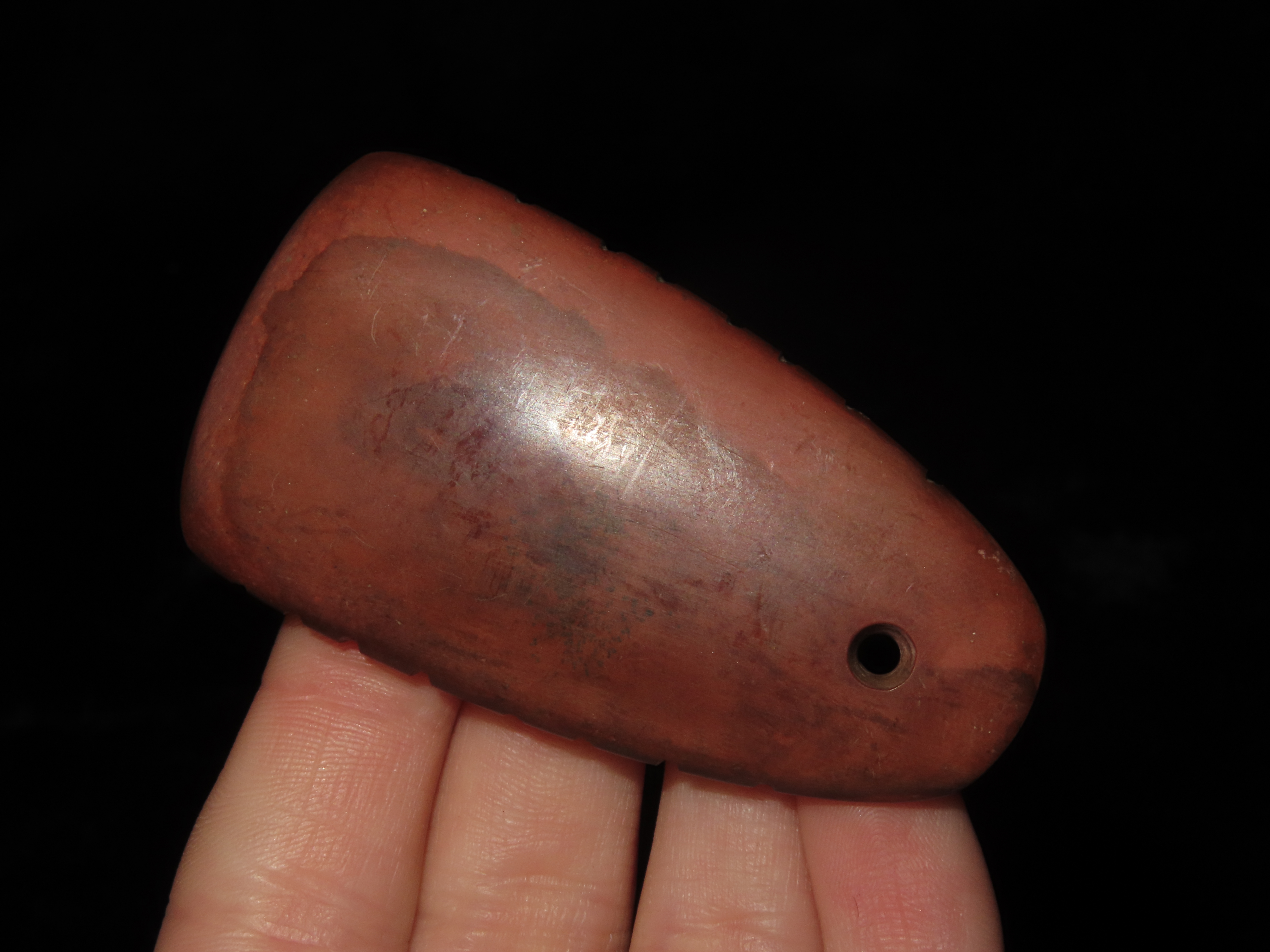 Historic 1900’s Red Catlinite Pendant, 16 Tally Marks on the Edges, from Minnesota