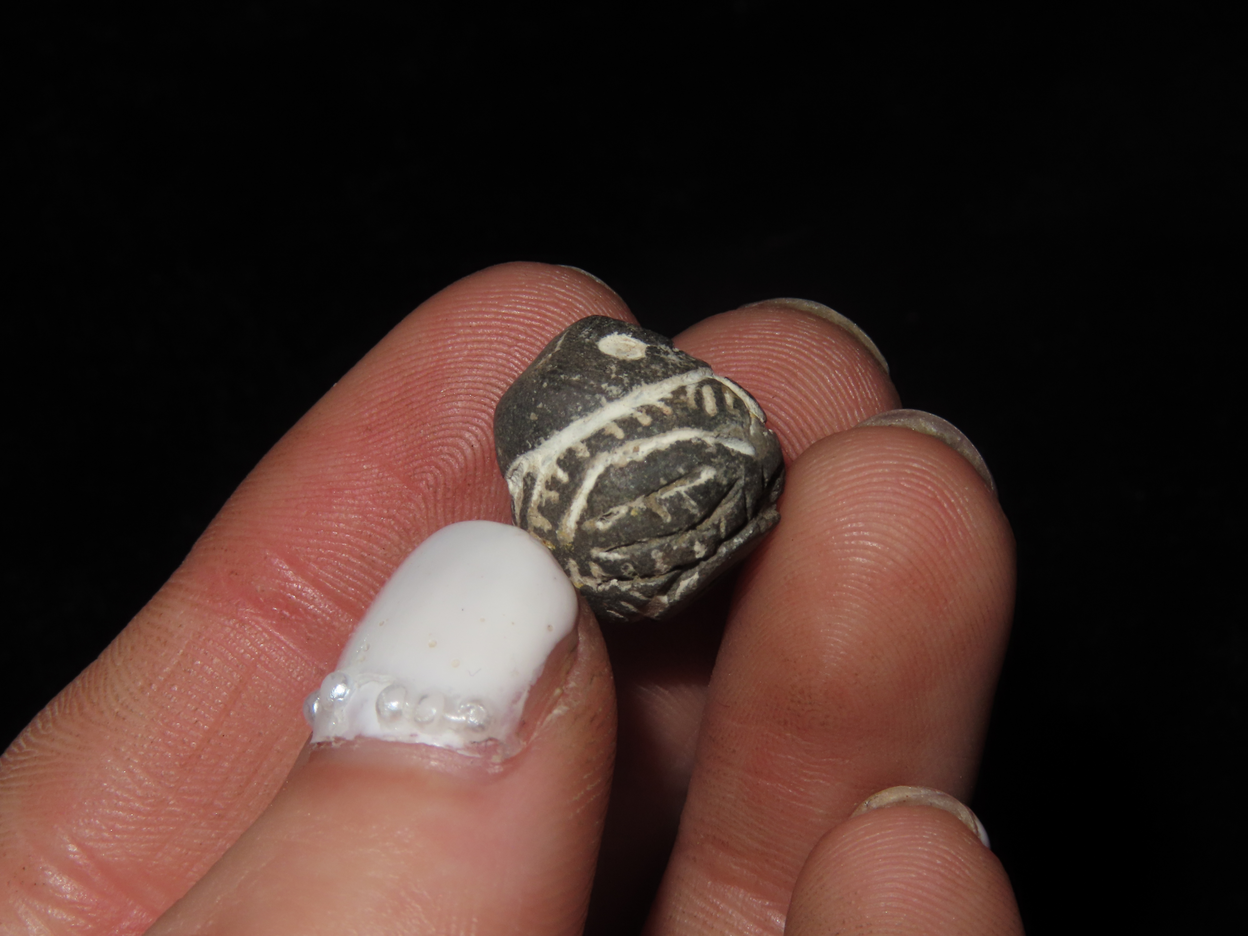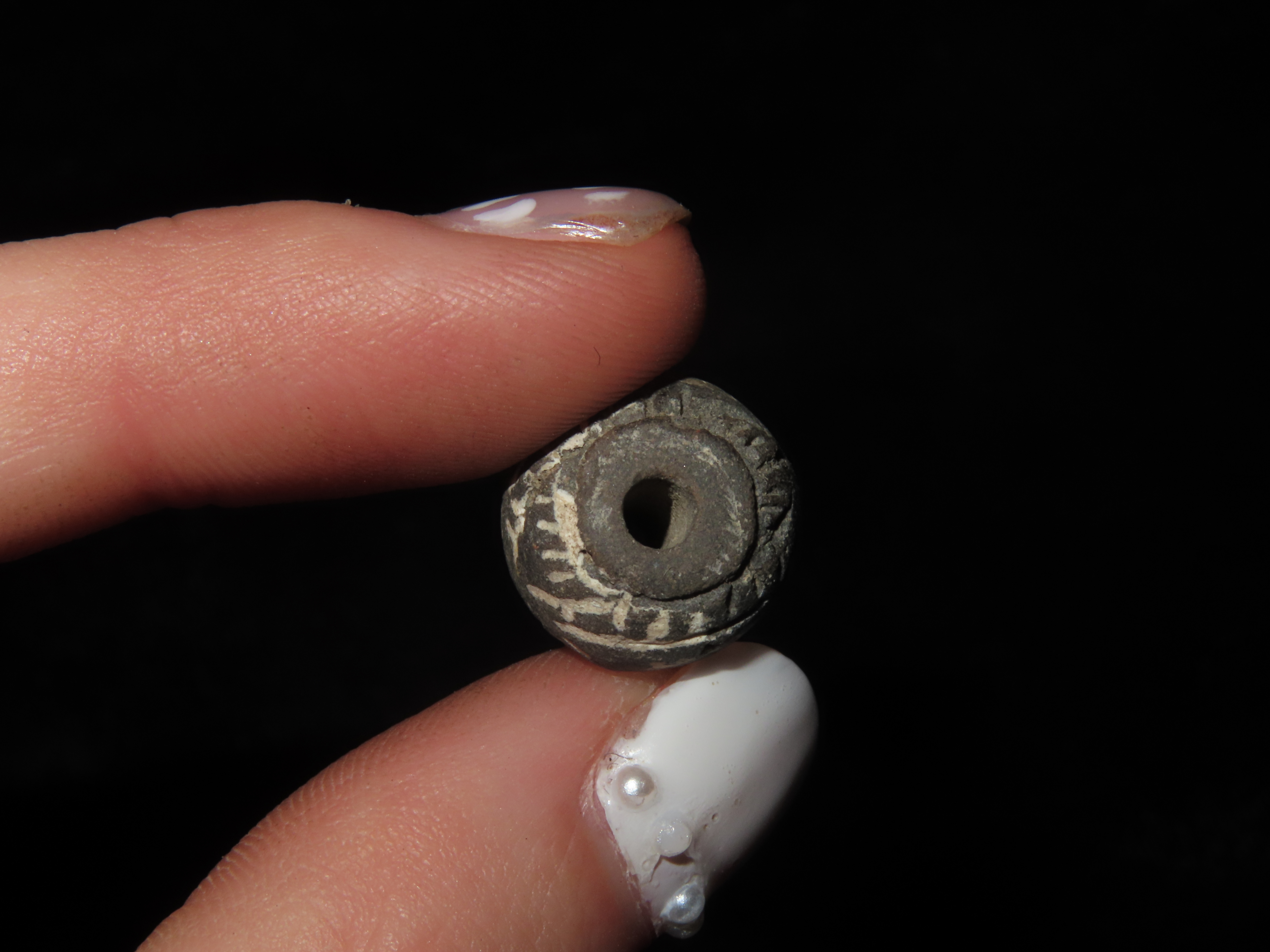 Pre-Columbian Bead. Nicely Engraved. Machalilla Culture. 1500 BCE to 1100 BCE. Found in Ecuador.