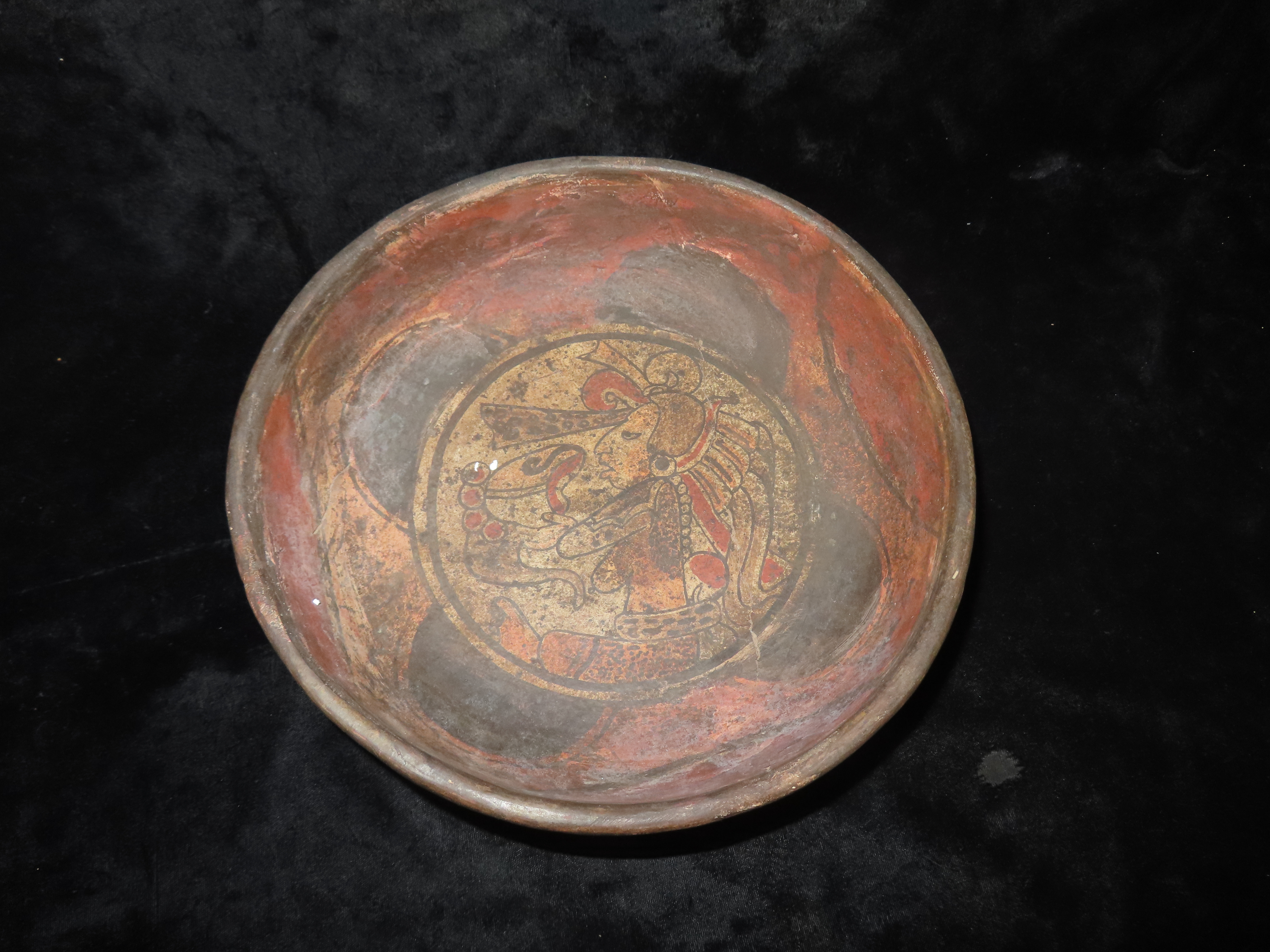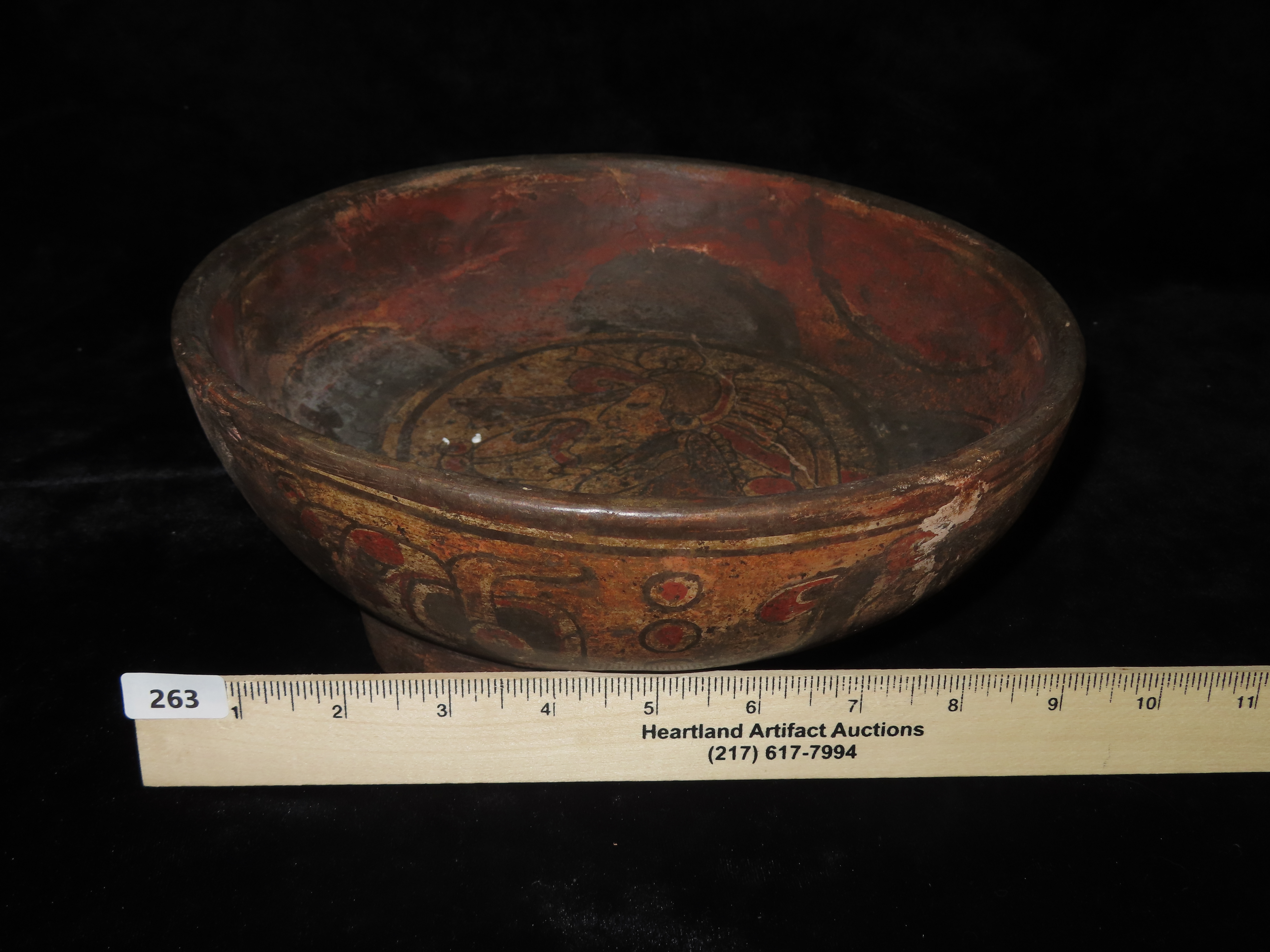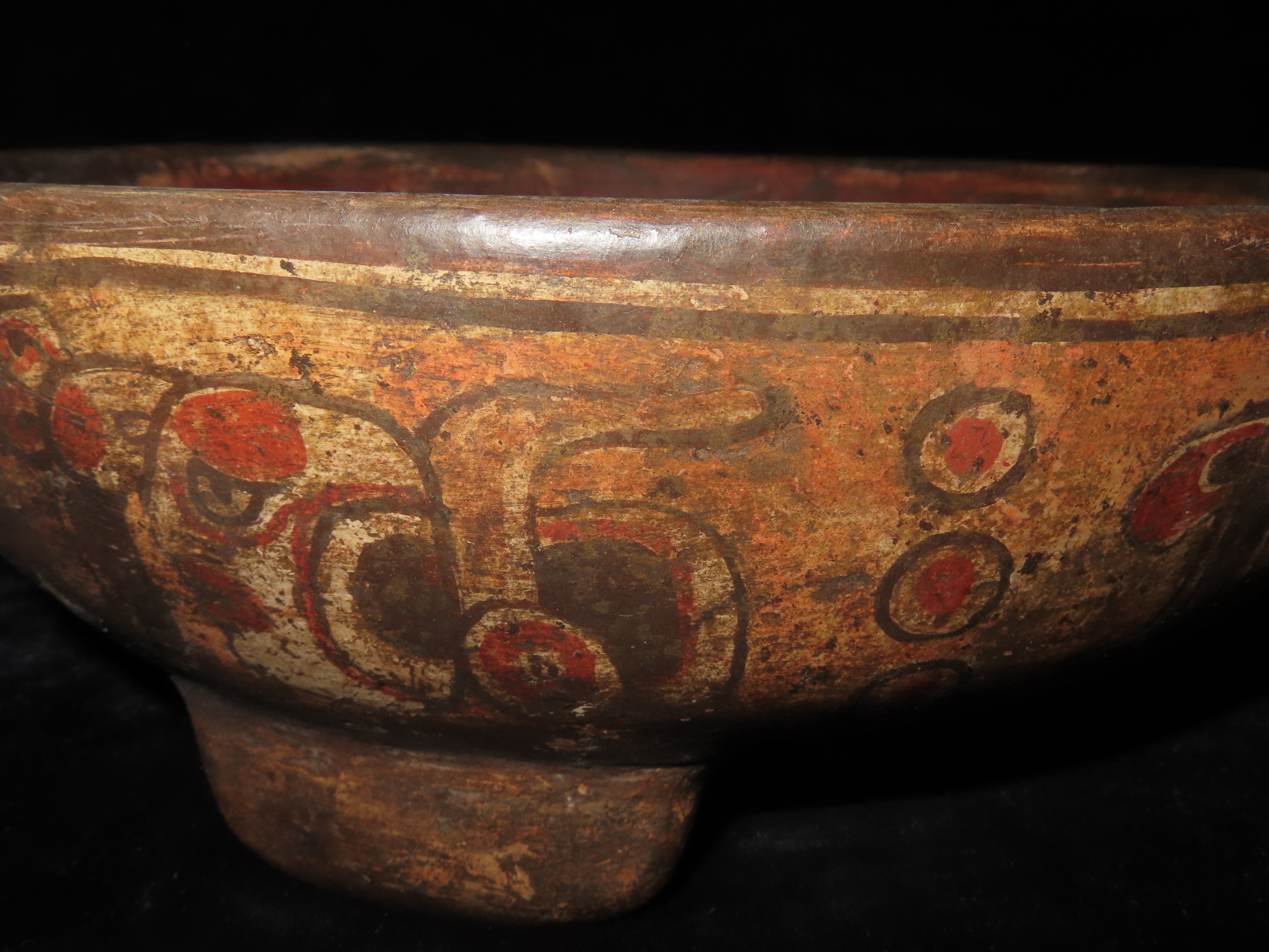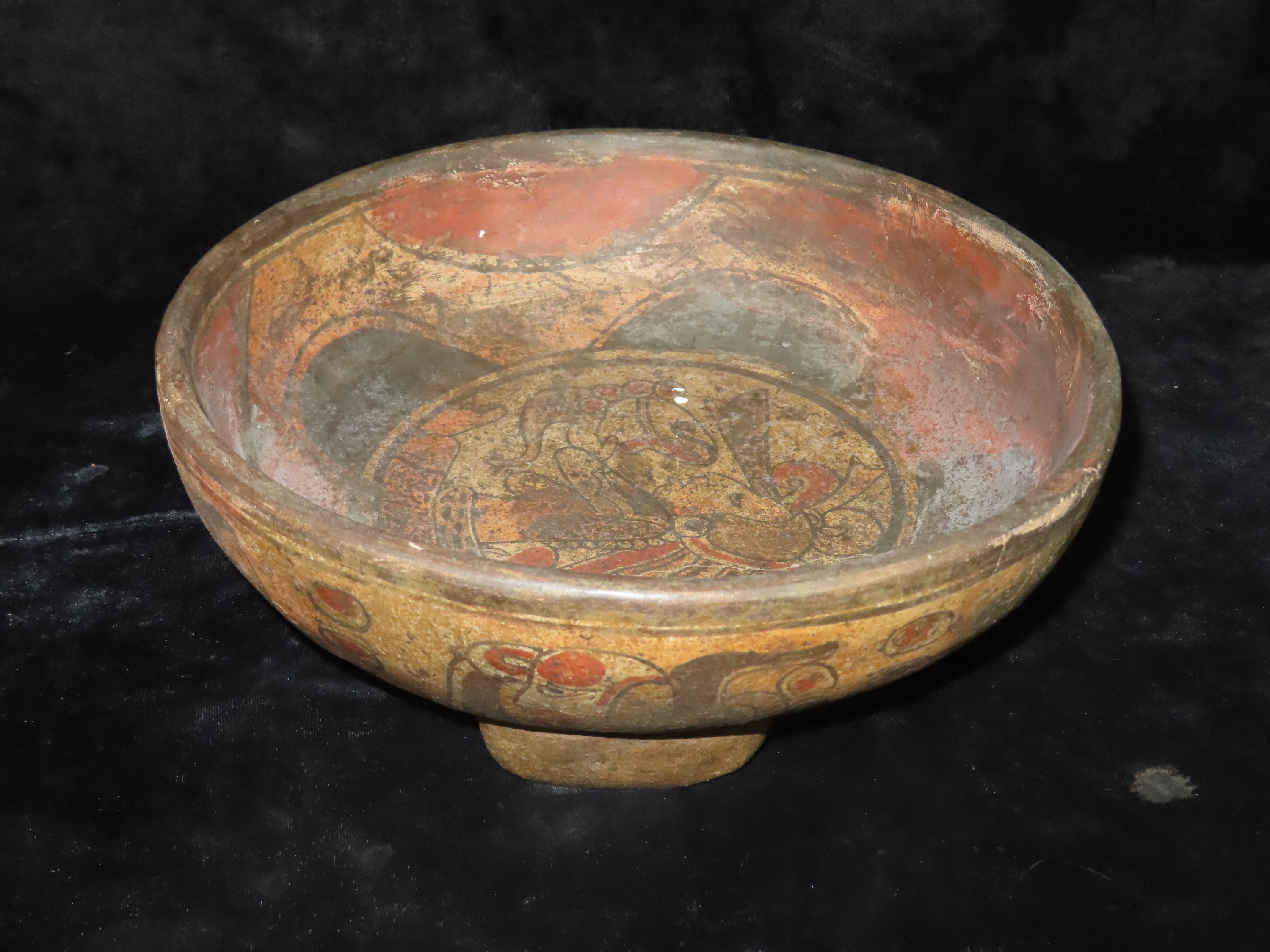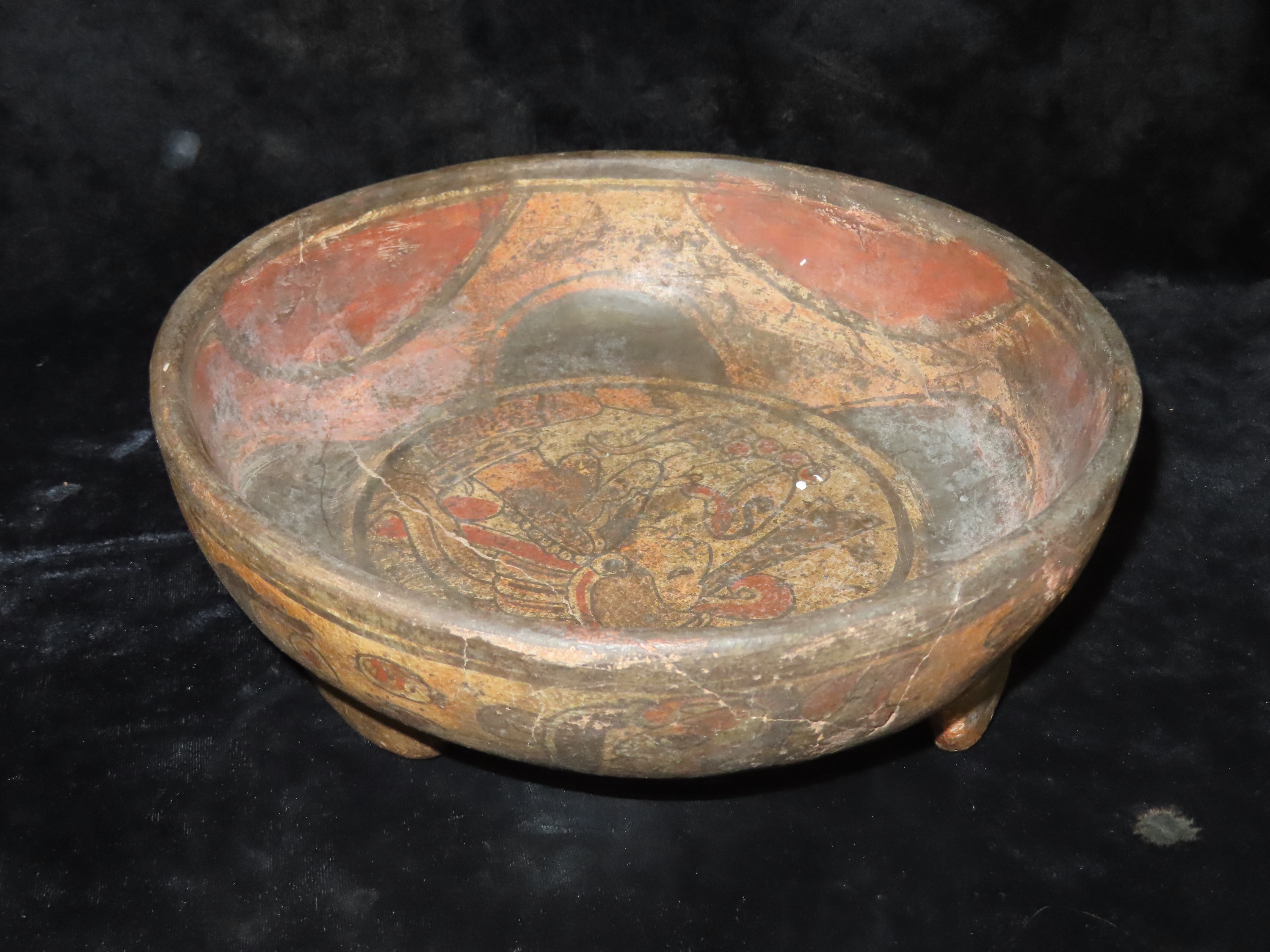 10 1/4″ Pre-Columbian Pottery. Mayan Tri-Leg Bowl. Restored. Great Painted Design.