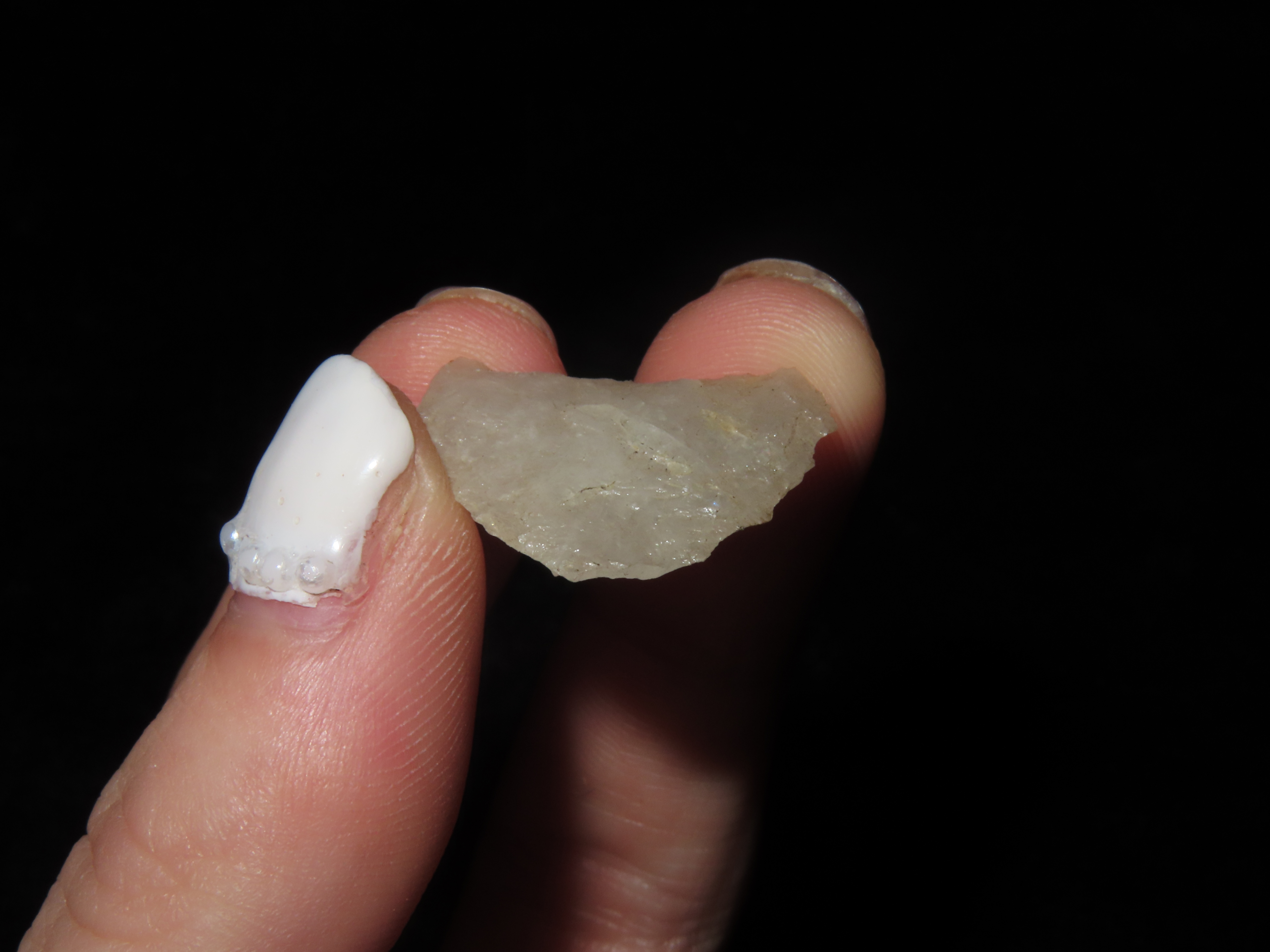 3/4" Late Almance/Clovis. 12,000-10,000 BP. Crystal Quartz. Marvin Farm/Beaver Site. Attleboro, Massachusetts. Found in 1920-1930. Ex Peter Engstrom/Dr. Robbins.