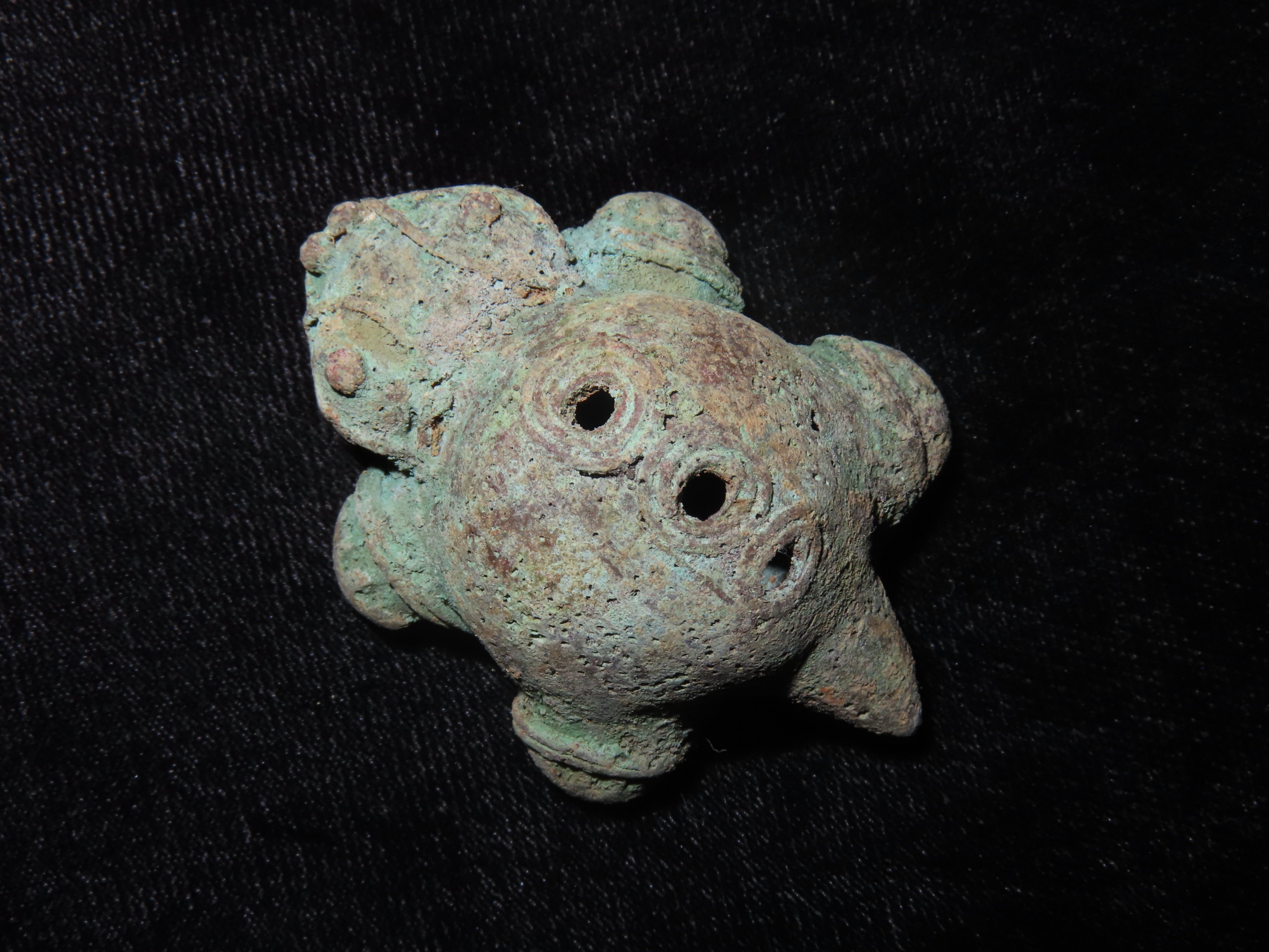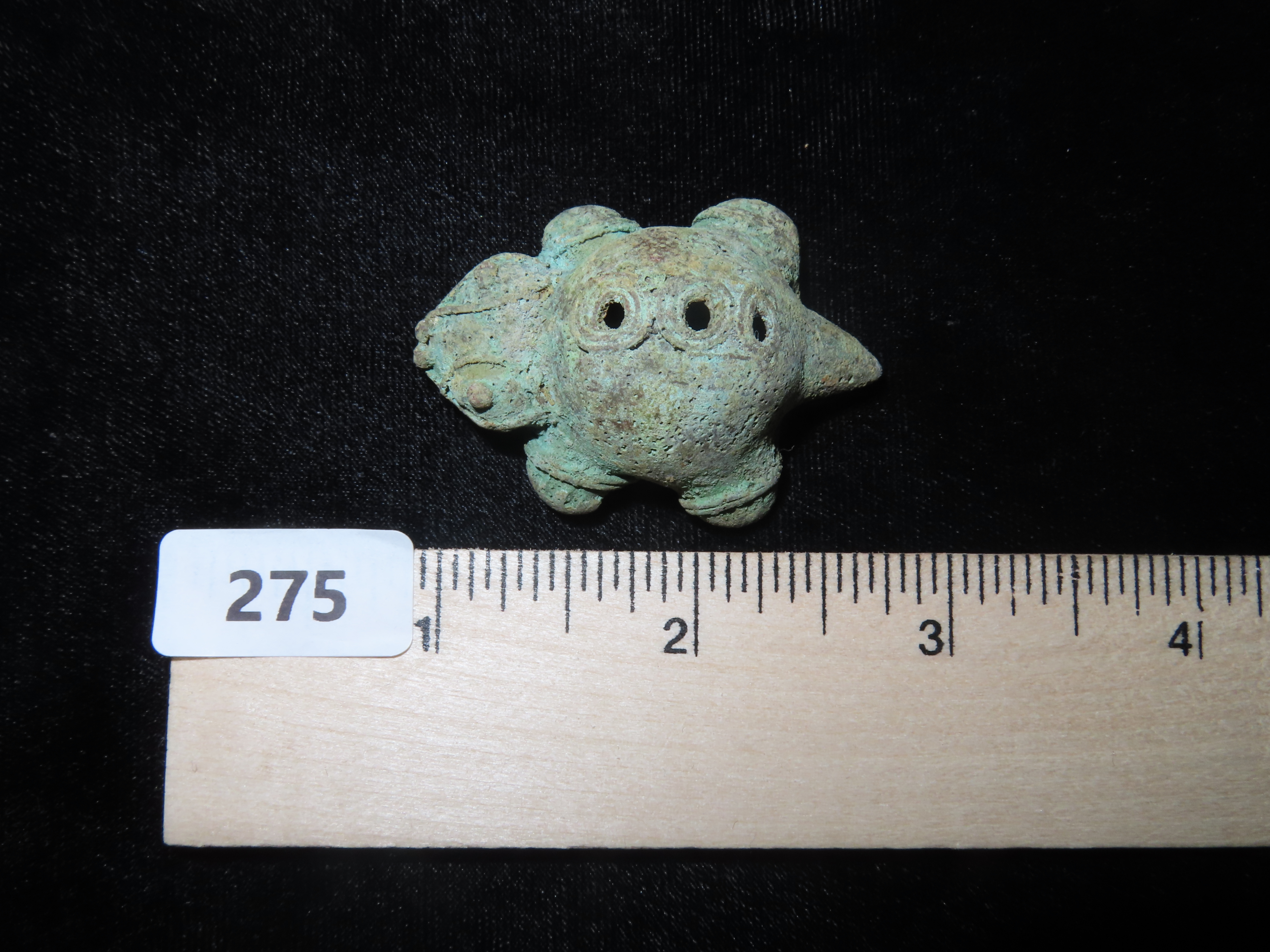 1 7/8″ x 1 1/4″ Pre-Columbian Bird Effigy Pendant. Copper. Costa Rica.