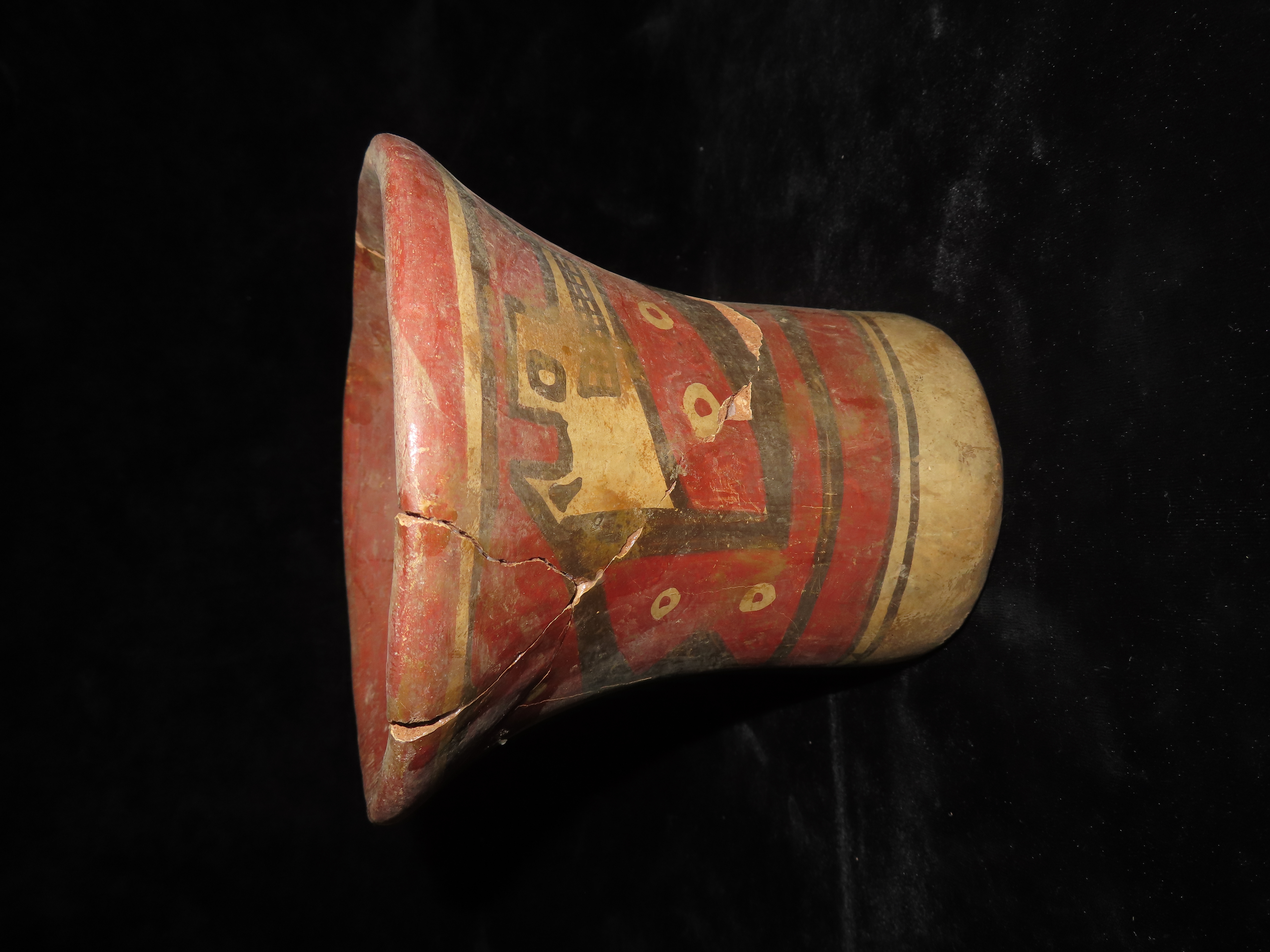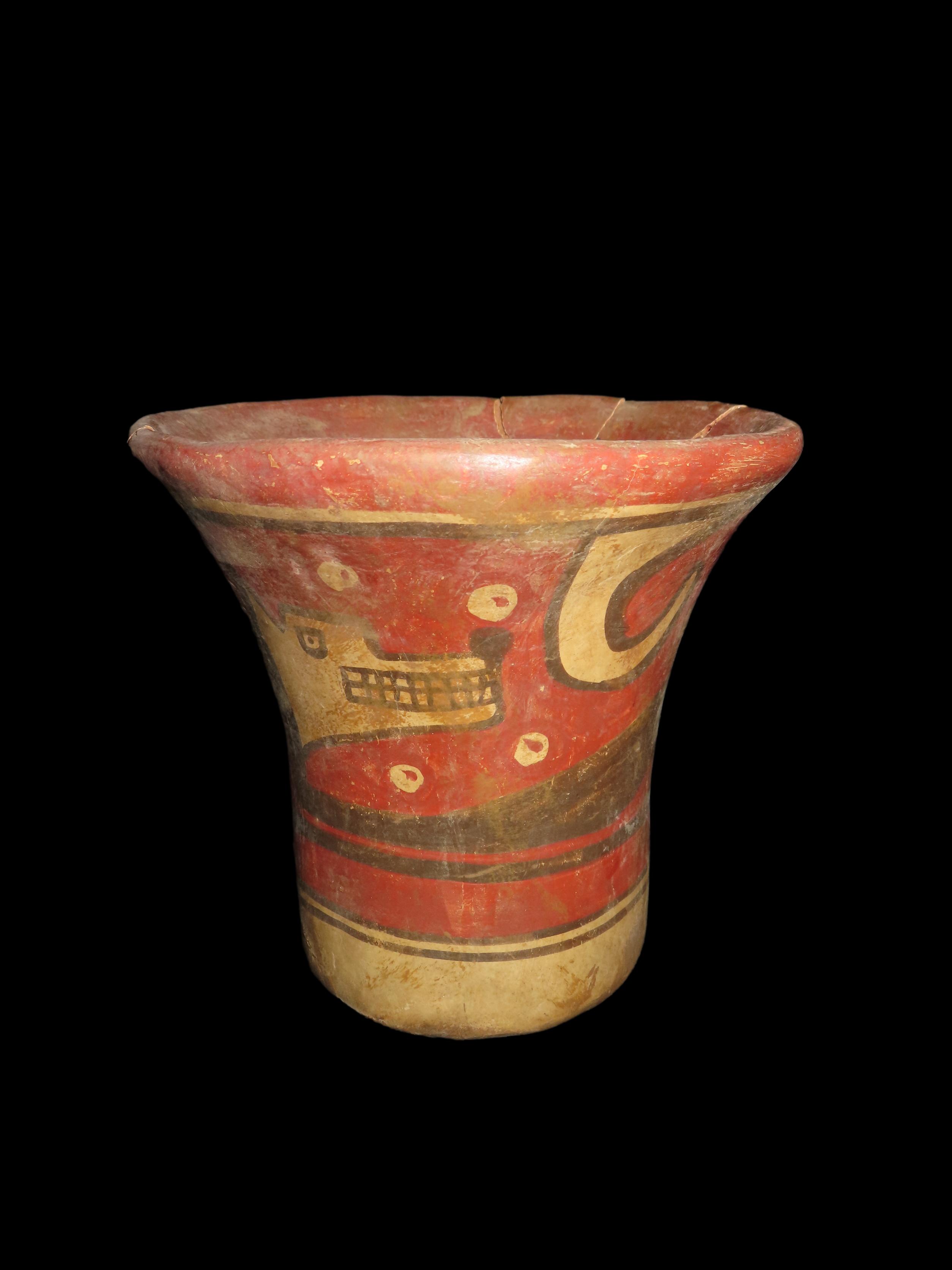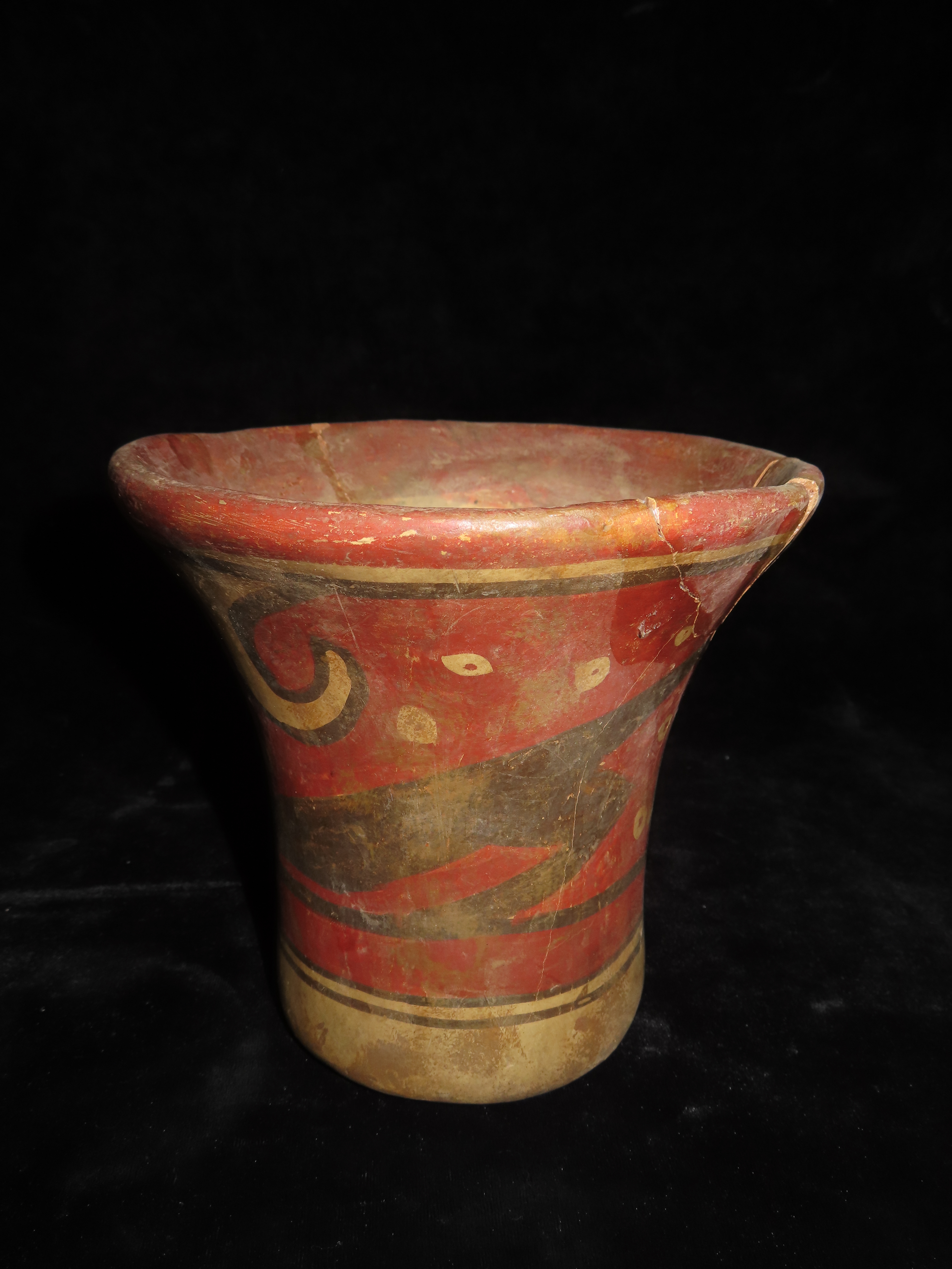 6″ Pre-Columbain Pottery Kero Vessel. Wonderful PAint. Broken and Glued.