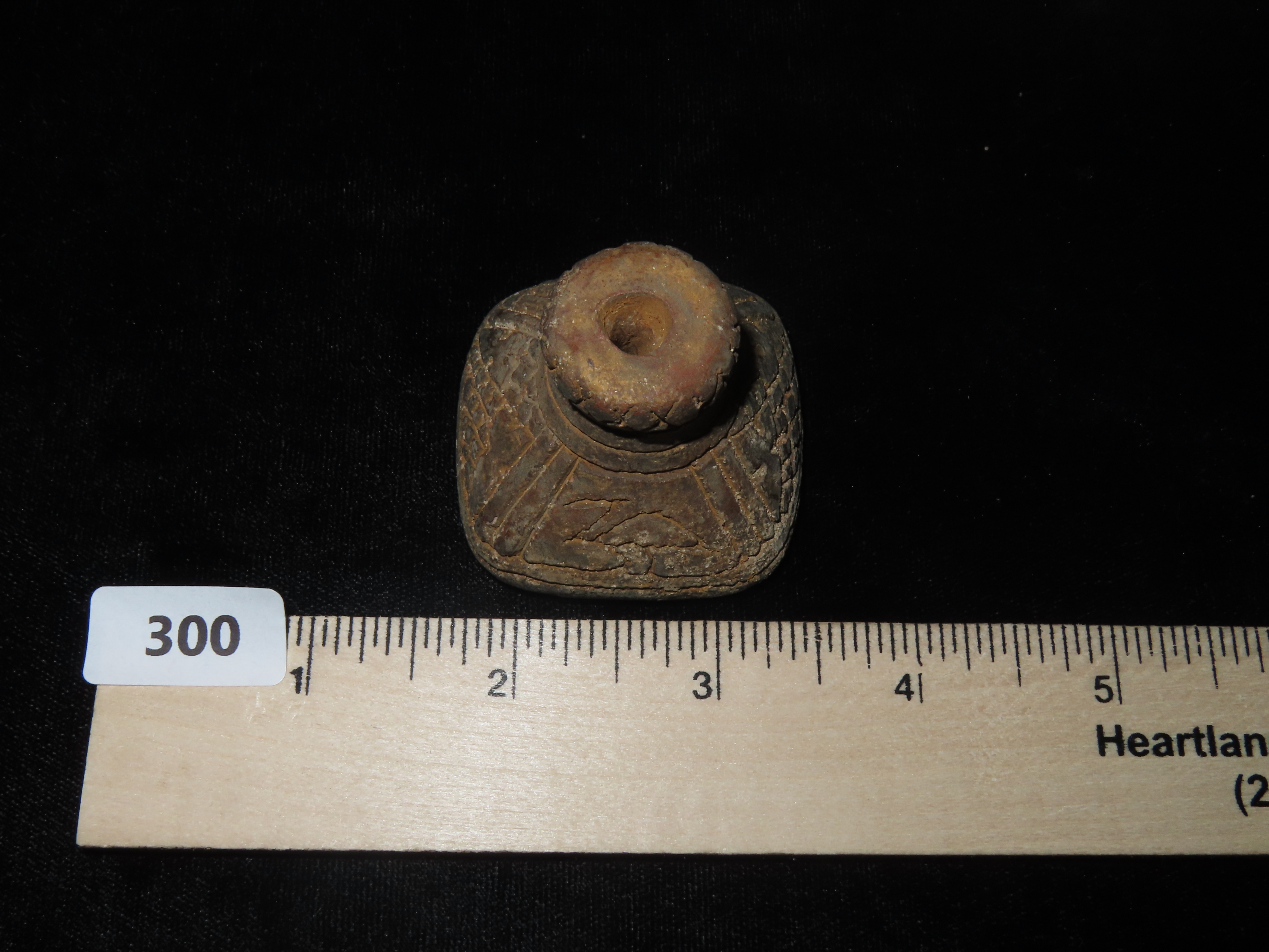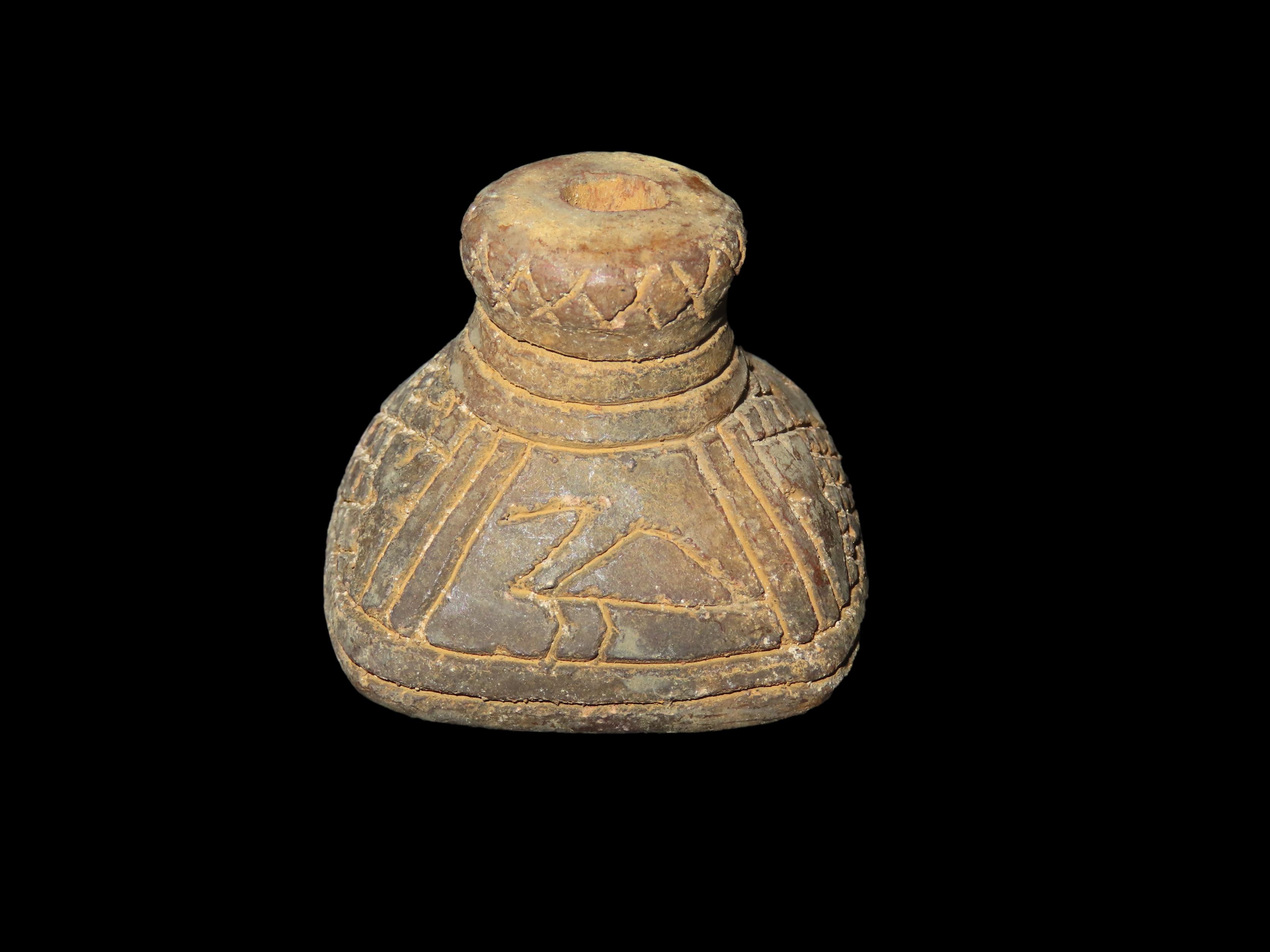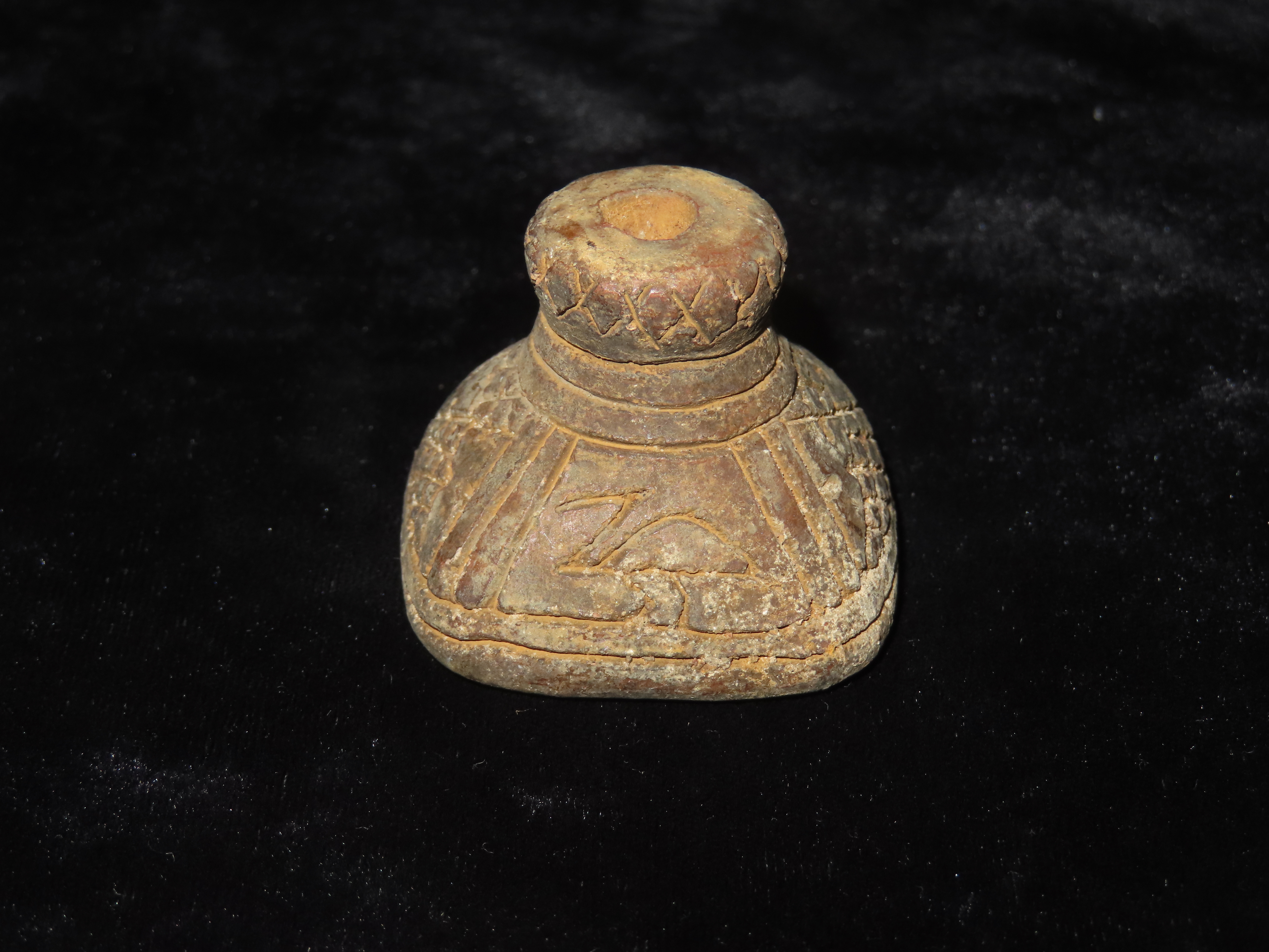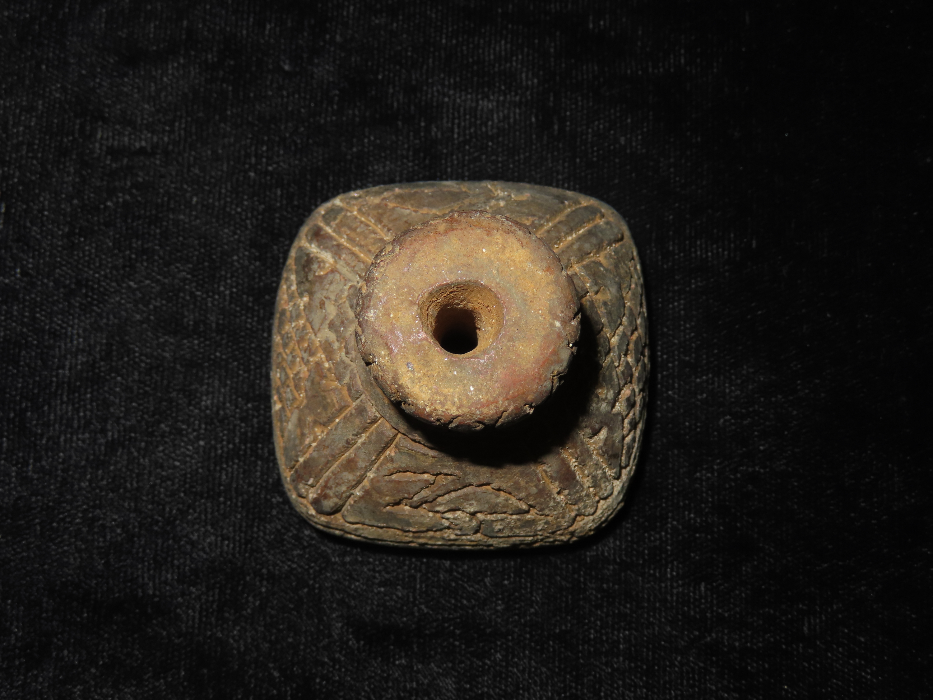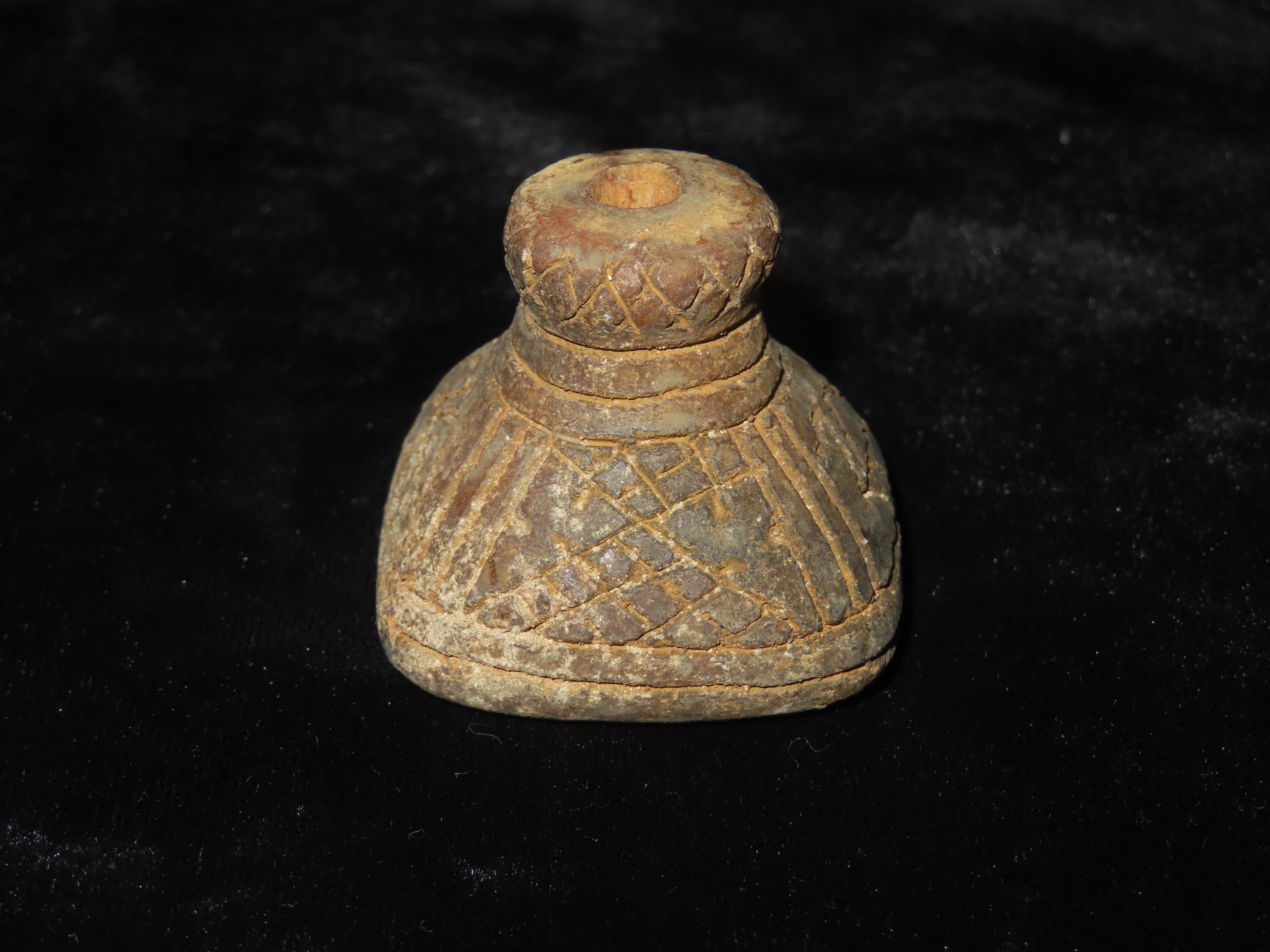 Pre-Columbian Large Spindle Bead. Great Carvings.