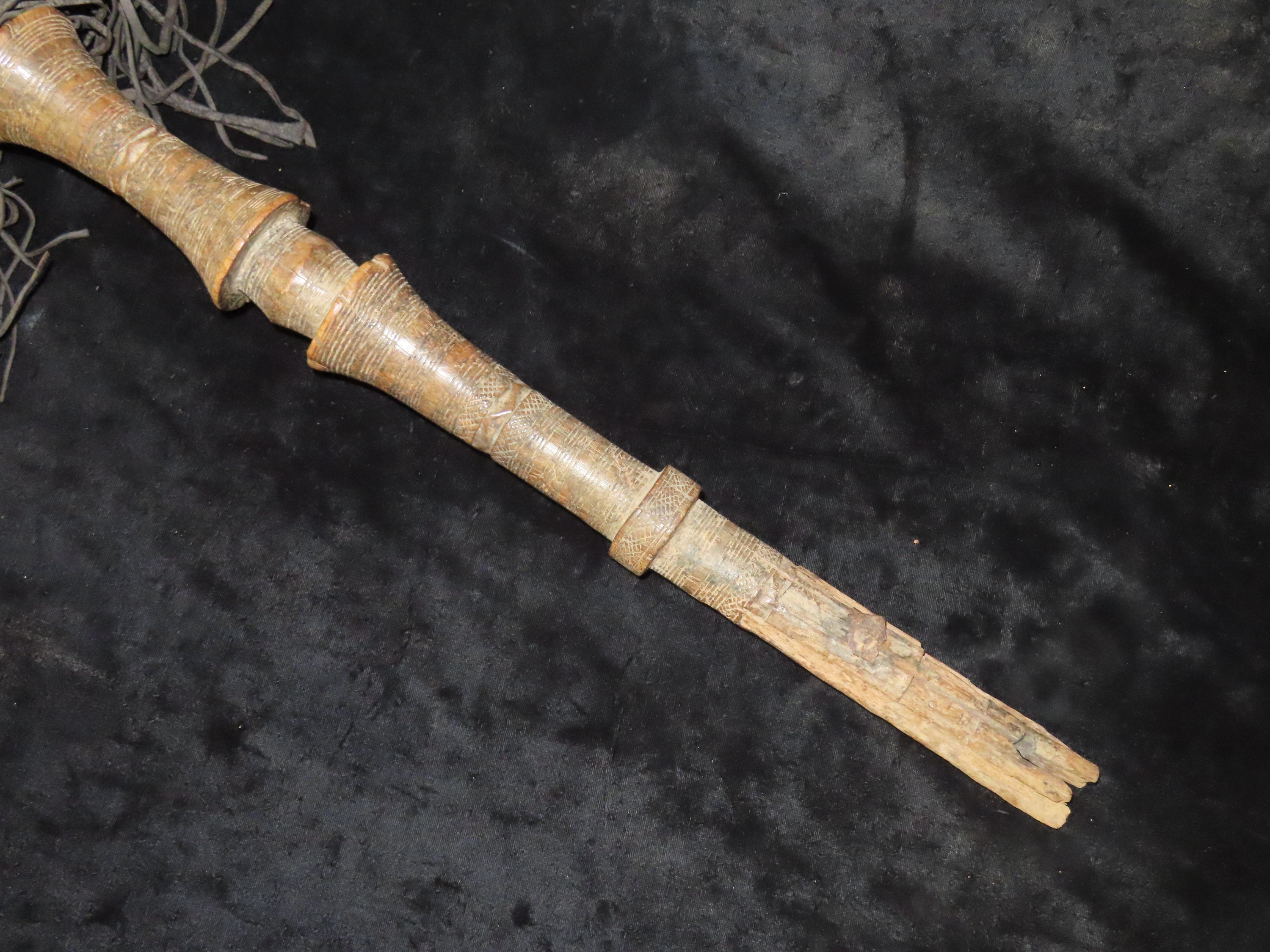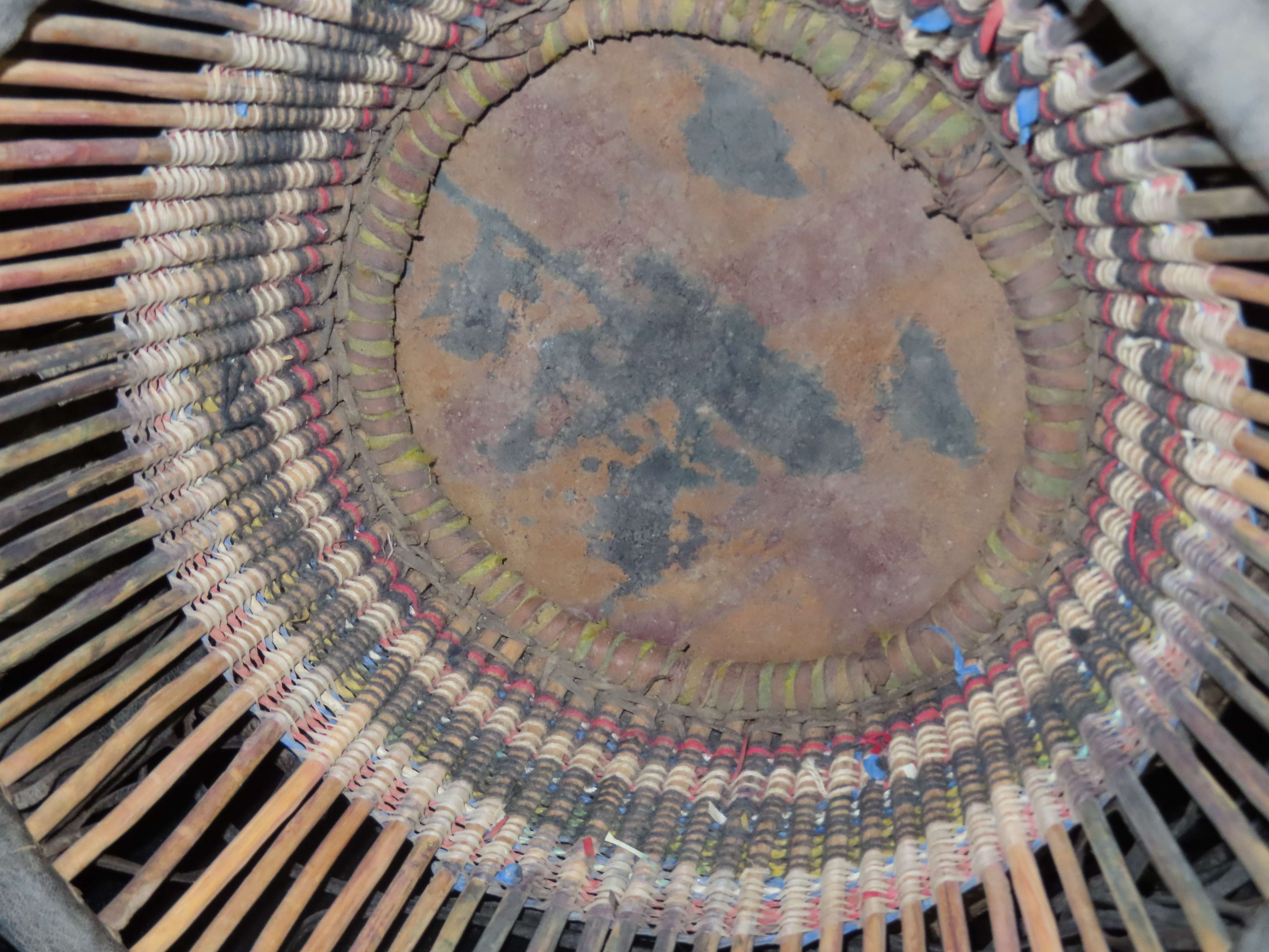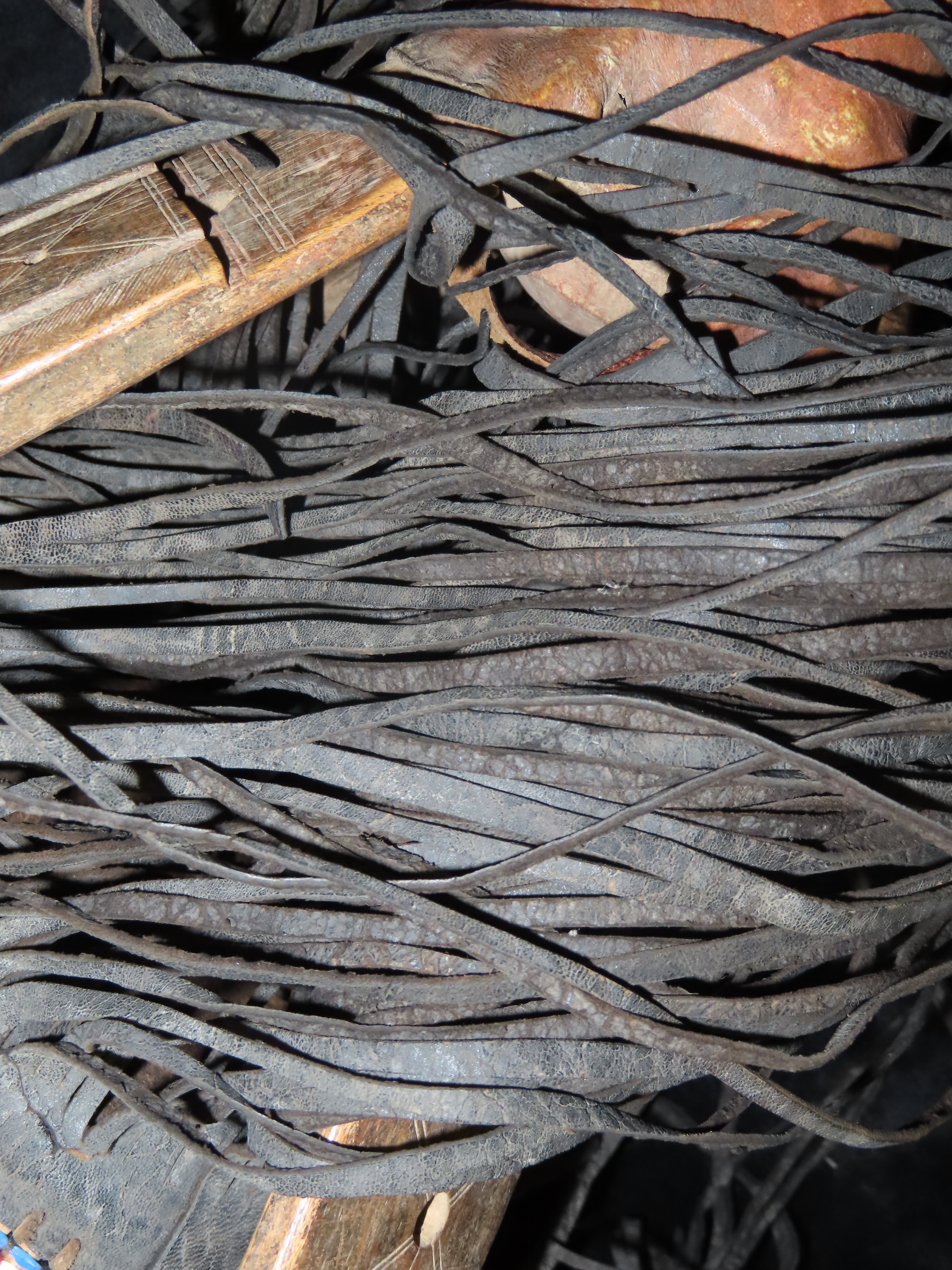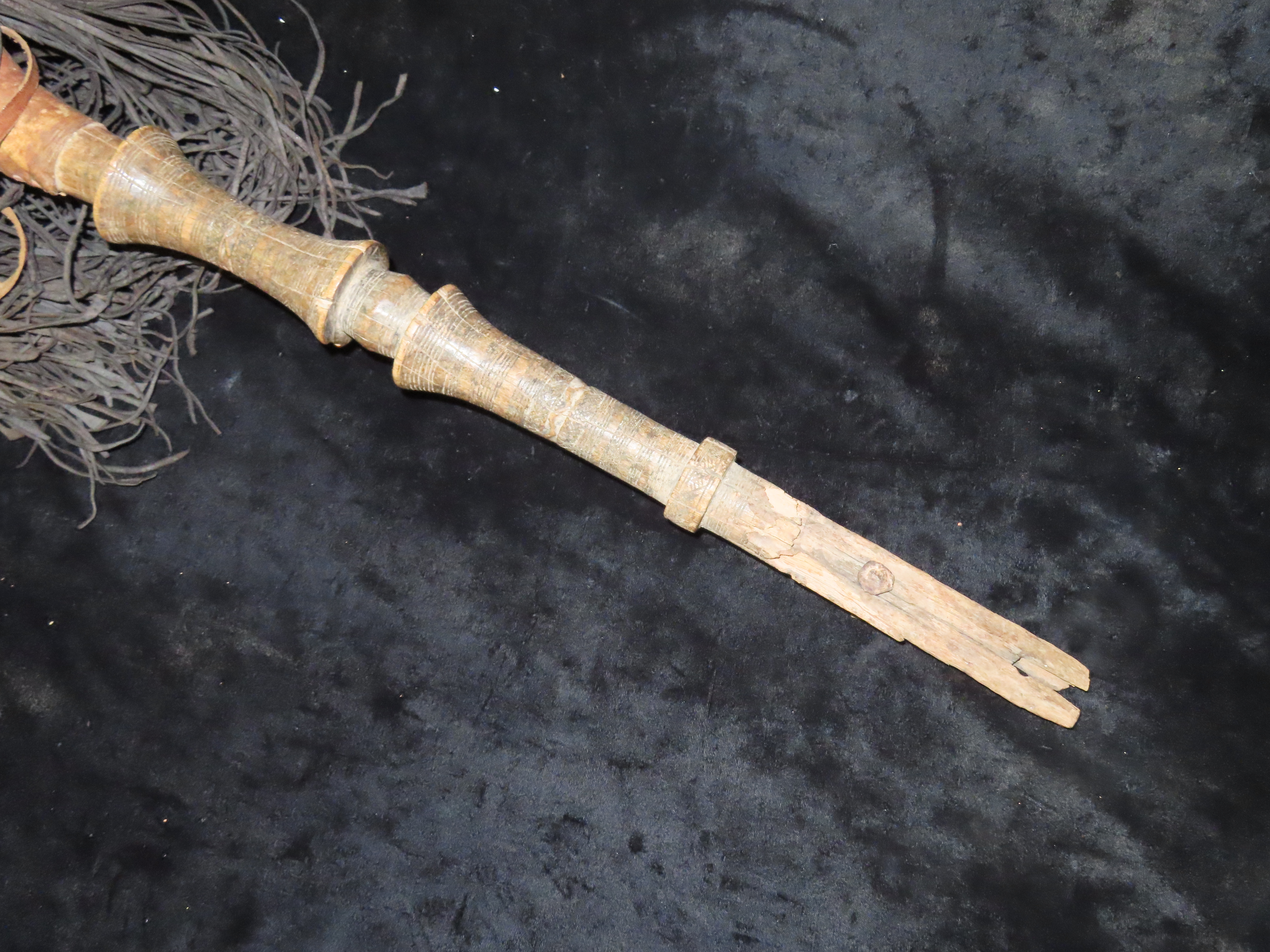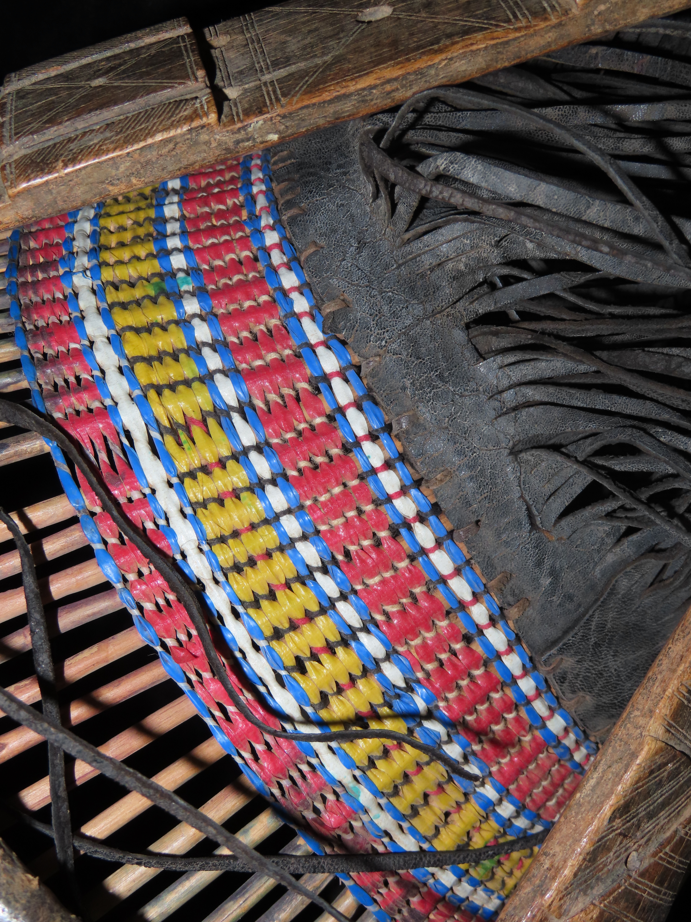 Wood, Leather and Bead Basket on a stick