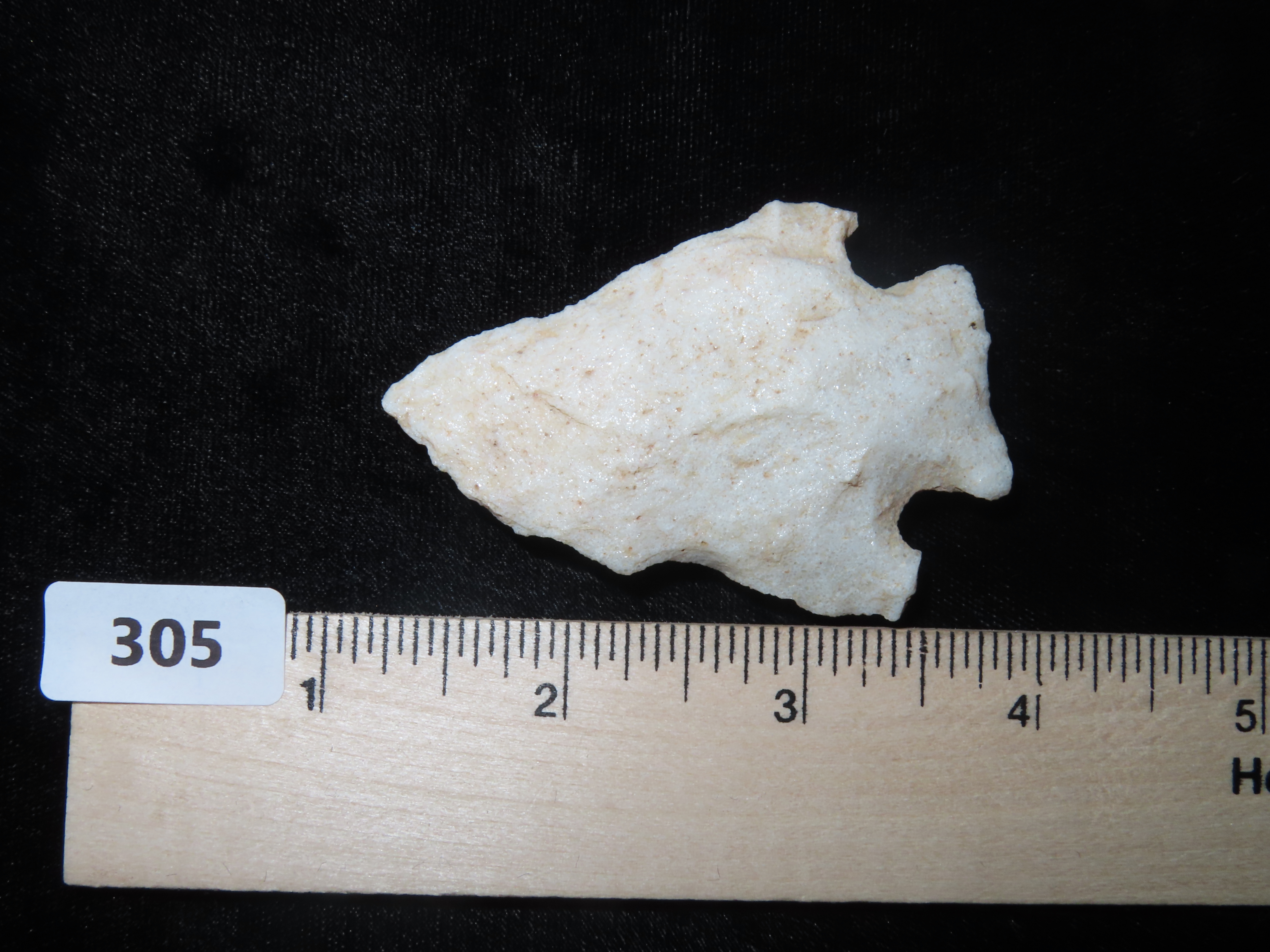 2 3/4″ Etley Point. Quartzite. Butler County, Missouri. Found Near Poplar Bluff by JJ Smith. 1953 – 1978.