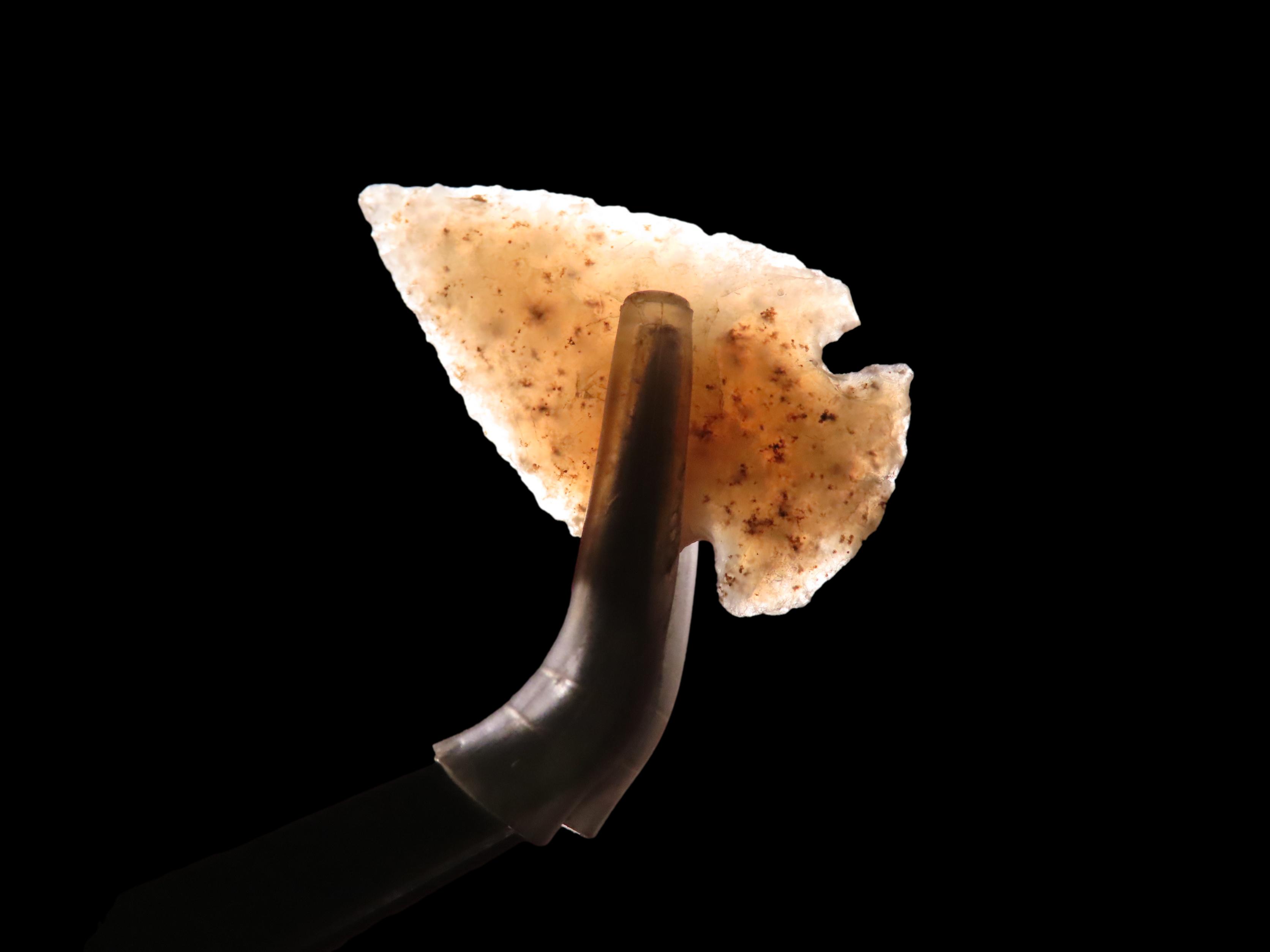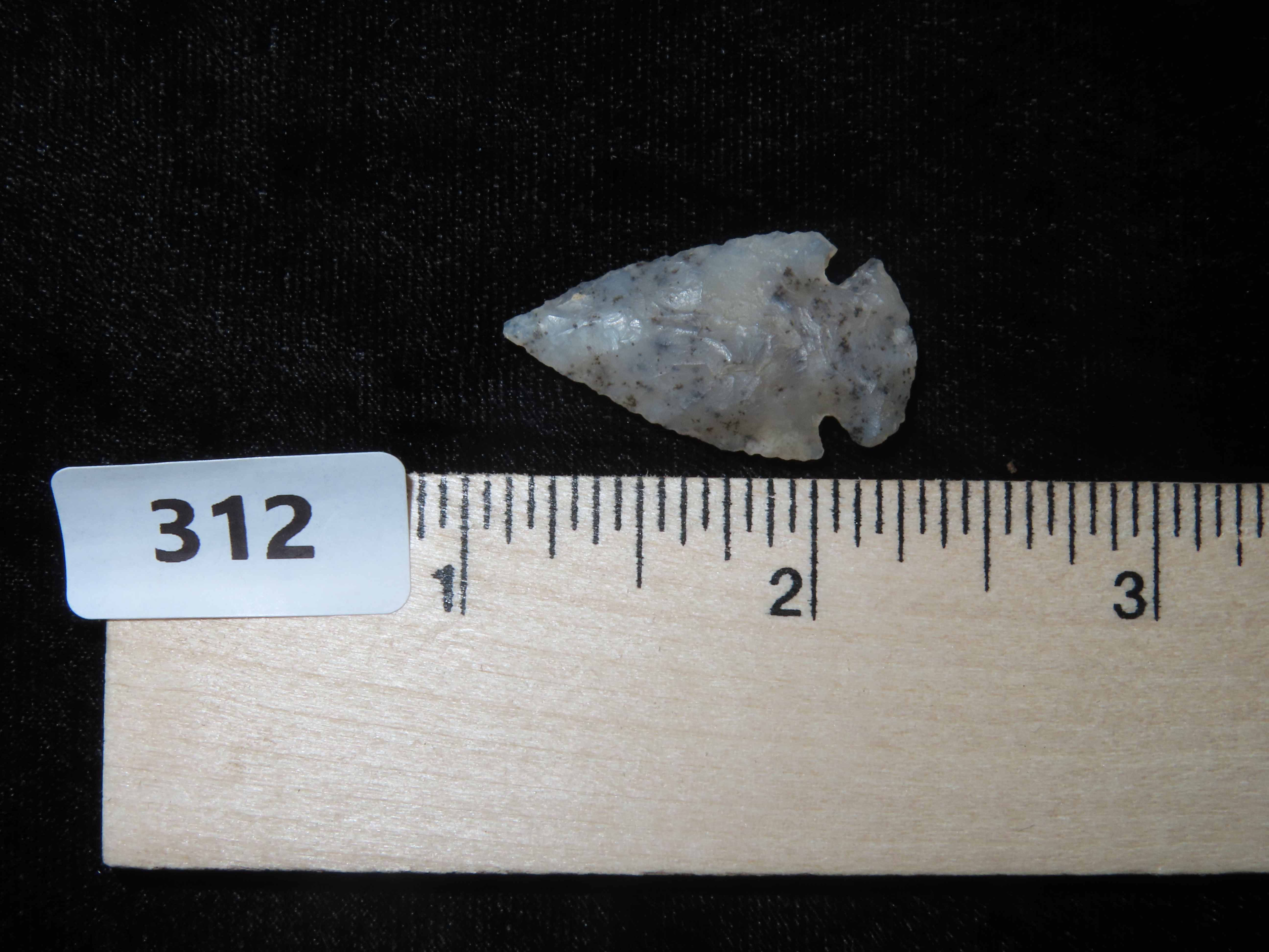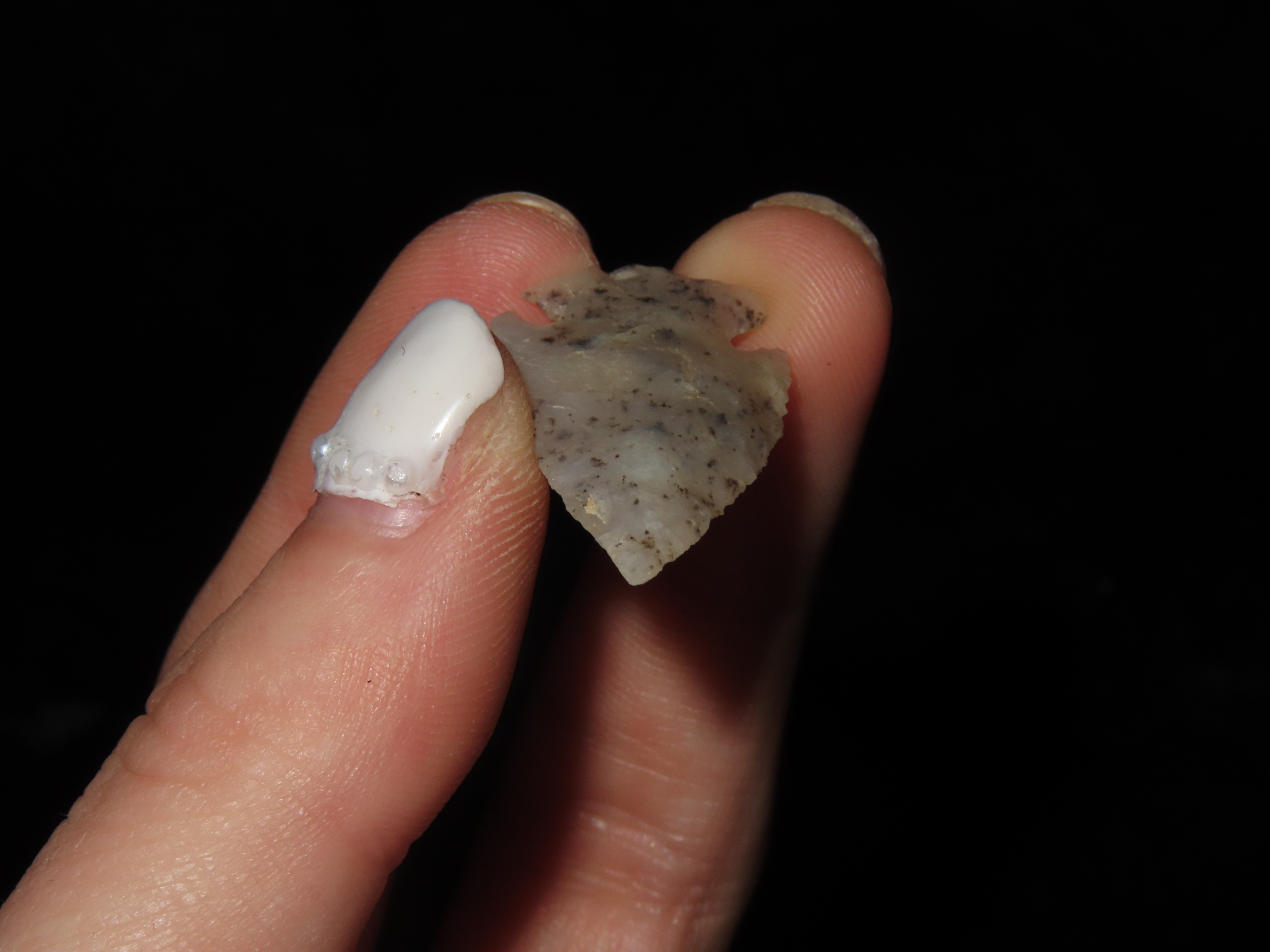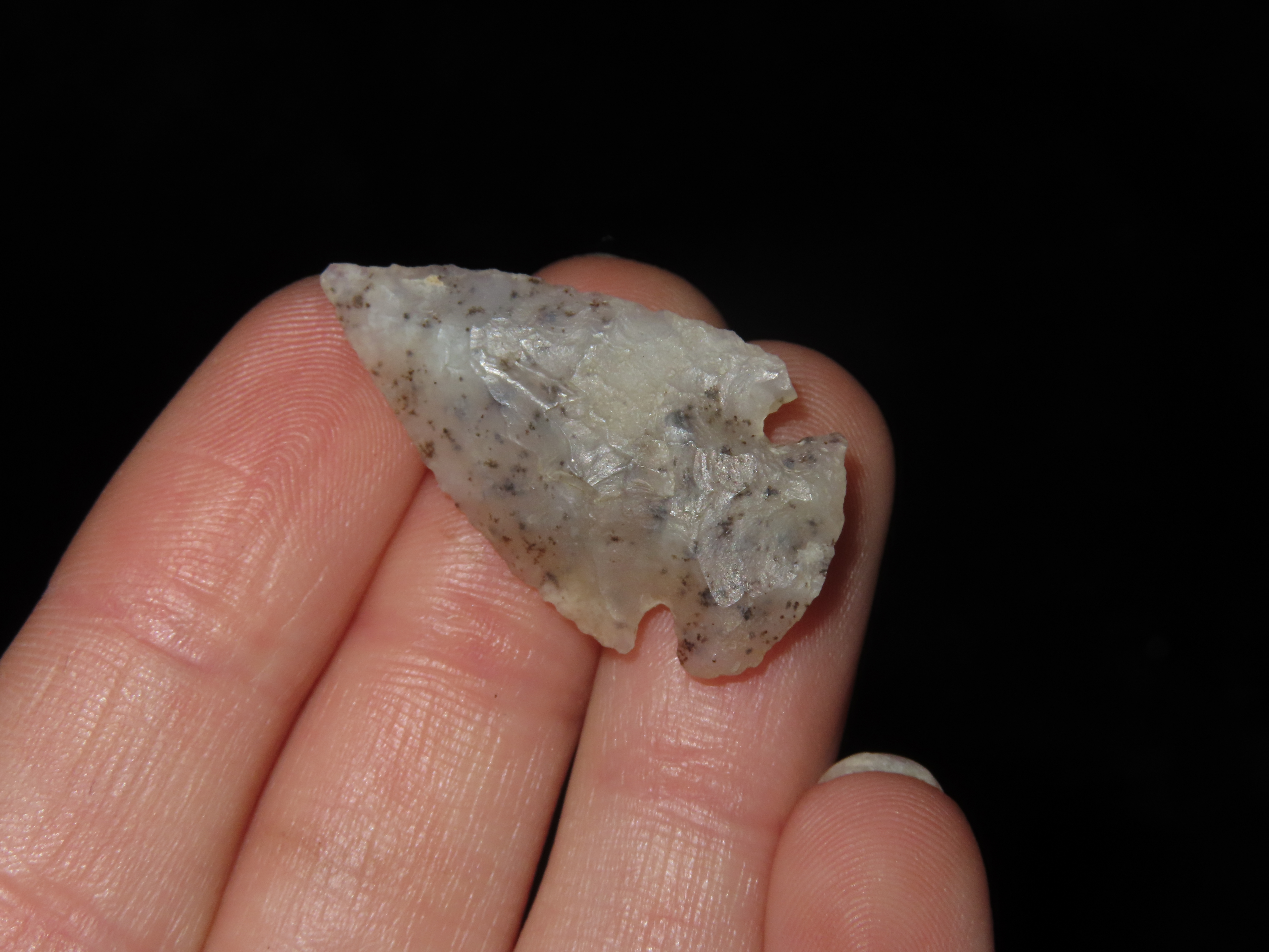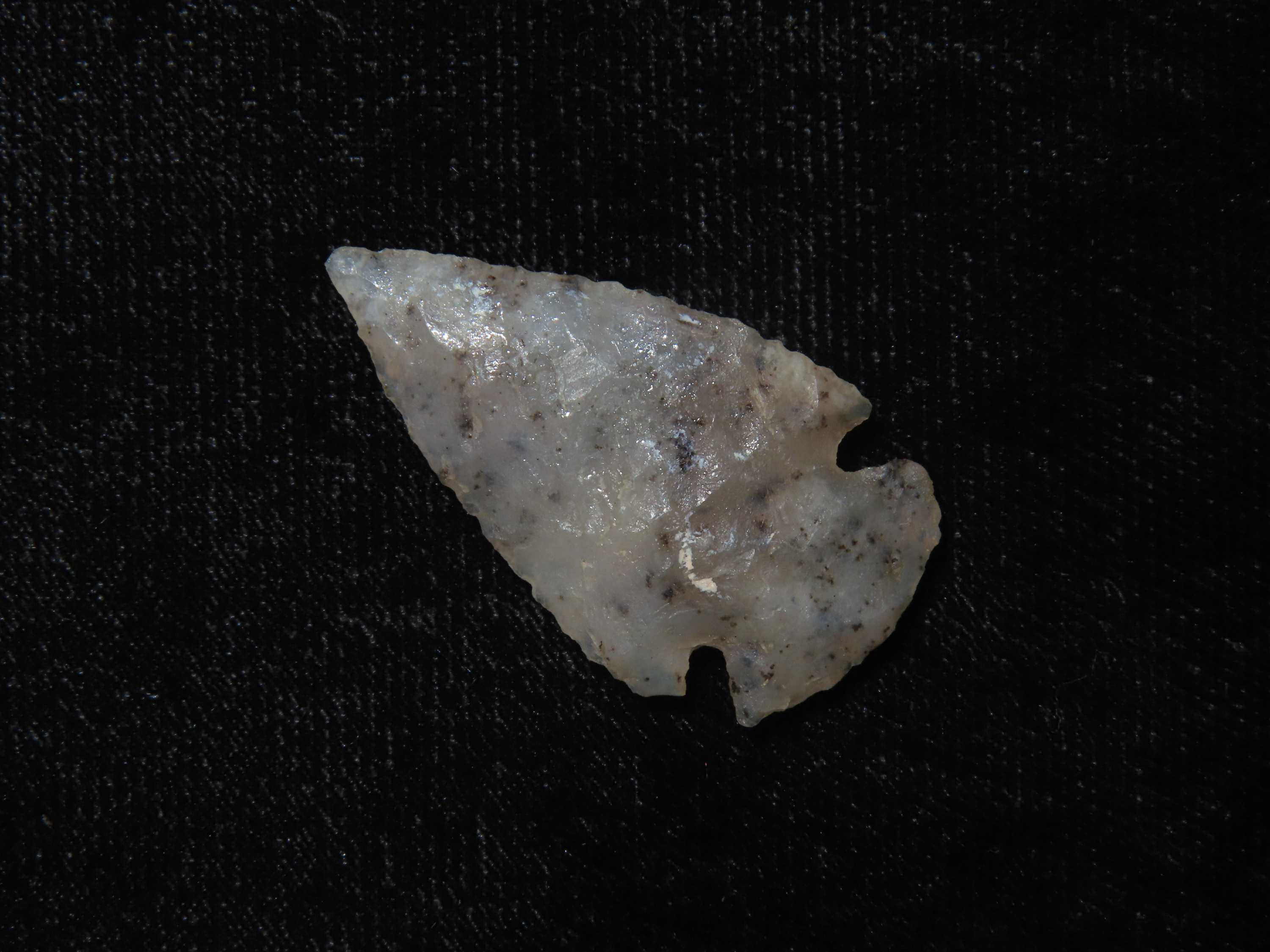 1 3/16″ Hell’s Cannon. Corner Notch. Agate Bird Point. Gilliam County, Oregan. Found by Bob Morgan.