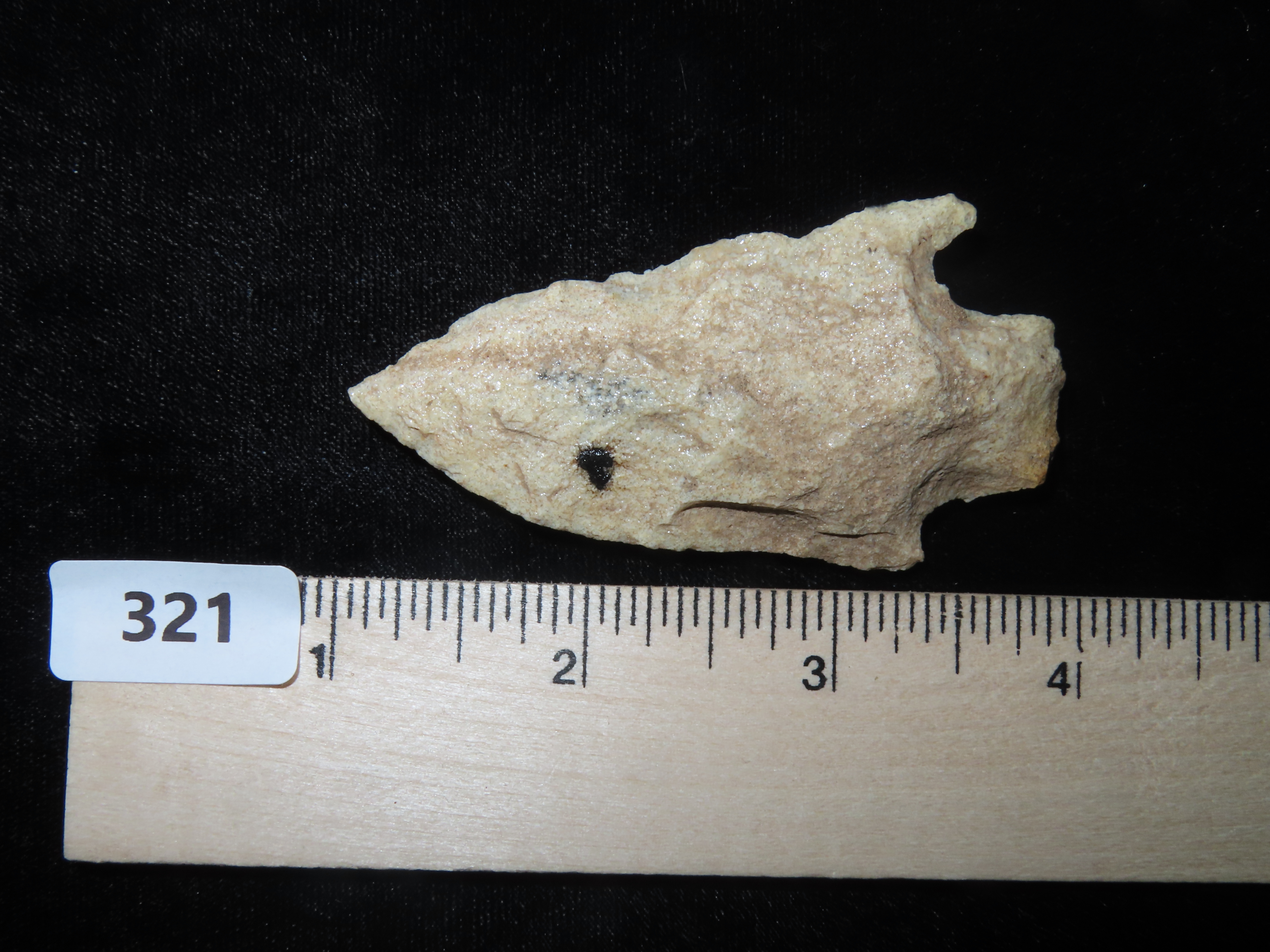 3″ Quartzite Etley Point. Butler County, Missouri. Found near Poplar Bluff by JJ Smith. 1953-1978.