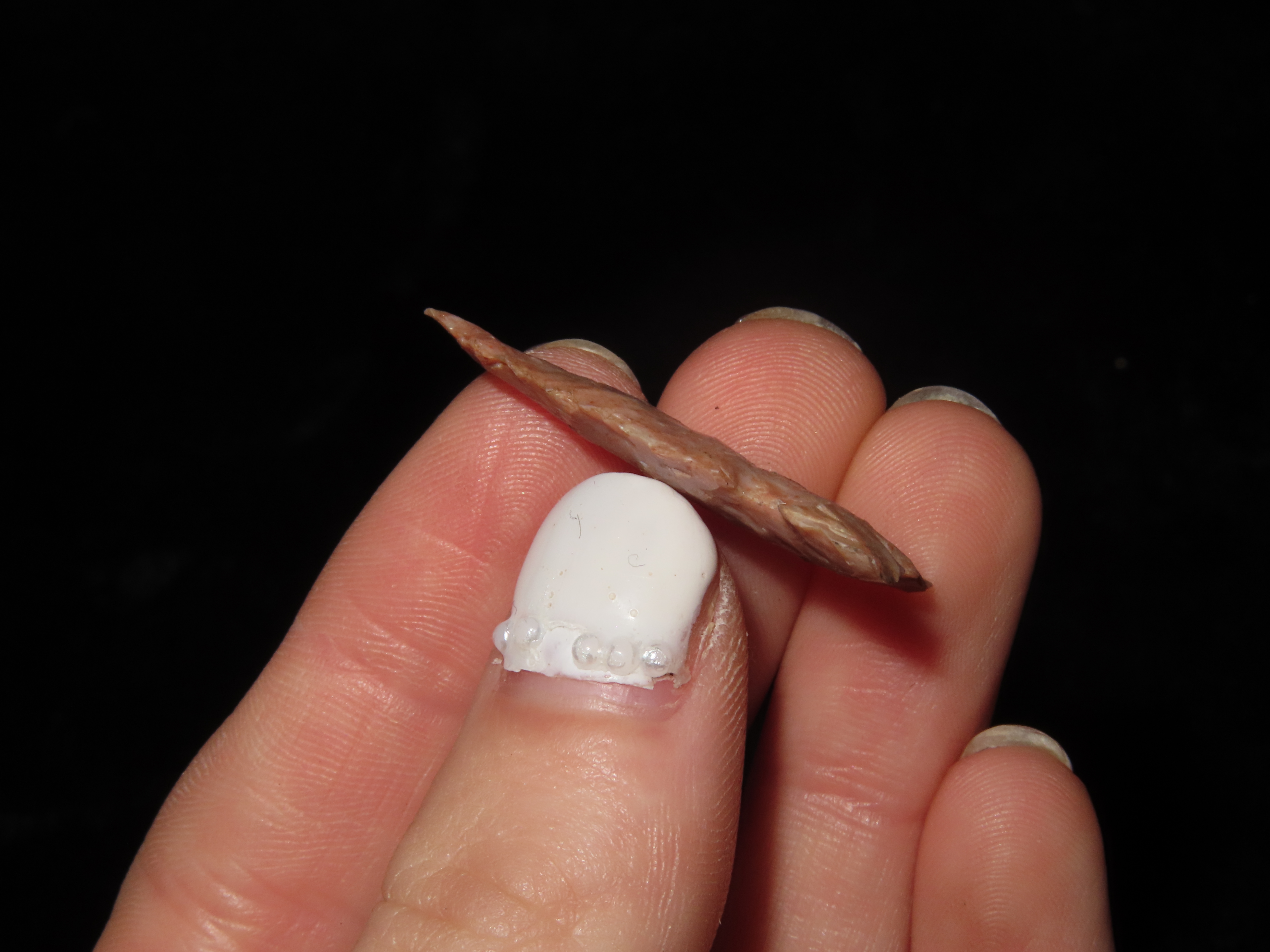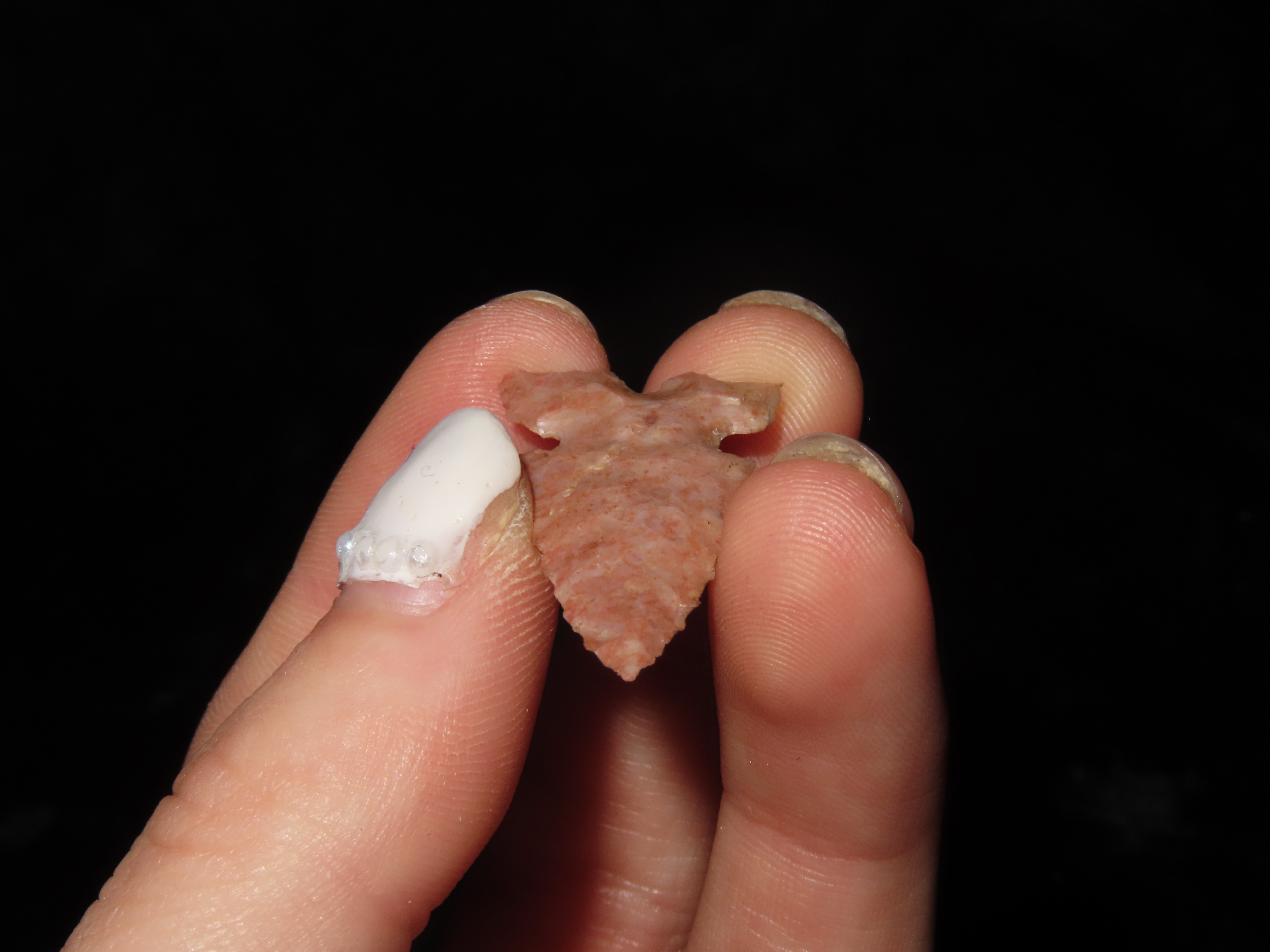 1 3/8″ Three Notched Cahokia Bird Point. St Clair County, Illinois. Found by Gabe Gilbert. 2017