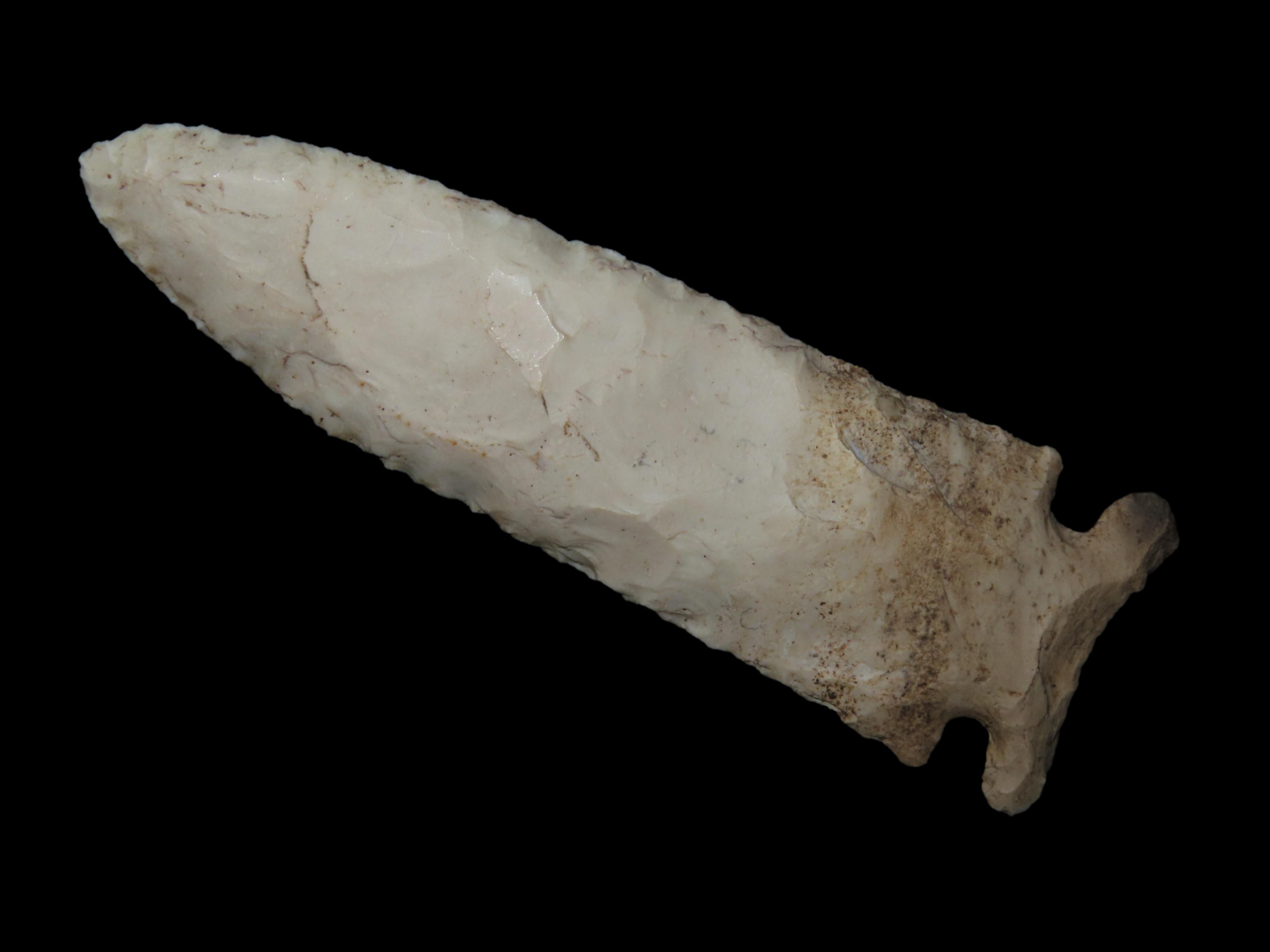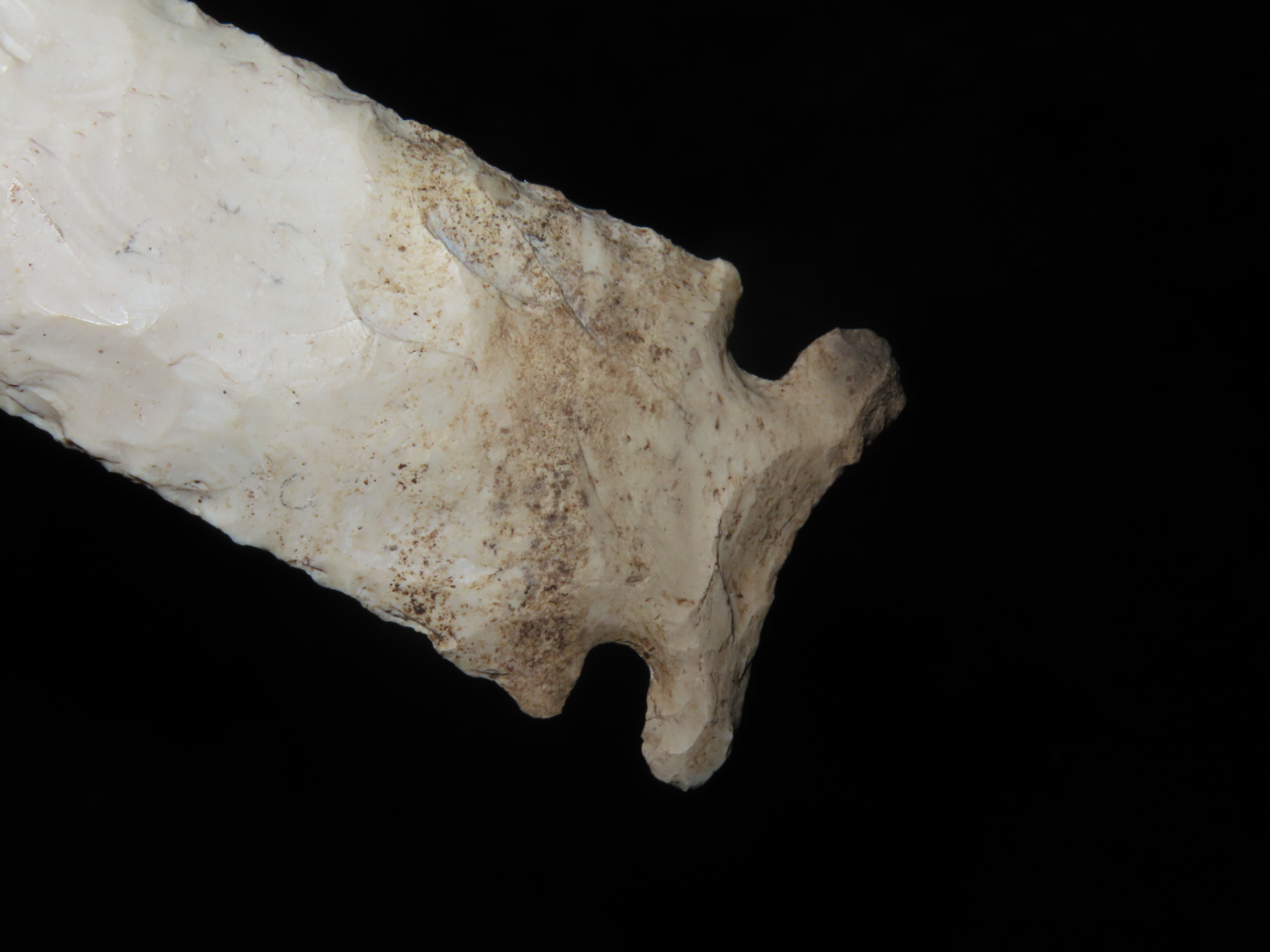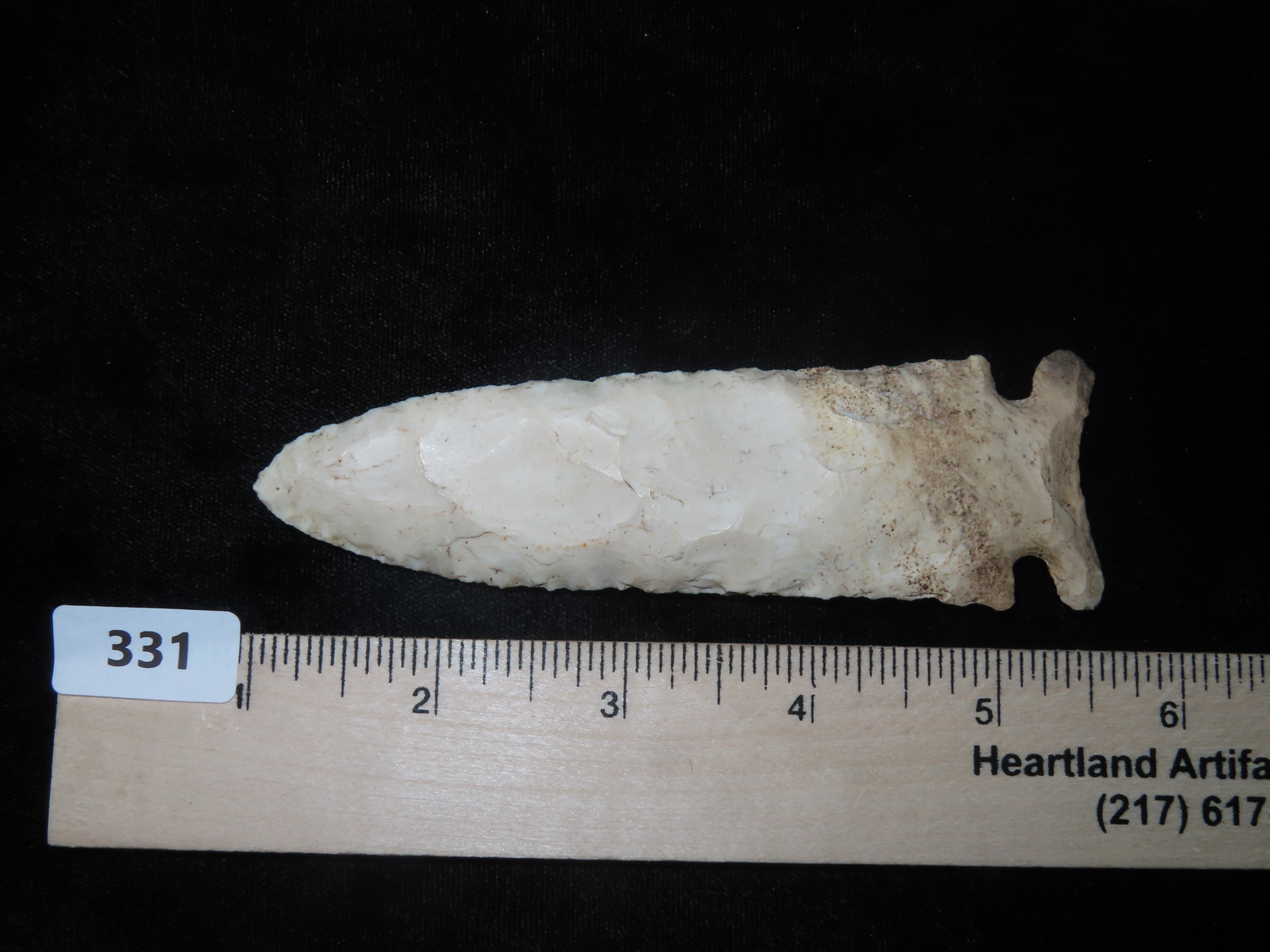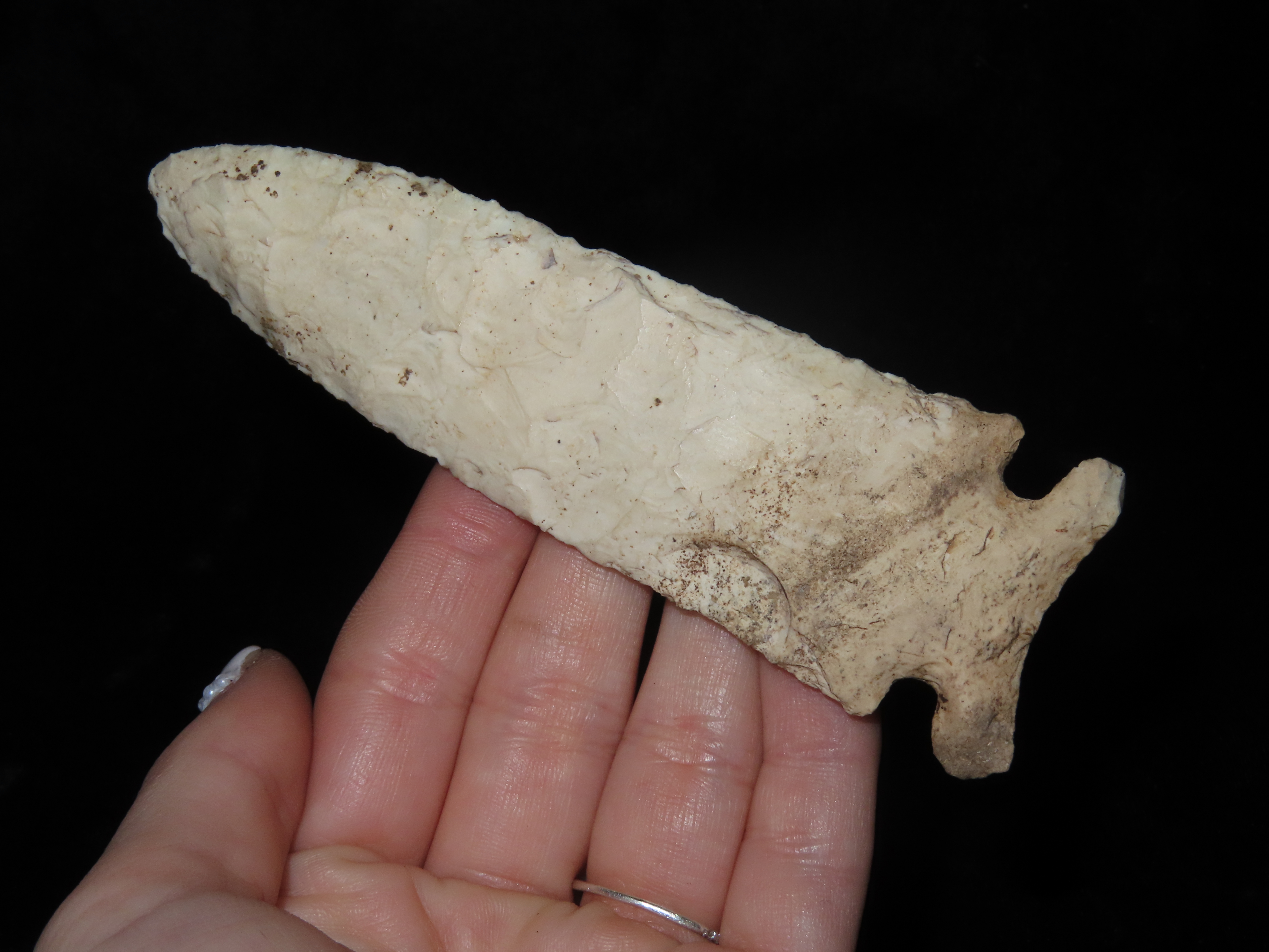 4 5/8″ Jersey Bluff Side Notch Point. Found in Jersey County by Denny Perkinson near Nutwood, Illinois. LATW Woodland 750-1100 AD.