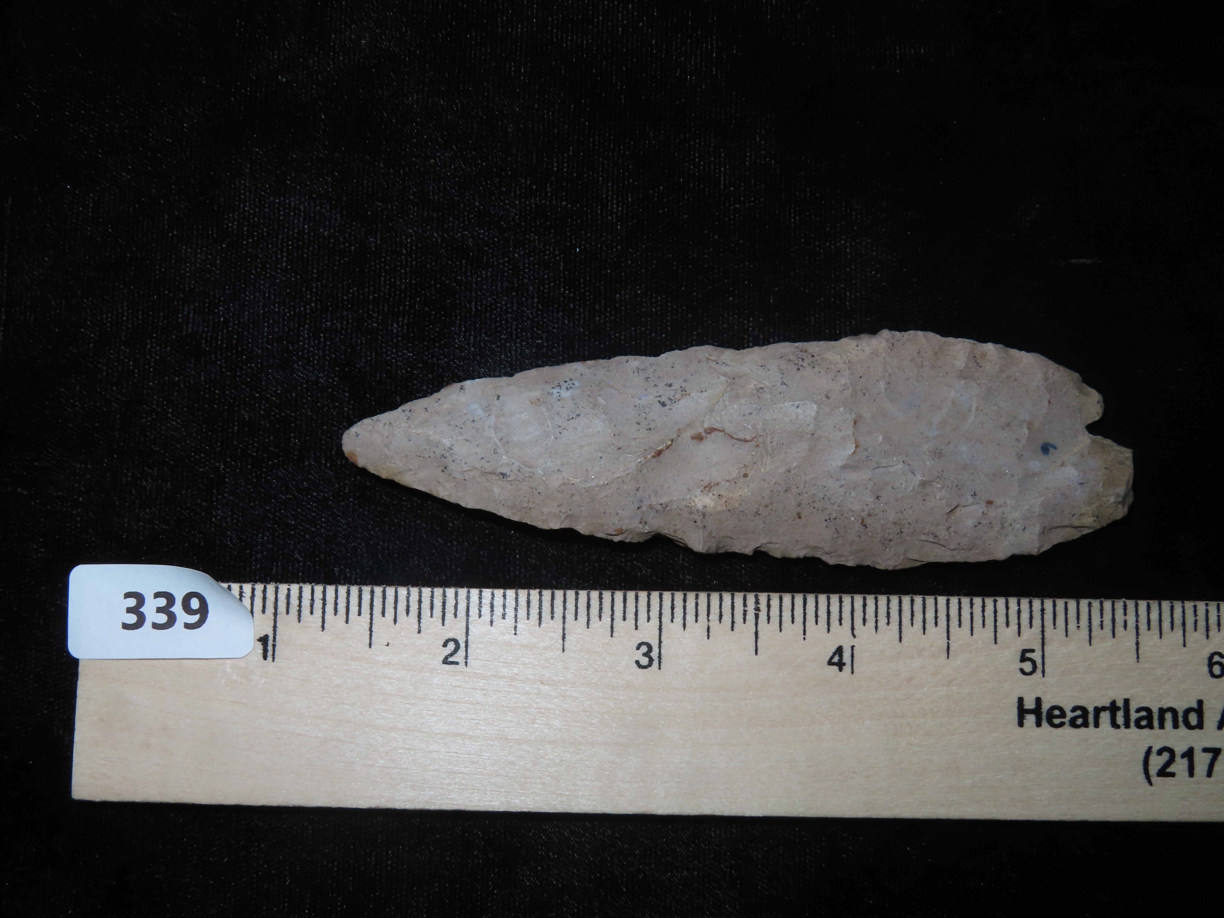4 1/4″ Lanclite Point/Blade. Butler County, Missouri. Found near Poplar Bluff by JJ Smith. 1953 – 1978.