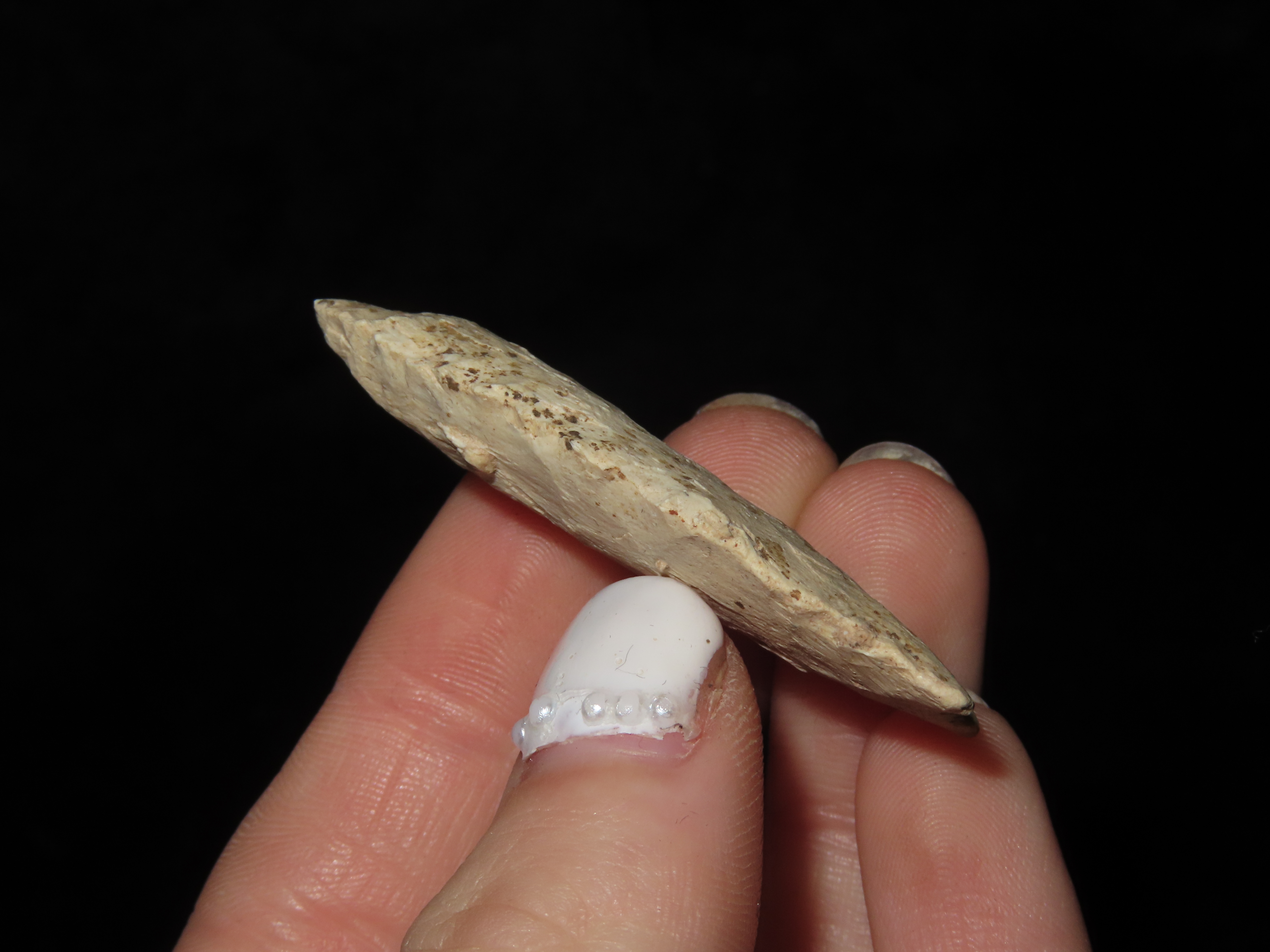 1 7/8″ Angostura Point. Pike County, Missouri. Found near Hannibal by Richard Grammer 1980 – 1990.