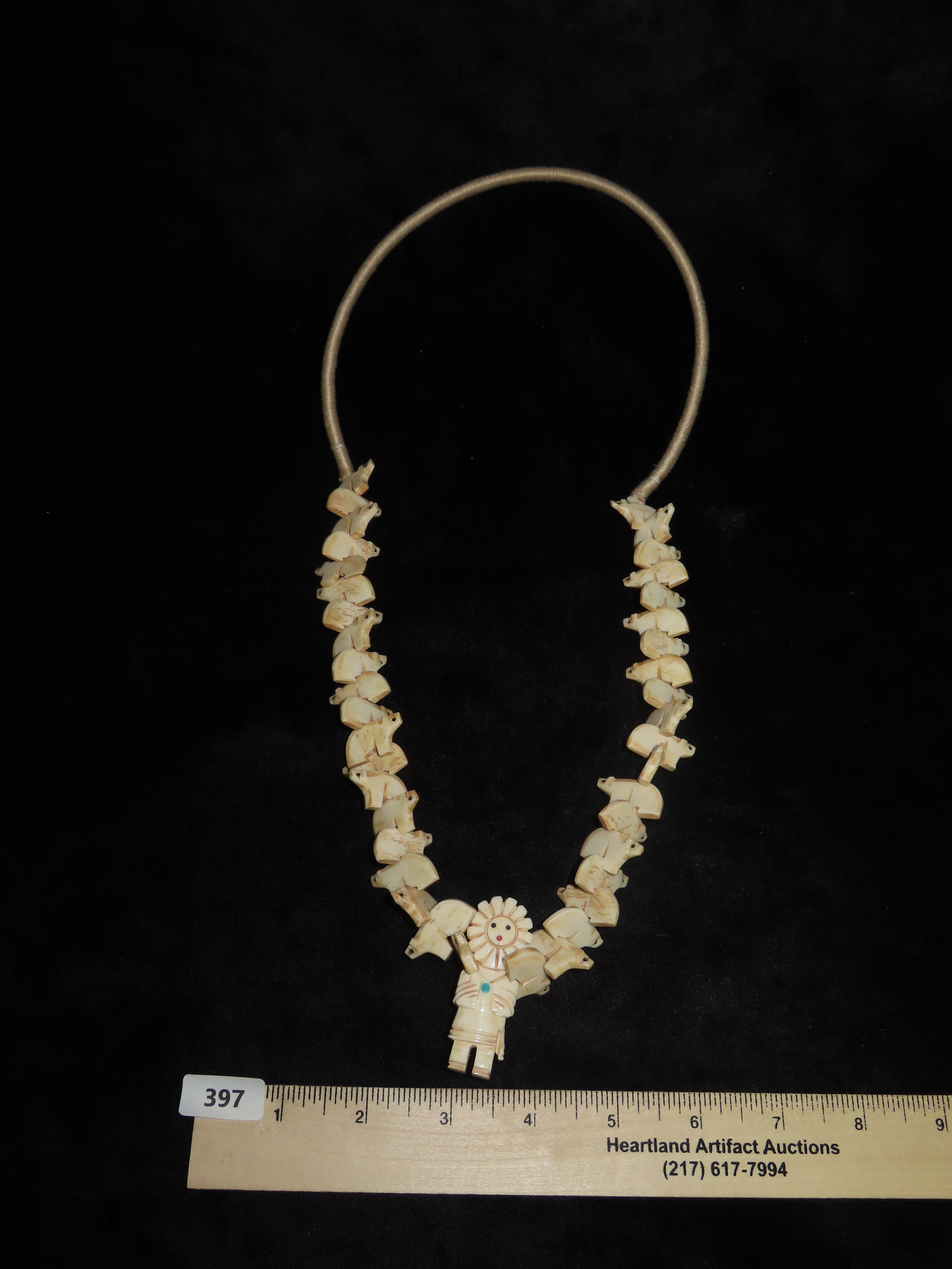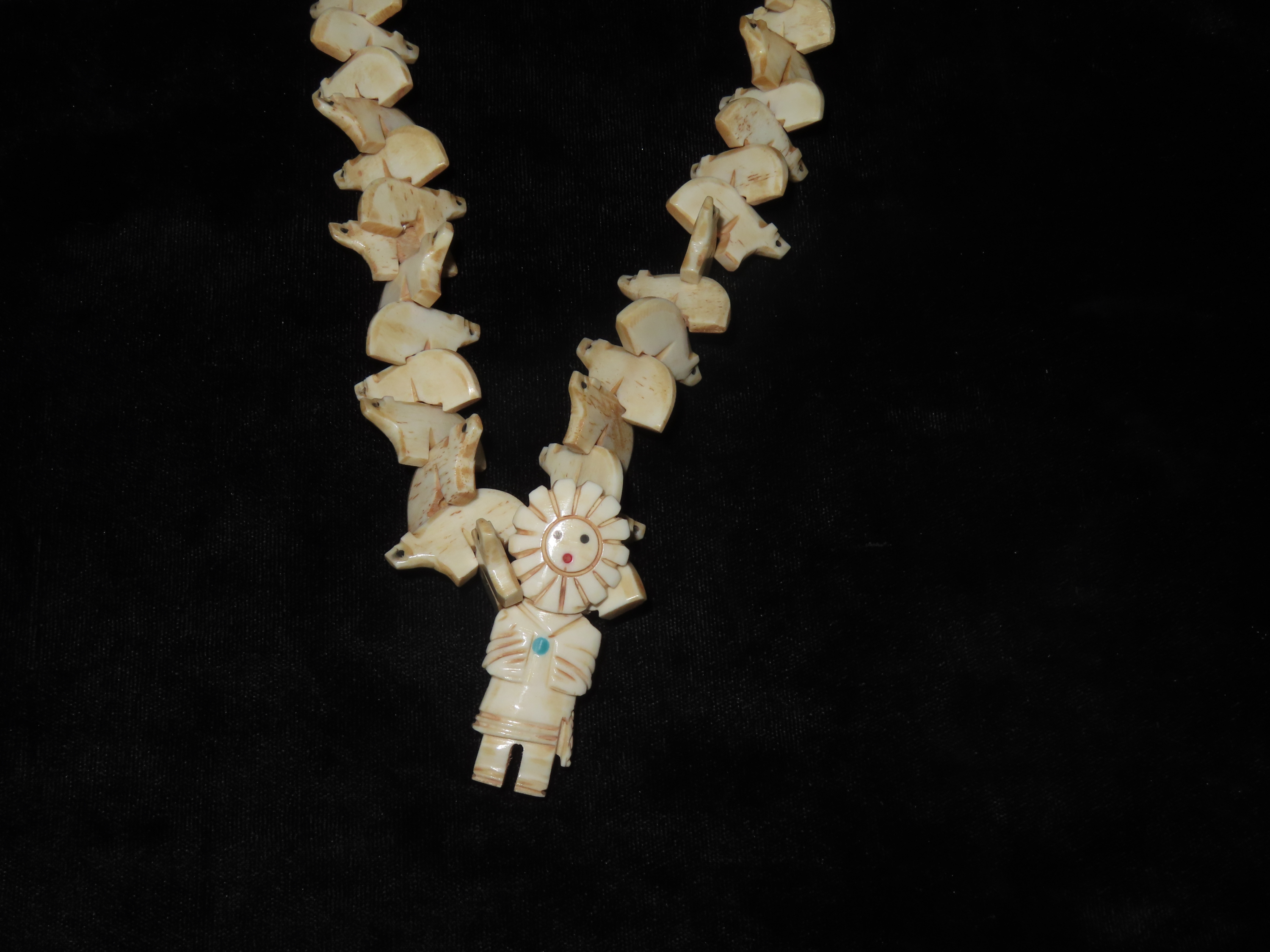 16″ Long. Native Bone Inlayed Sun Face Kachina