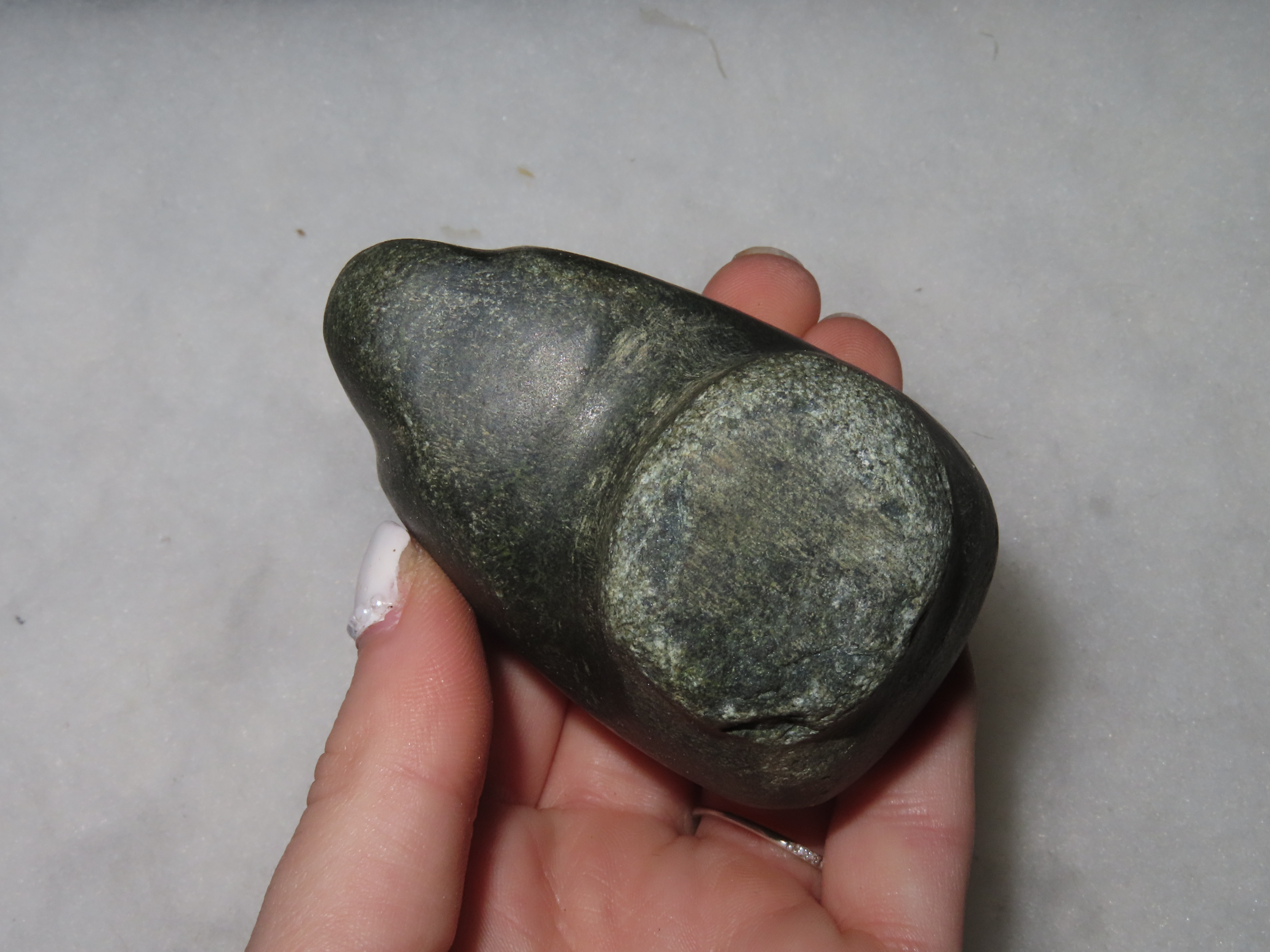2 1/8″ x 2 7/8″ Egyptian Falcon Mace Head. The Falcon was associated with the Sun God in the New Kingdom. 1550 – 1070 BC.