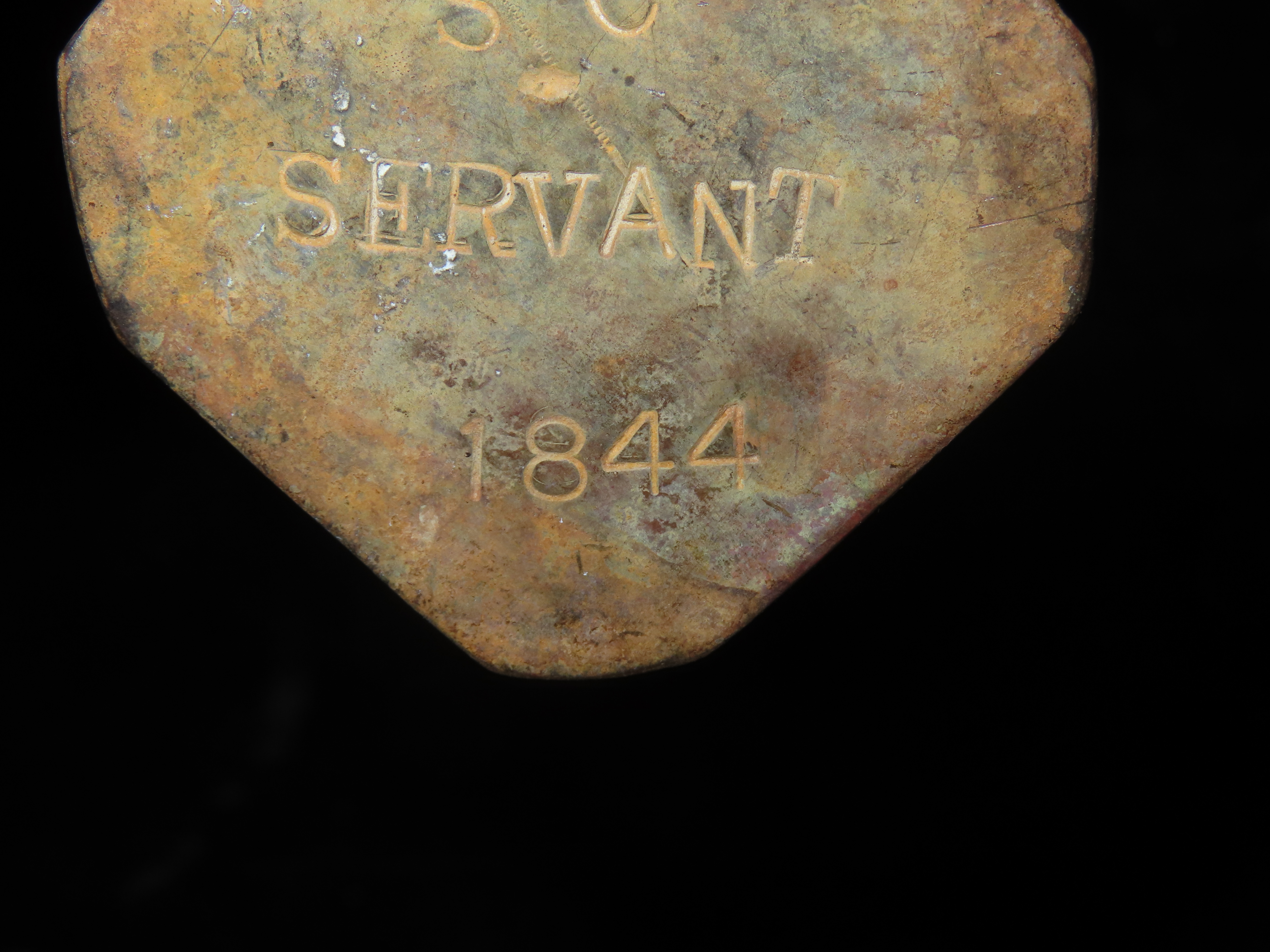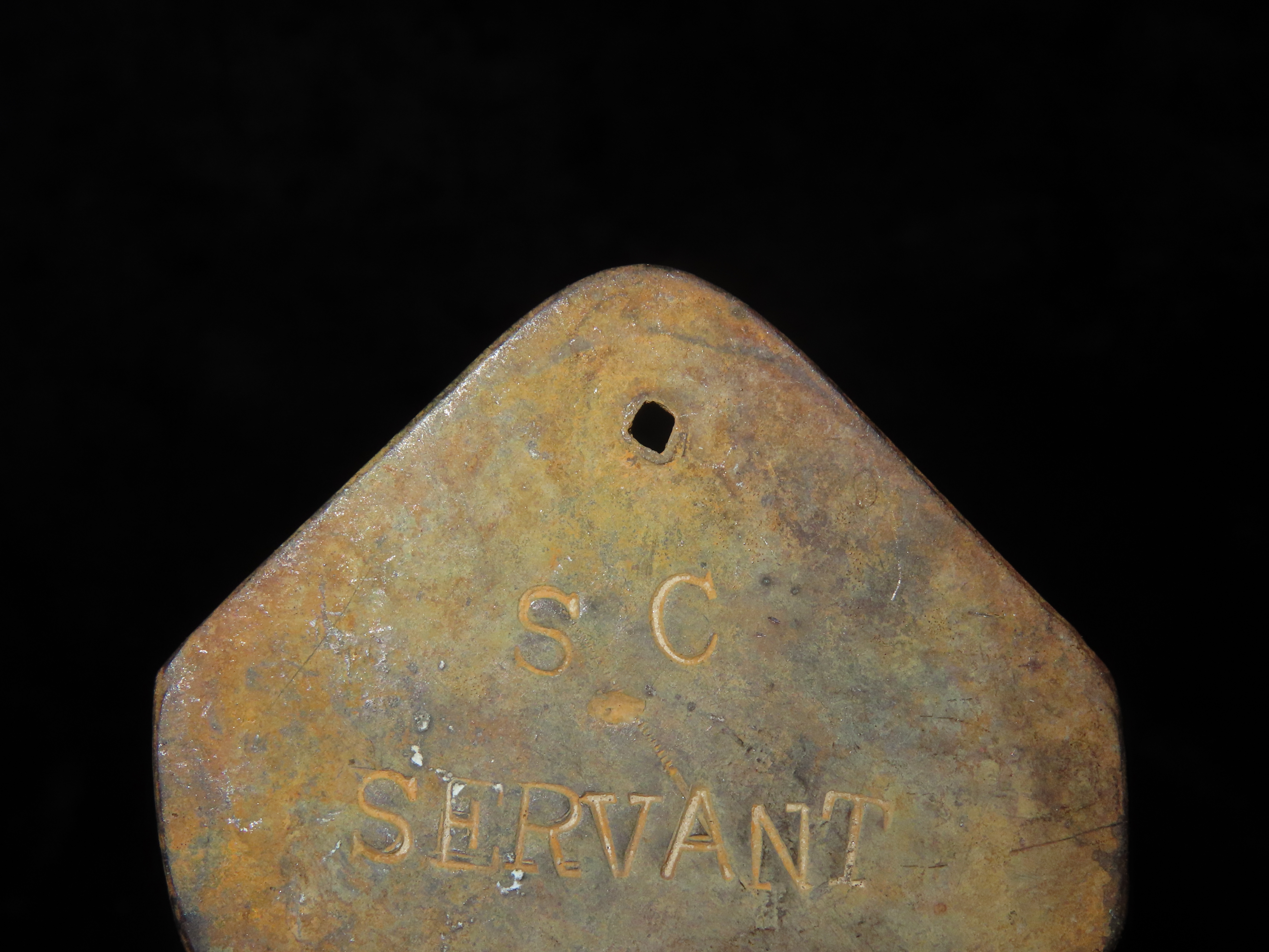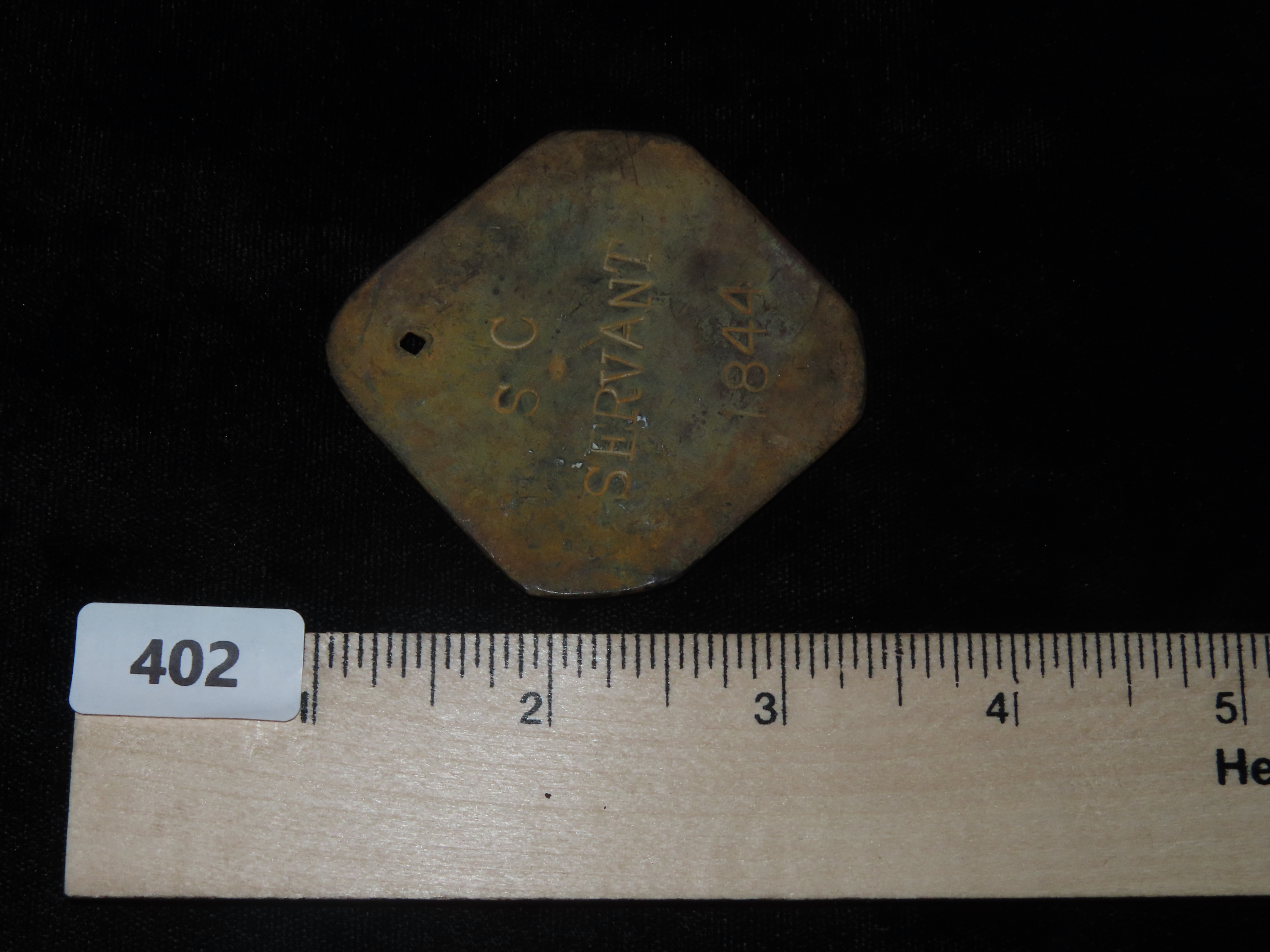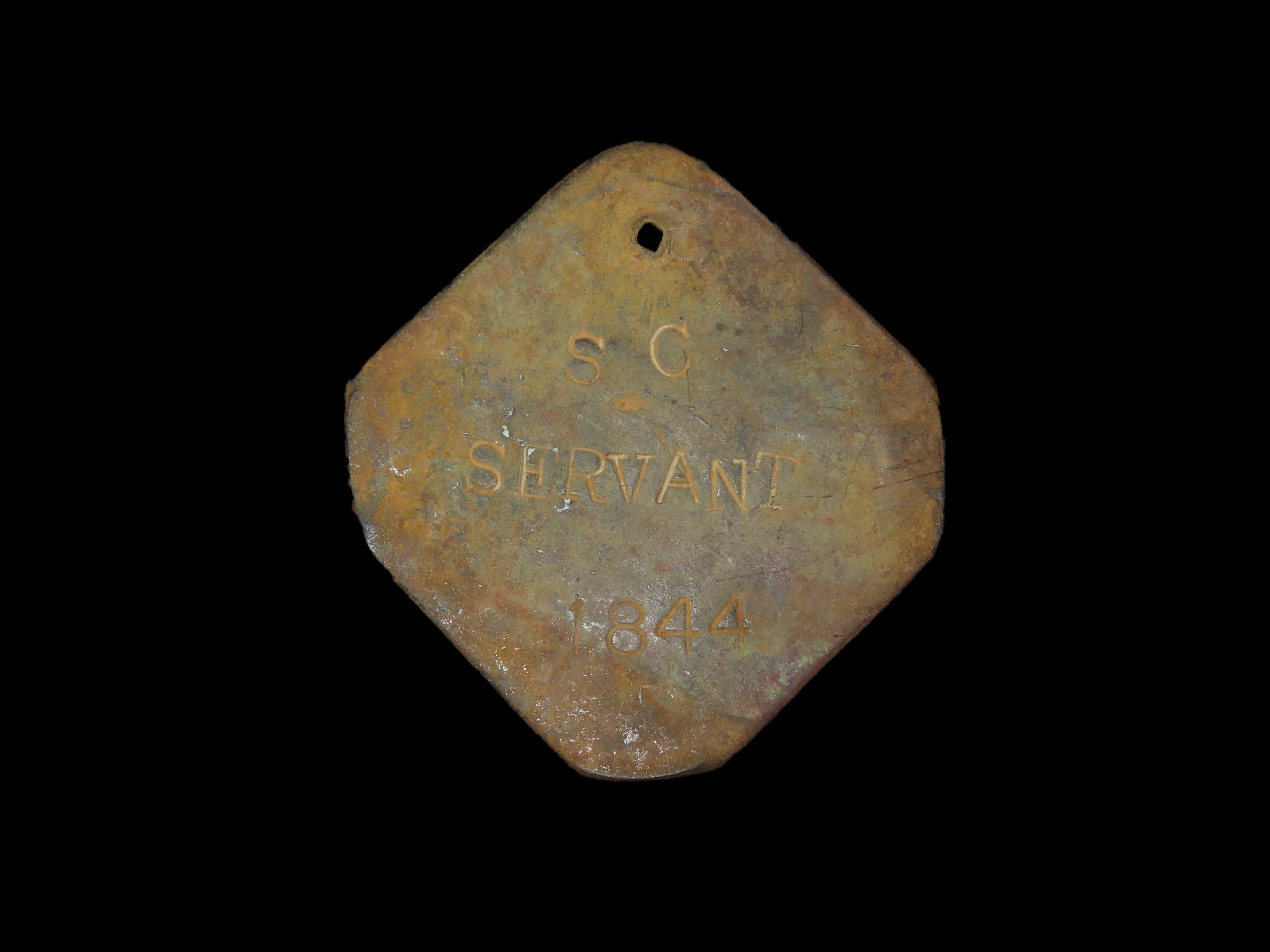 African American Slave Tag. 1844 Servant. Metal Detected Find Beaufort County, South Carolina.